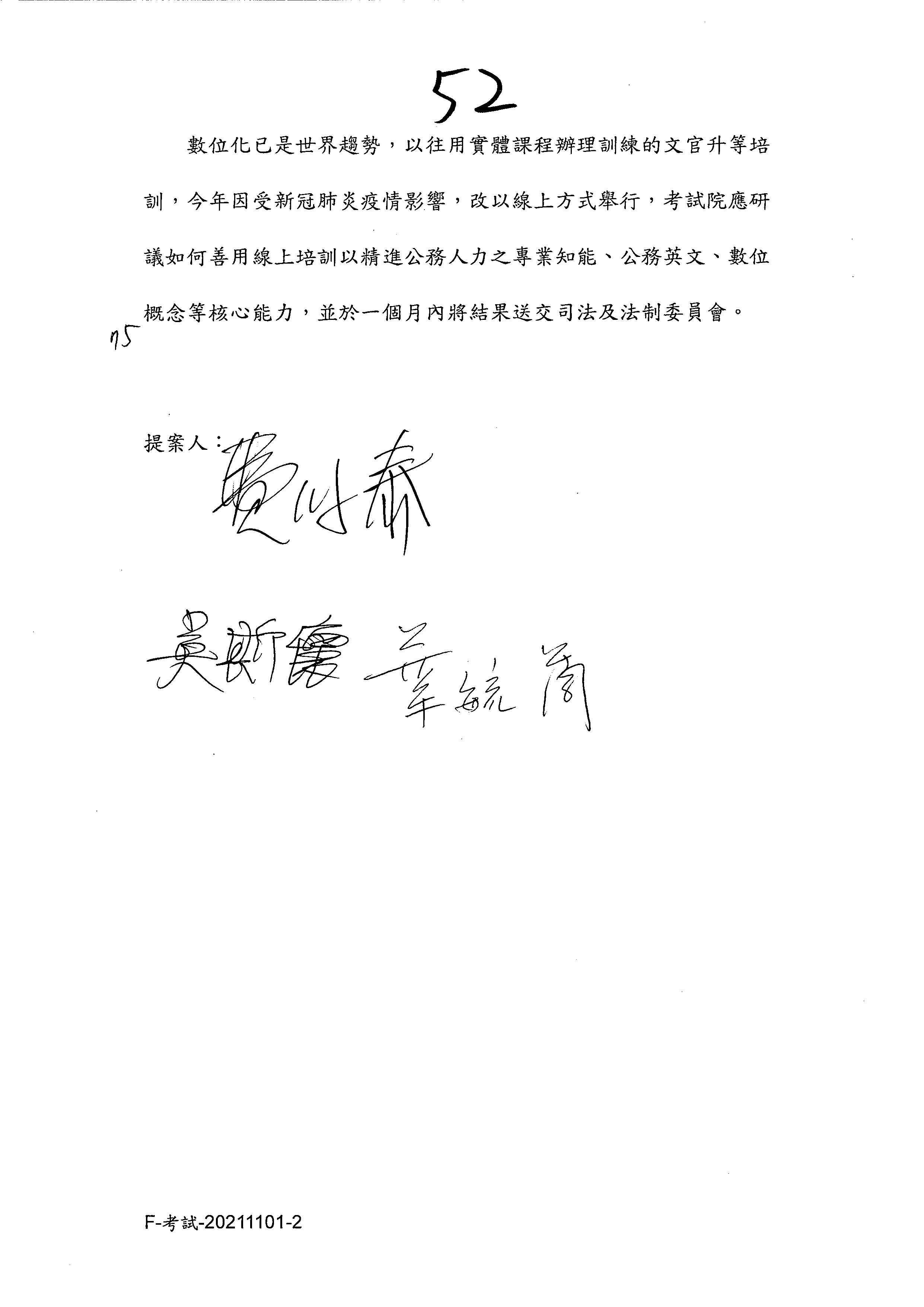 江委員永昌:如果我們公部門也可以這樣子來當作一個理由和藉口的話,公職考試來應考的人也可以覺得不需要提升啊!我為什麼要電腦化測驗、我為什麼要線上作答?