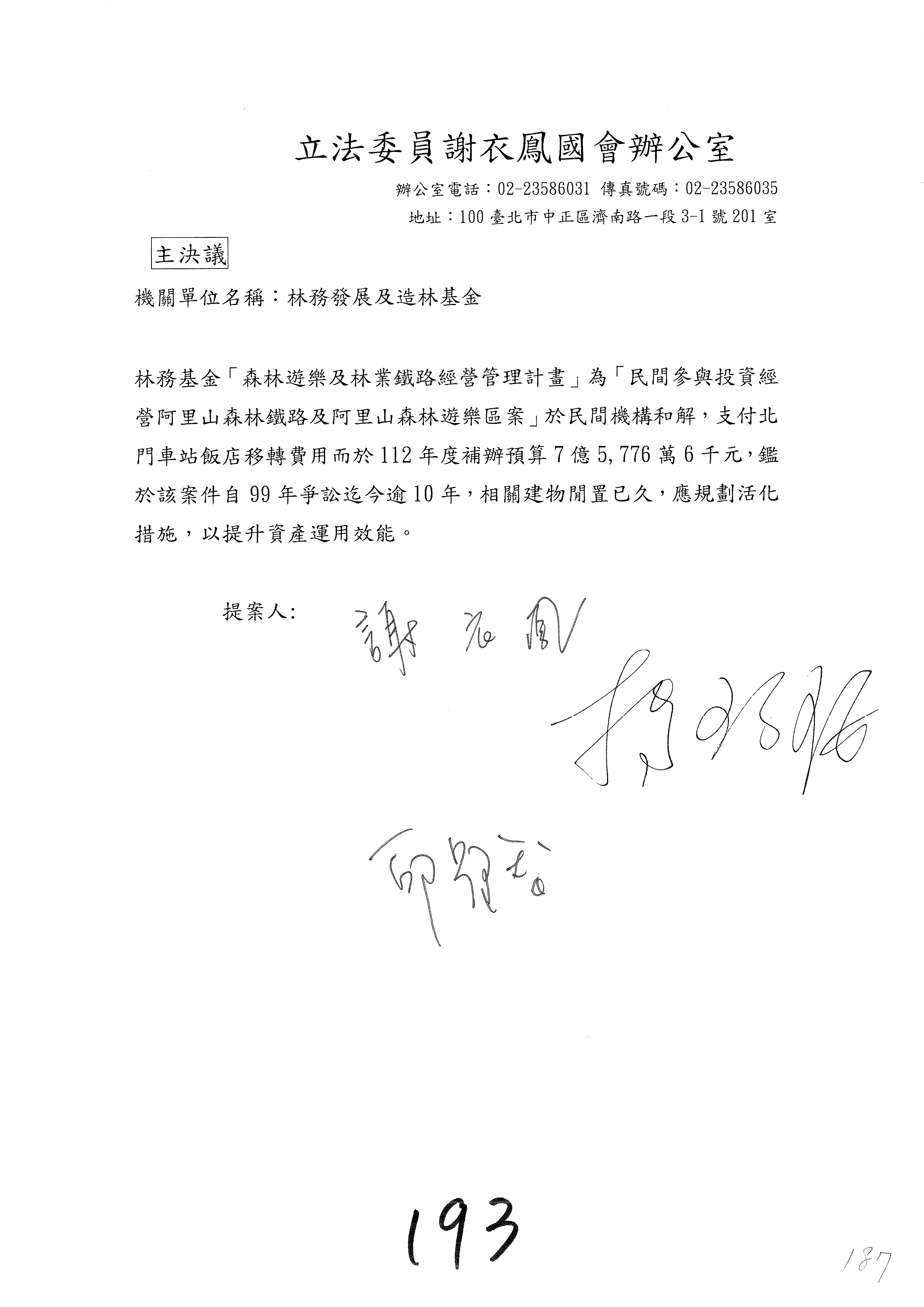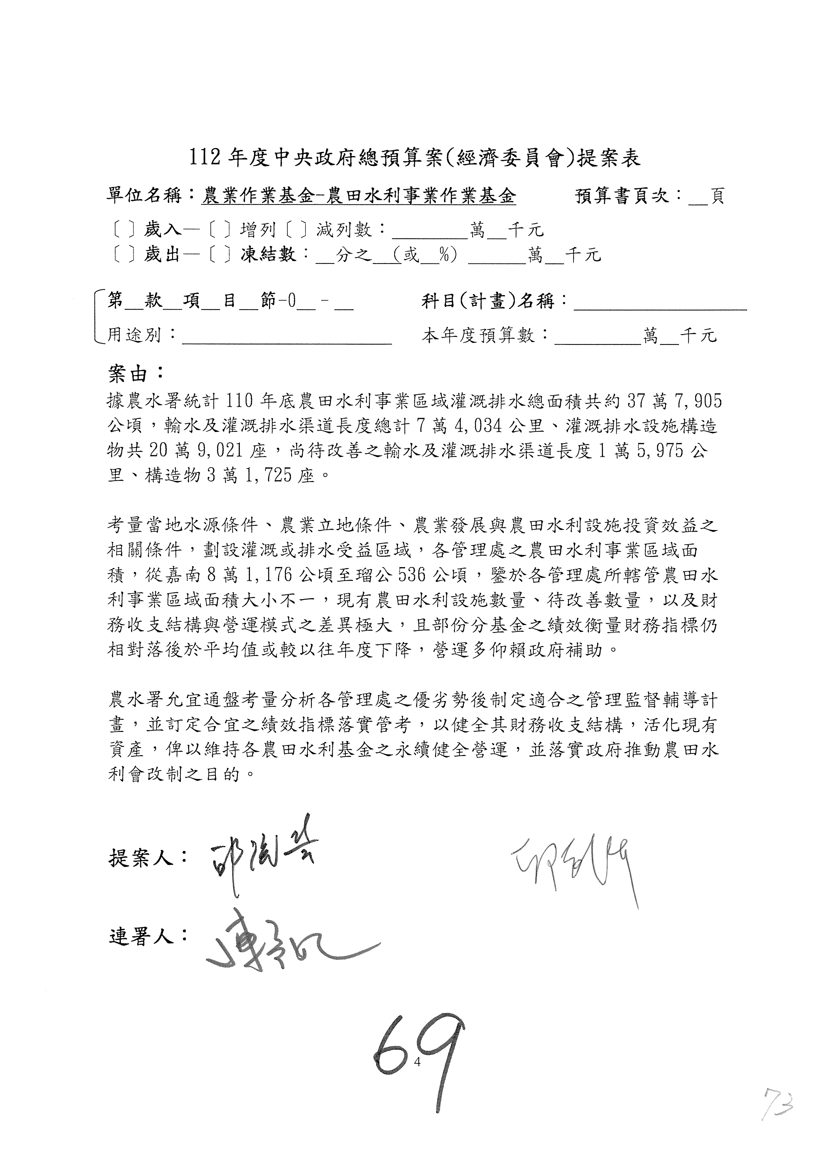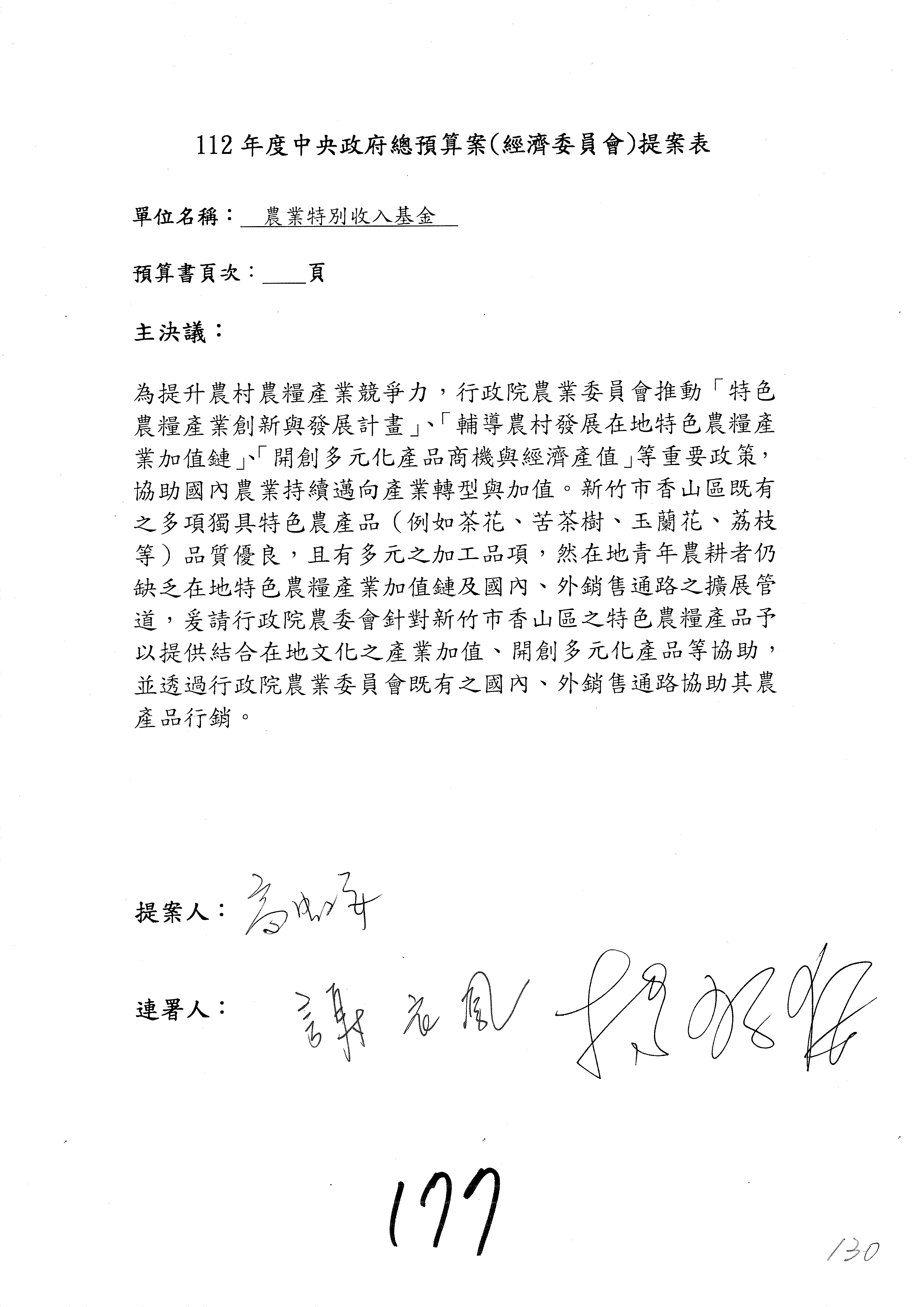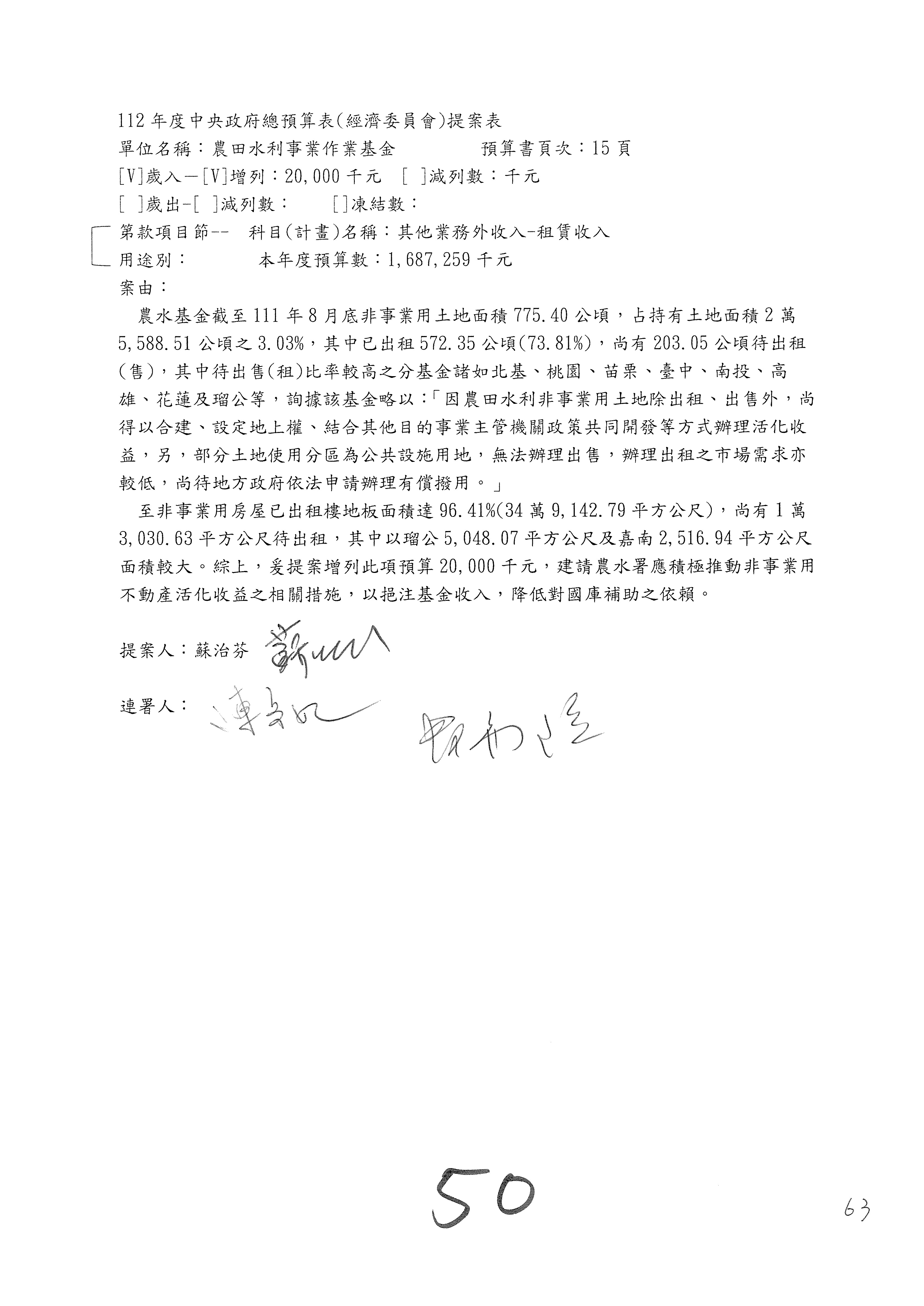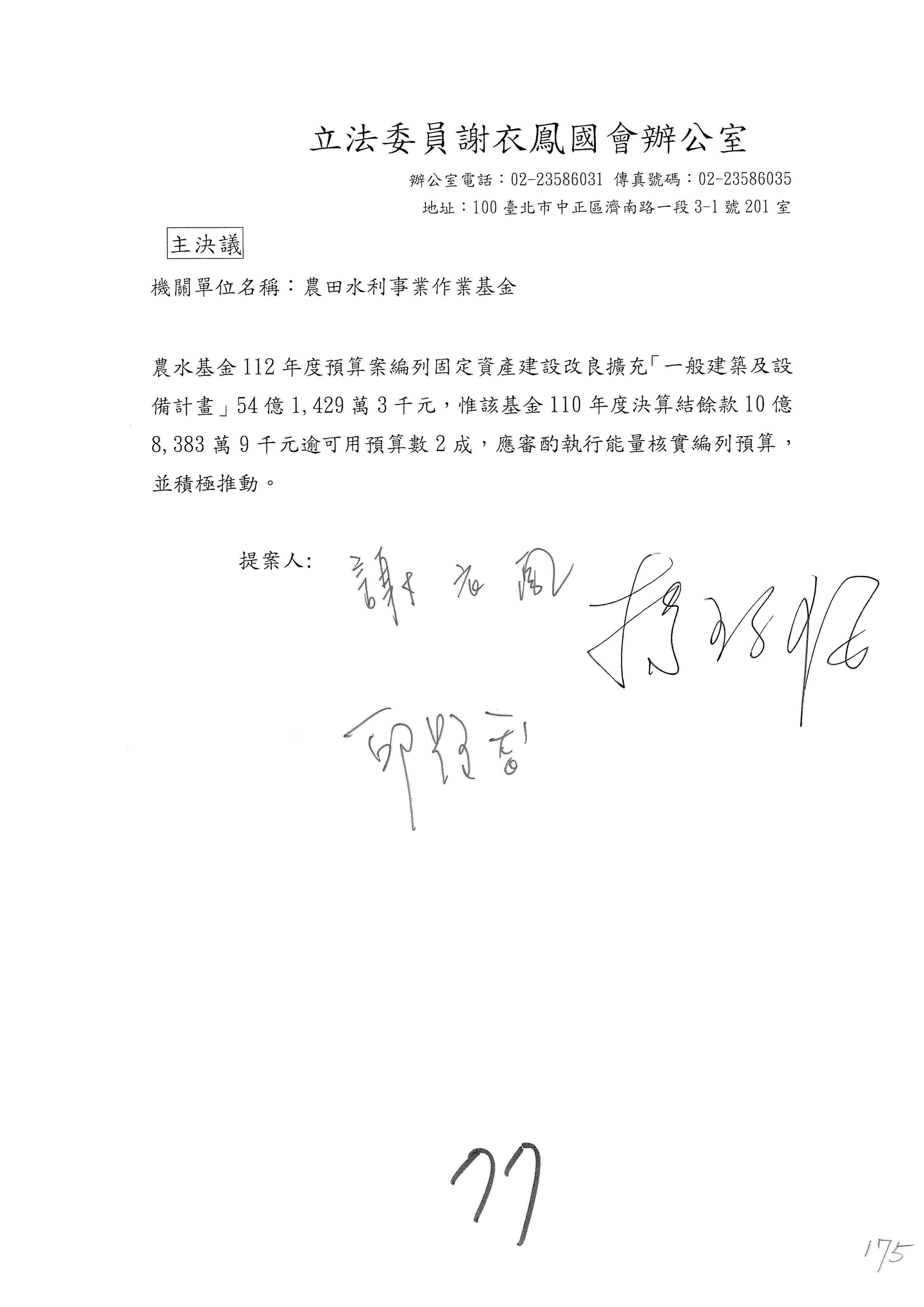 第153案到第168案,農村再生基金凍結2,000萬元,提出書面報告後始得動支。