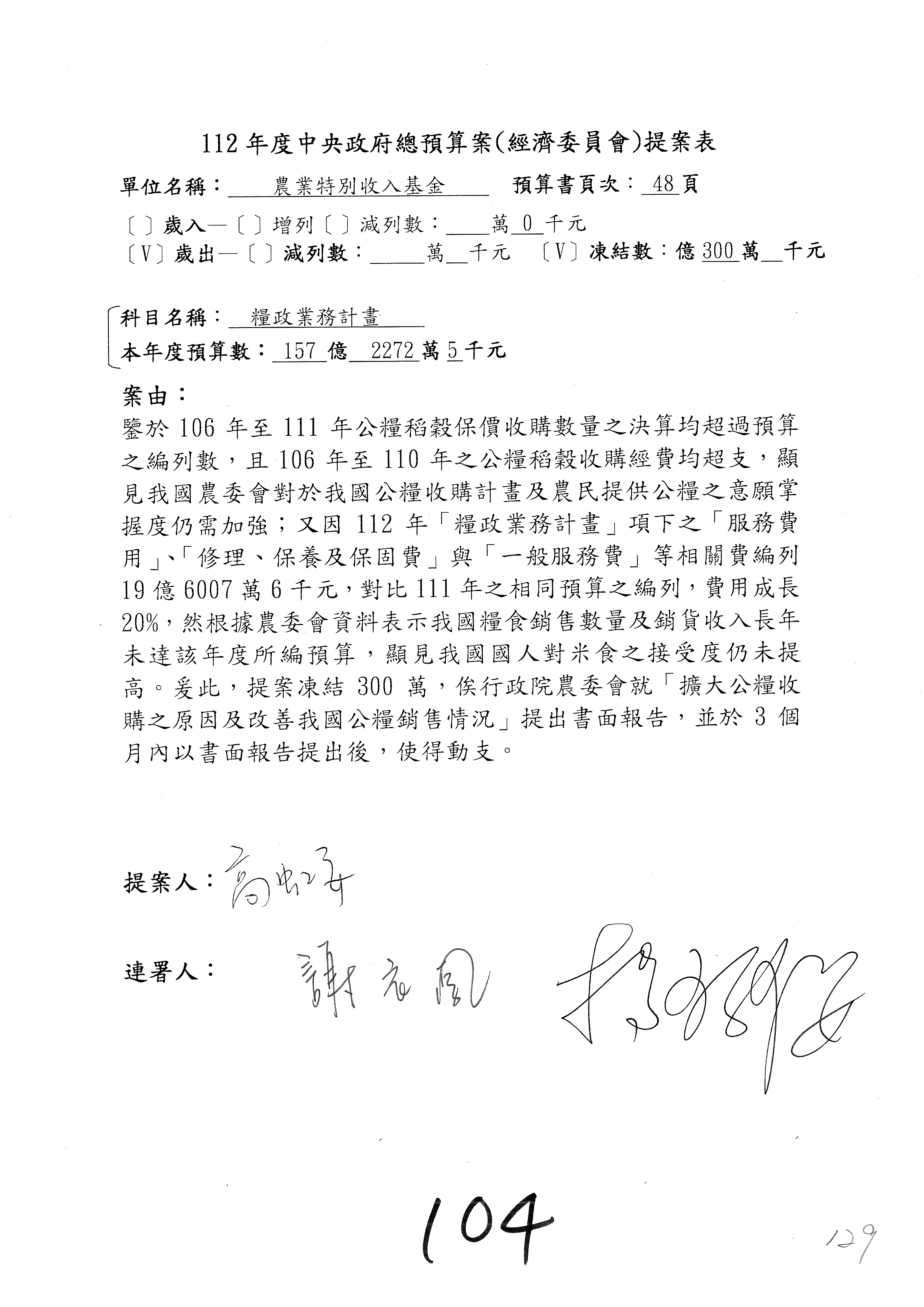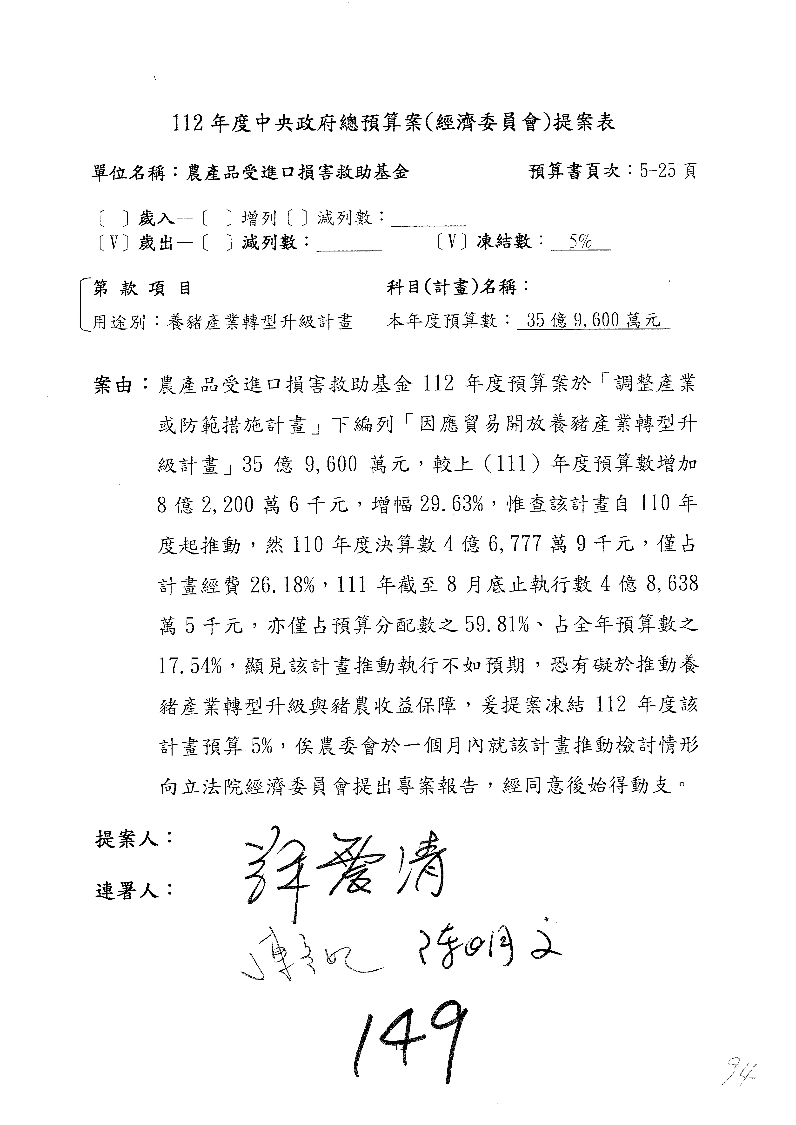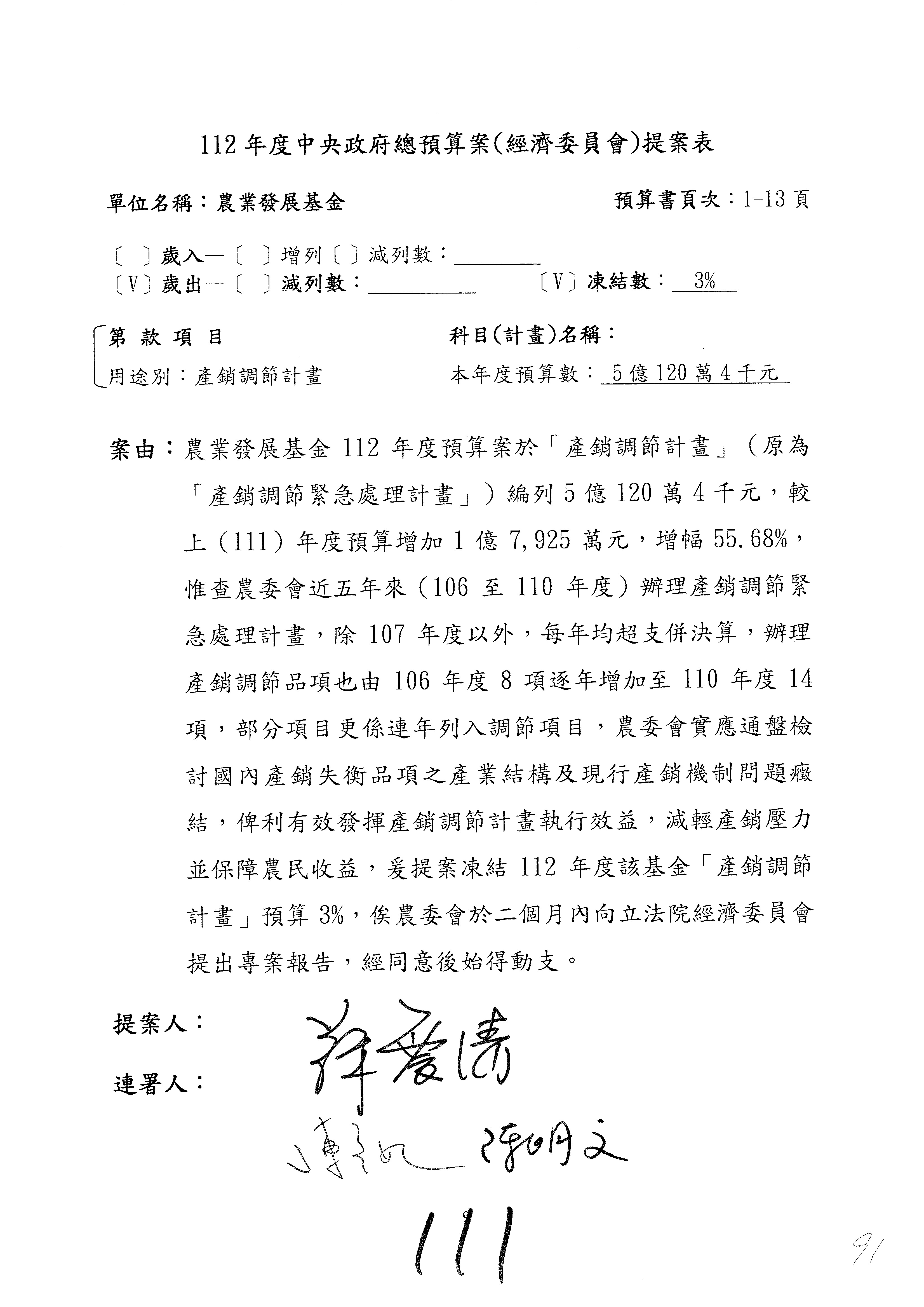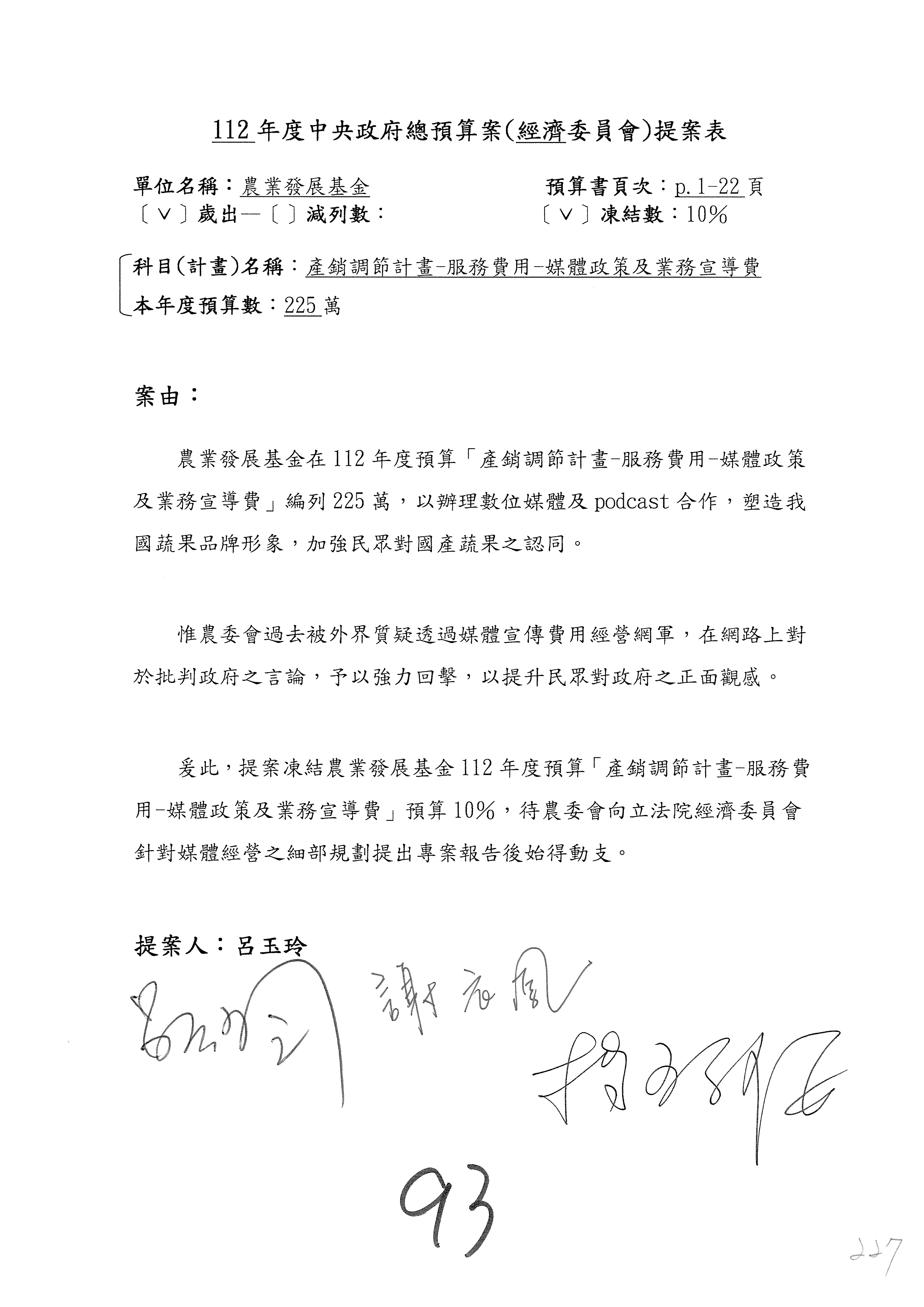 第95案預算照列。