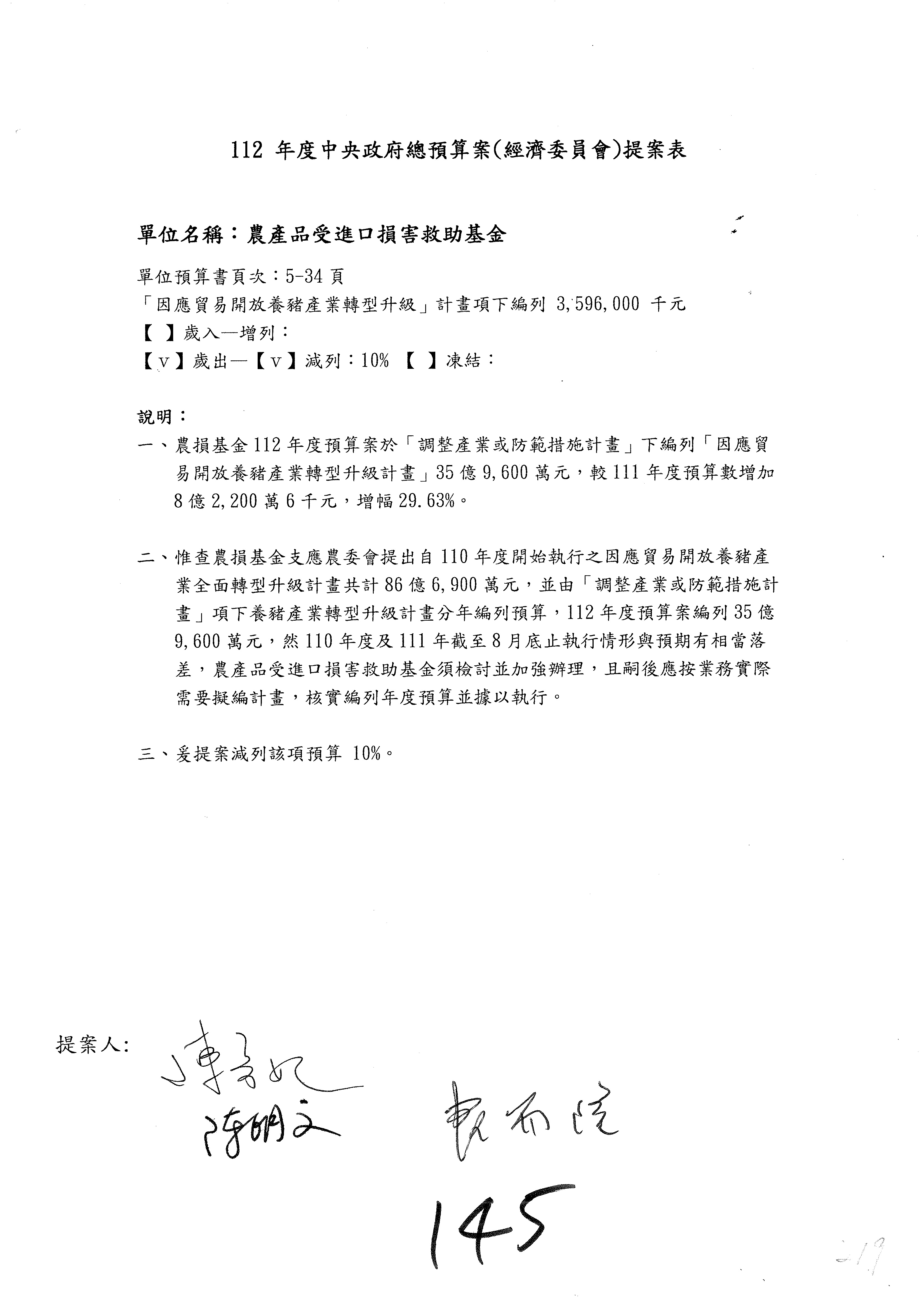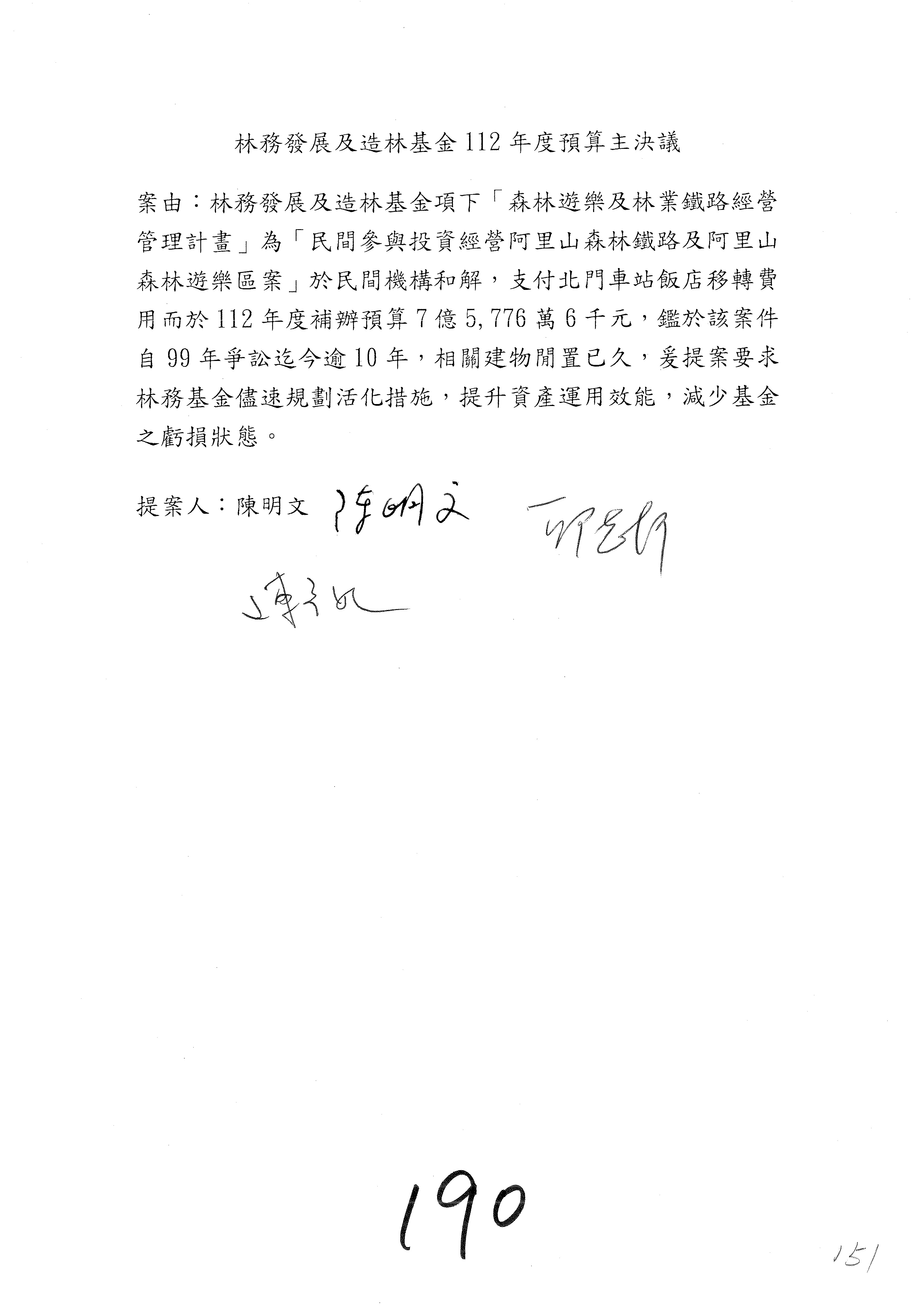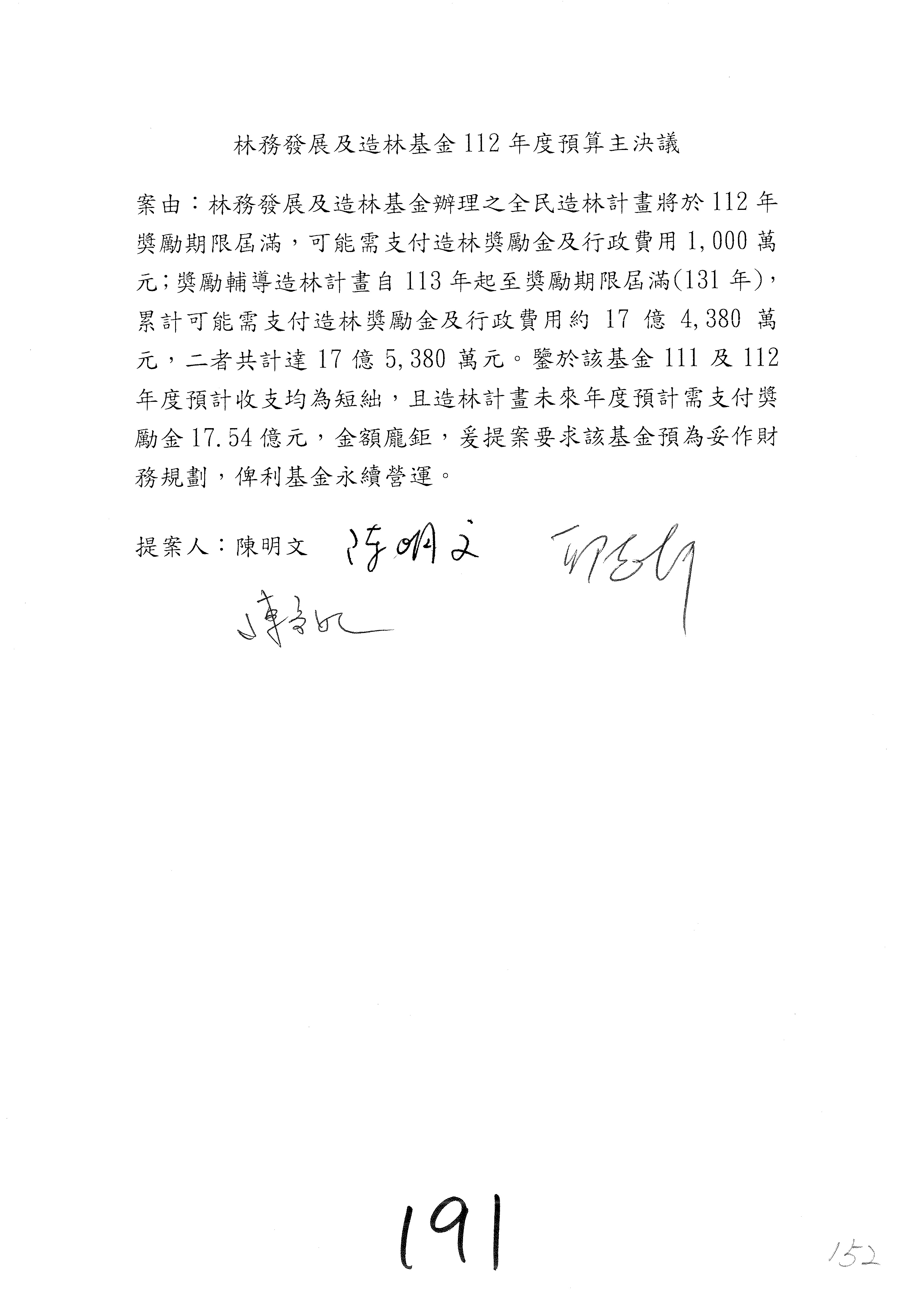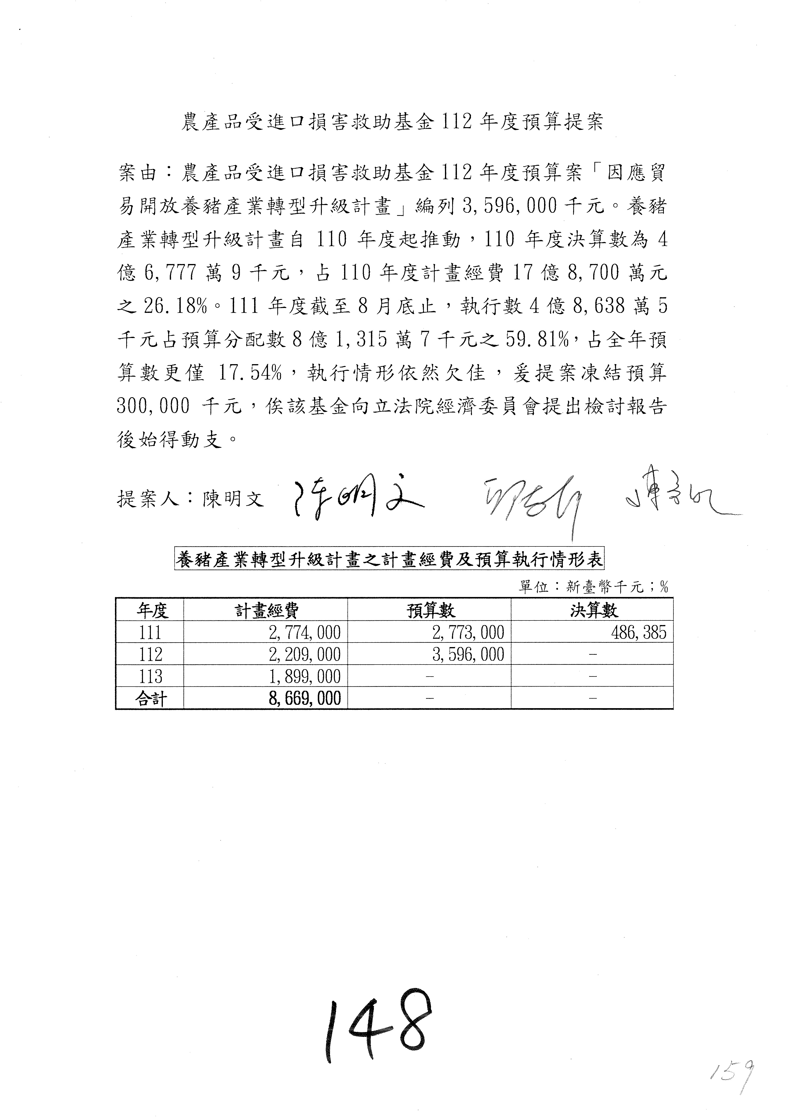 第140案至第152案預算照列,其中第142案、第147案改主決議。