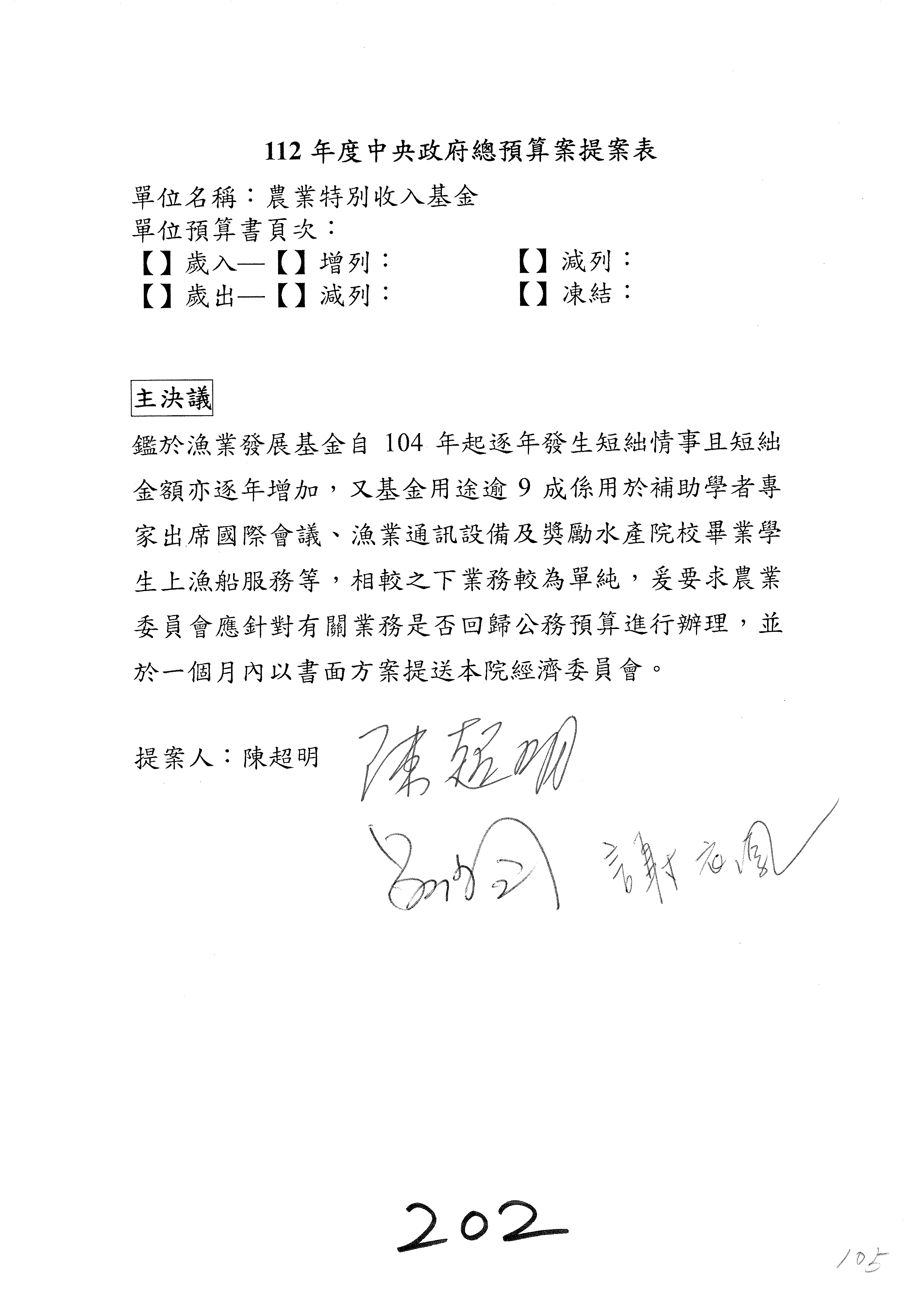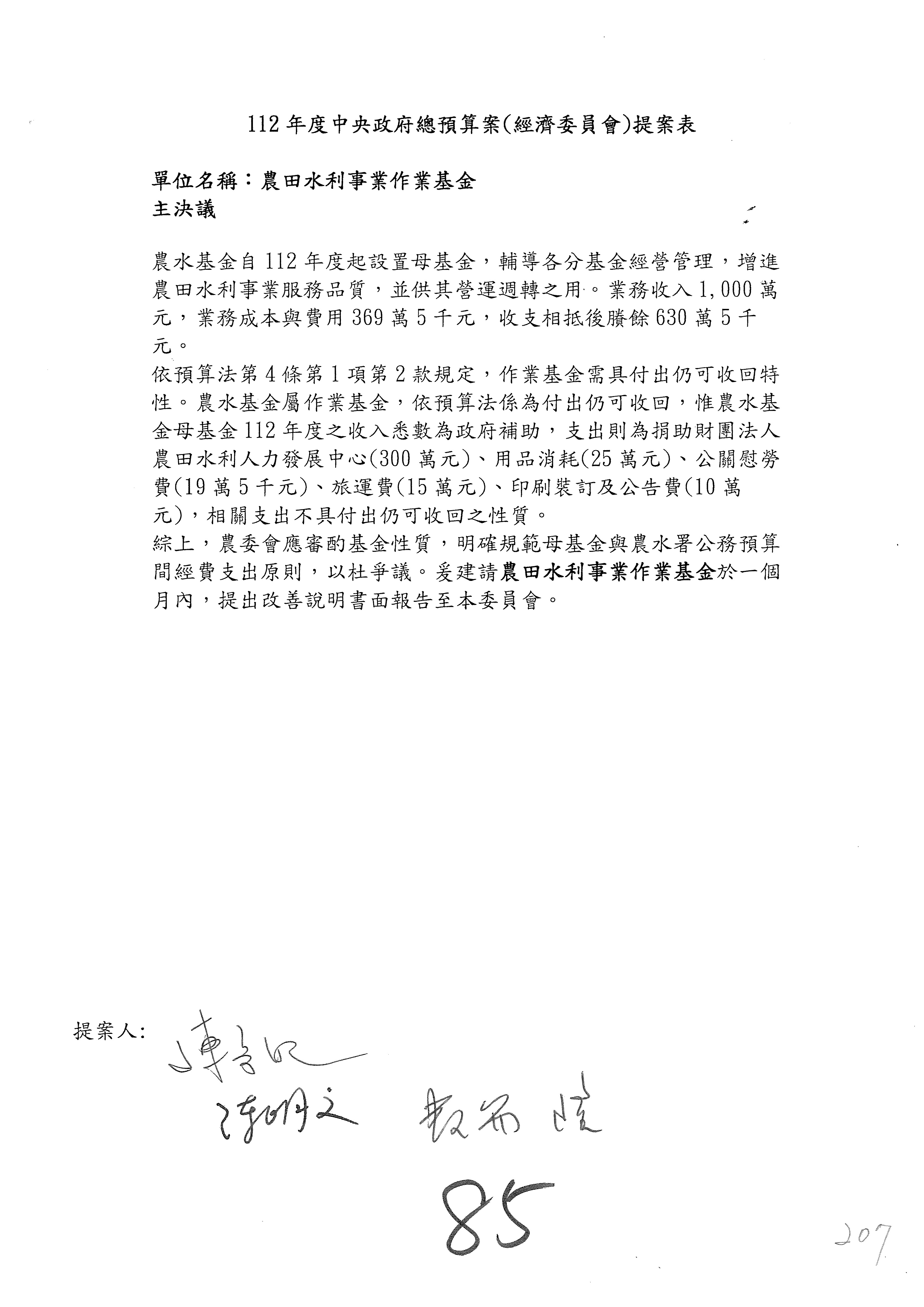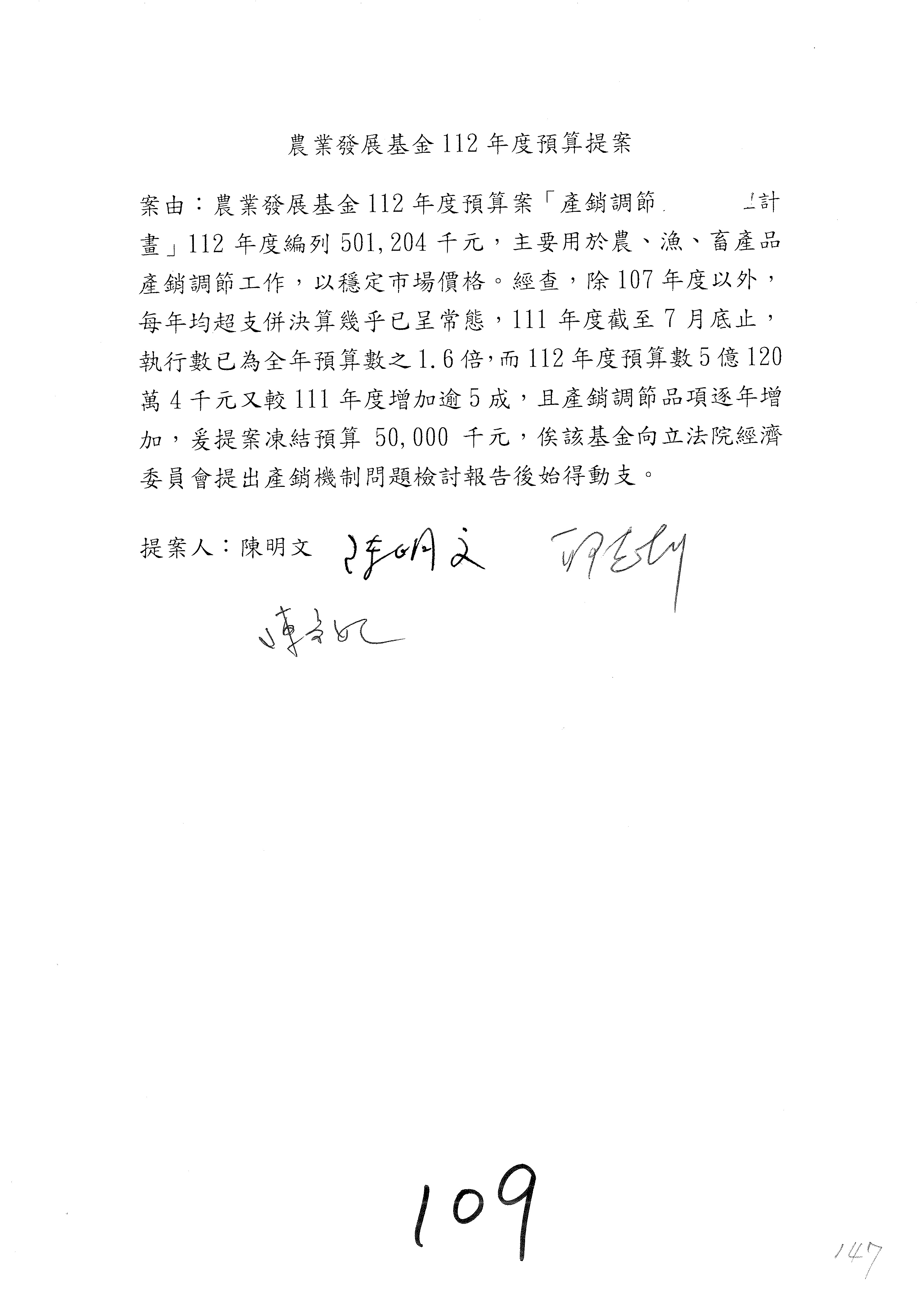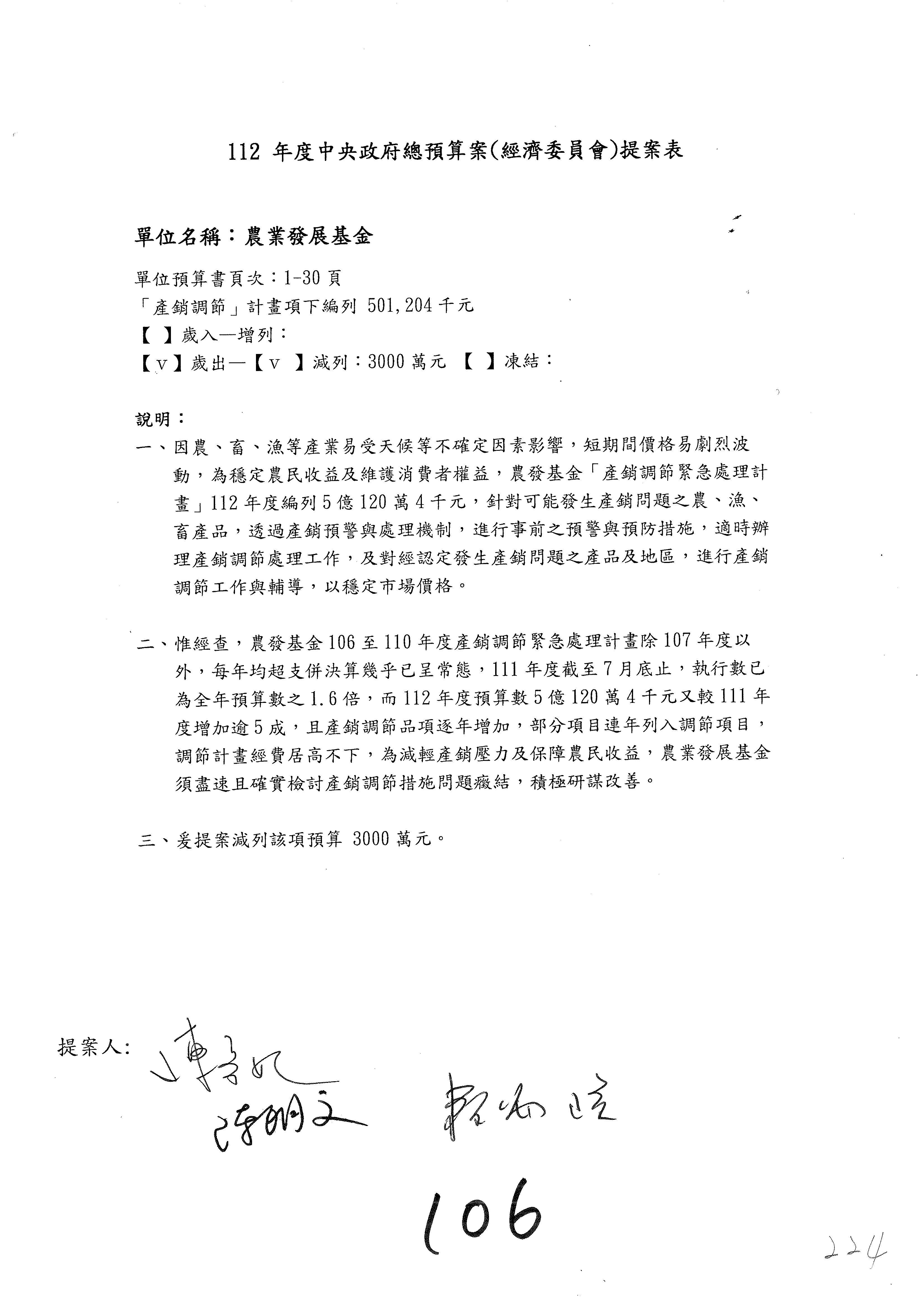 第106案至第112案預算照列,其中第107案、第108案改主決議。