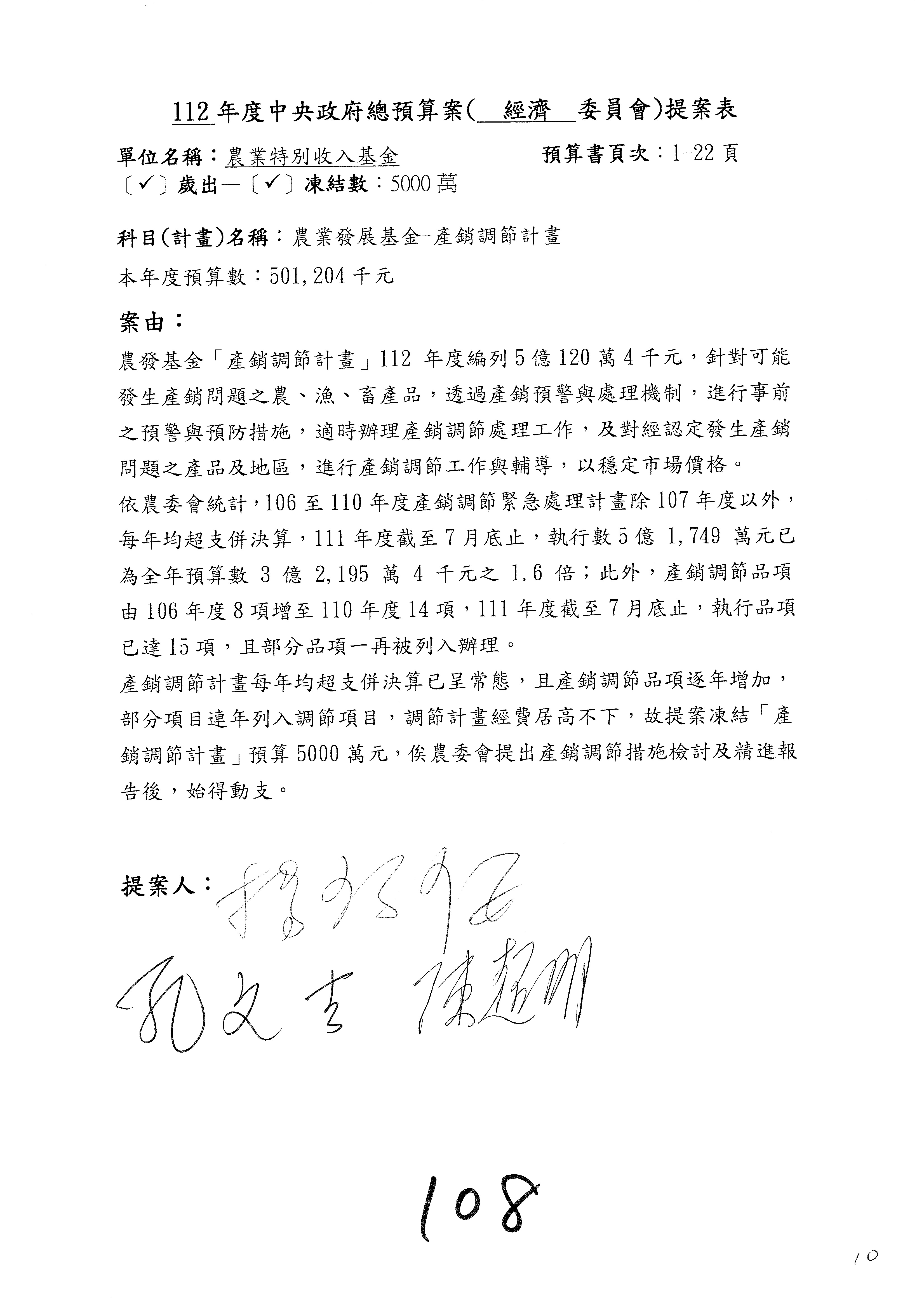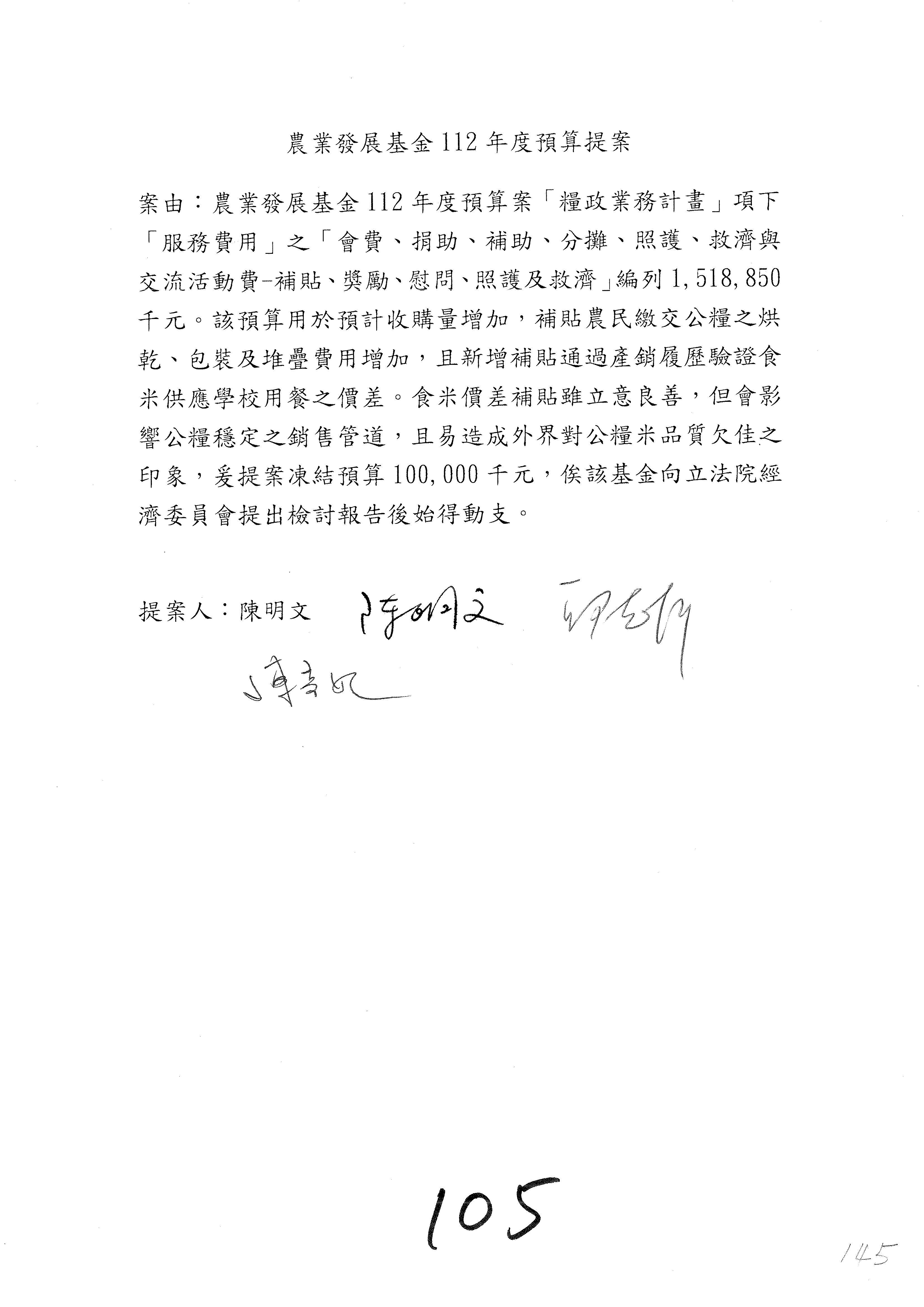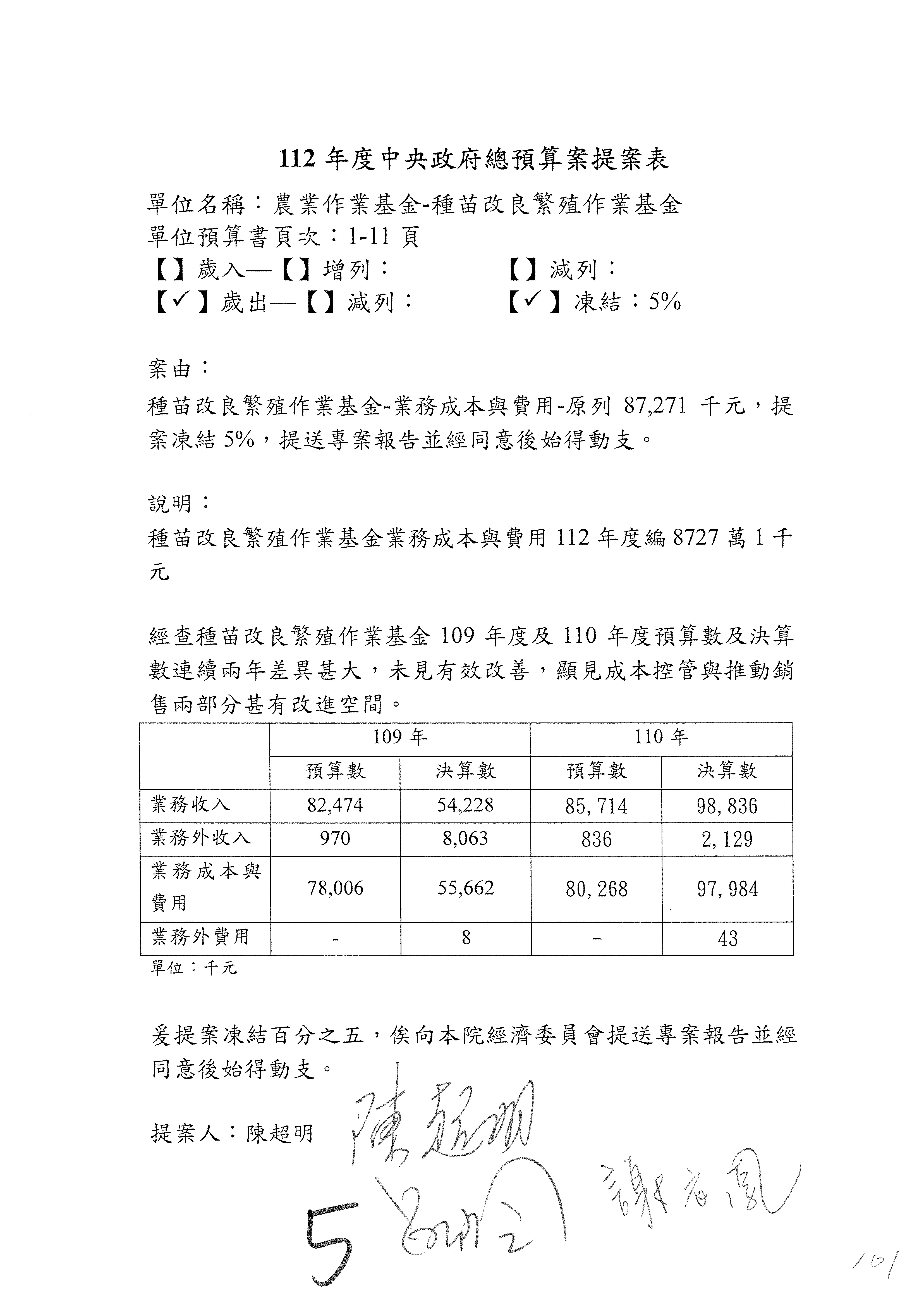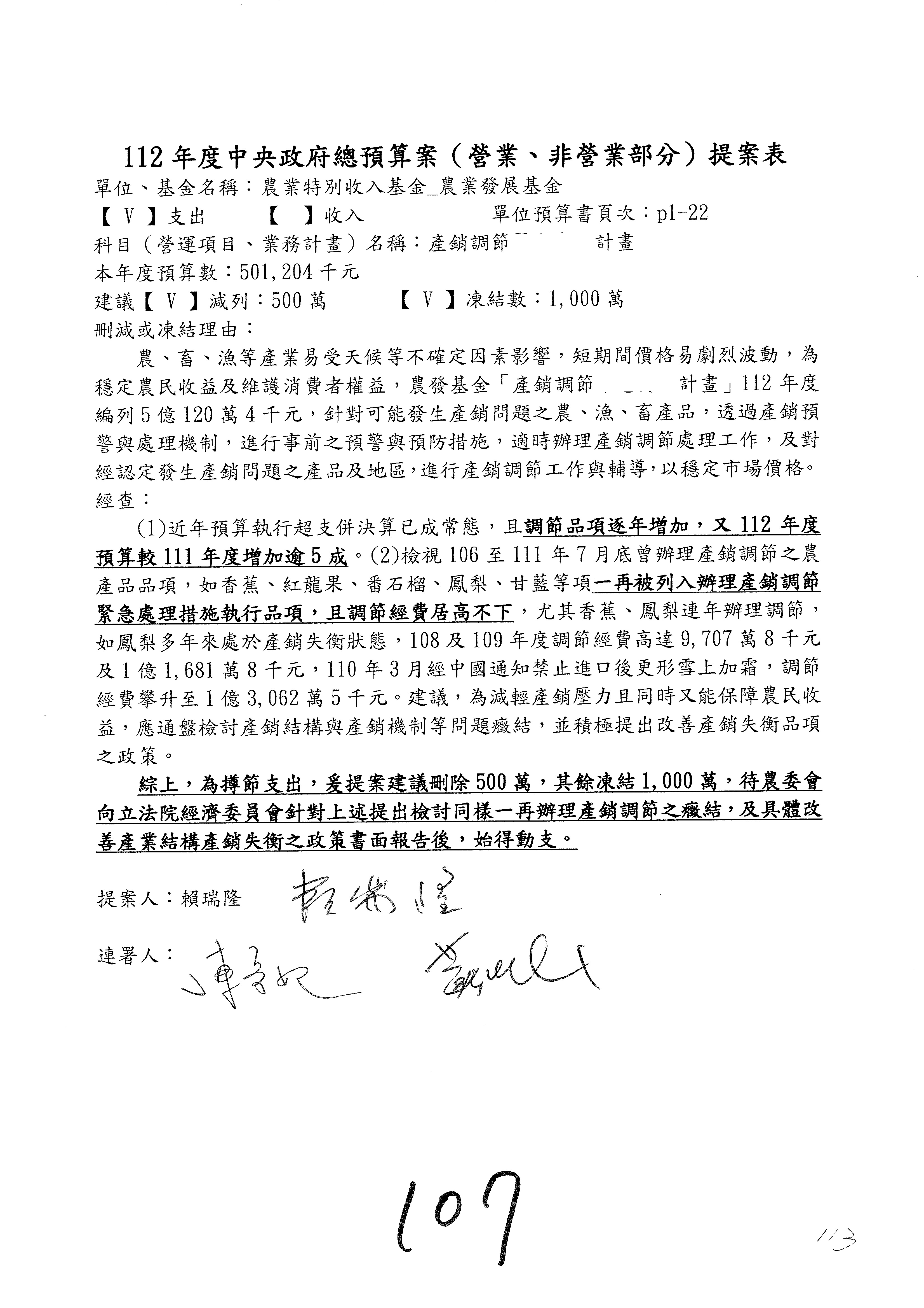 第106案至第112案預算照列,其中第107案、第108案改主決議。