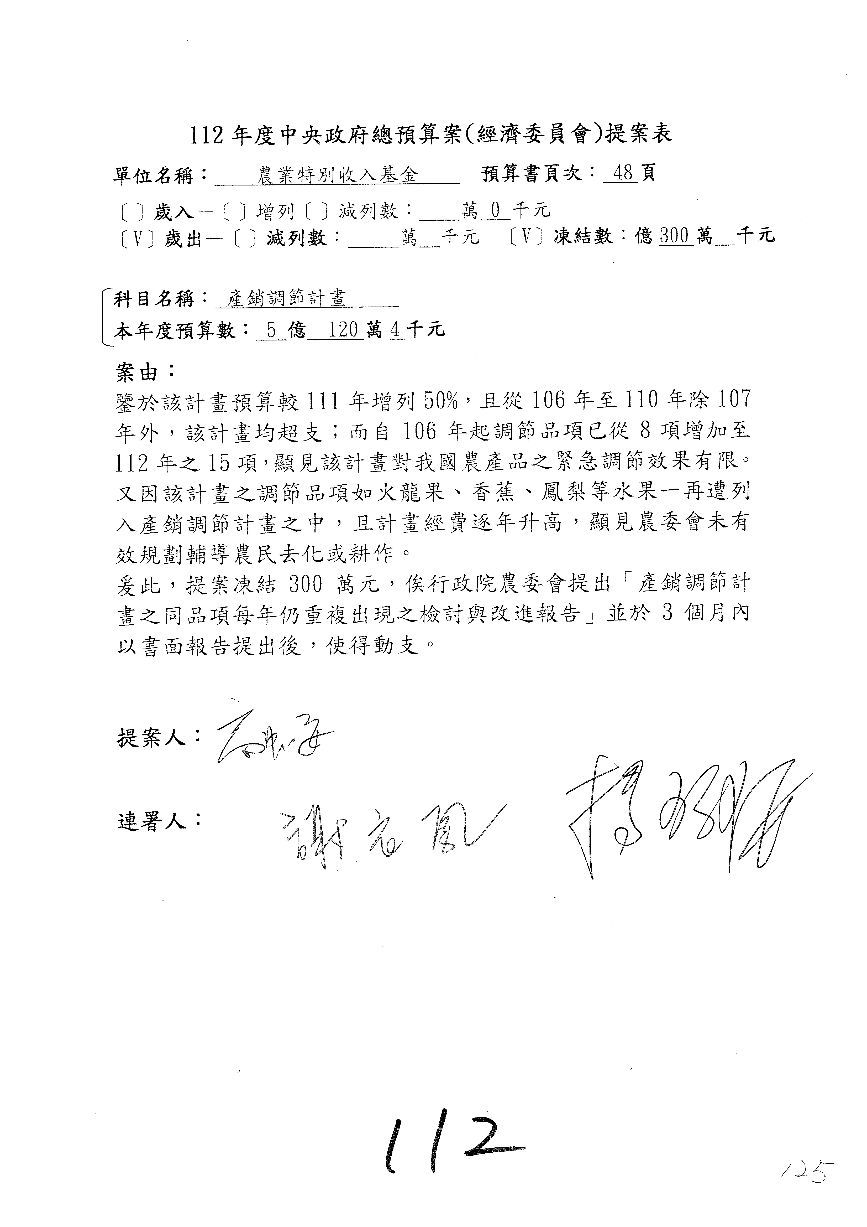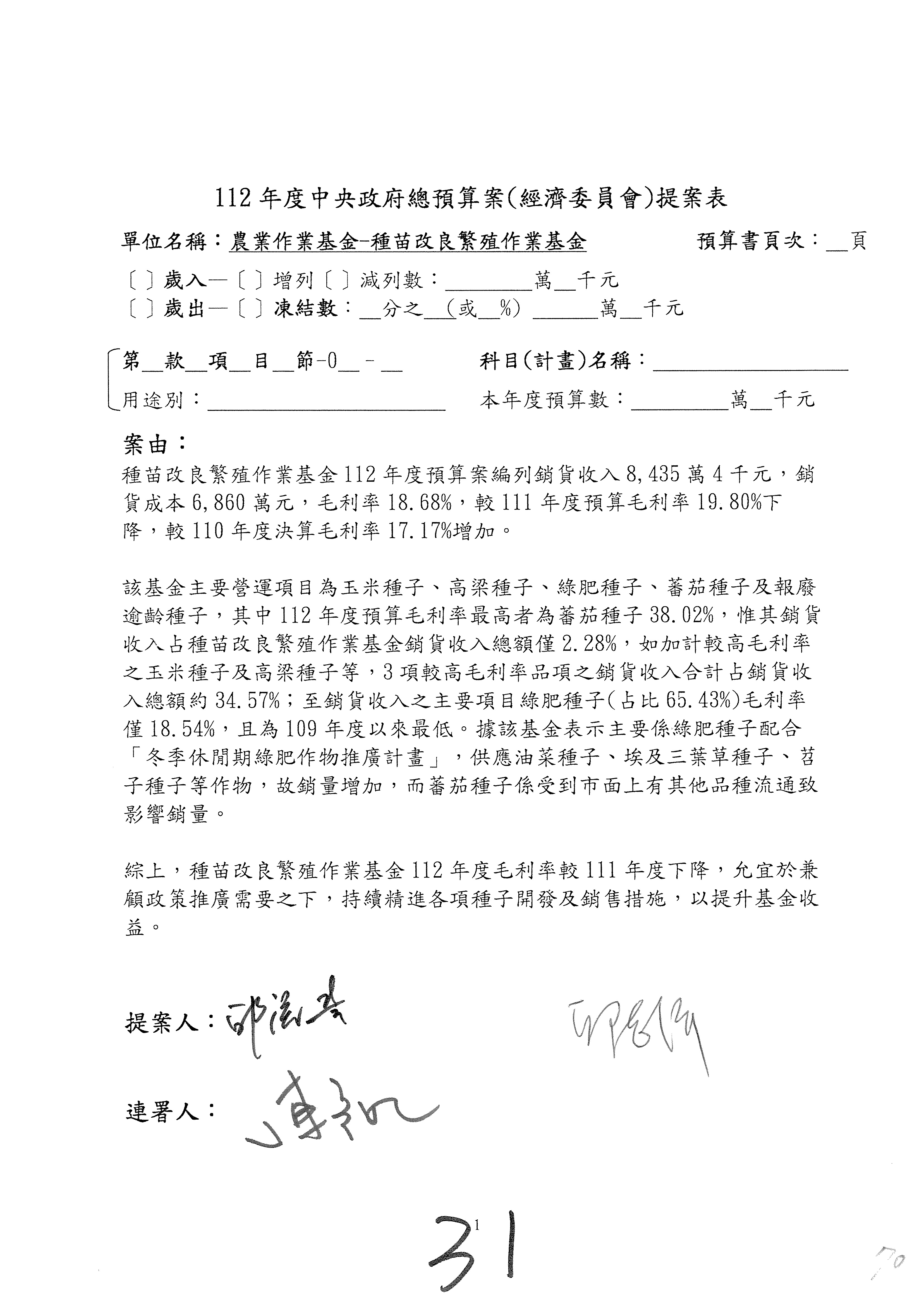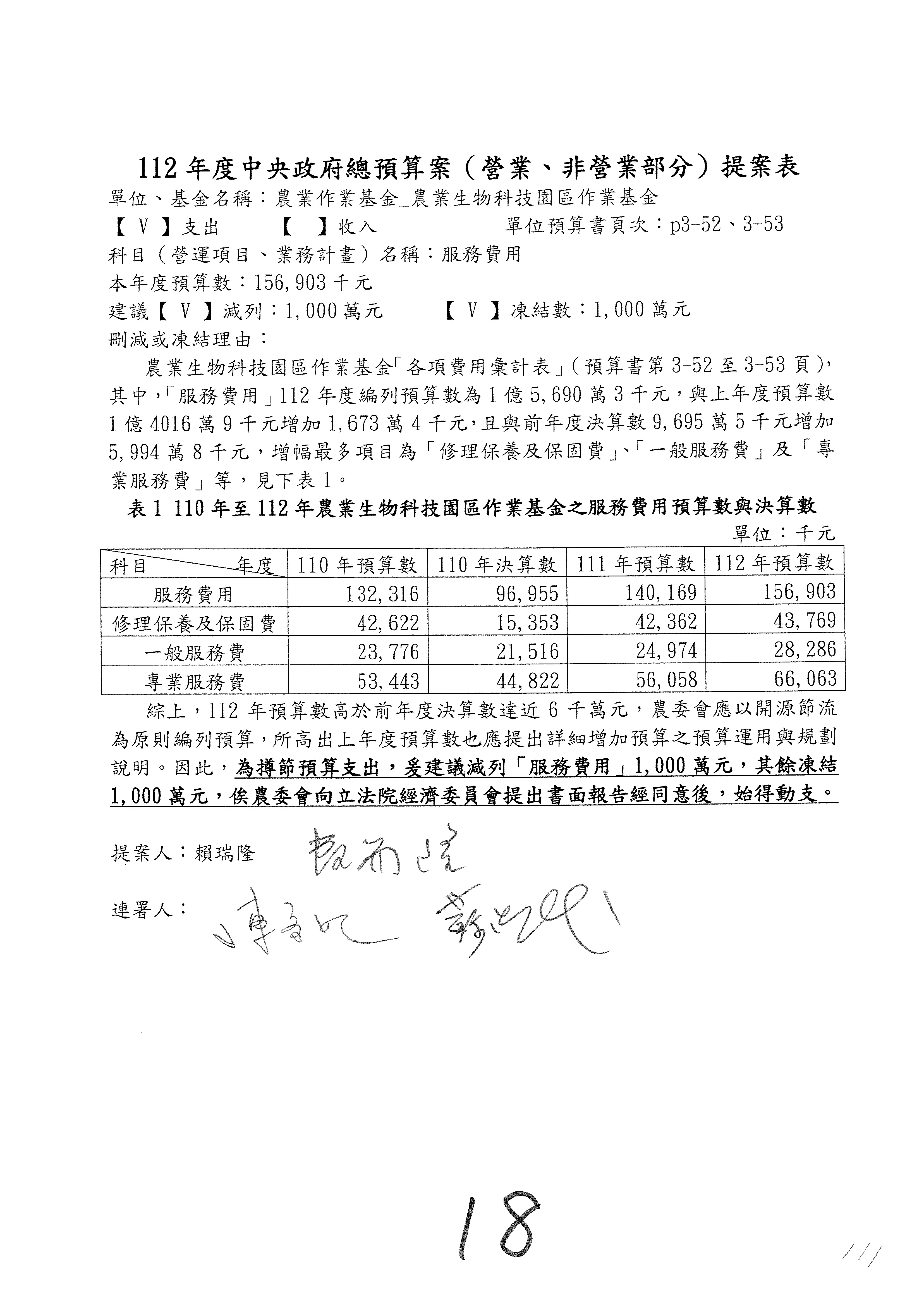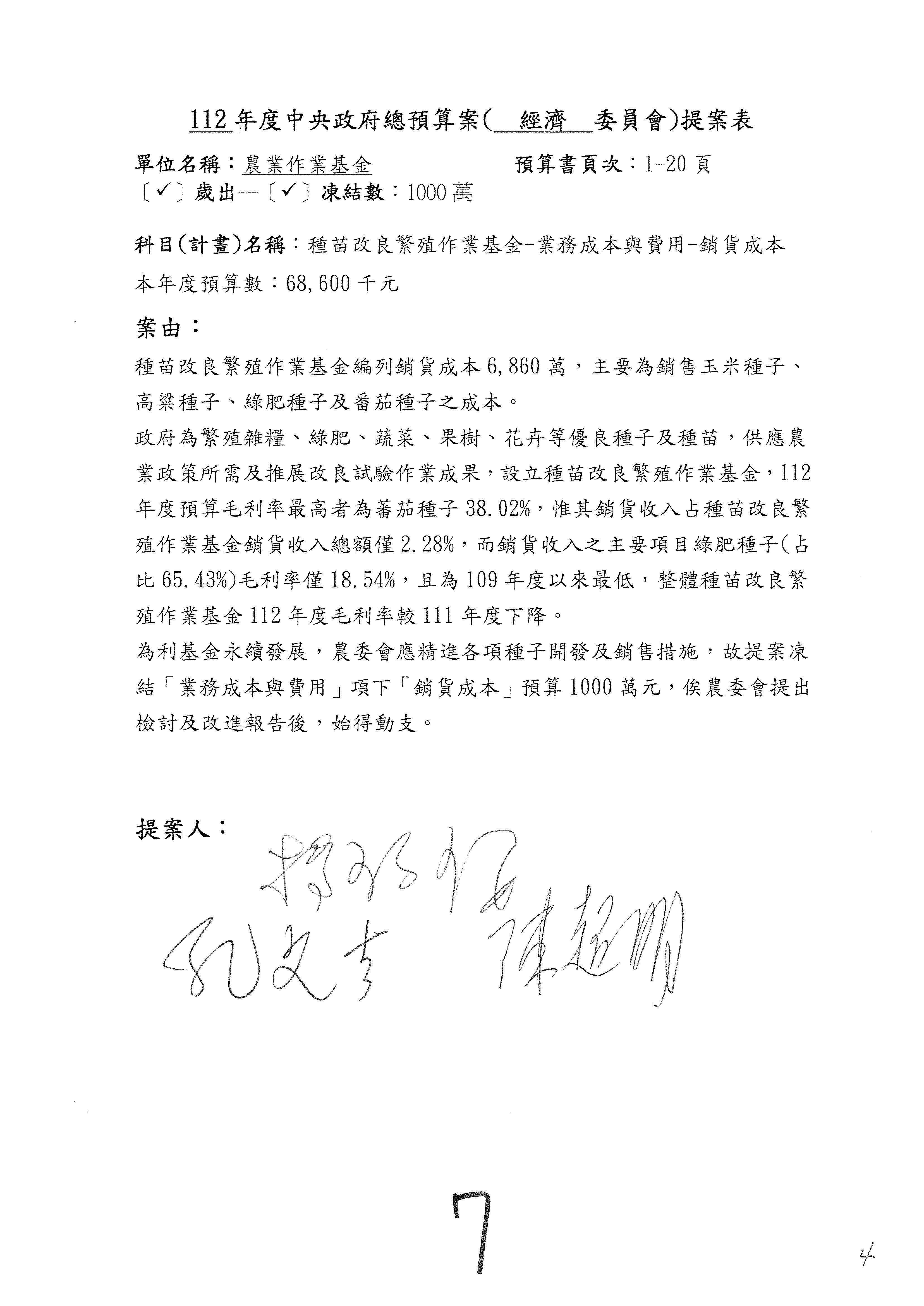 第106案至第112案預算照列,其中第107案、第108案改主決議。