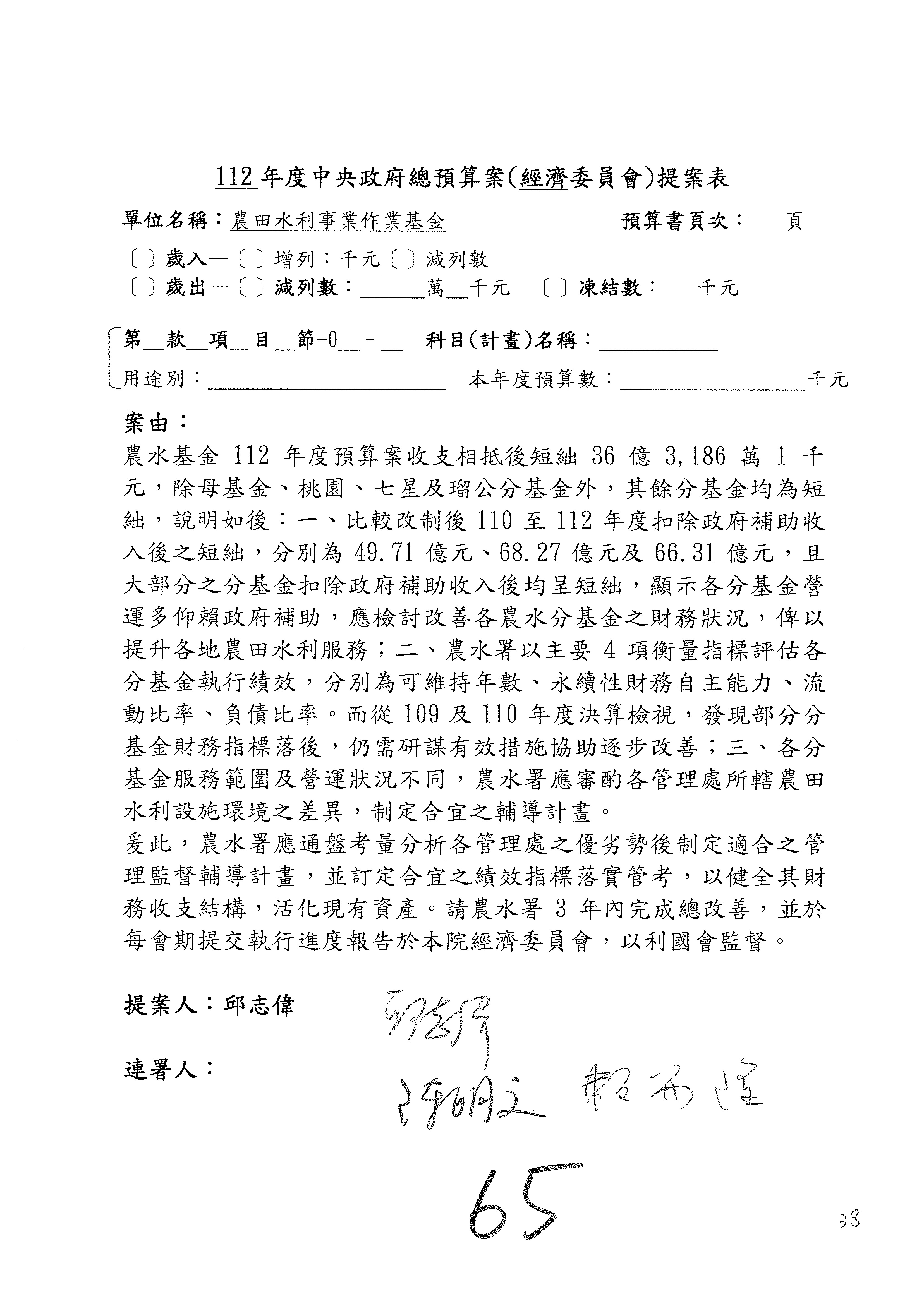 第65案修正通過。