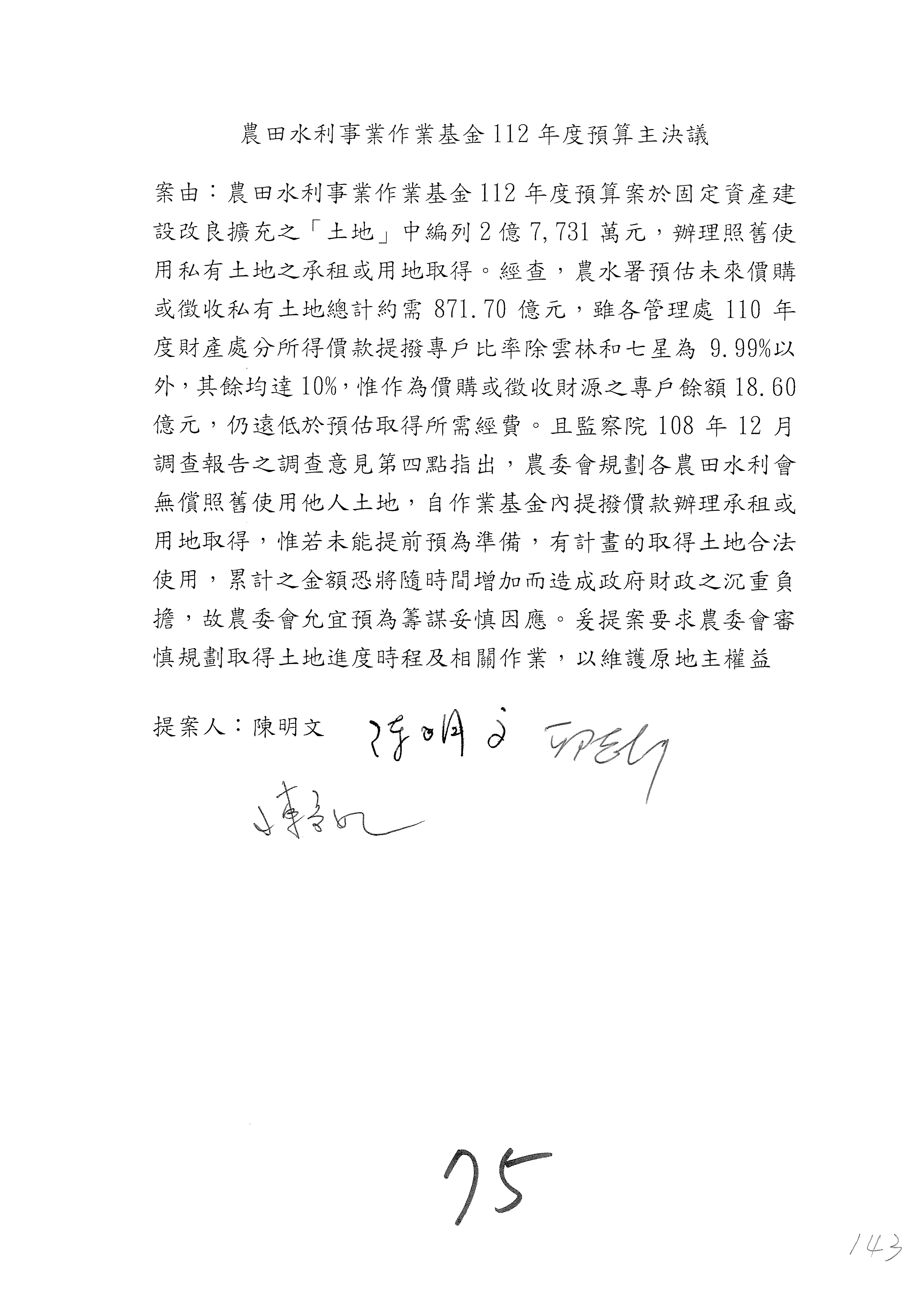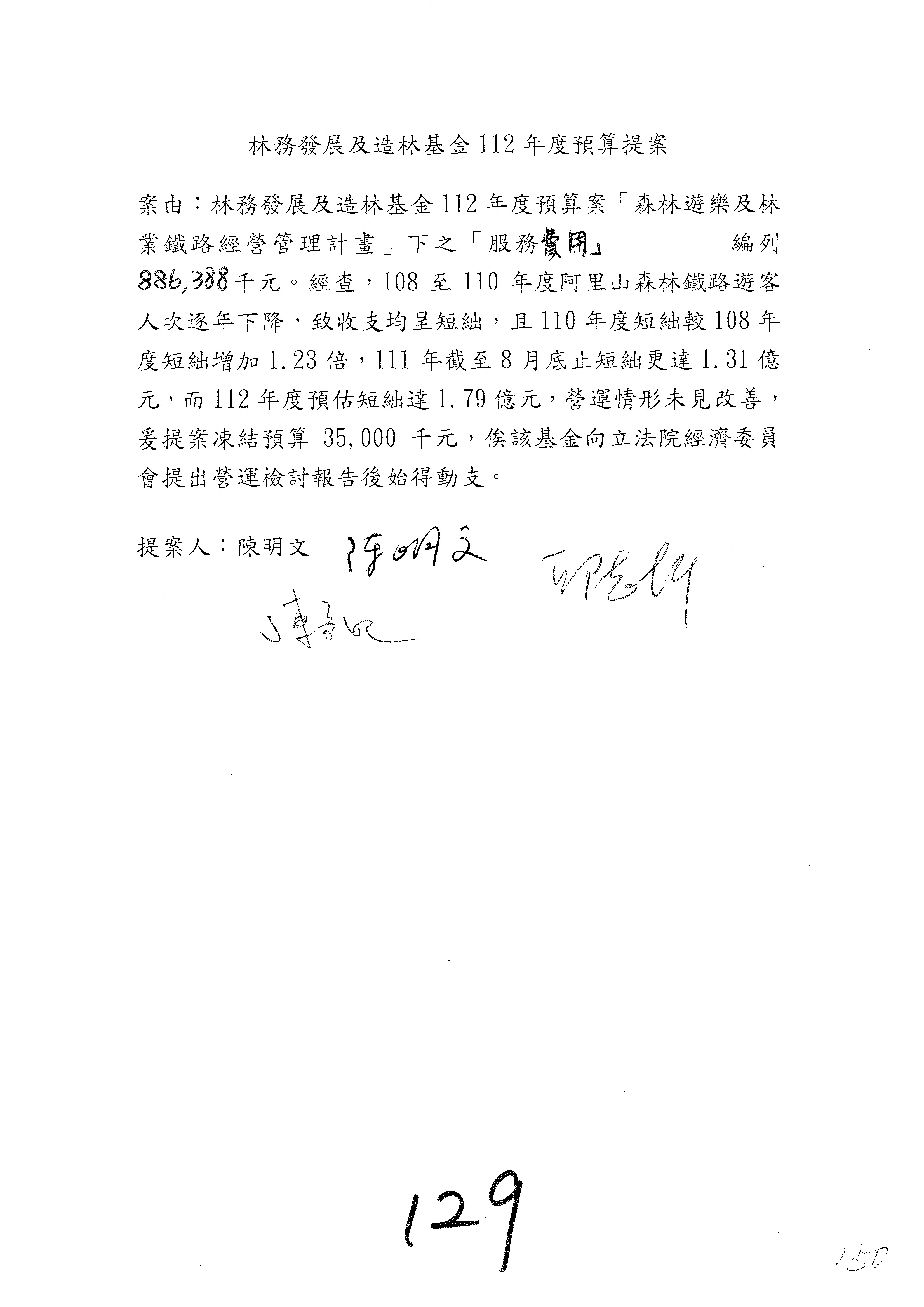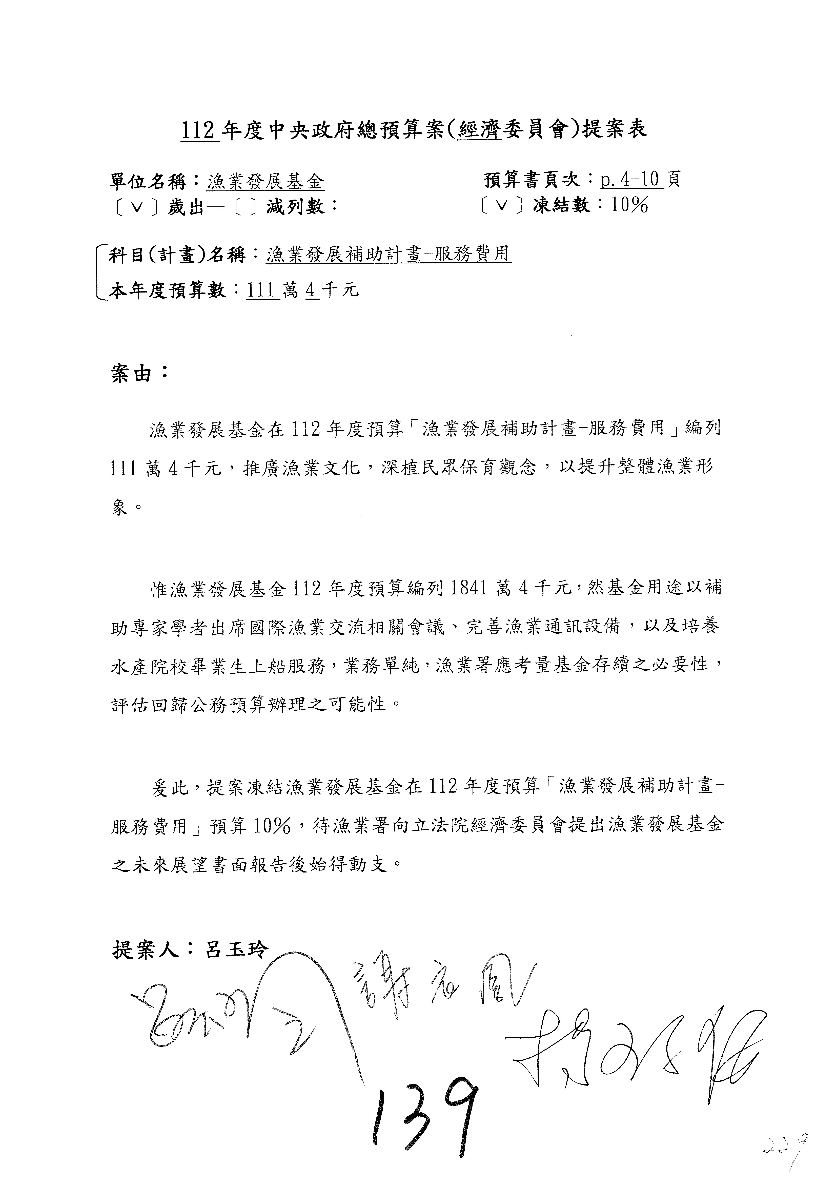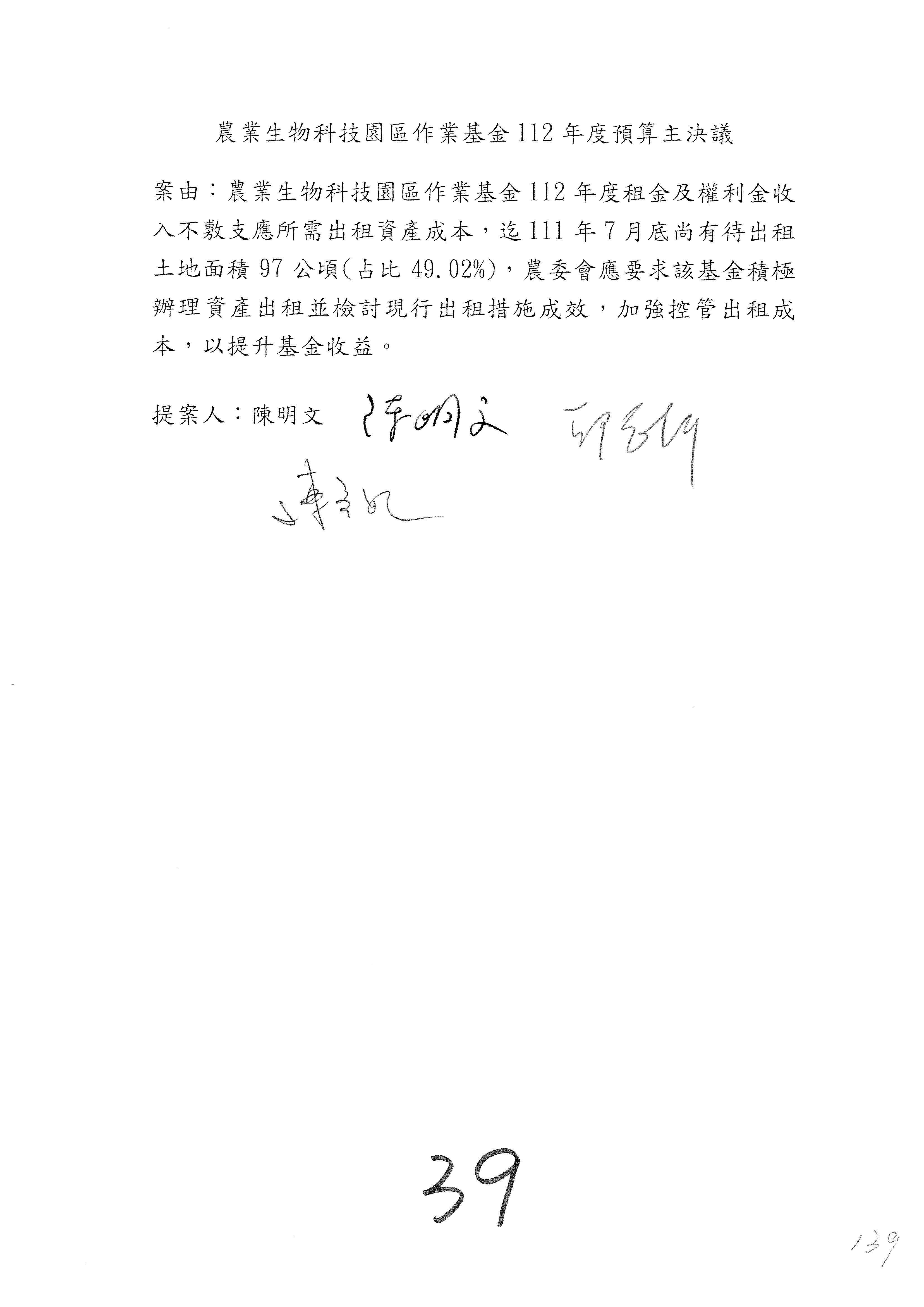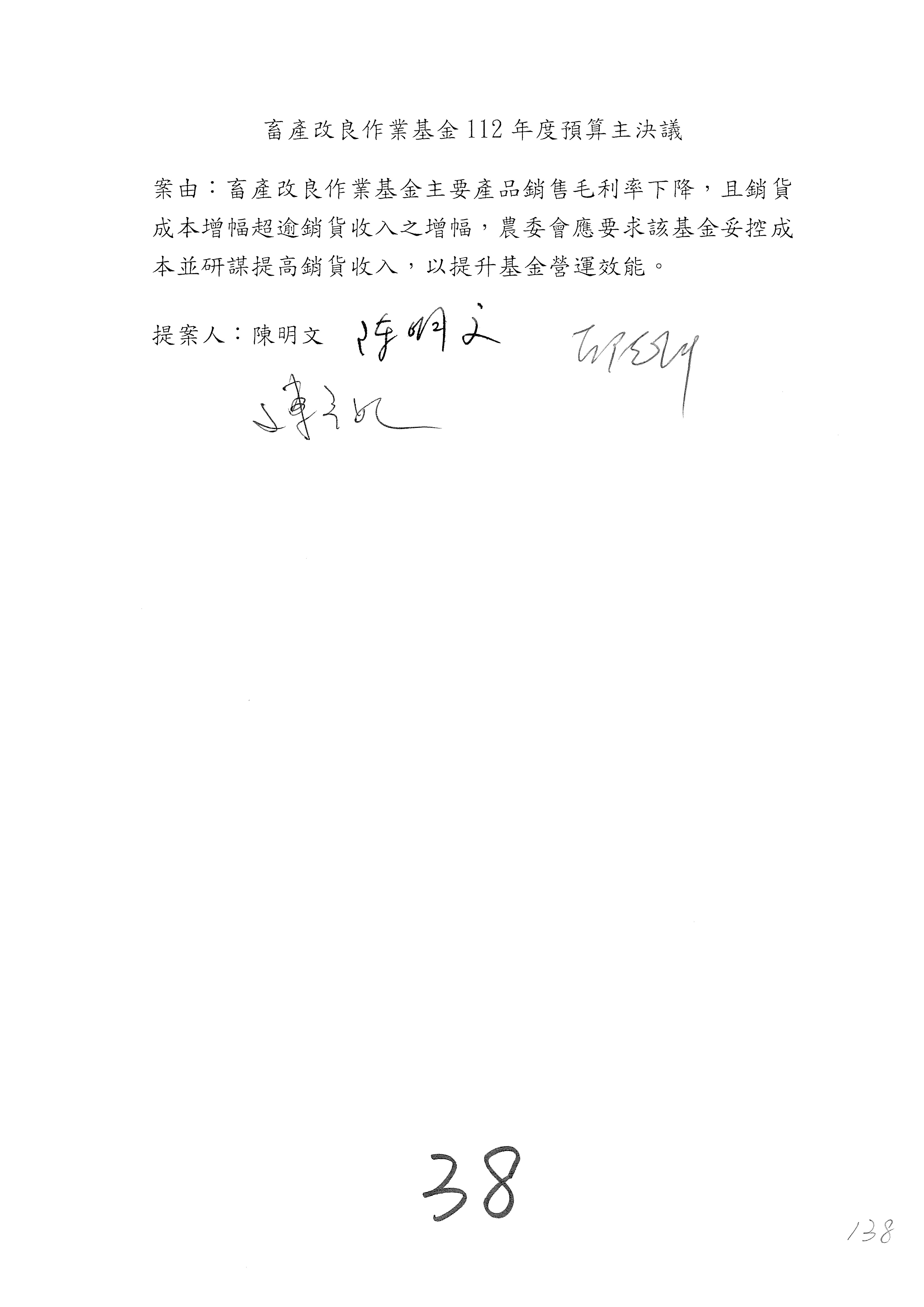 第137案到第139案預算照列,其中第138案改主決議。