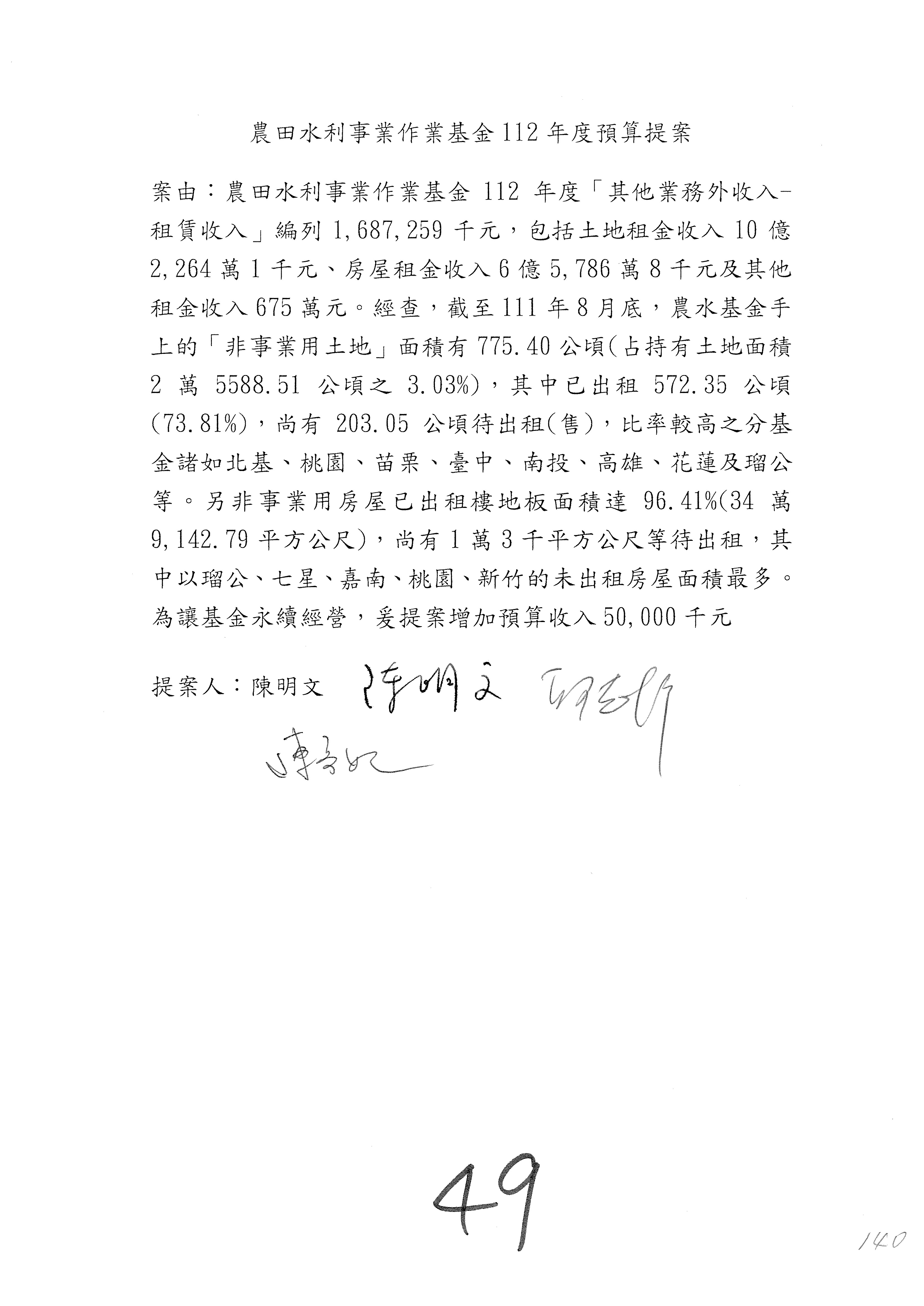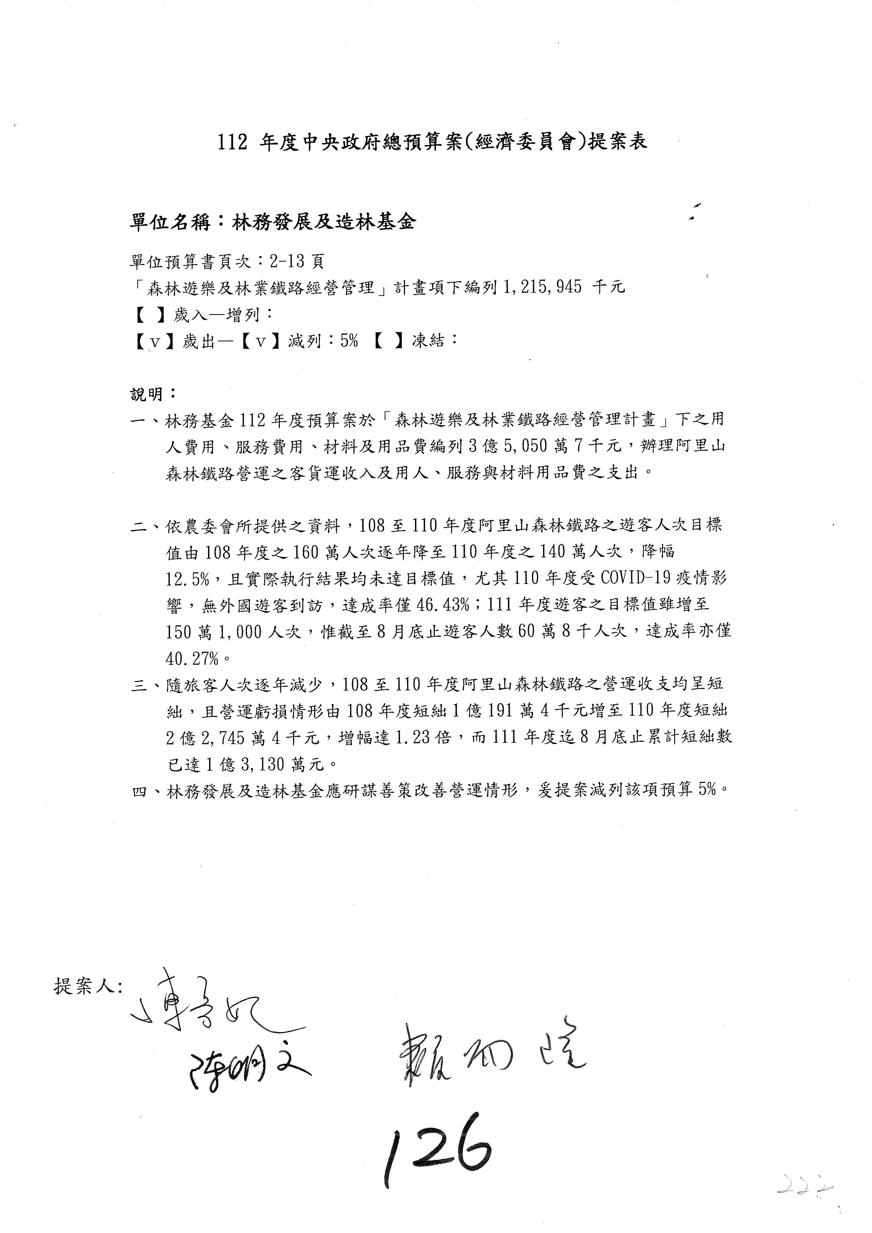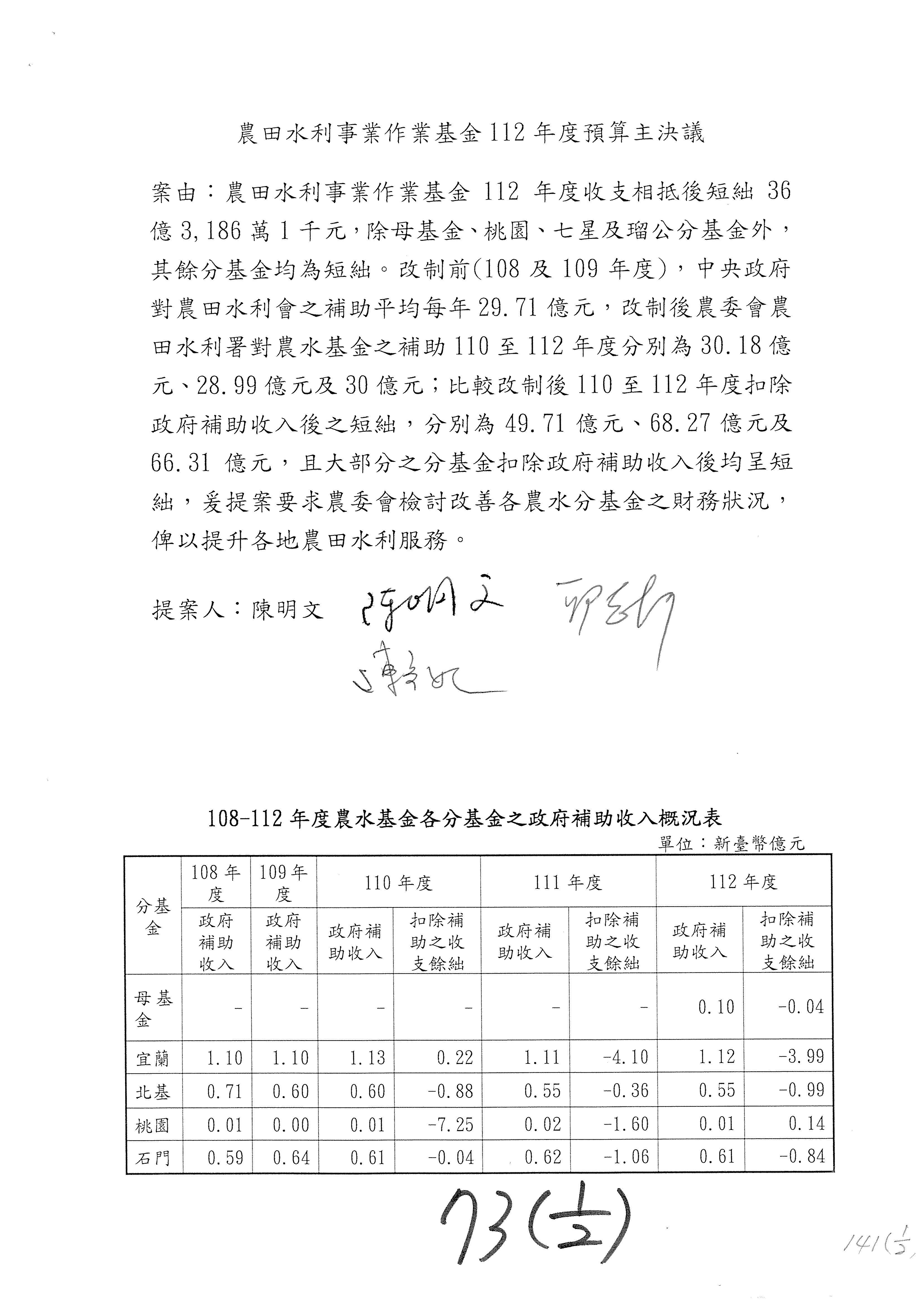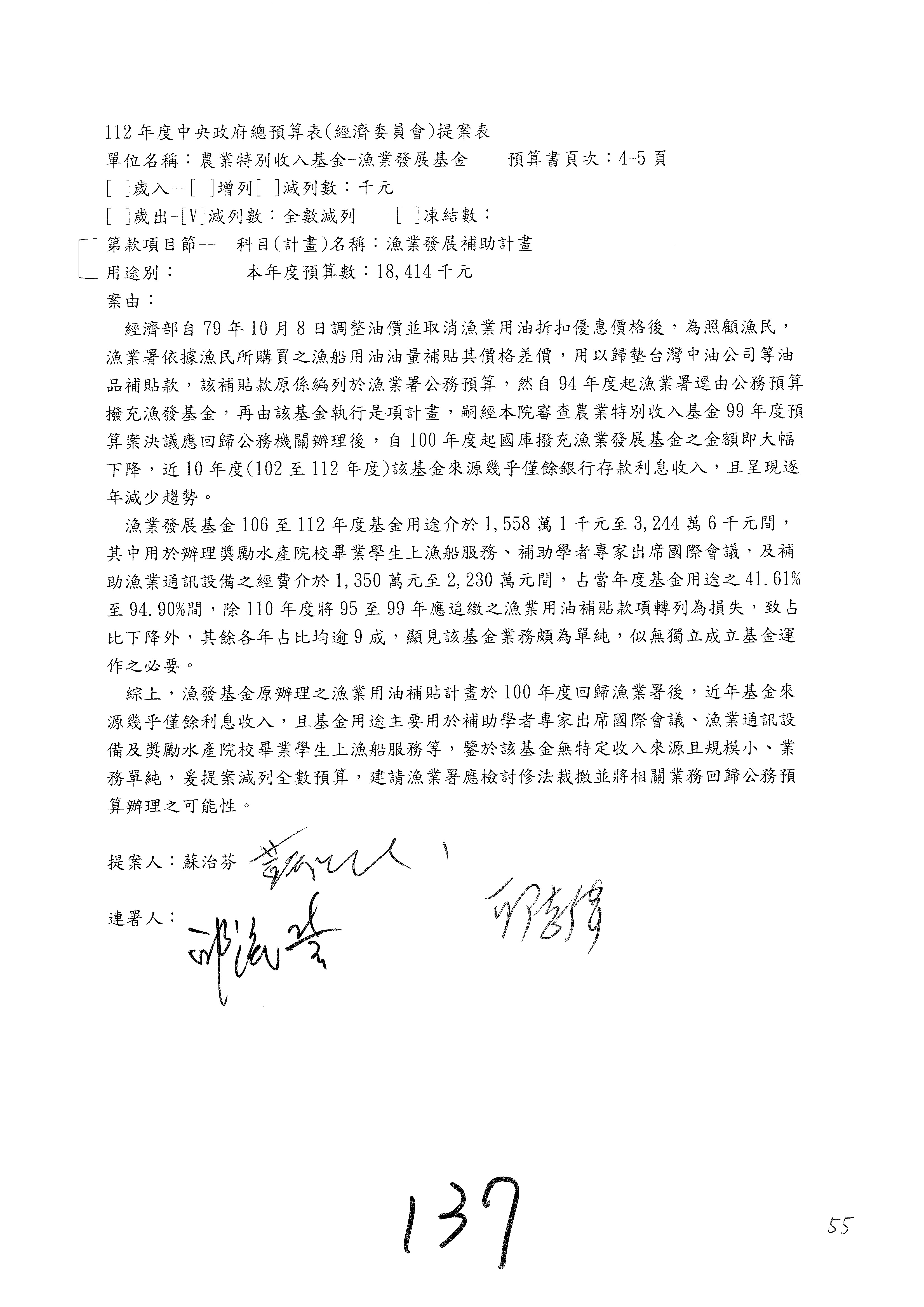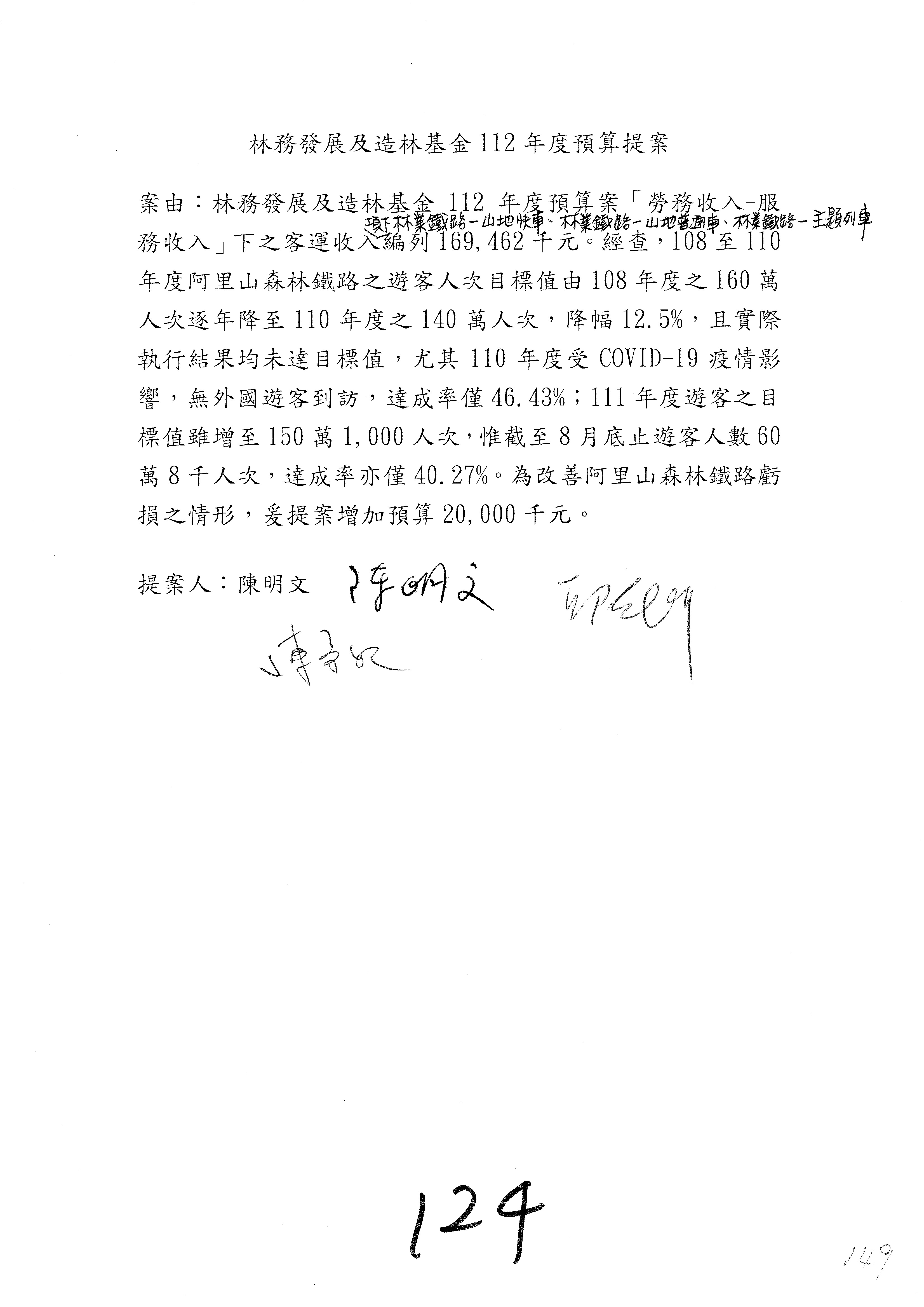 第137案到第139案預算照列,其中第138案改主決議。