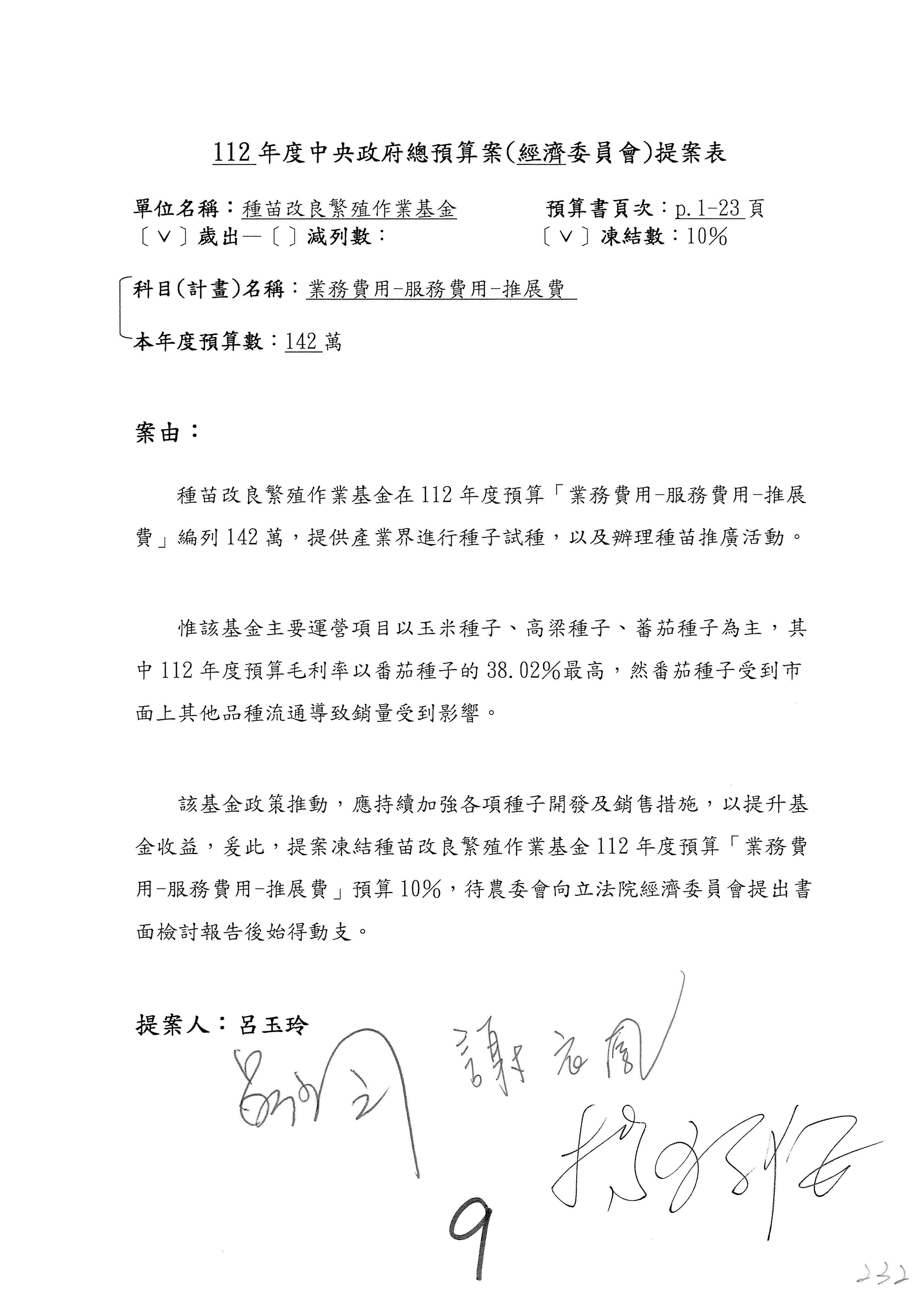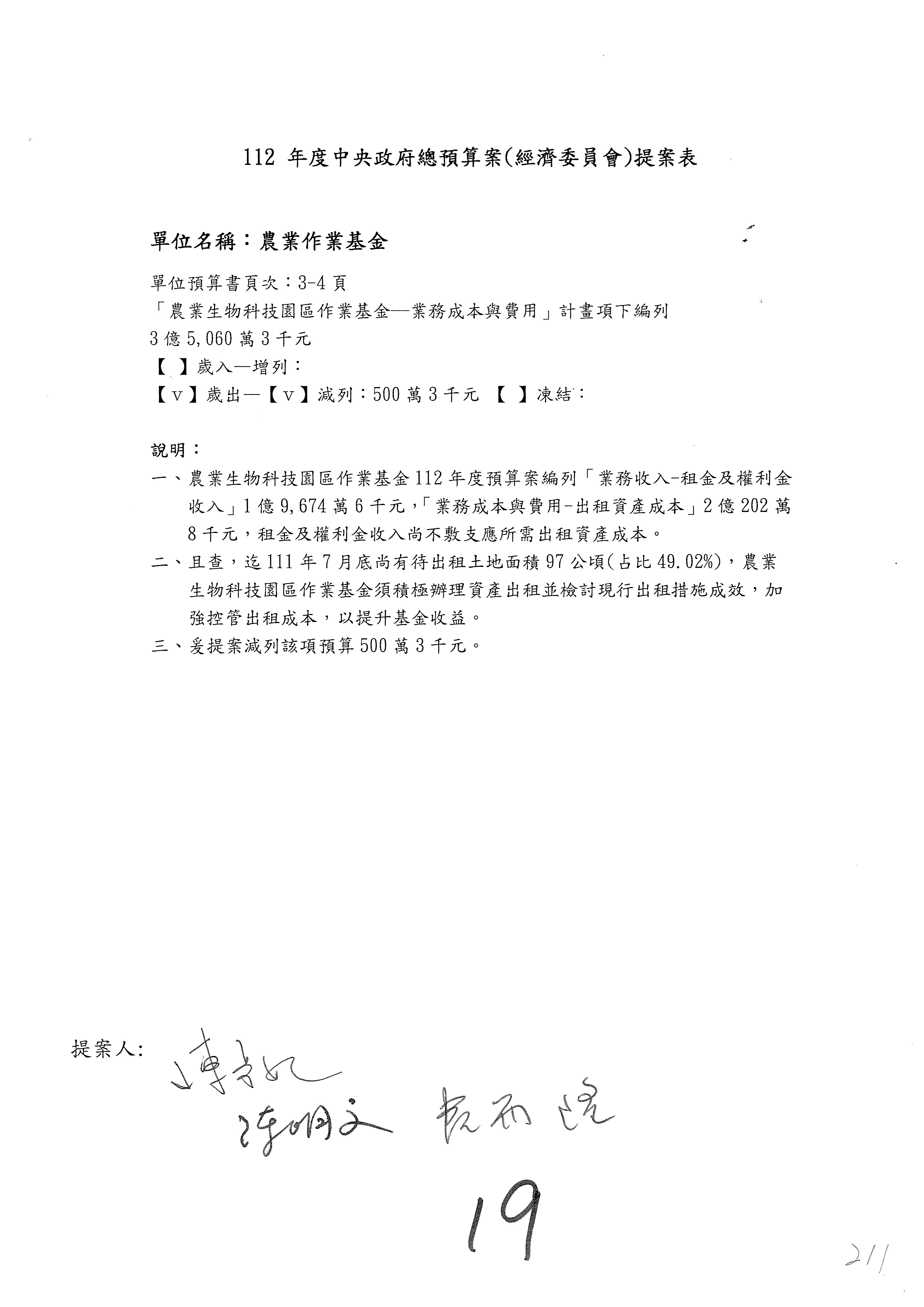 第219案預算照列。