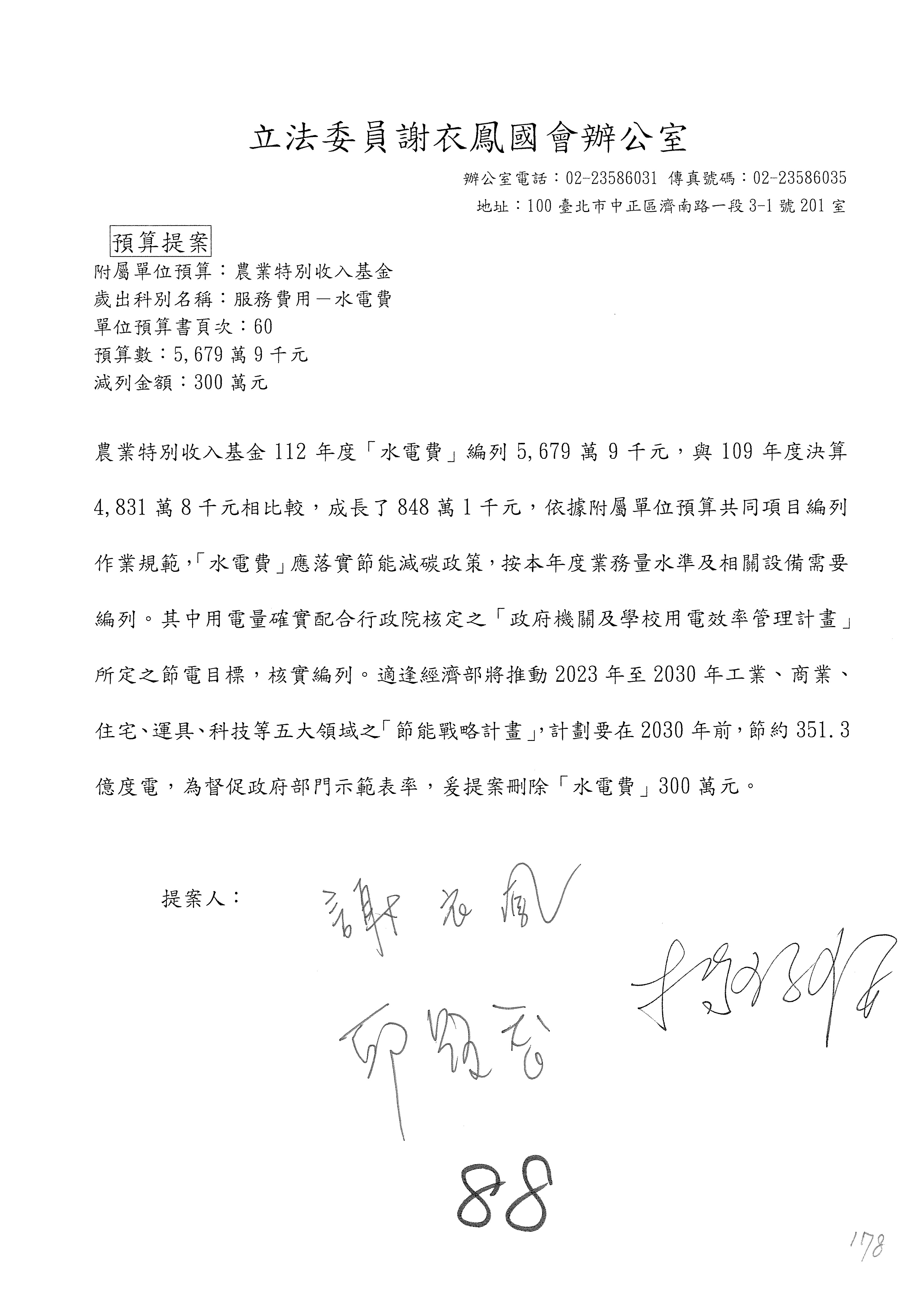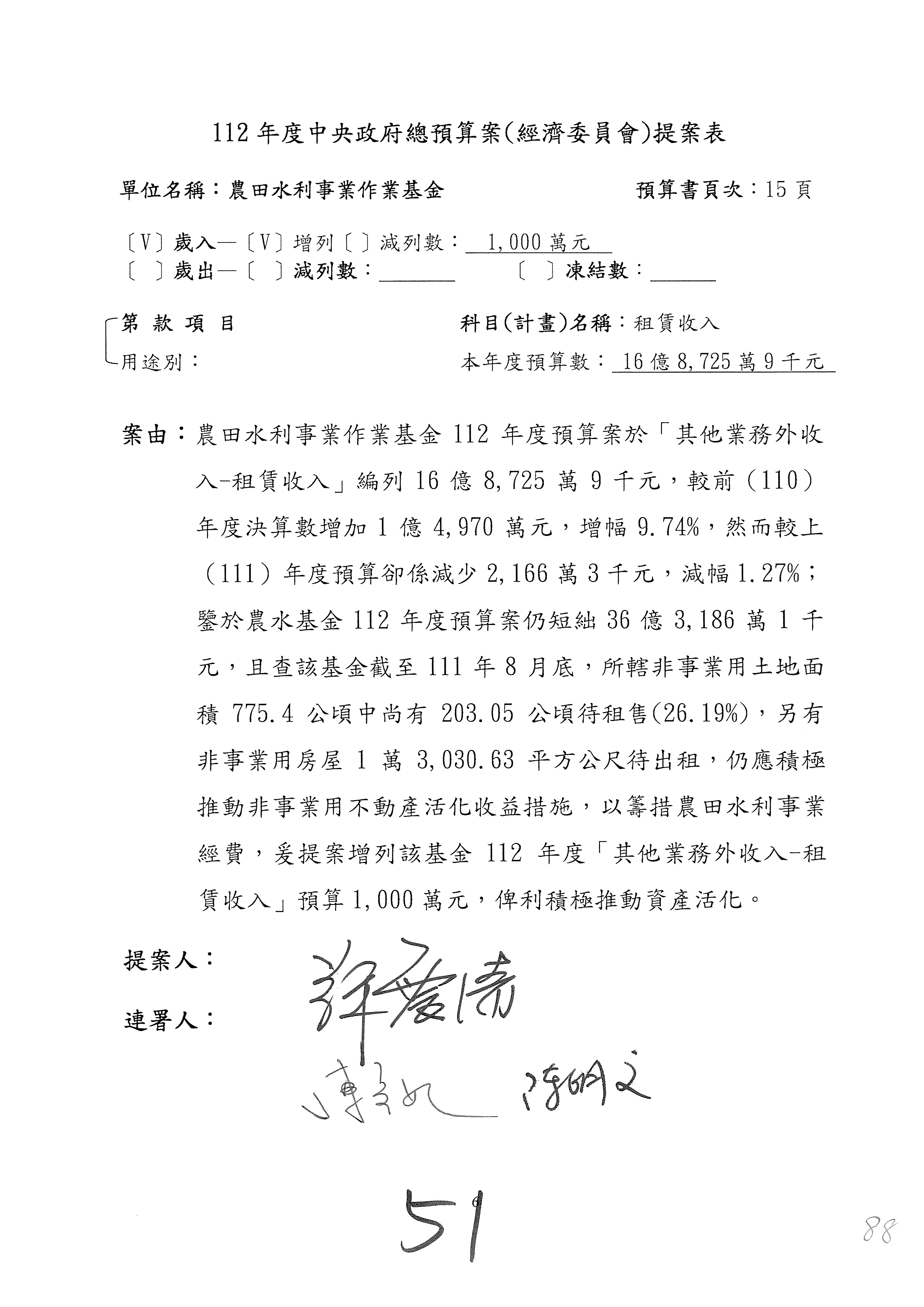 第88案預算照列。