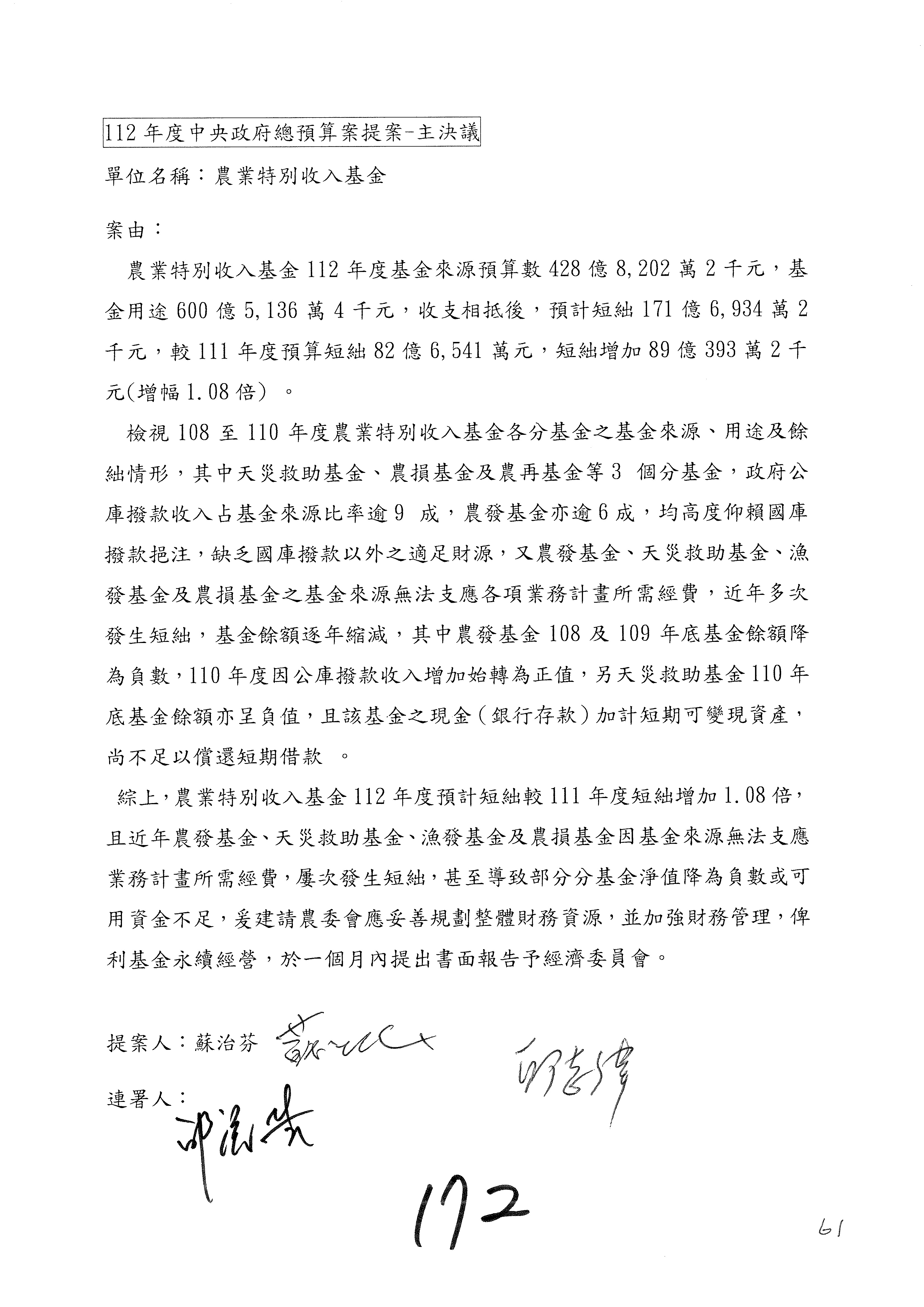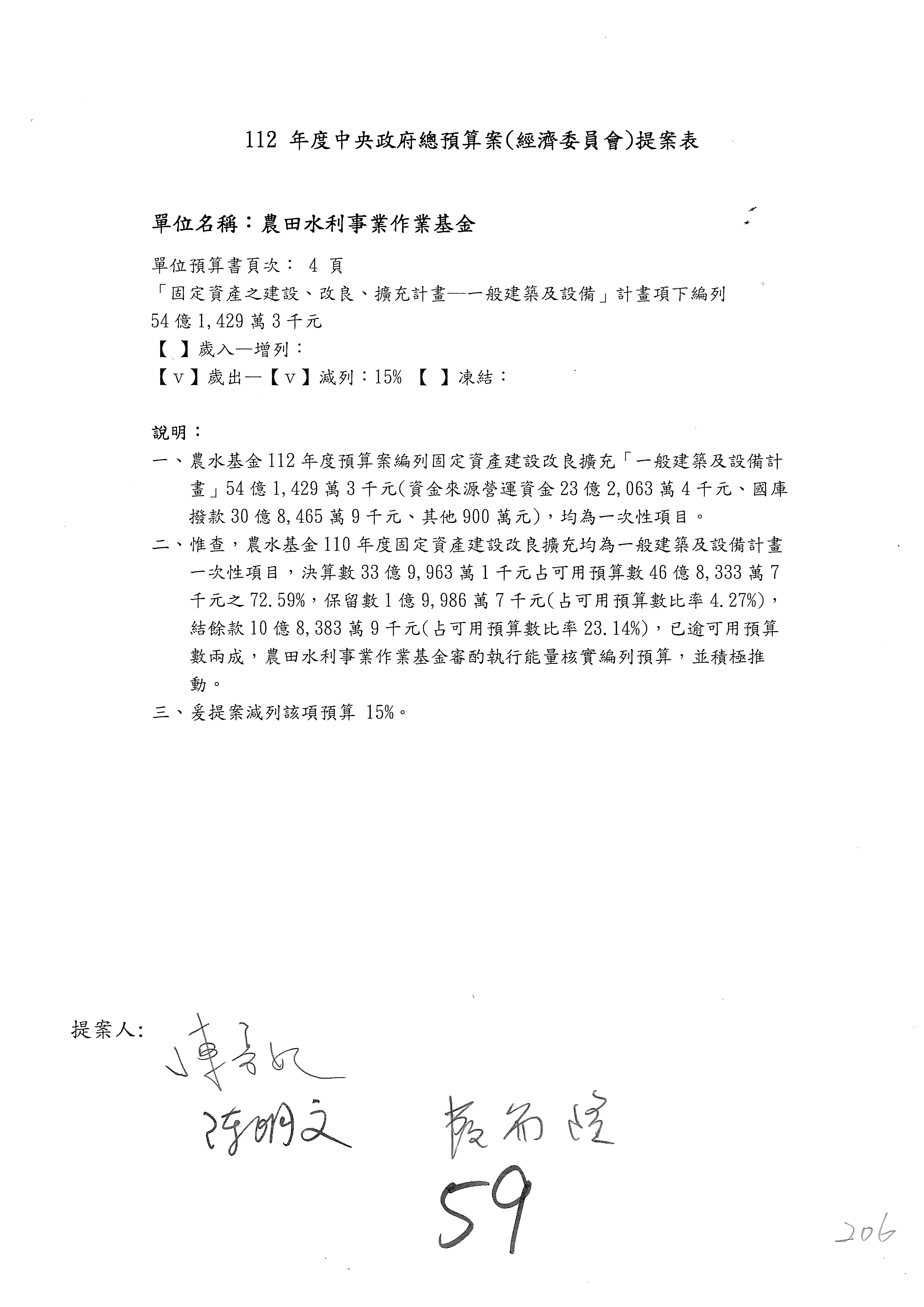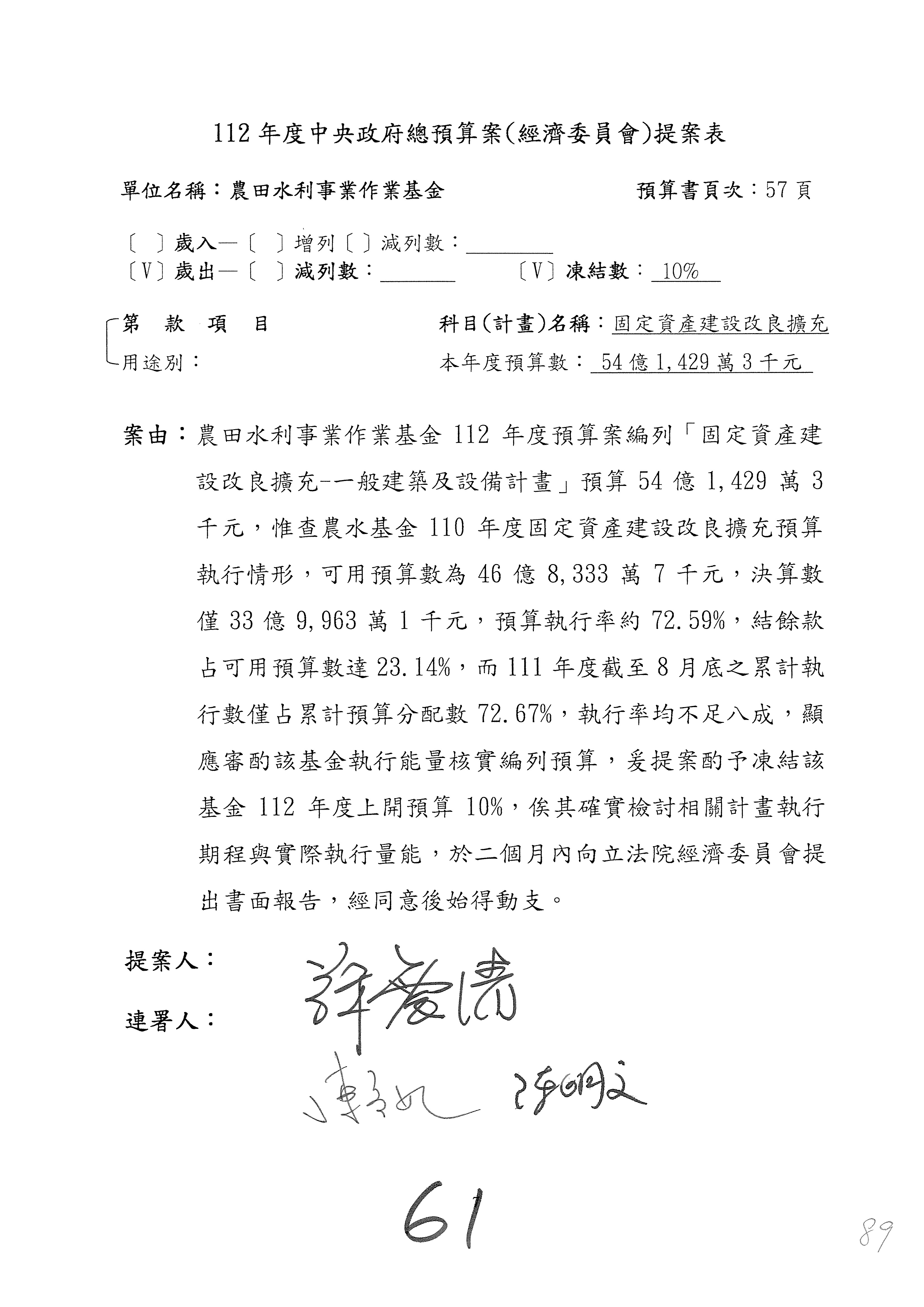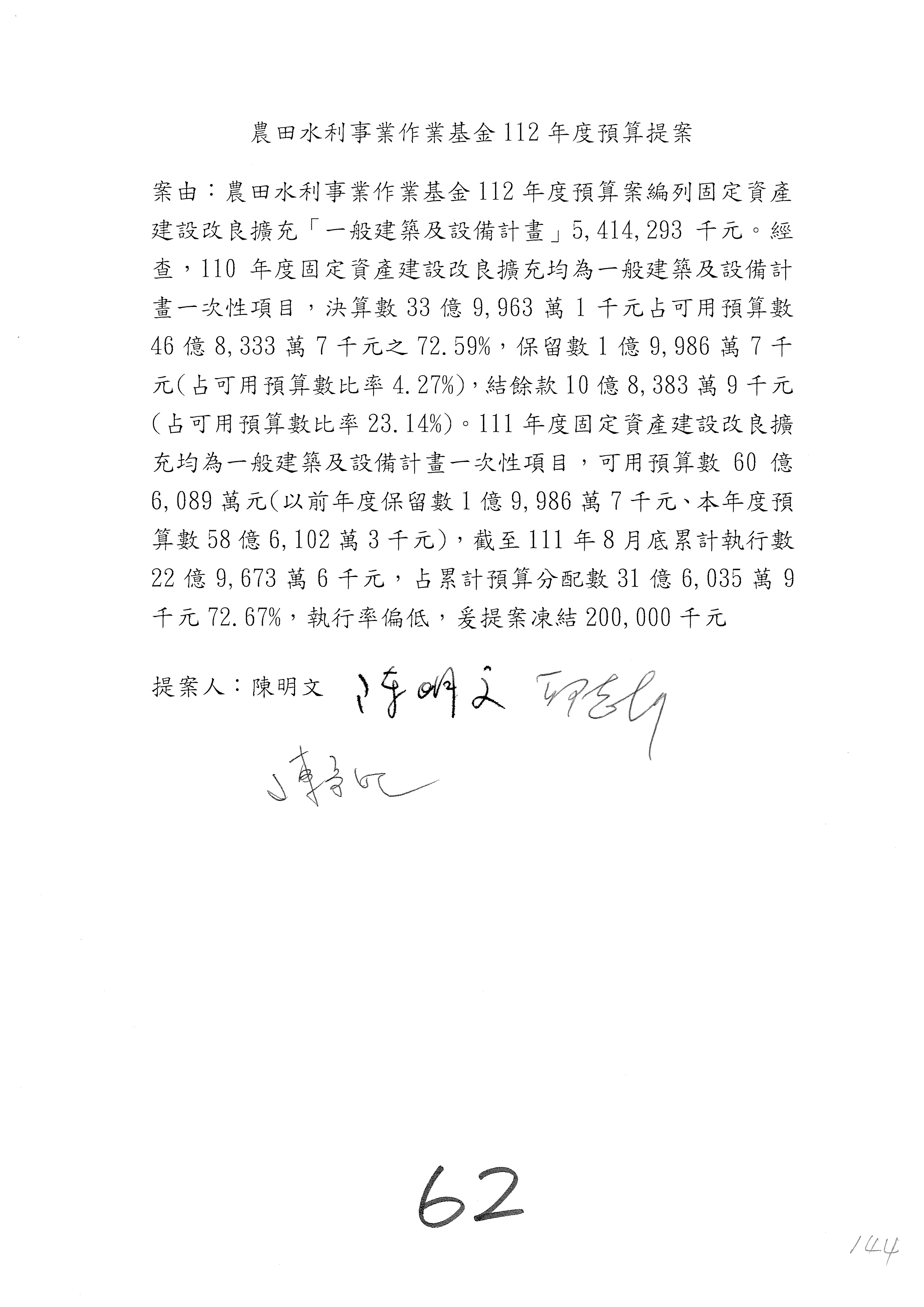 第59案到第62案預算照列。