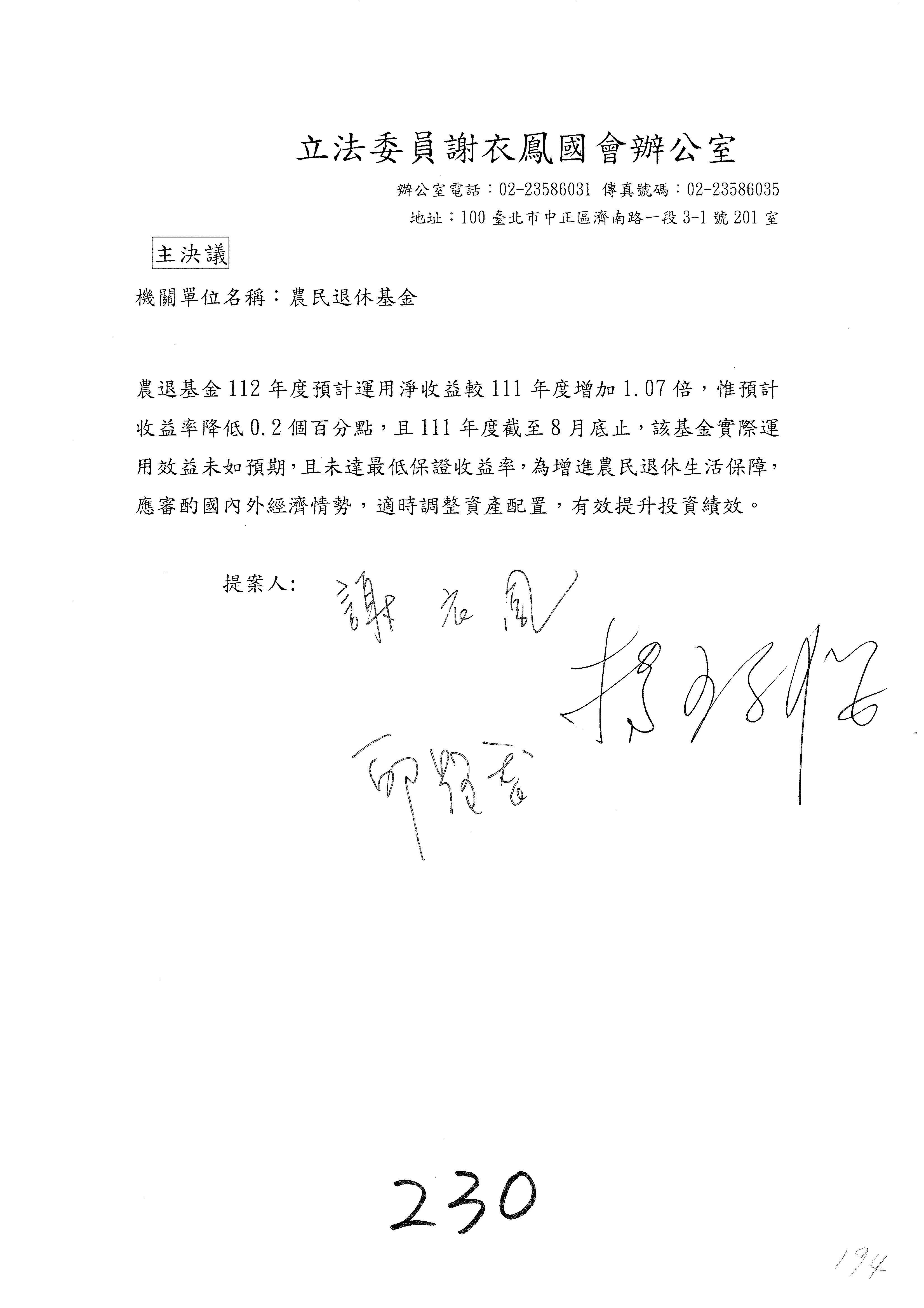 處理第230案。