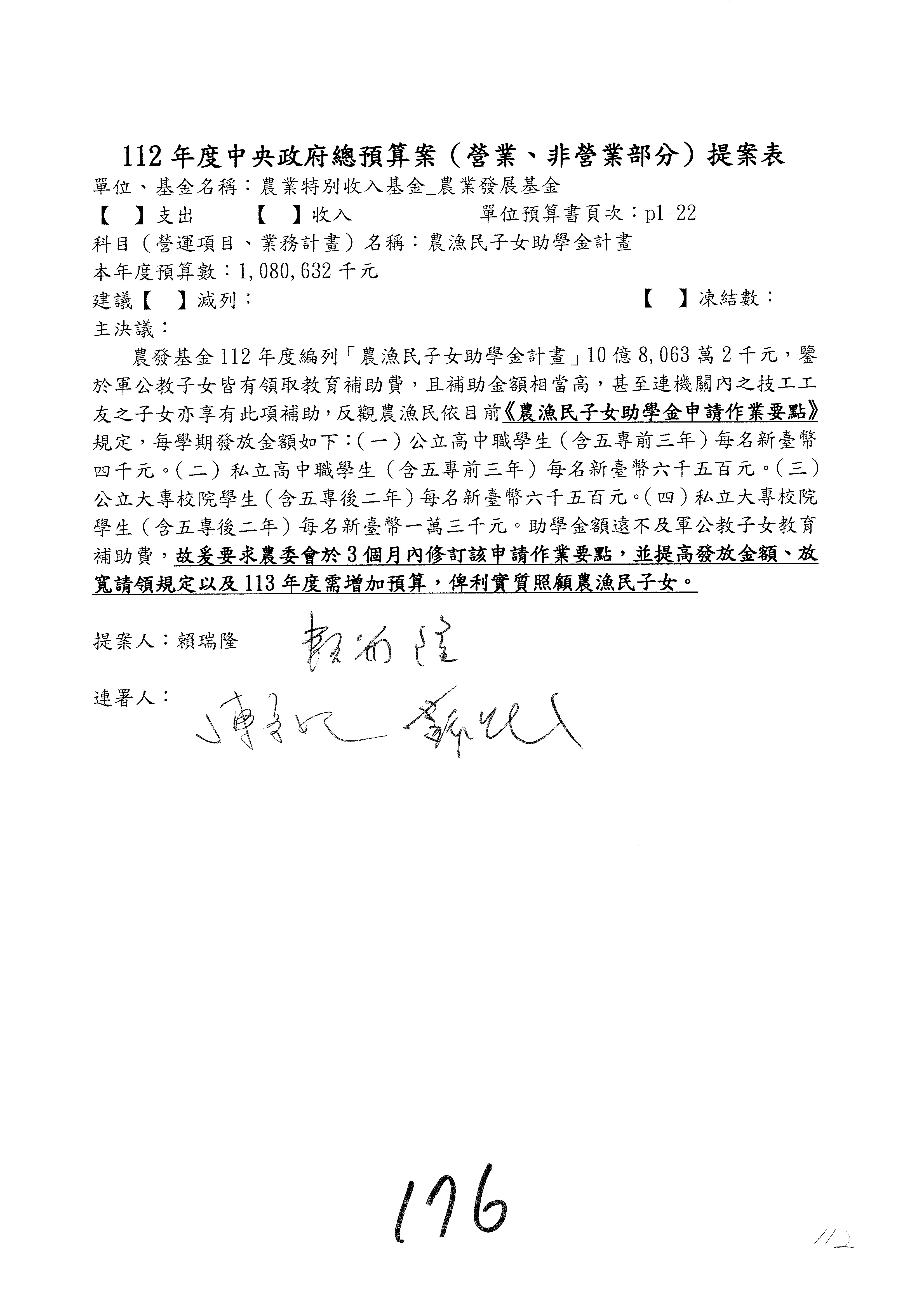 第176案修正通過。