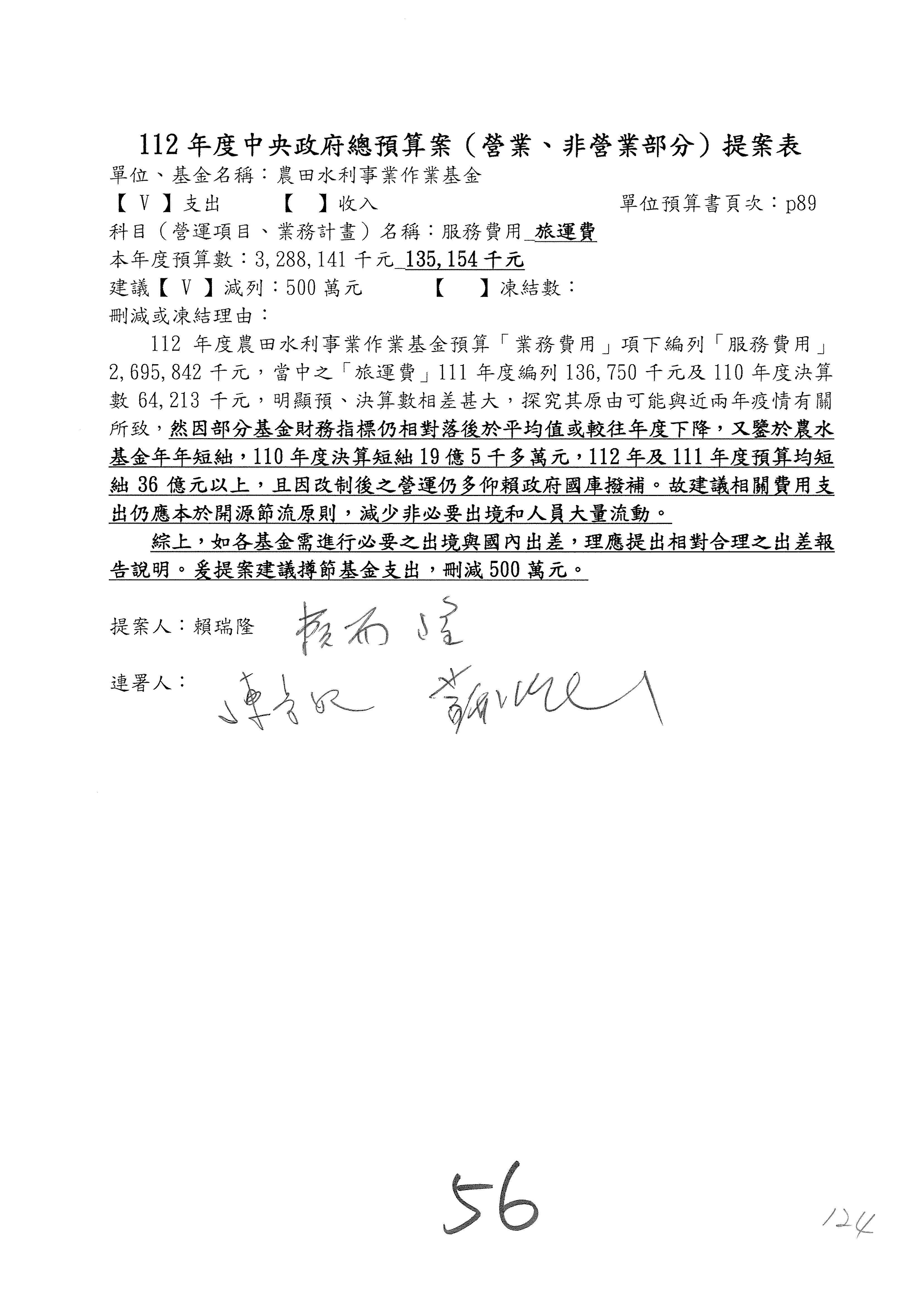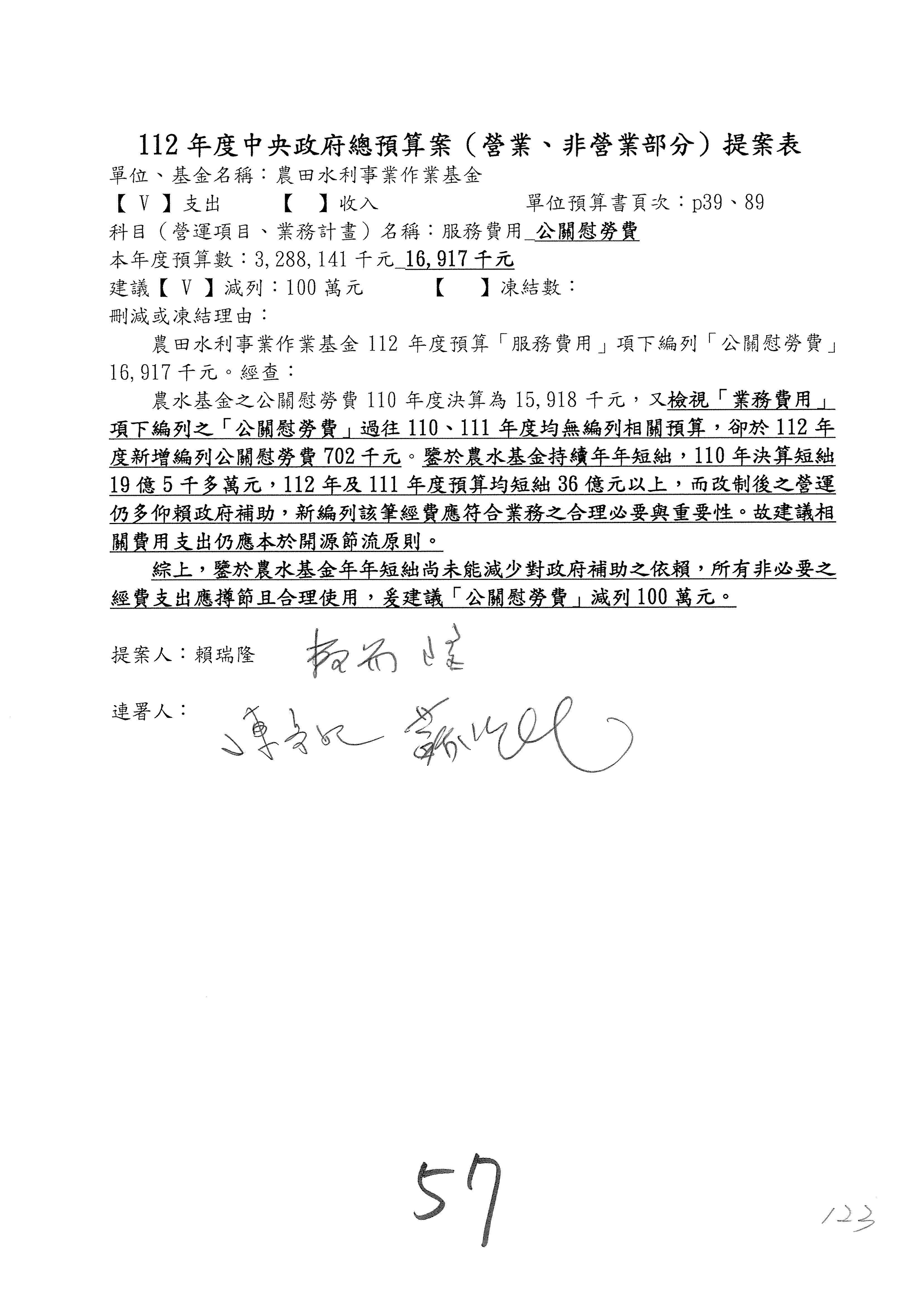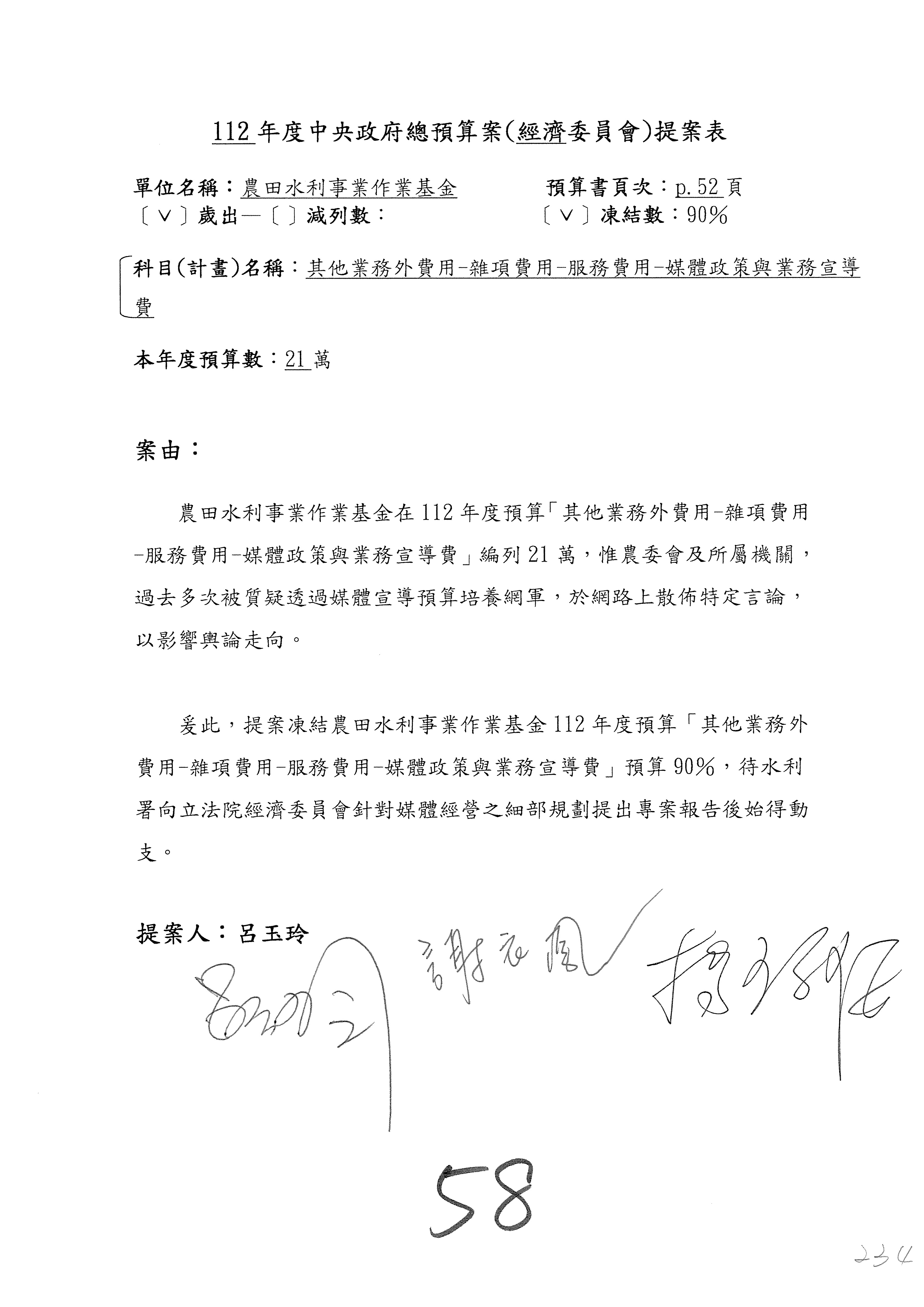 第56案至第58案預算照列,其中第56案、第57案改主決議。