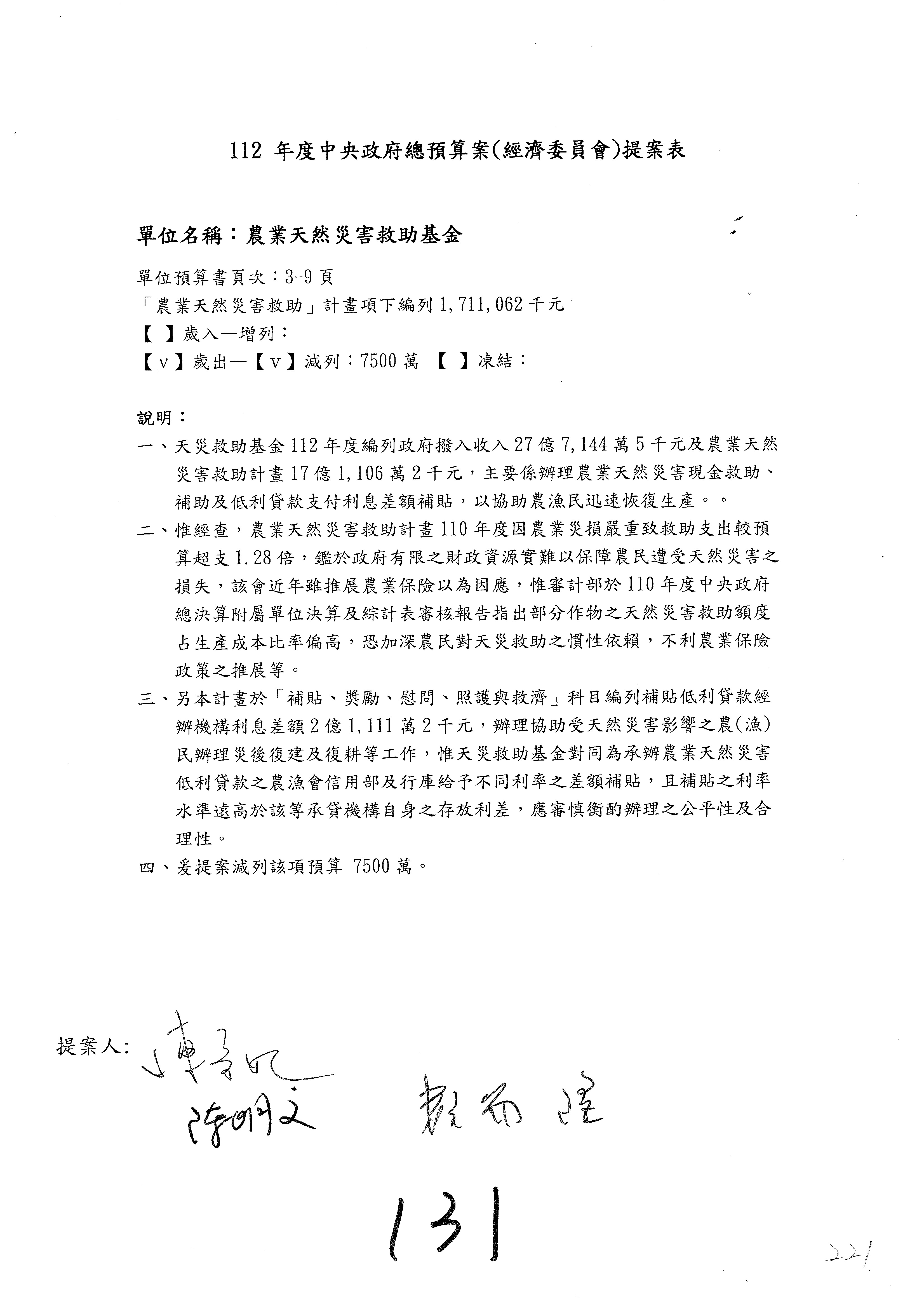 第131案至第136案預算照列,其中第136案改主決議。