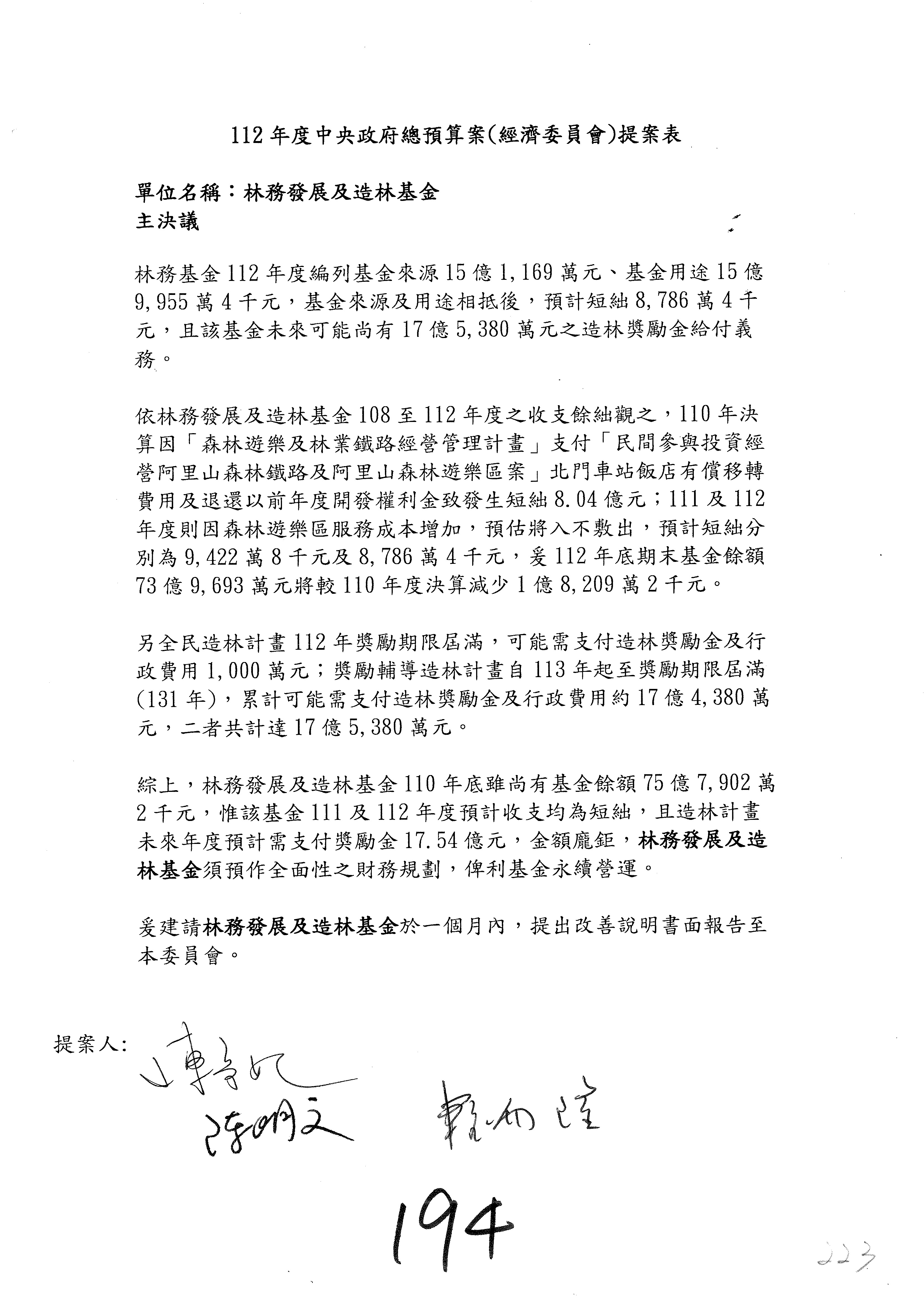 第194案修正通過。