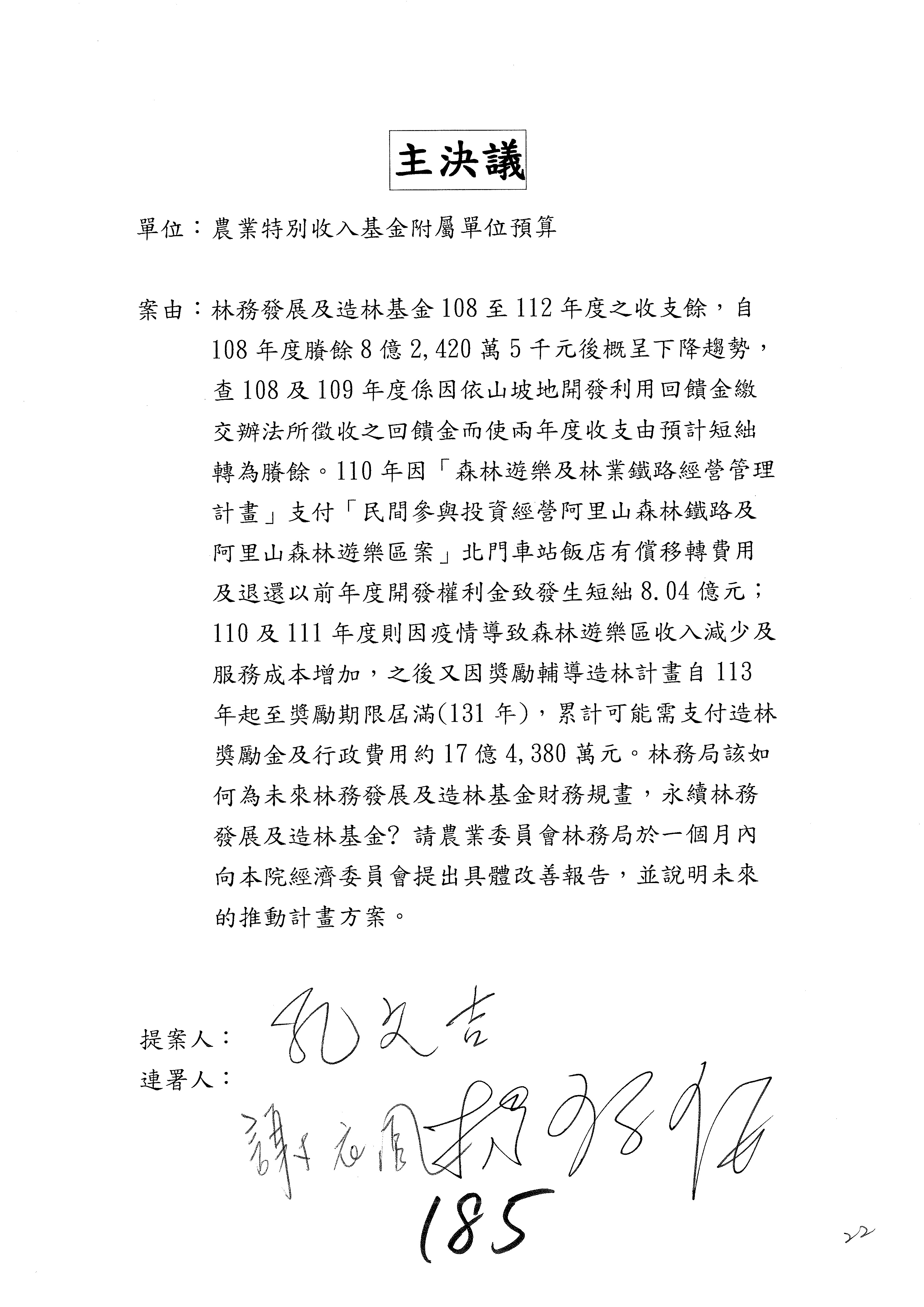 第18案至第22案預算照列,其中第18案、第19案、第20案、第22案改主決議。