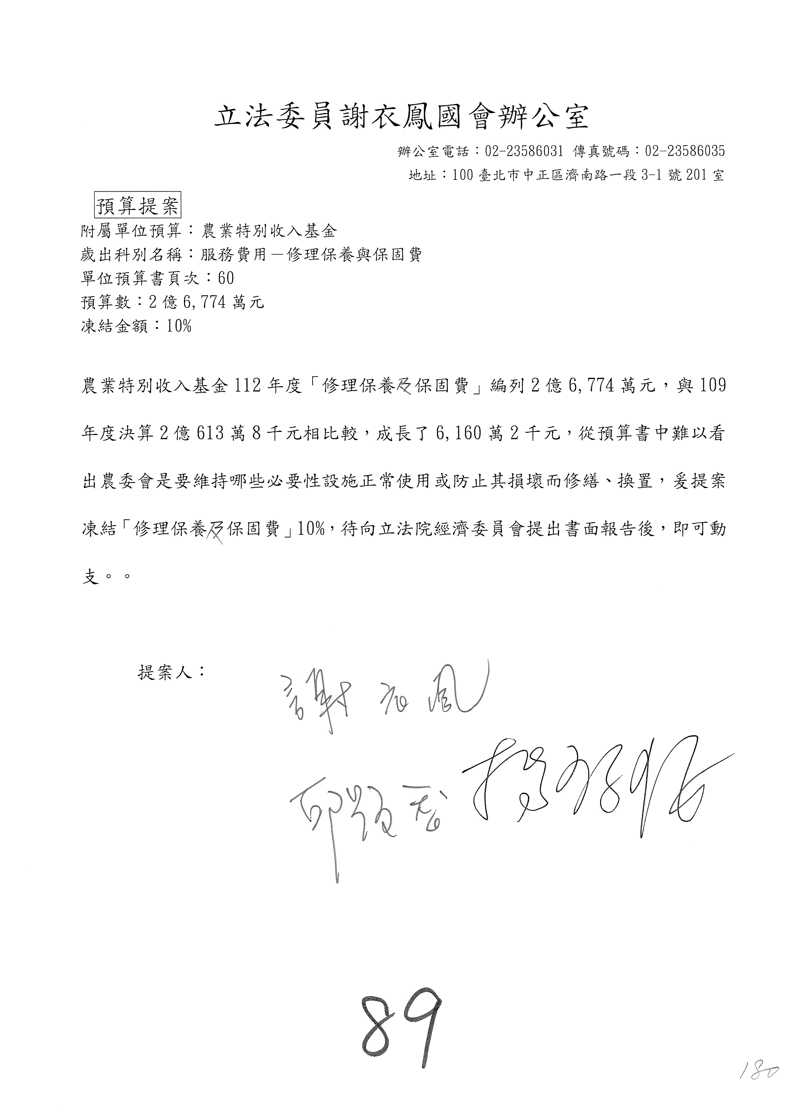 第89案預算照列。