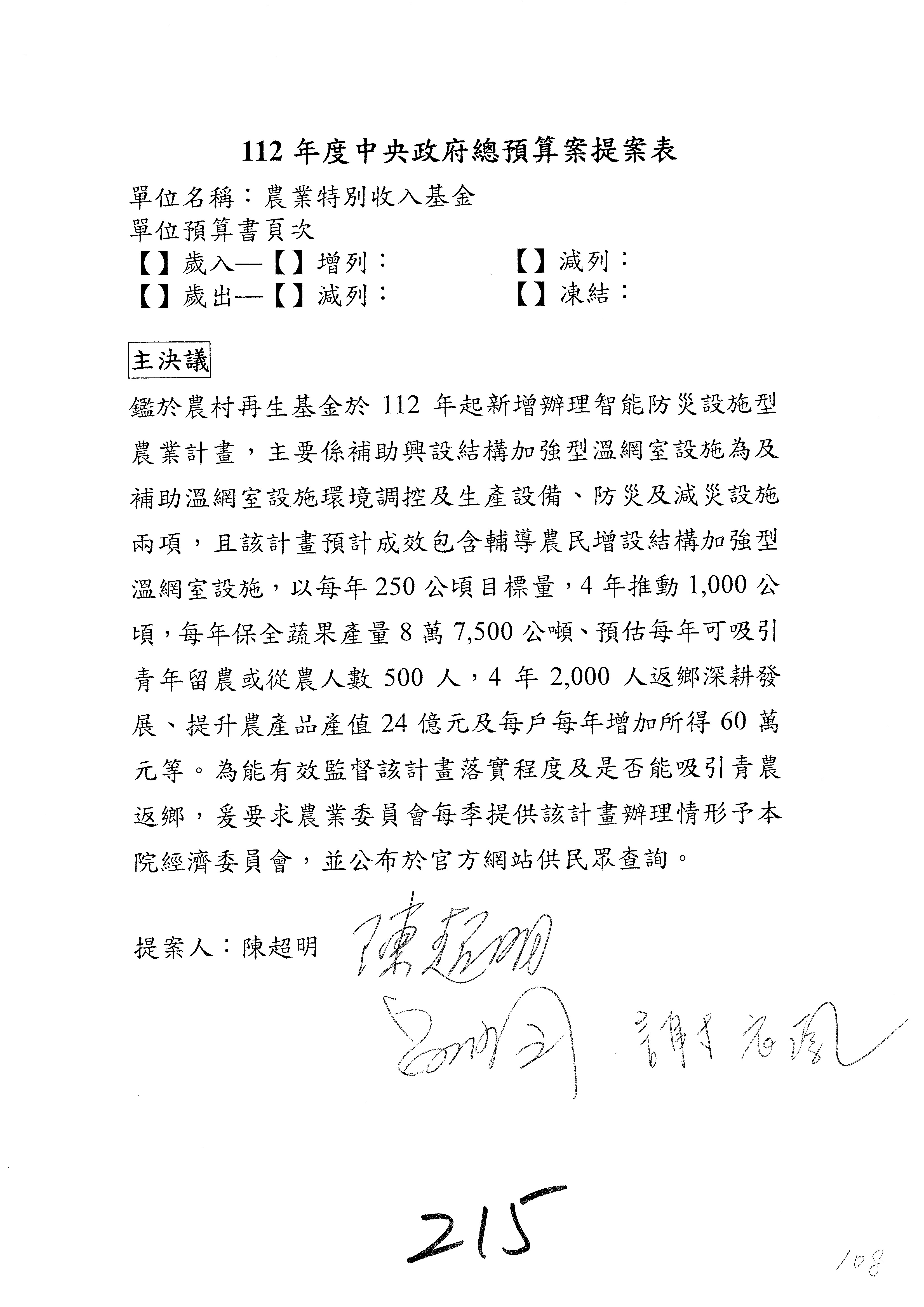 第215案修正通過。