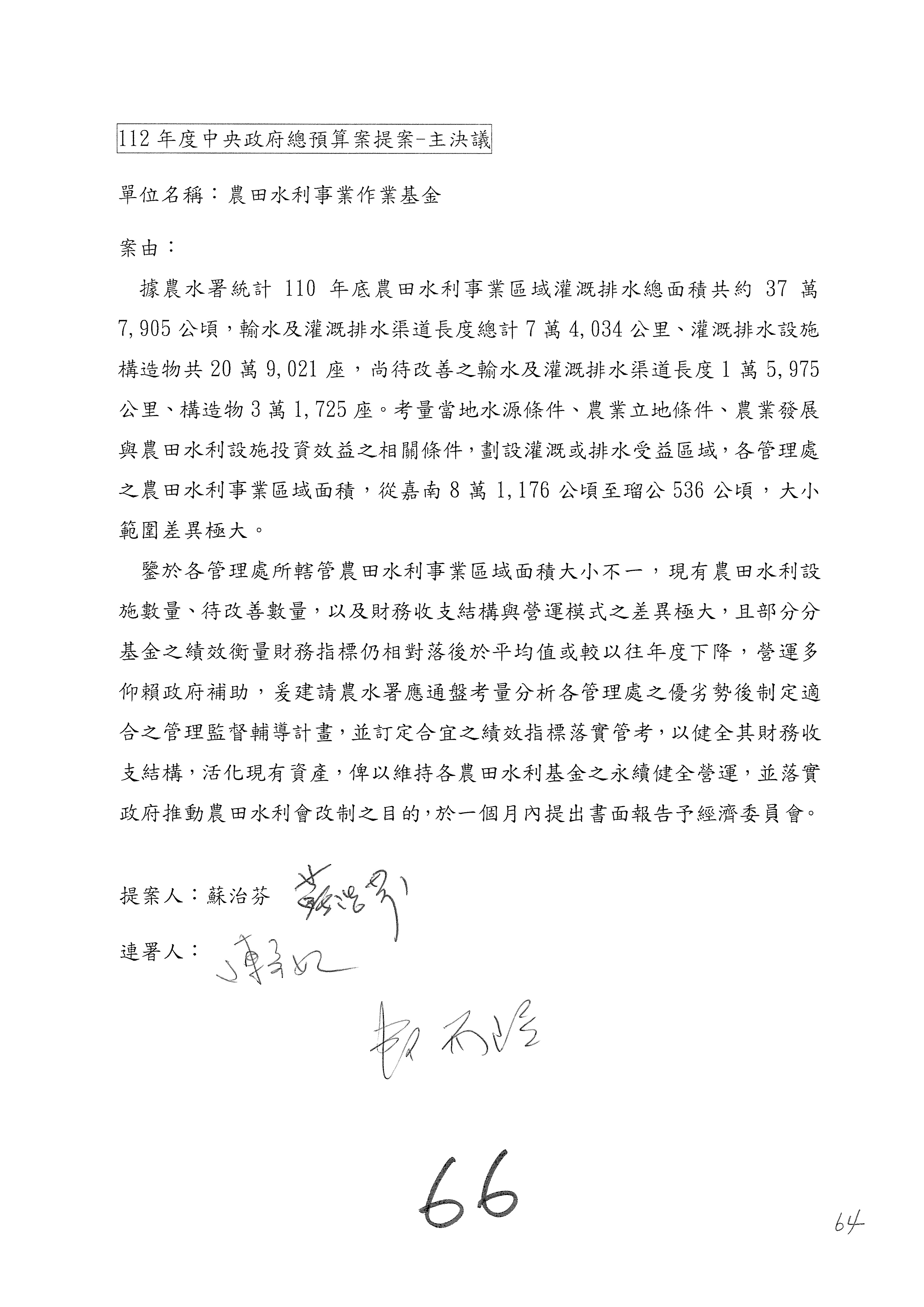 主決議部分,第63案、第64案照案通過。