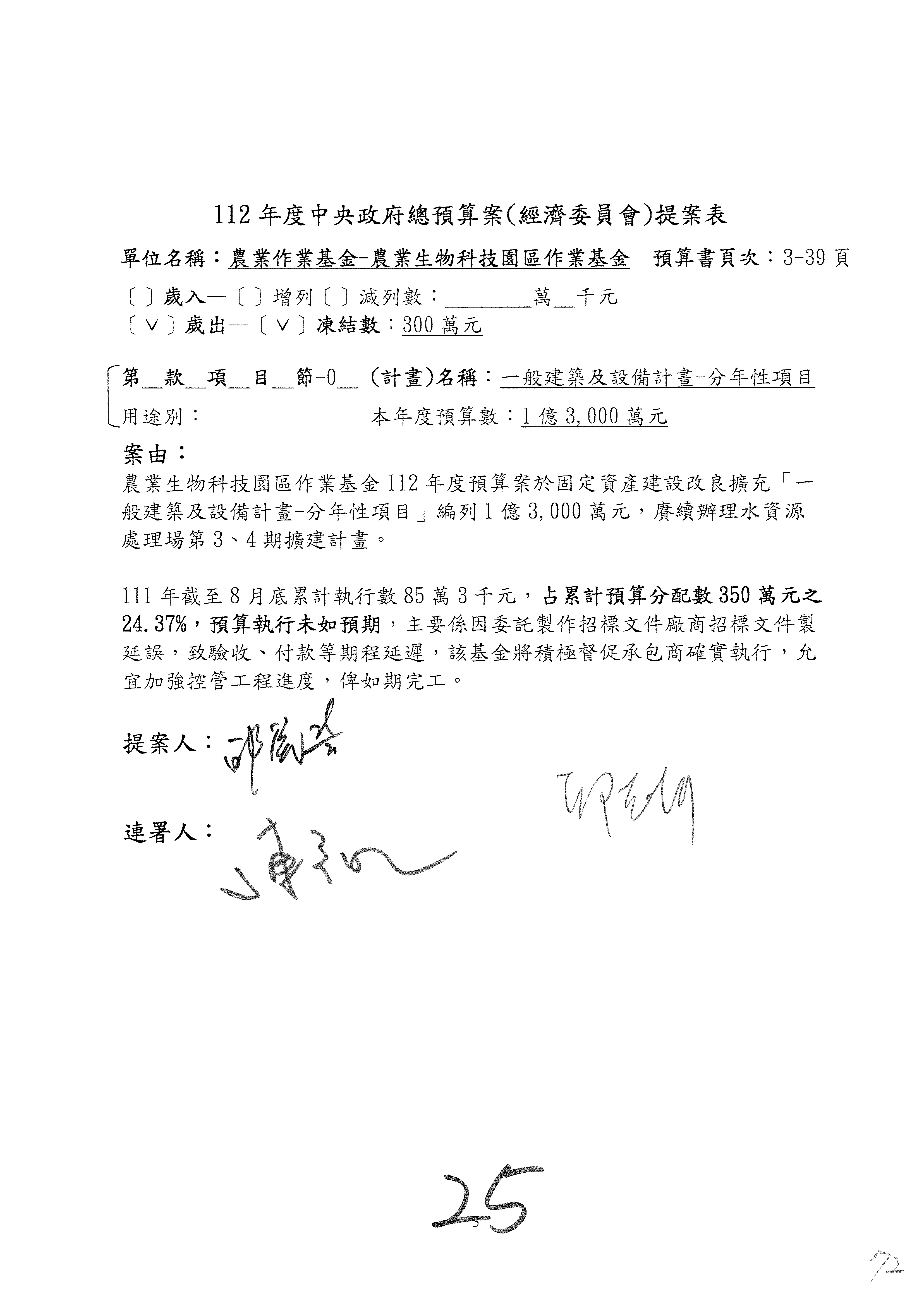 第23案至第25案預算照列。