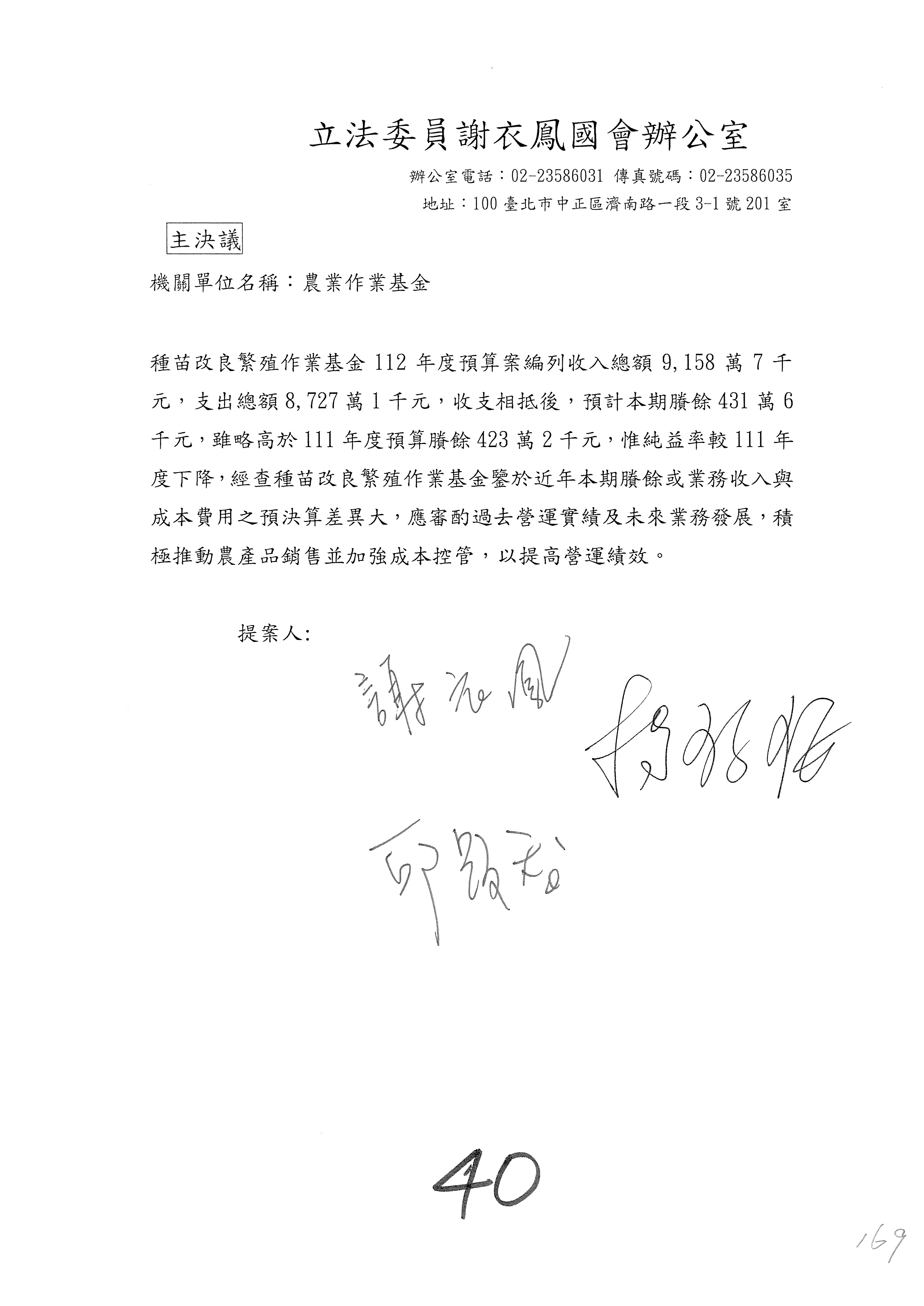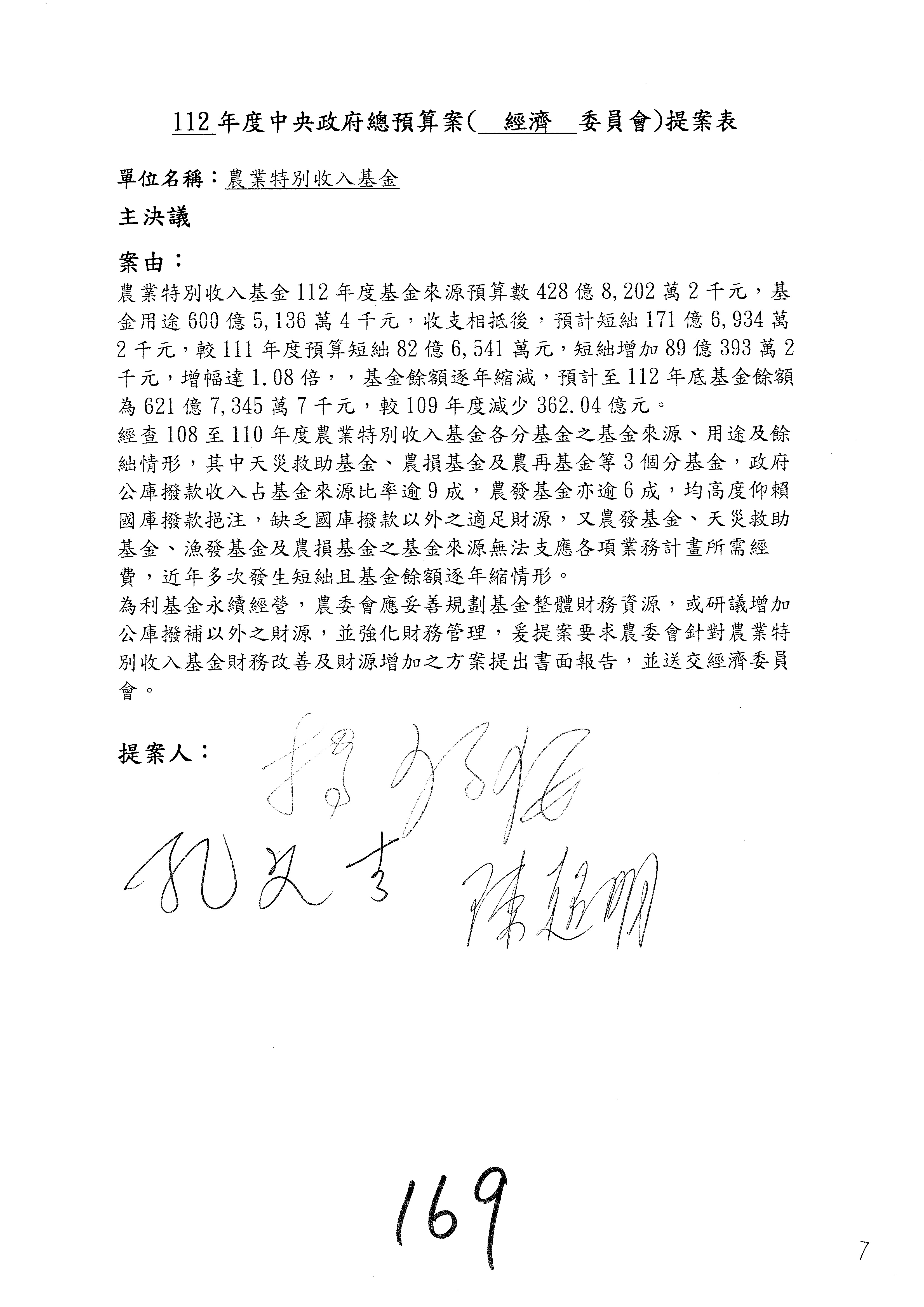 主決議部分,第169案照案通過。