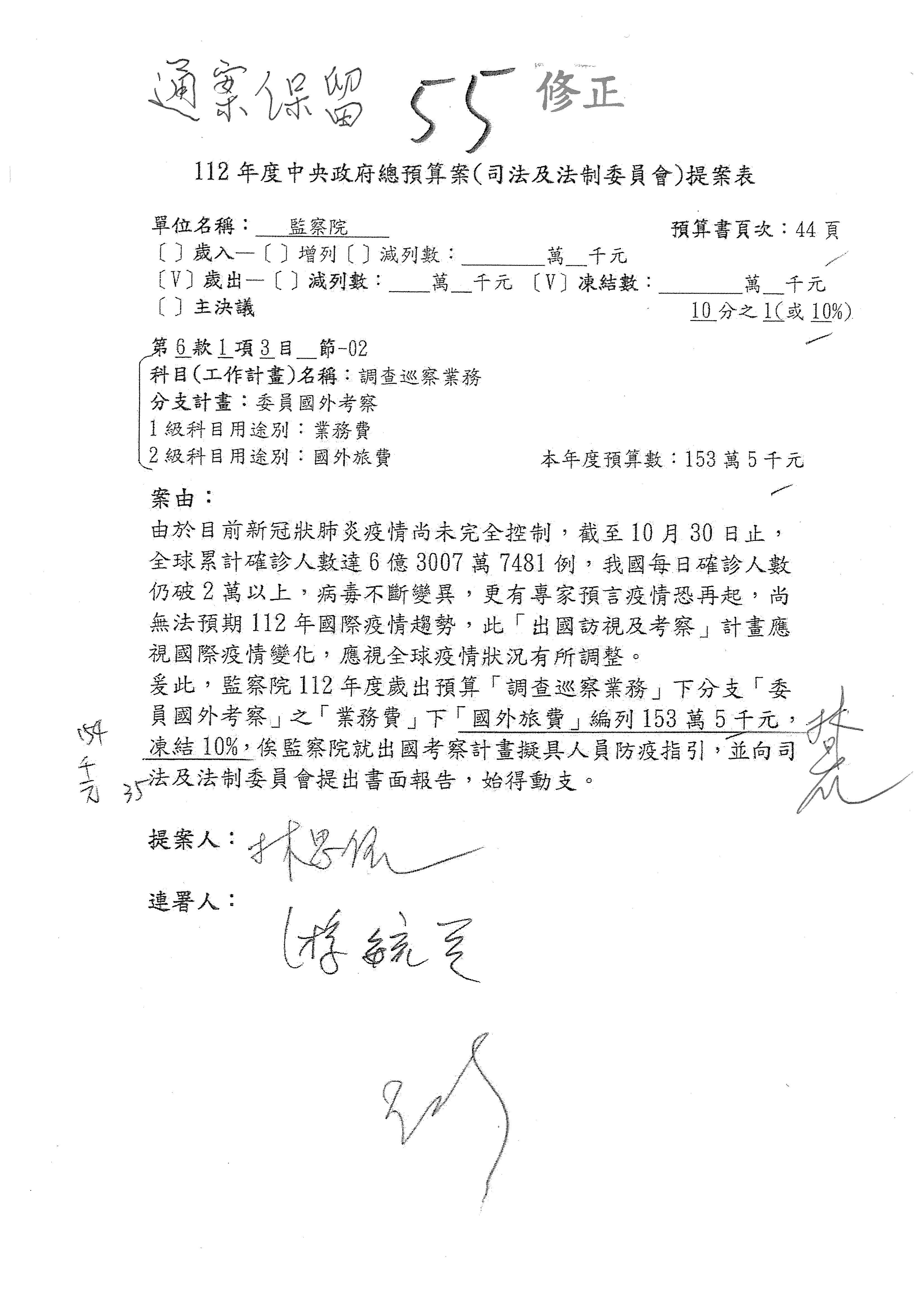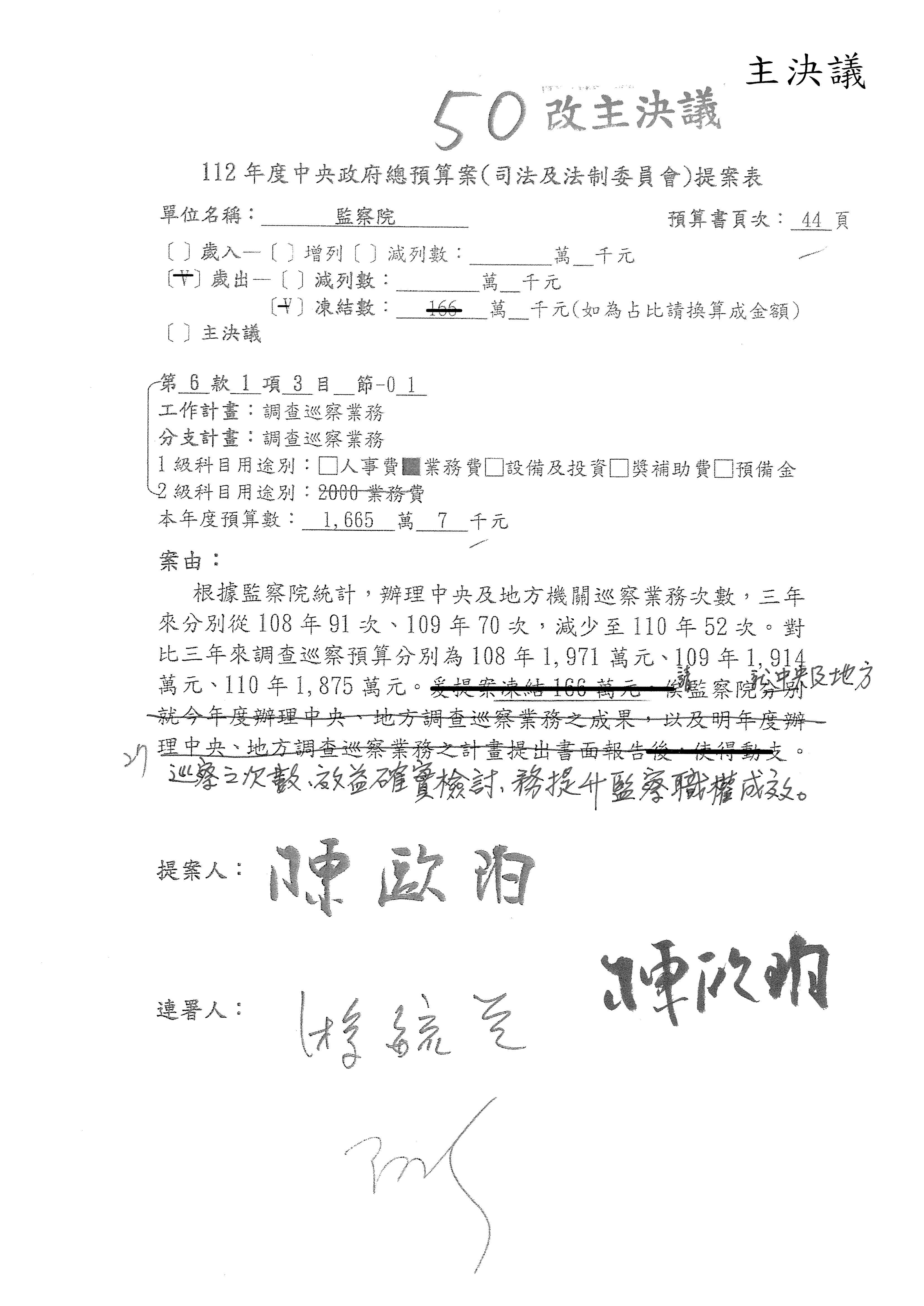 陳委員玉珍:我沒有針對油料提出意見,油價如果有漲,我沒意見。那個我沒有提意見,對不對?我提的意見是關於去年這時候委員所提出來的拍攝職權影片,竟然增加二倍經費,新聞發布與部會聯繫增加四倍經費,我覺得這寫得完全有道理啊!新增陳列室的維運40萬元,陳列室是給民眾參觀的,但在今年一整年的疫情情況下,事實上不會達到跟往年一樣的人次,所以……