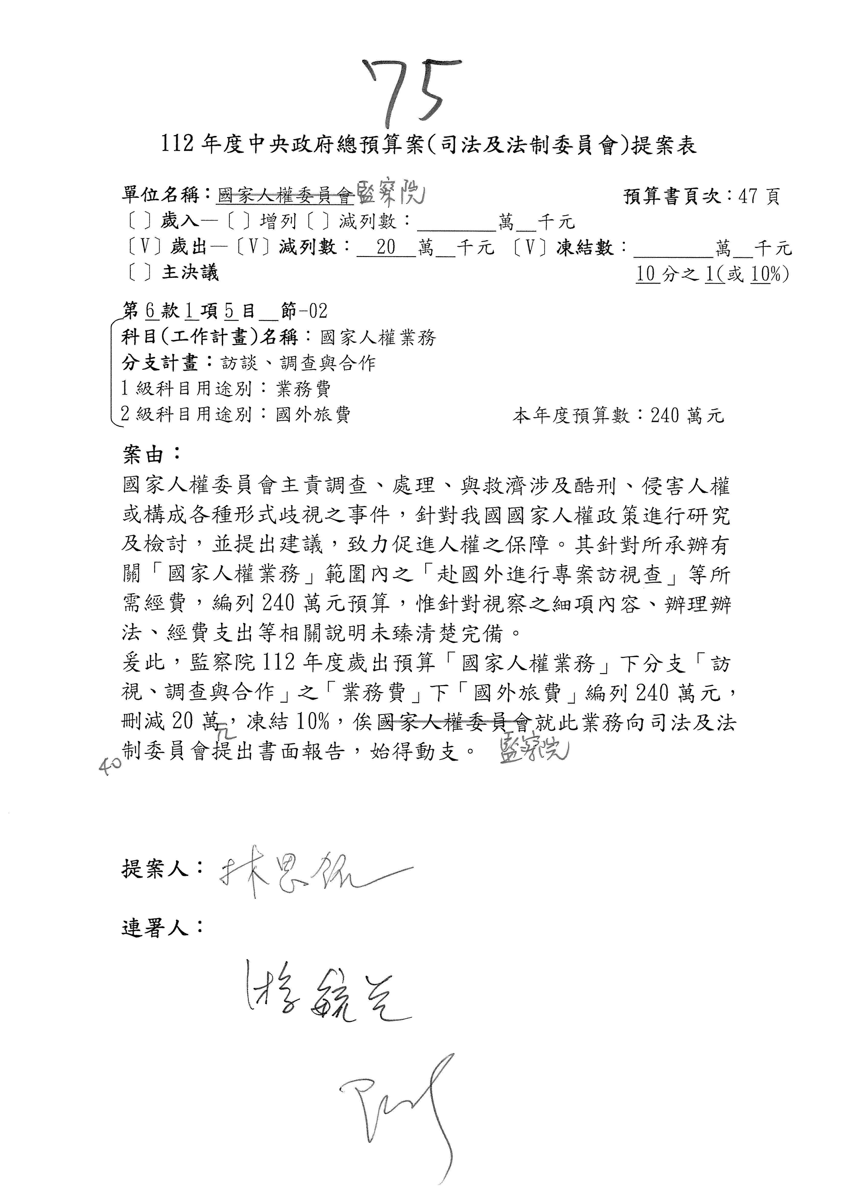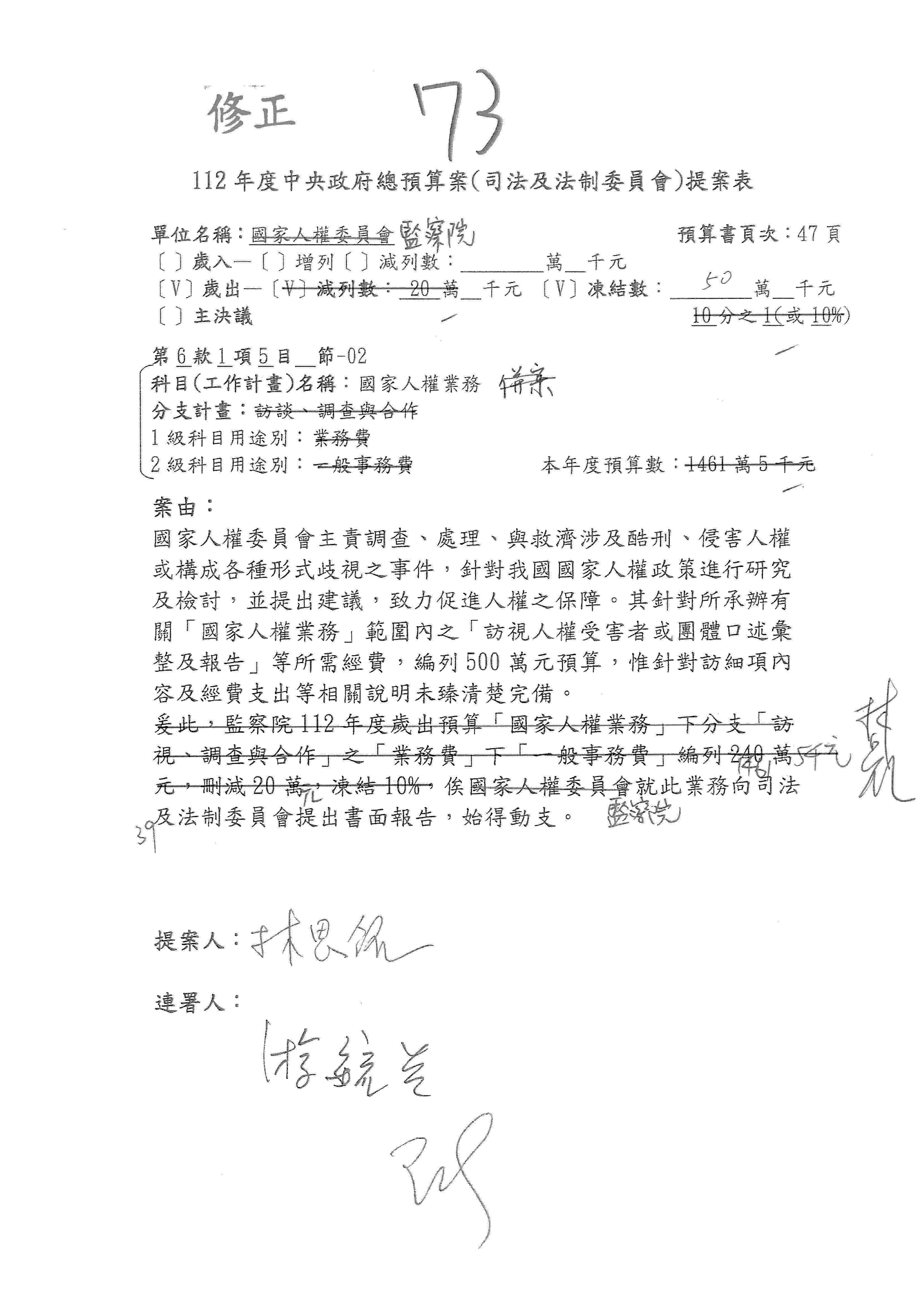提案人:游毓蘭 林思銘 陳玉珍 陳以信