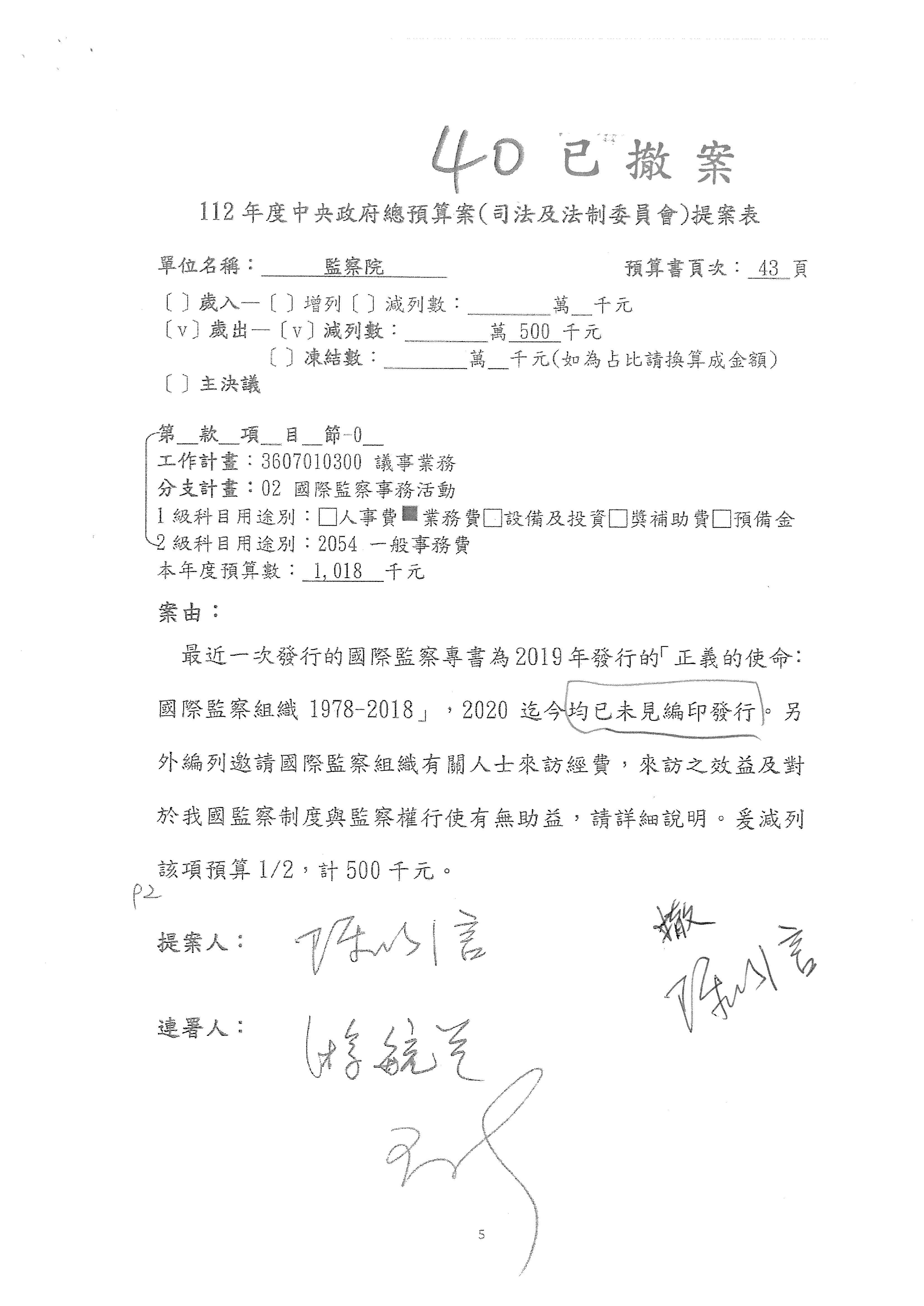 朱秘書長富美:我們的新聞發布、陳列室增編40萬元而已,是配合職權法令……