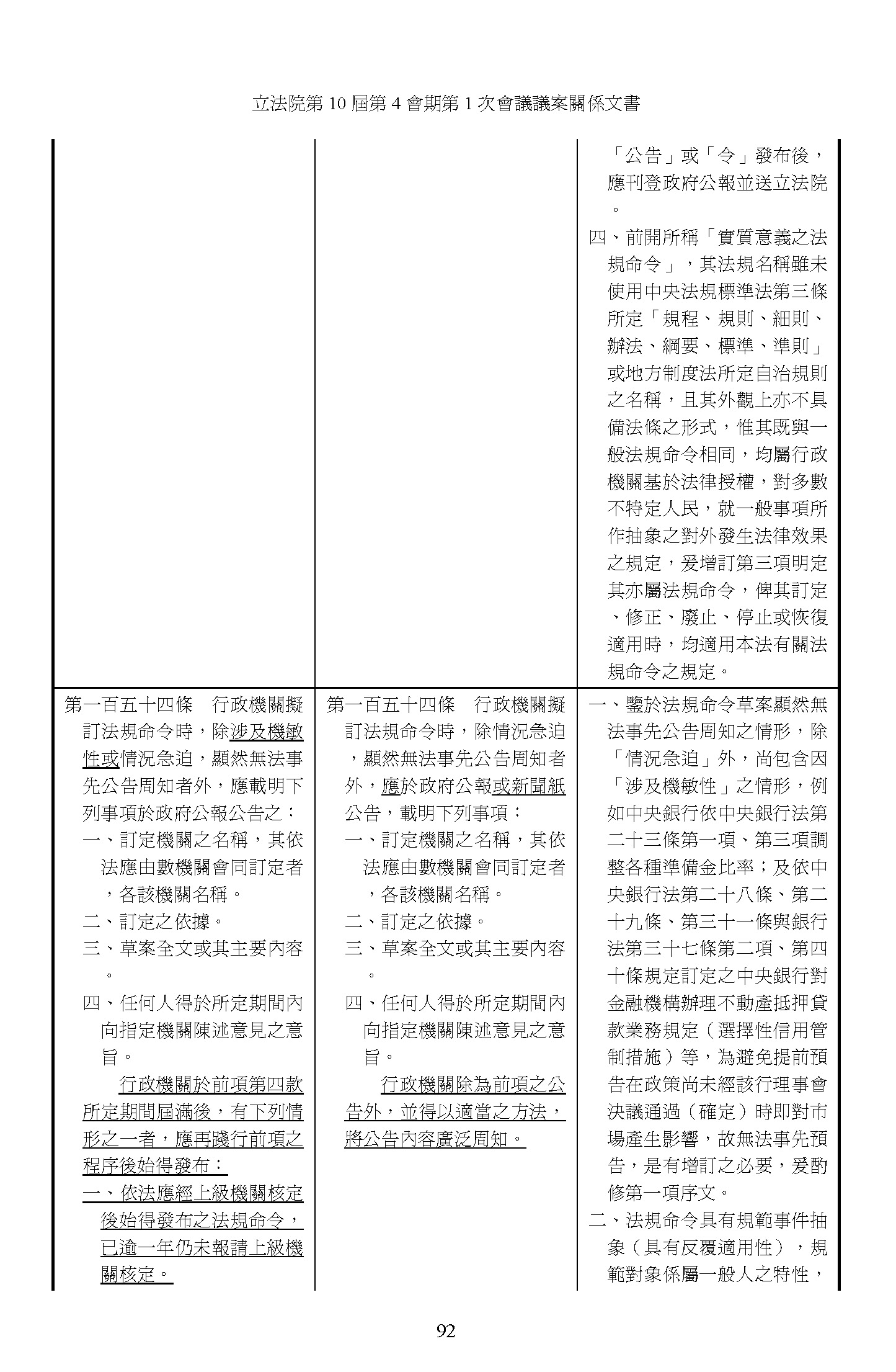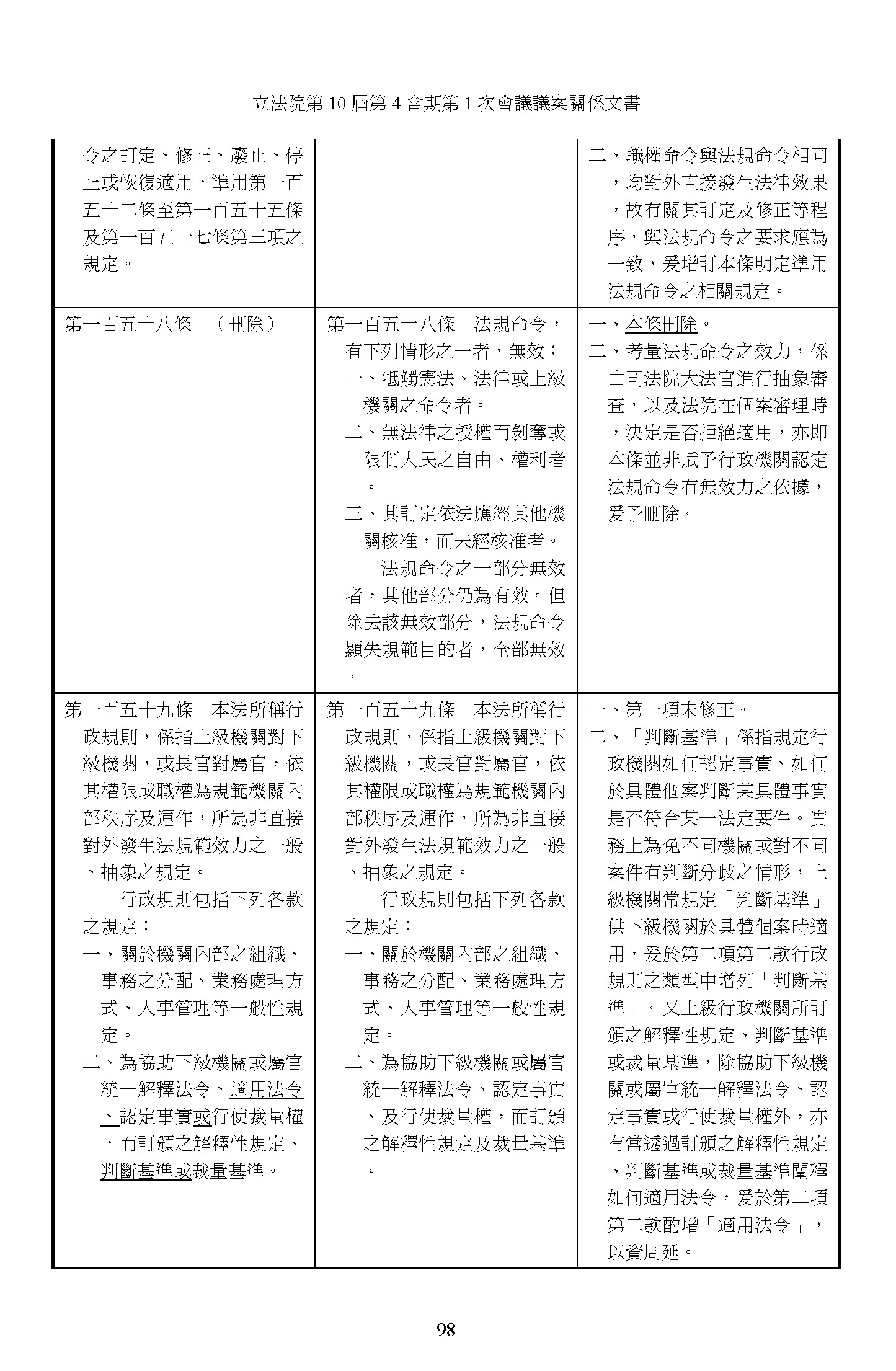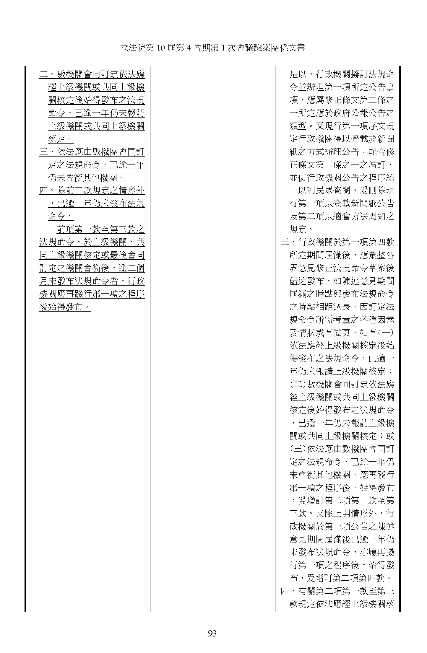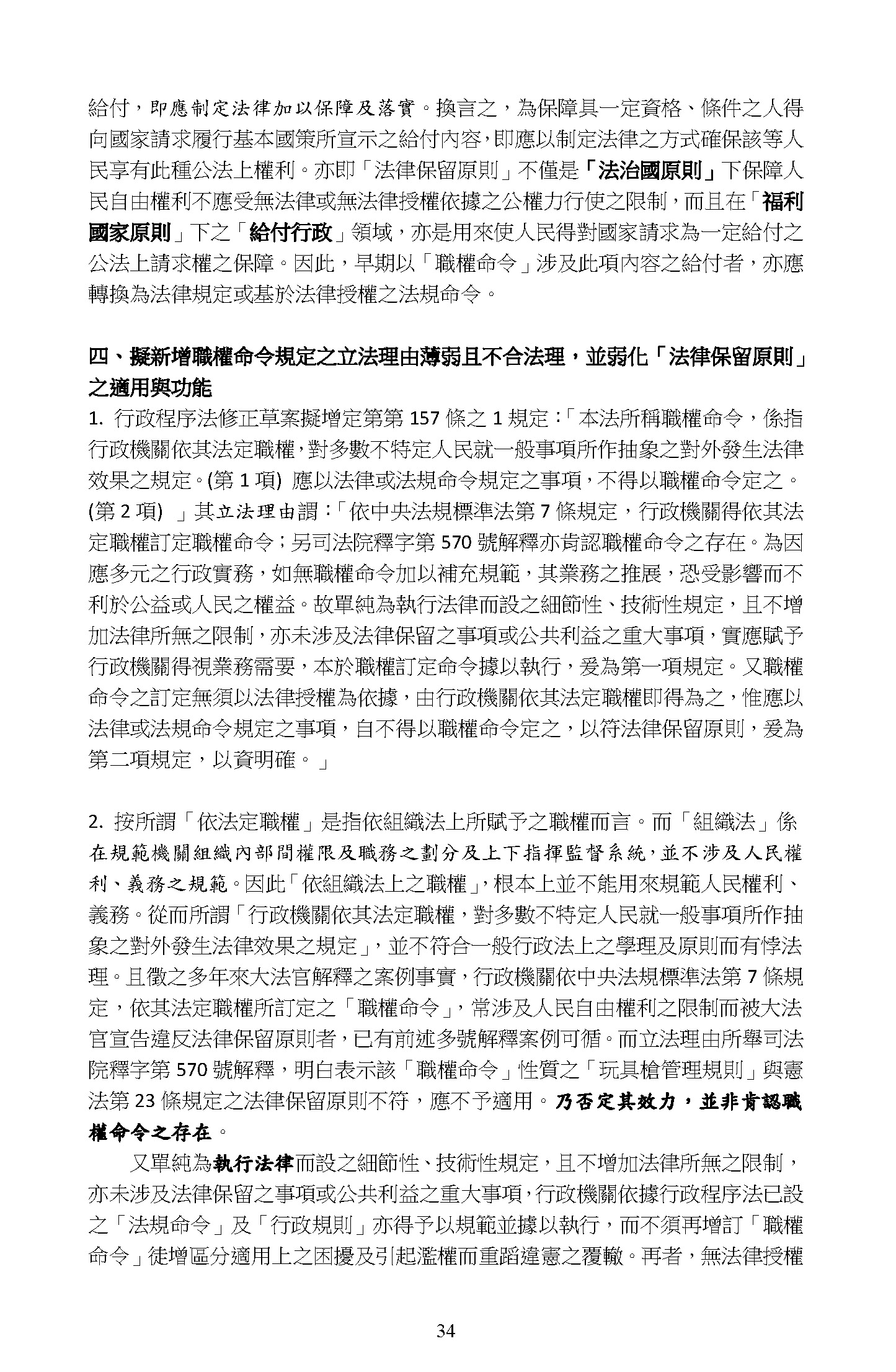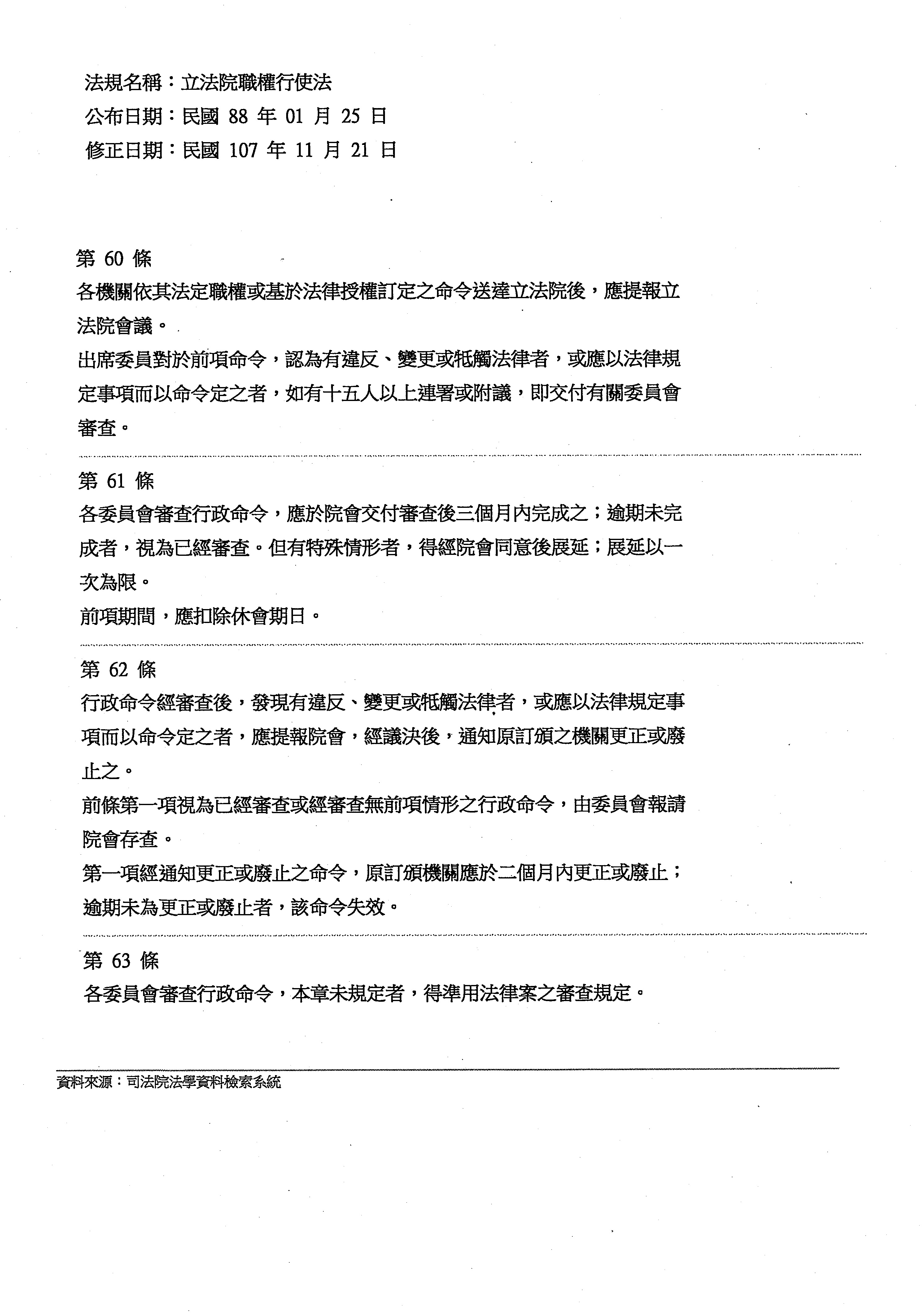 其次,關於監督的部分,目前立法院職權行使法第六十條至第六十三條,已經針對行政命令之監督予以明定。有關職權命令的部分,其實只要符合我們剛剛所提到的框架部分,送立法院備查的話,我們覺得是可以落實監督的機制。