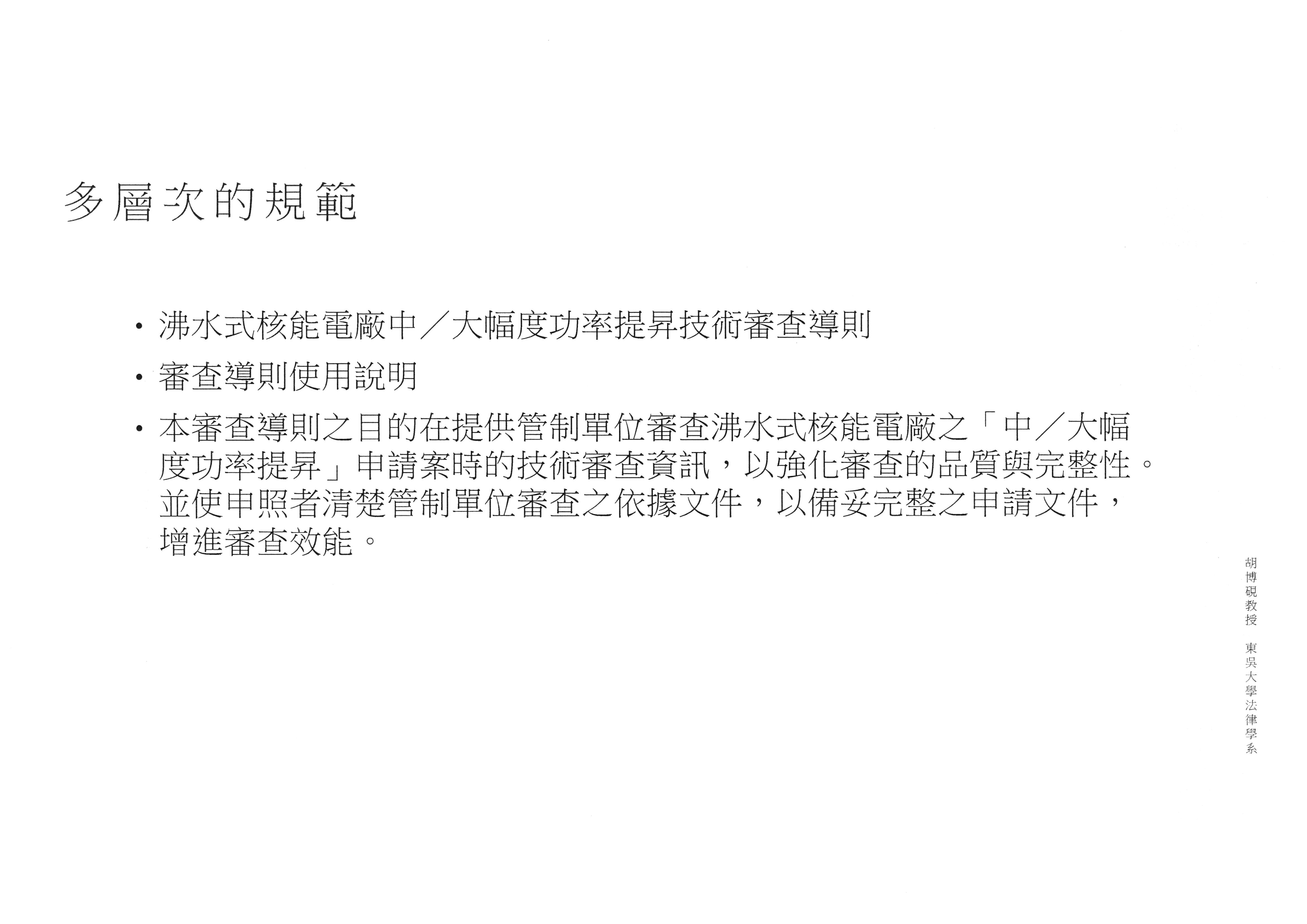 剛才羅局長提到聽證。其實對於聽證,我認為在我們的國家是行不通的,因為根據我國的行政程序法,行政處分的聽證在行政程序法第一百零八條規定中也只是參酌聽證的結果,與美國聽證的效力是完全不一樣的,所以我並不很指望聽證會有什麼樣的成效,尤其是公聽這一塊,性質只是「我告訴你這件事」就是了。