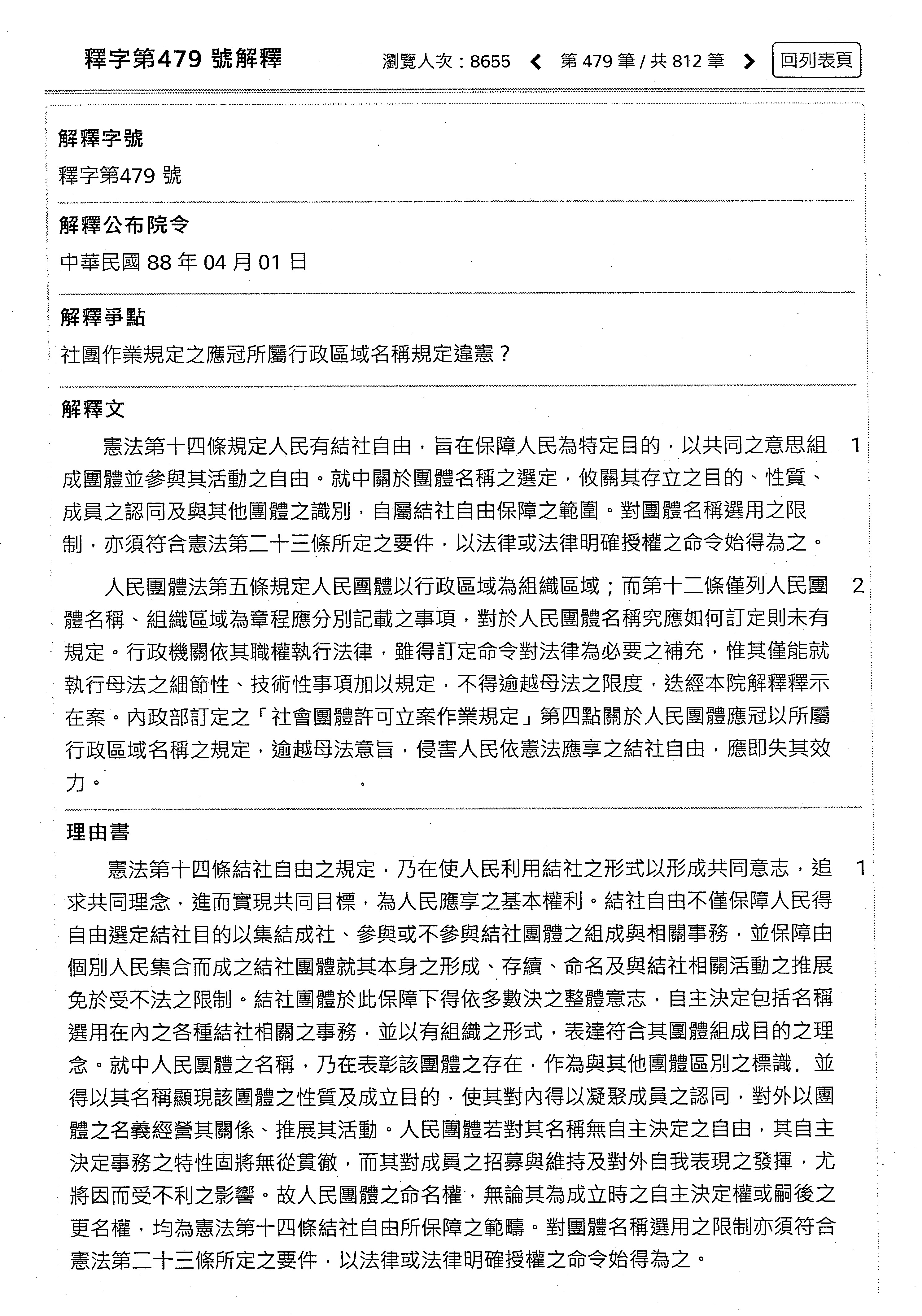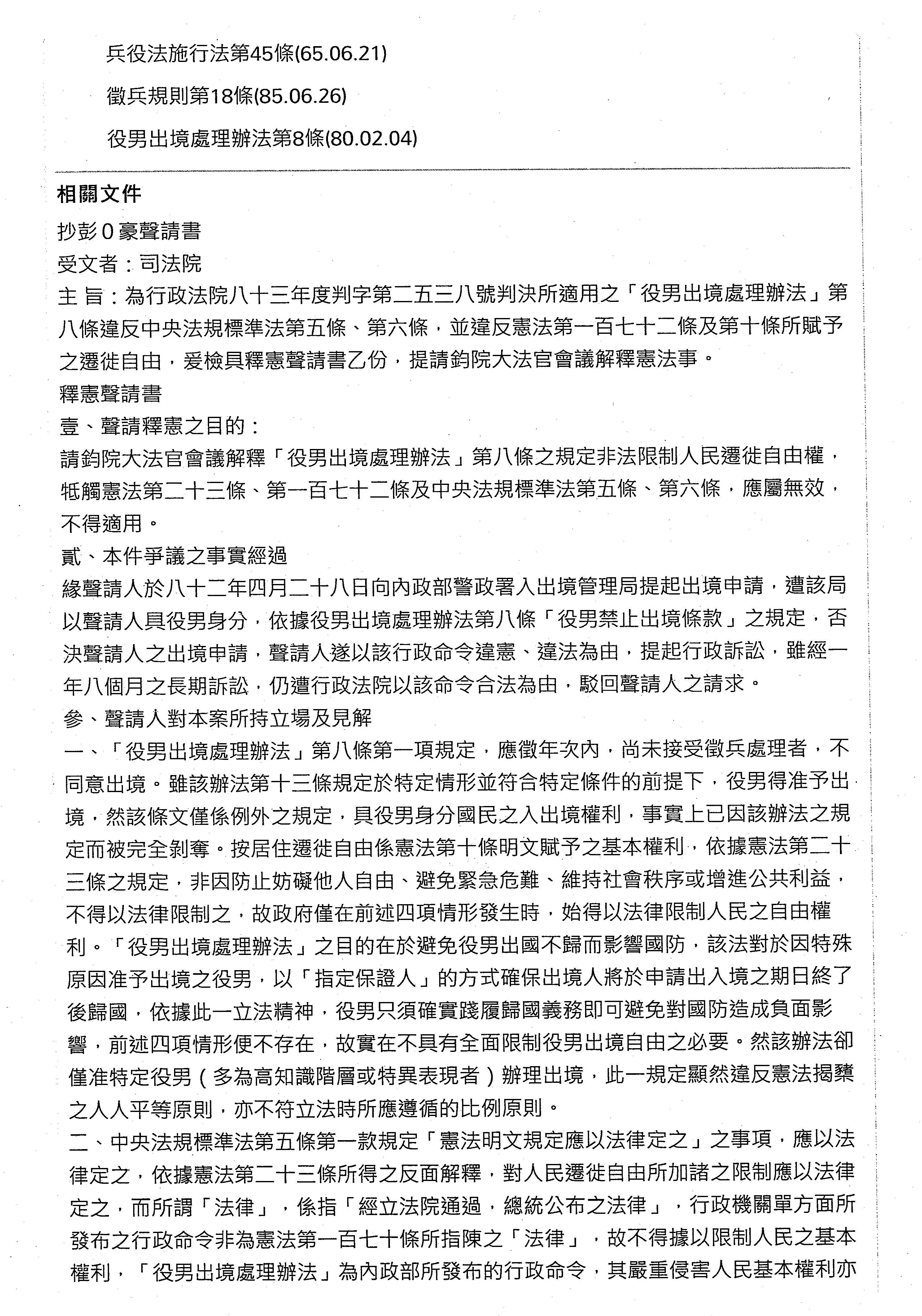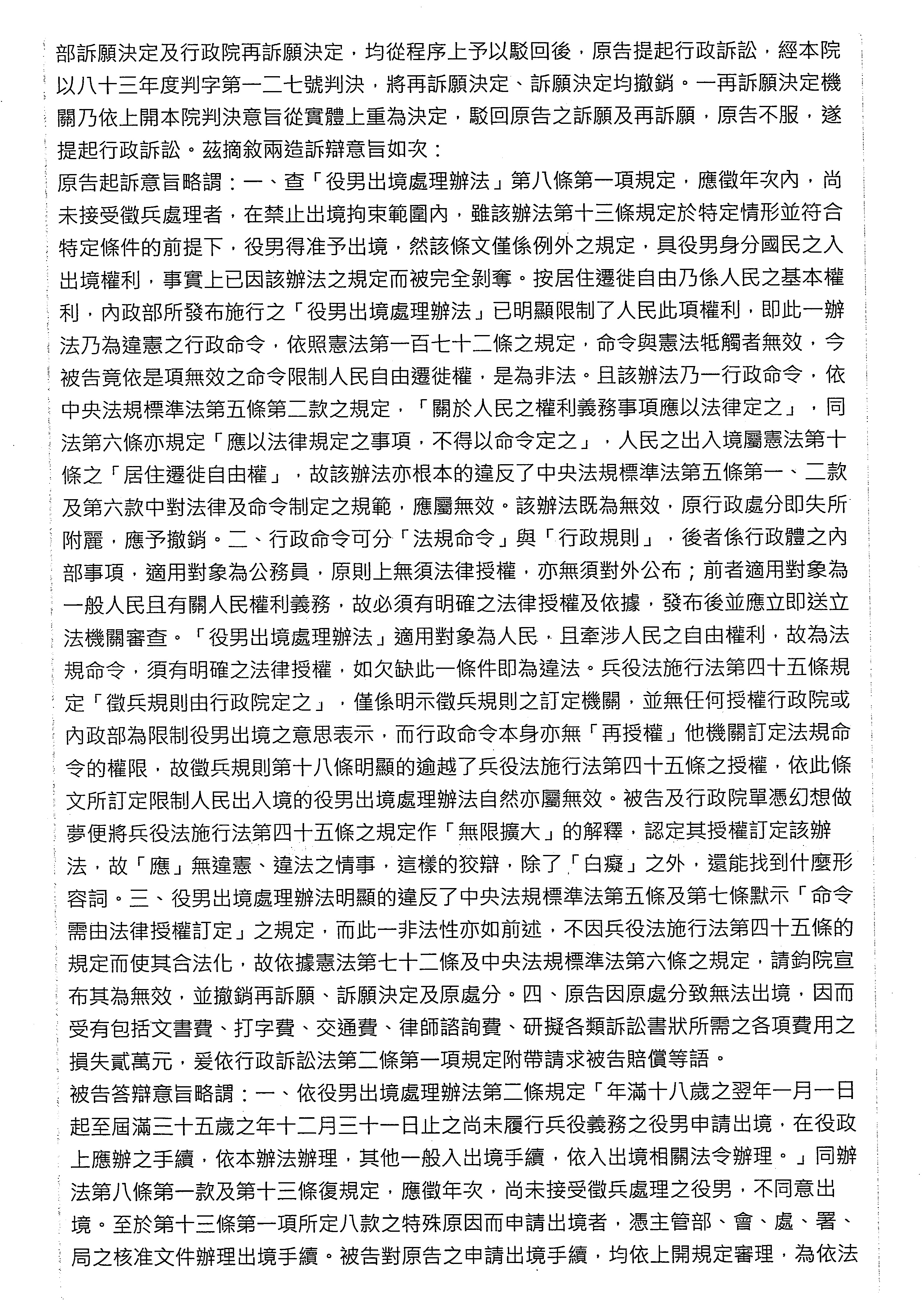另外,在什麼情況下是對外有規範效力,卻不構成權利義務關係又沒有重大公益?什麼叫做輕微不便跟權利義務?簡單來講,譬如有一個小規則規定你在申請的時候要繳交A4的照片,這是輕微的不便還是限制我的權利?A4照片太大了,應該是2吋照片、A4表格,我為什麼不能繳1吋的照片?1吋跟2吋有沒有影響權利?我們一般人會覺得沒有,但如果你去看每天都在修圖的人,你就知道有沒有,眼睛大0.1公分,就會對他的權利義務關係影響很大,所以到底什麼是輕微不便?我的意思是說,在什麼情況下可以對外有規範卻不影響人民權利義務?我覺得這個空間也非常小。譬如我這邊舉一個例子,行政院的約僱人員管理辦法,你可能會覺得只是約僱啊!可是在我看來,你其實是管到地方自治團體了,這就不是內部了。因為地方自治團體的用人也被你限制了,所以什麼東西叫做純內部?什麼叫做沒有影響權利義務關係?又例如說,舊的工廠登記規則,因為被大法官宣告違憲,所以後來就制定了工廠管理輔導法,這就是一個很好的、正面的例子,這是我的看法。
