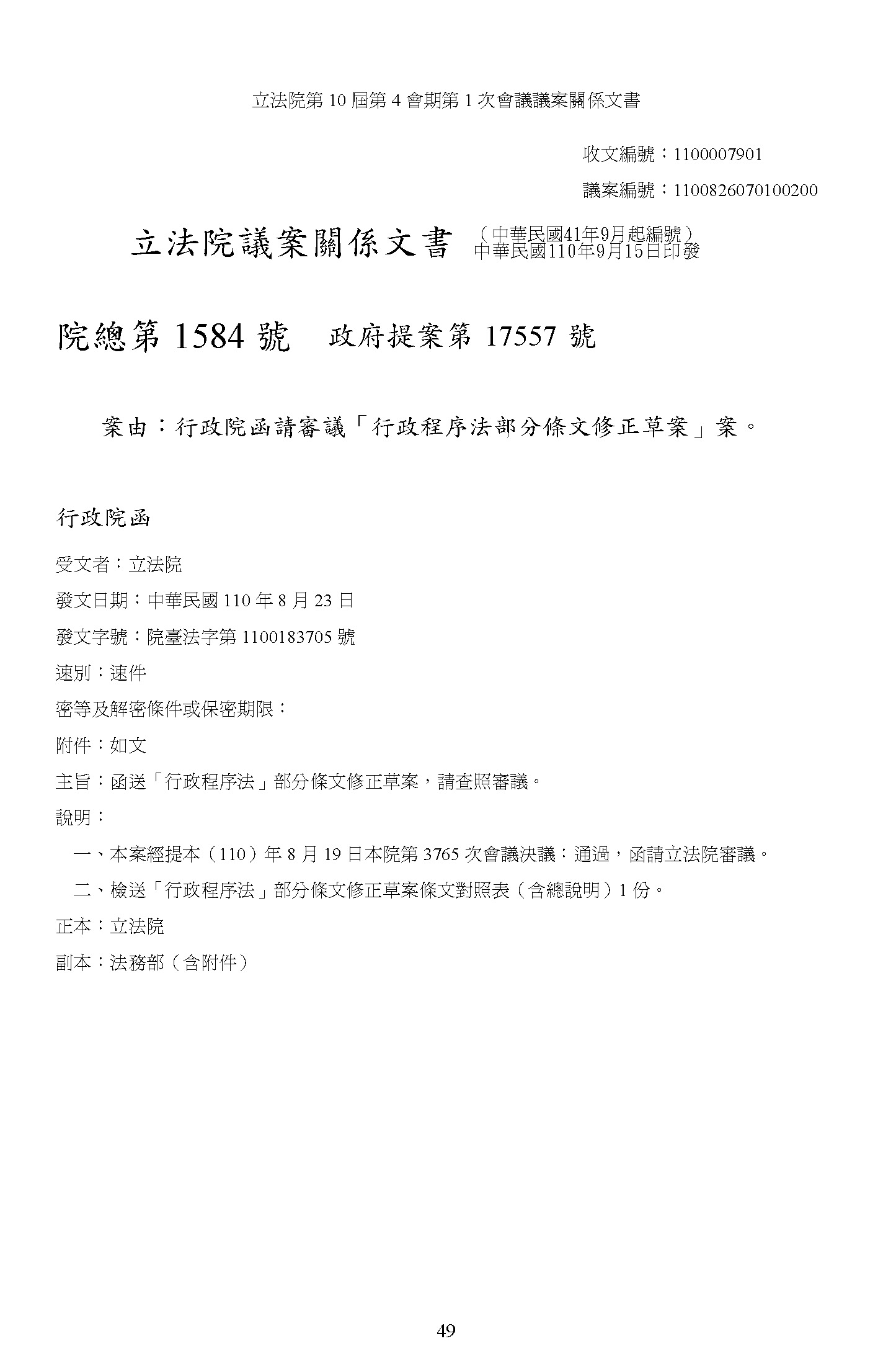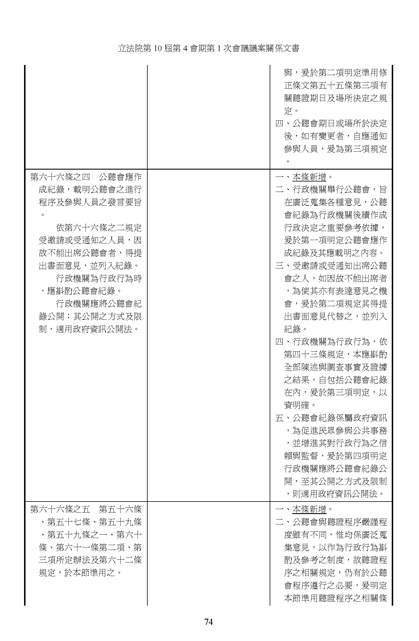 楊參事淑玲:主席、各位學者專家以及各機關代表。非常榮幸能夠代表參加今天的公聽會,也聆聽了非常多學者專家的寶貴意見,受益良多,謹就今天學者專家所提出來的幾點意見,我們做簡單的回應。第一點,剛剛主席談到,研考會66年委託進行的行政程序法研究,以及78年經建會委託翁老師進行的行政程序法之立法研究,這個部分確實是都有進行相關的研究,不過行政部門仍然處於委託研究的階段,還沒有進入實質的立法程序,之後是由法務部負責行政程序法修法的草擬工作。