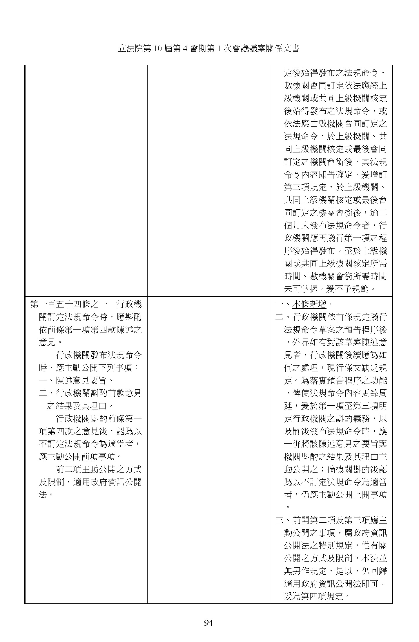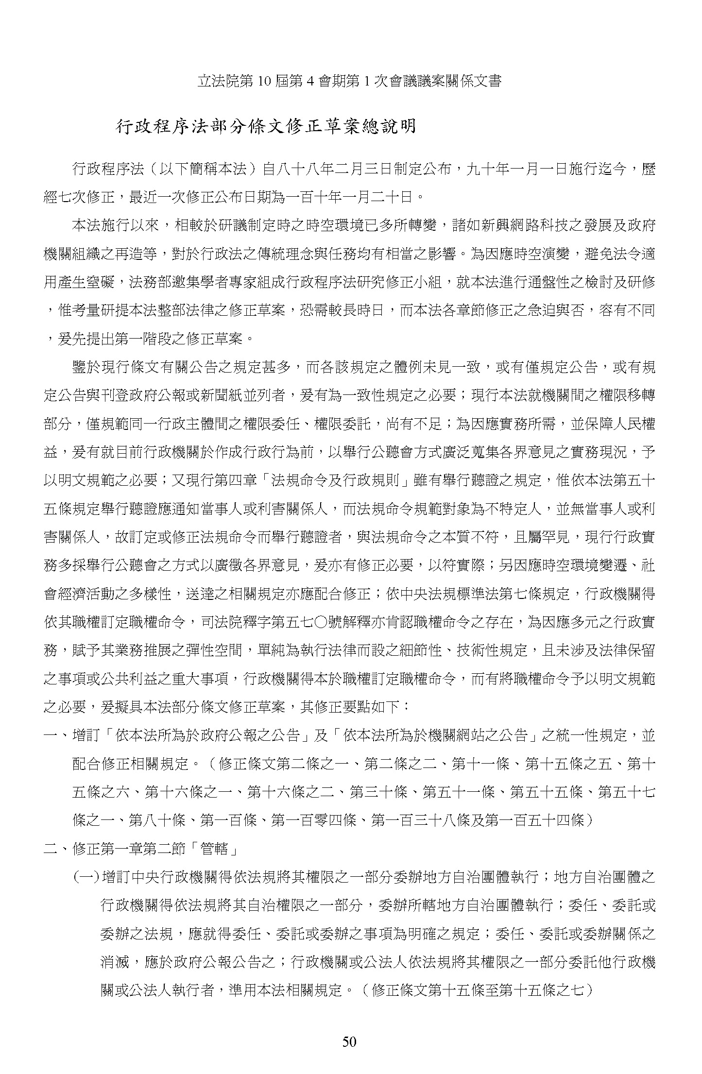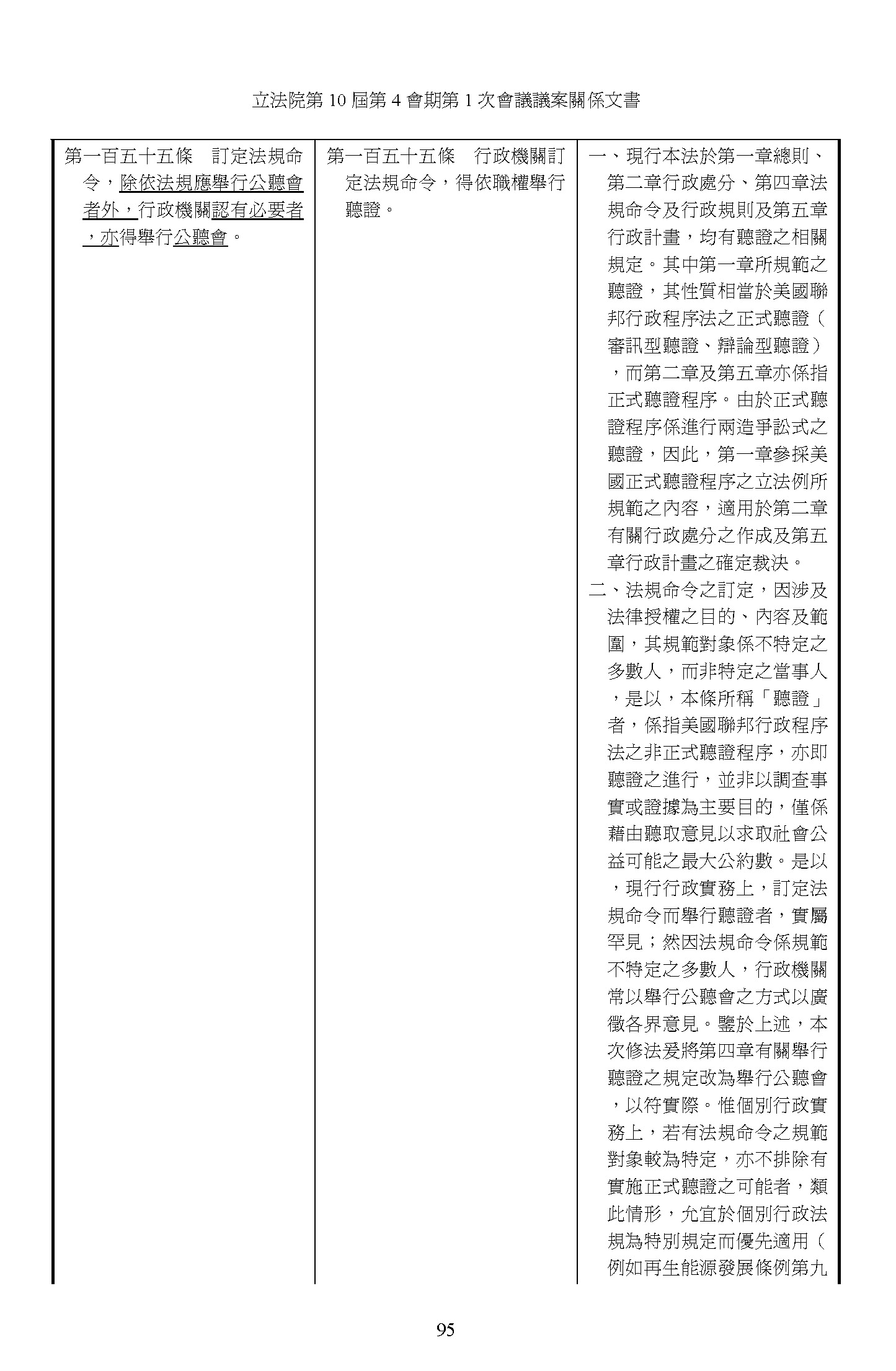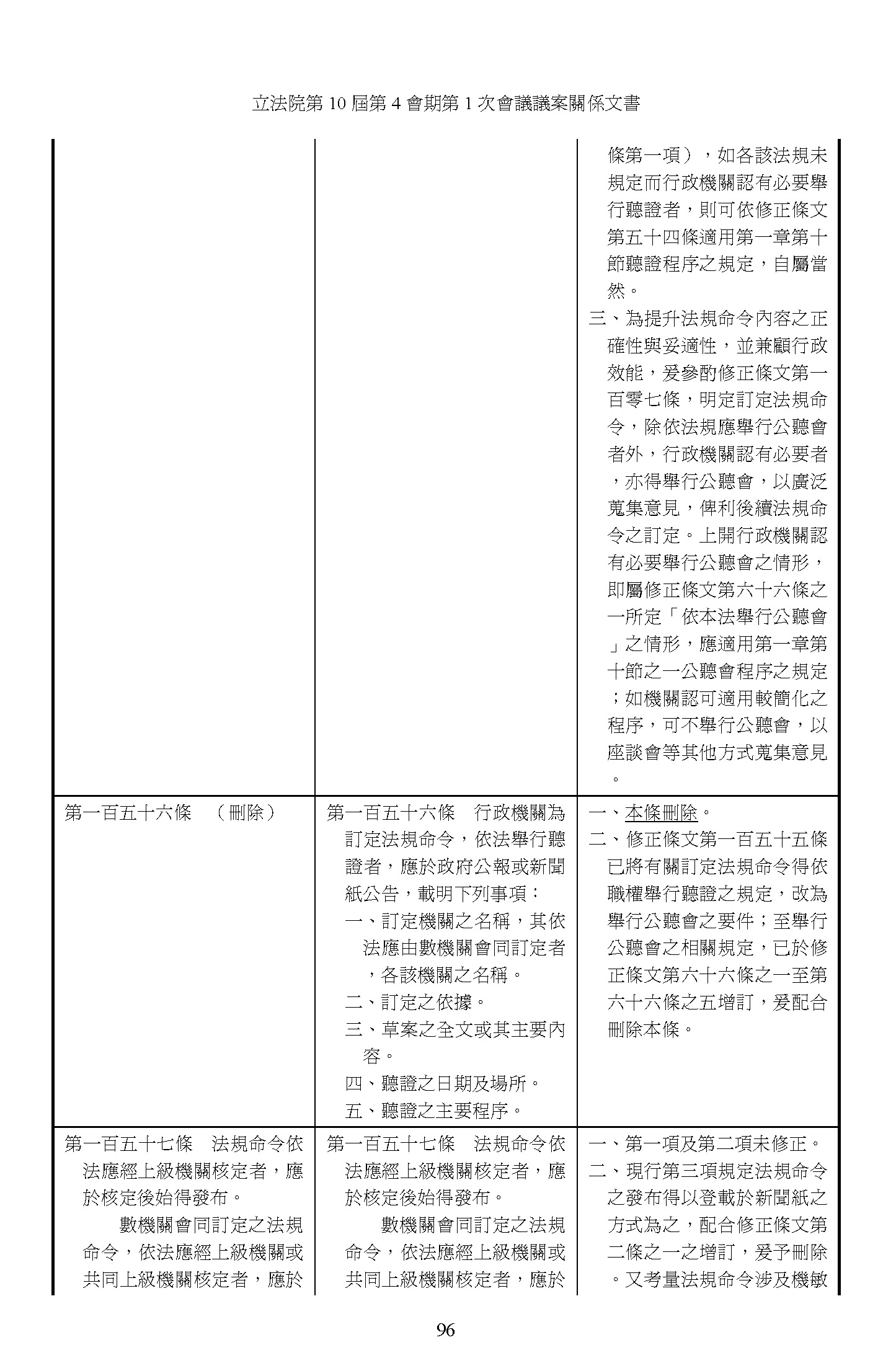 立法院第10屆第4會期司法及法制委員會「行政程序法增訂職權命令之合憲性及民主監督機制爭議」公聽會會議紀錄