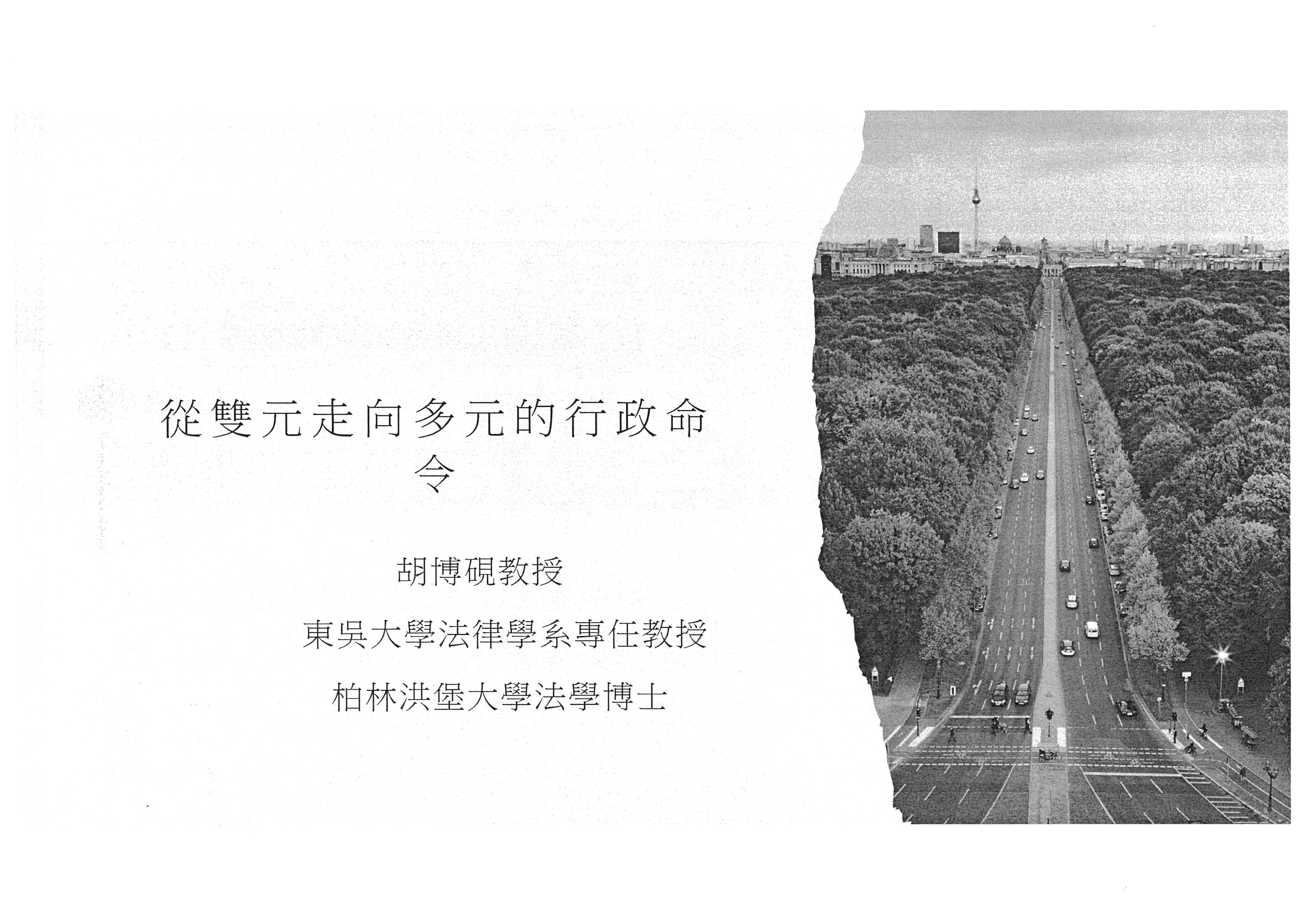 陳清秀教授:主席、各位委員、各位先進,大家好!很榮幸有這個機會參與這場公聽會。今天這場關於職權命令的公聽會主要涉及的是行政機關職權命令這項制度會不會有擴權、濫權、甚至侵害人民權利的情況,有必要進一步探討。
