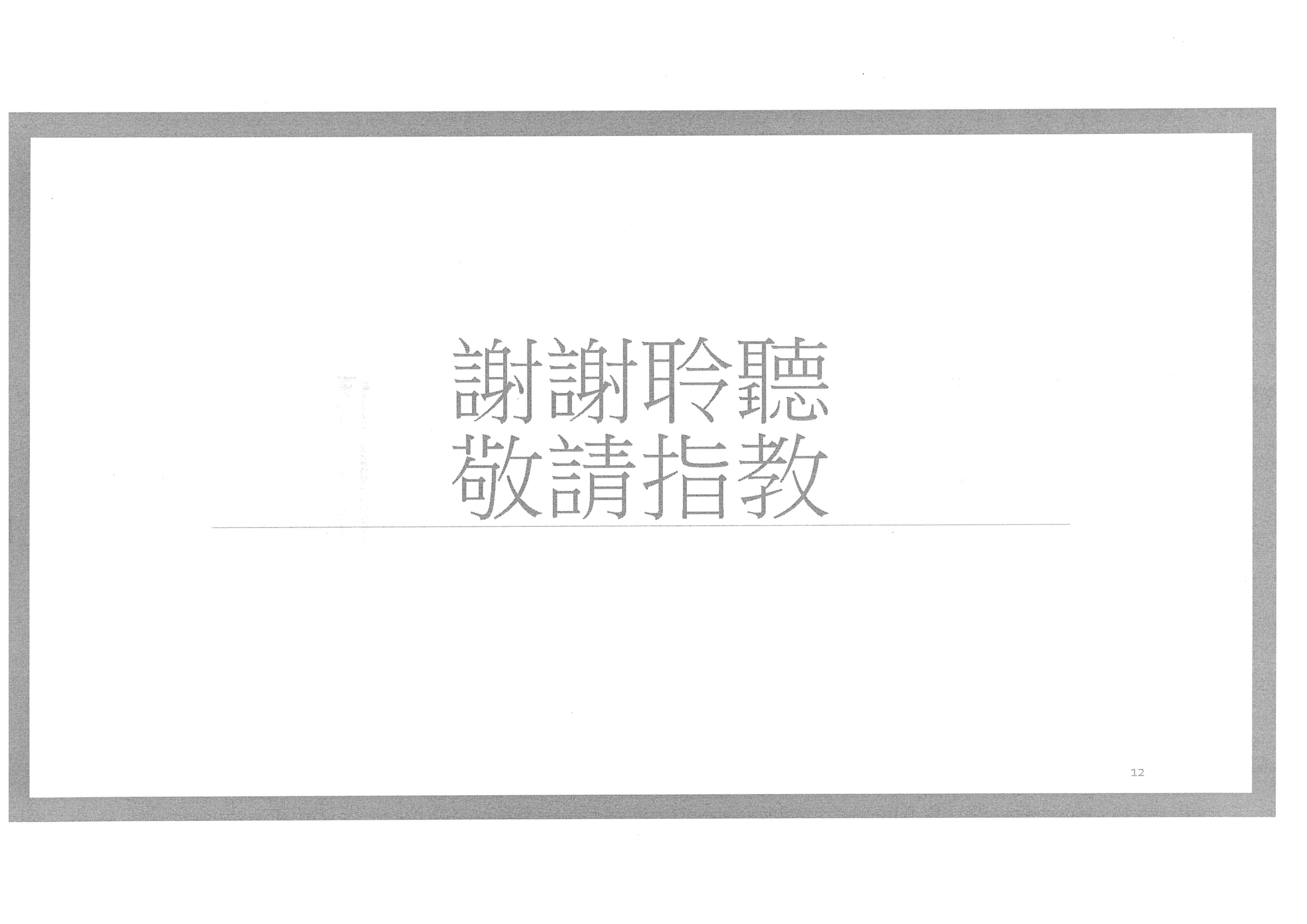 以上是我個人提出的意見,剛好10分鐘到了,謝謝各位。