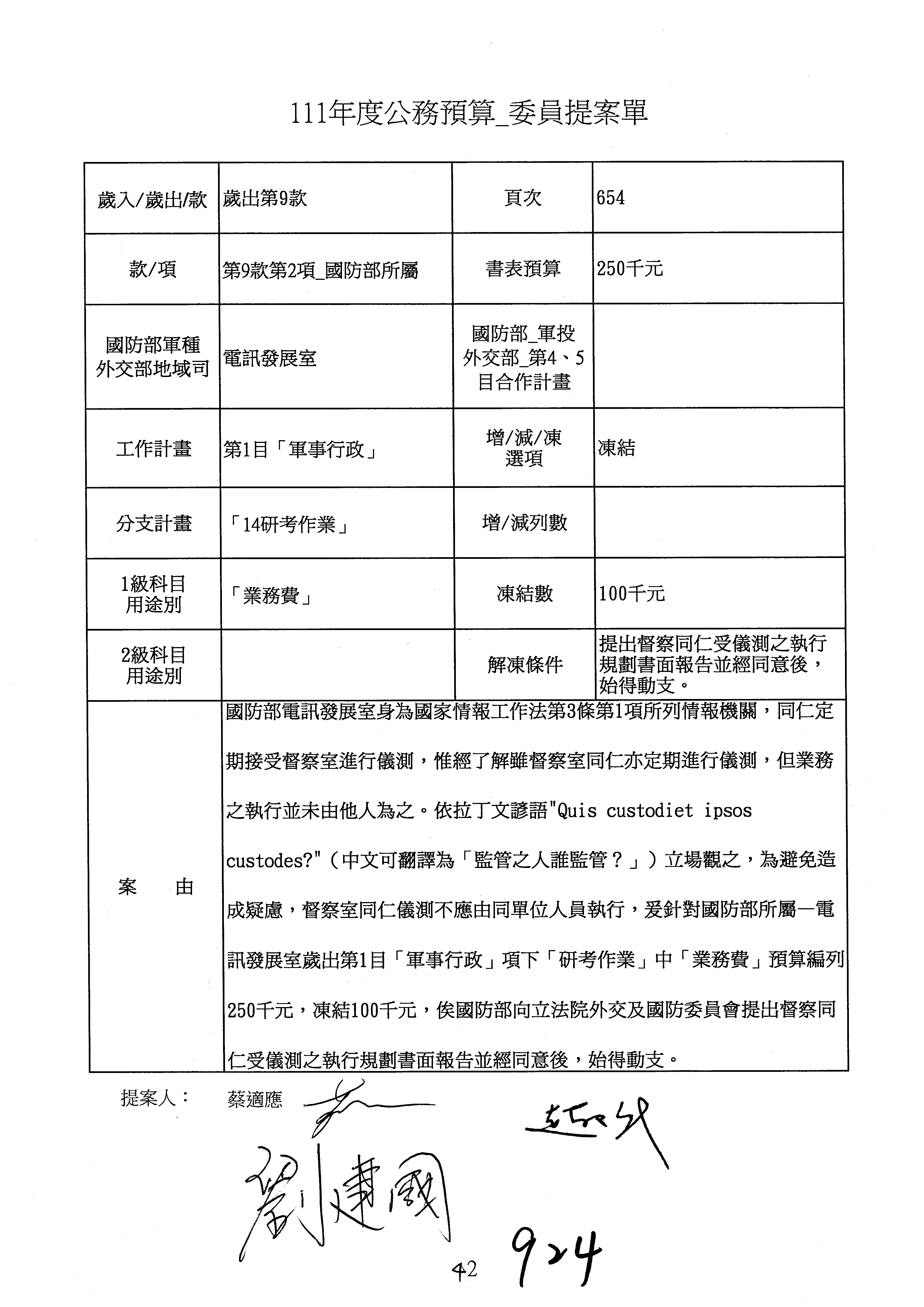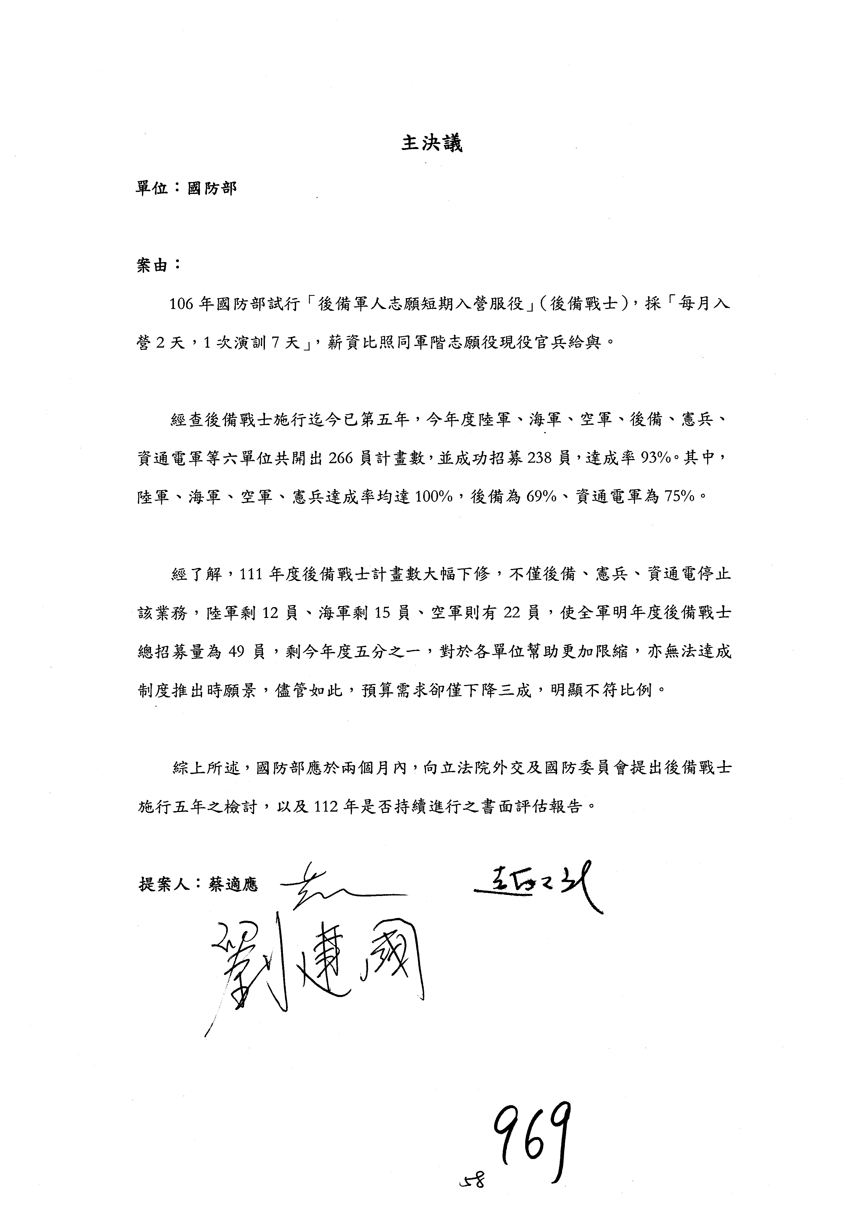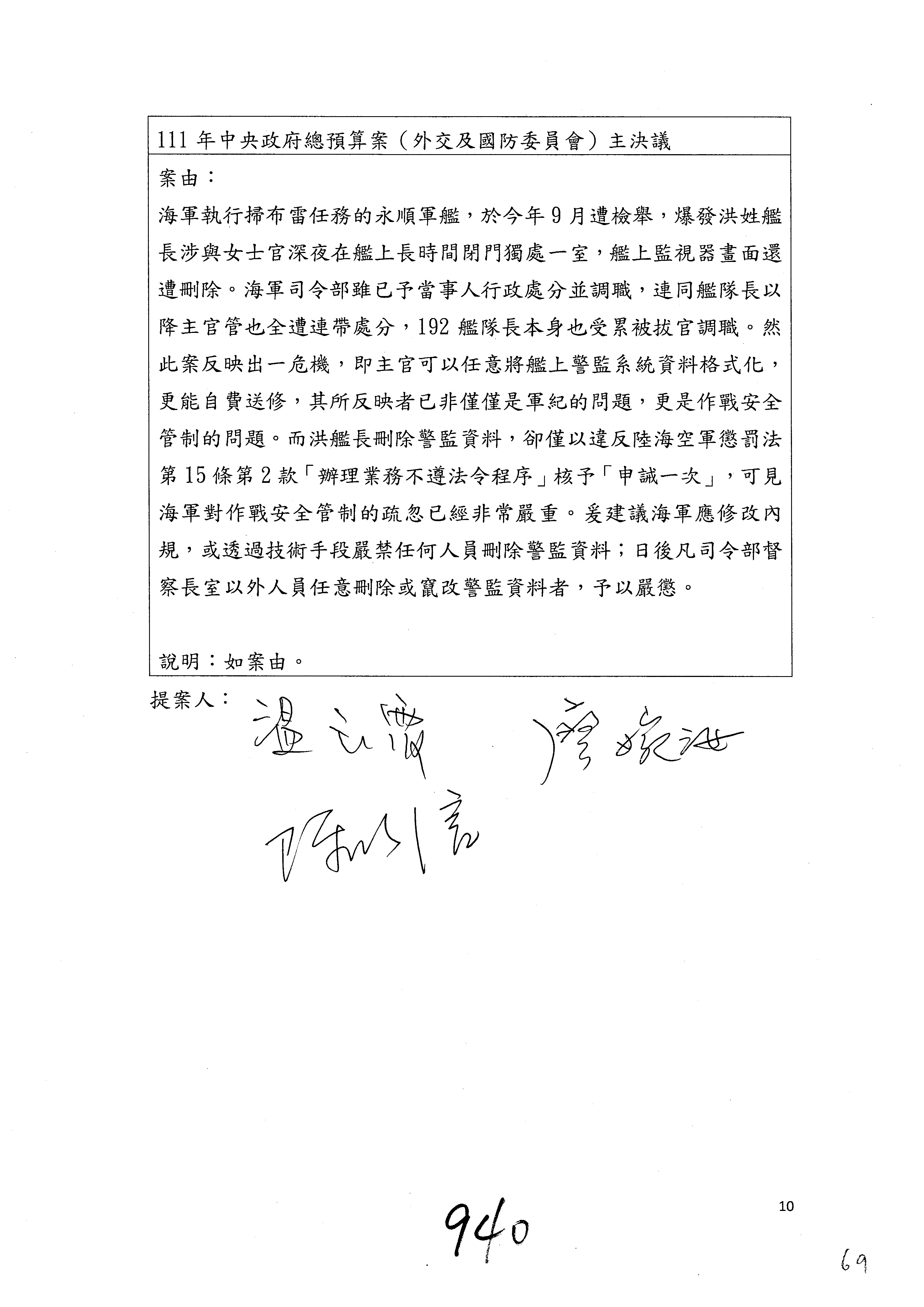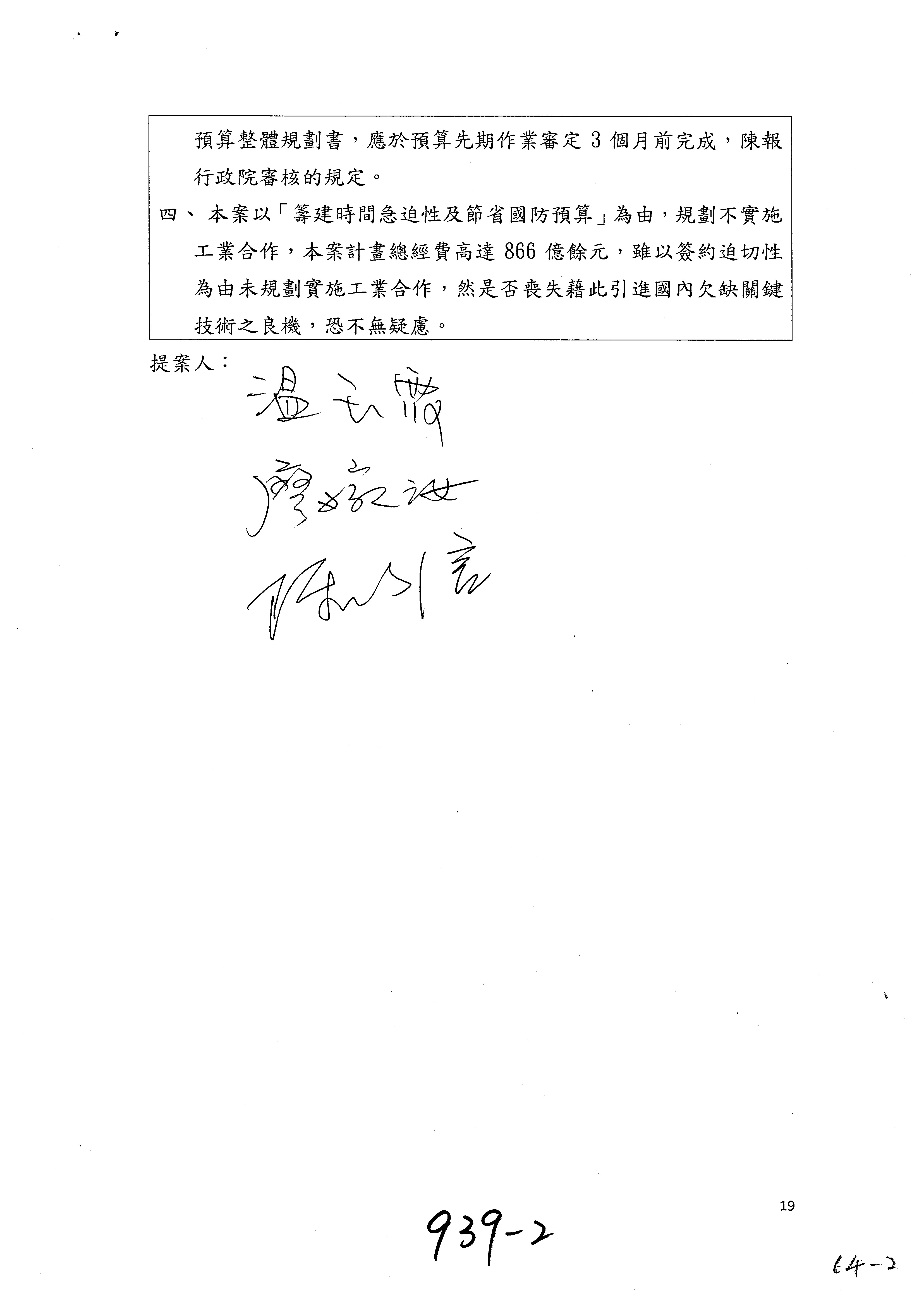 立法院第10屆第4會期外交及國防委員會第19次全體委員會議紀錄