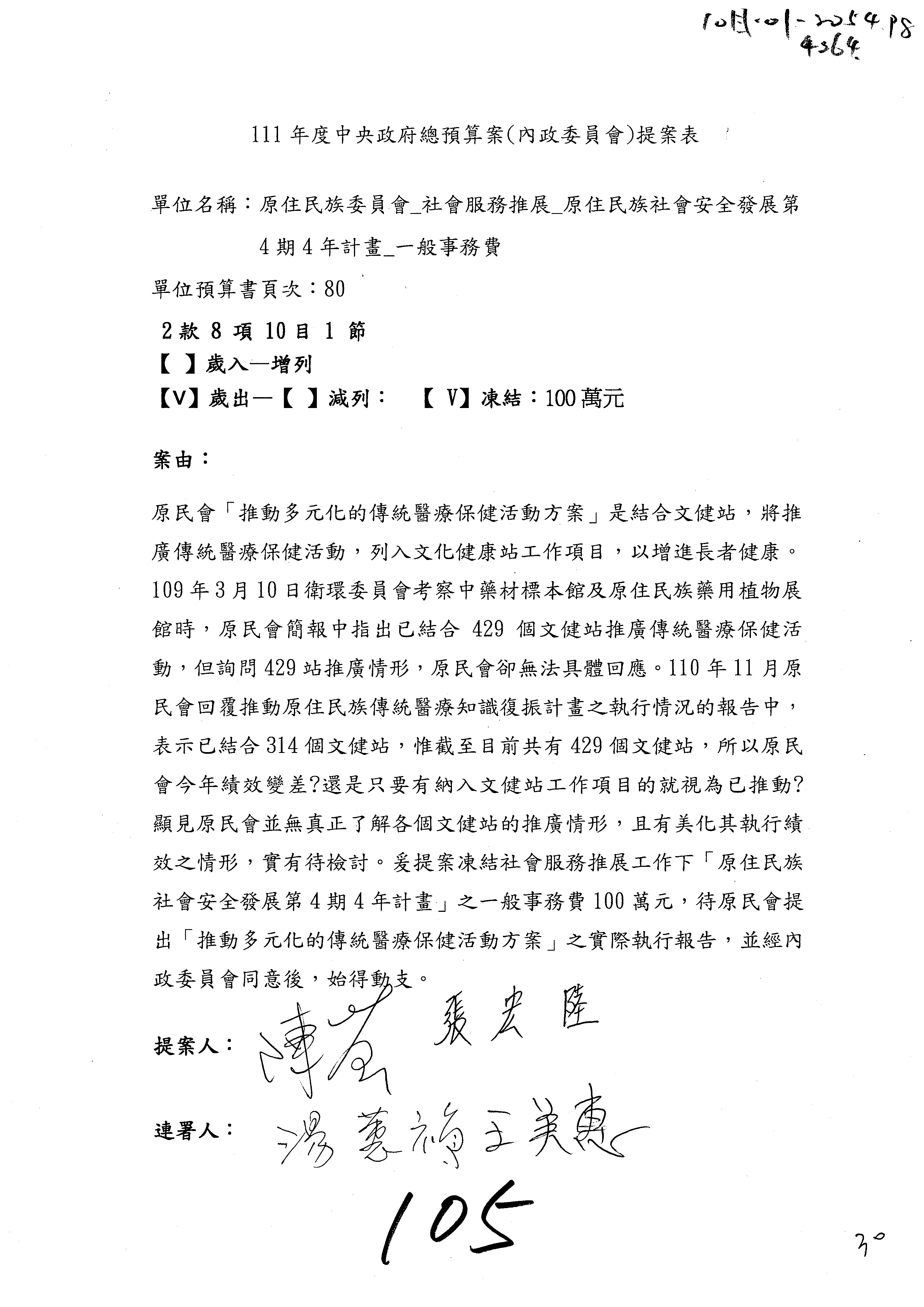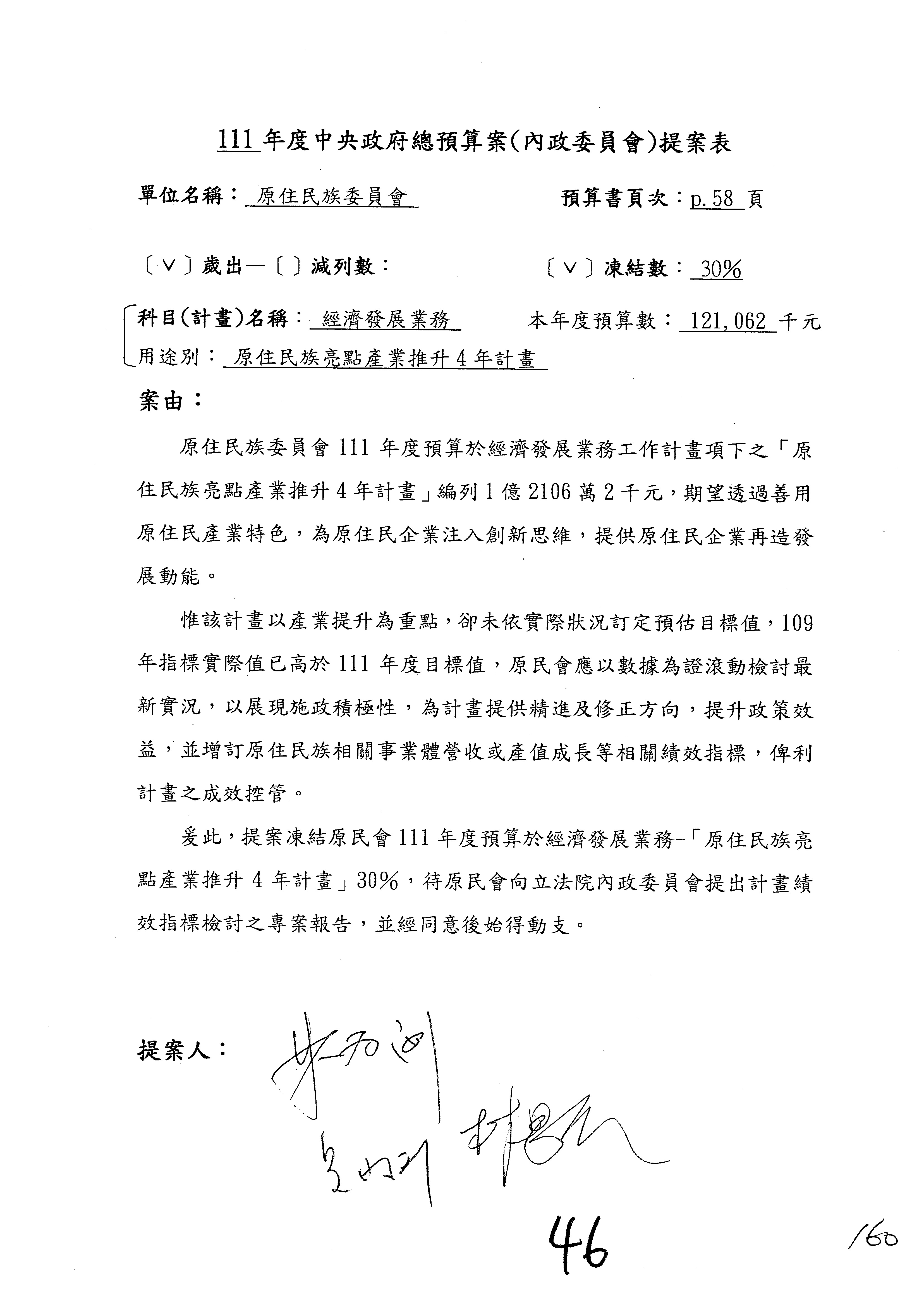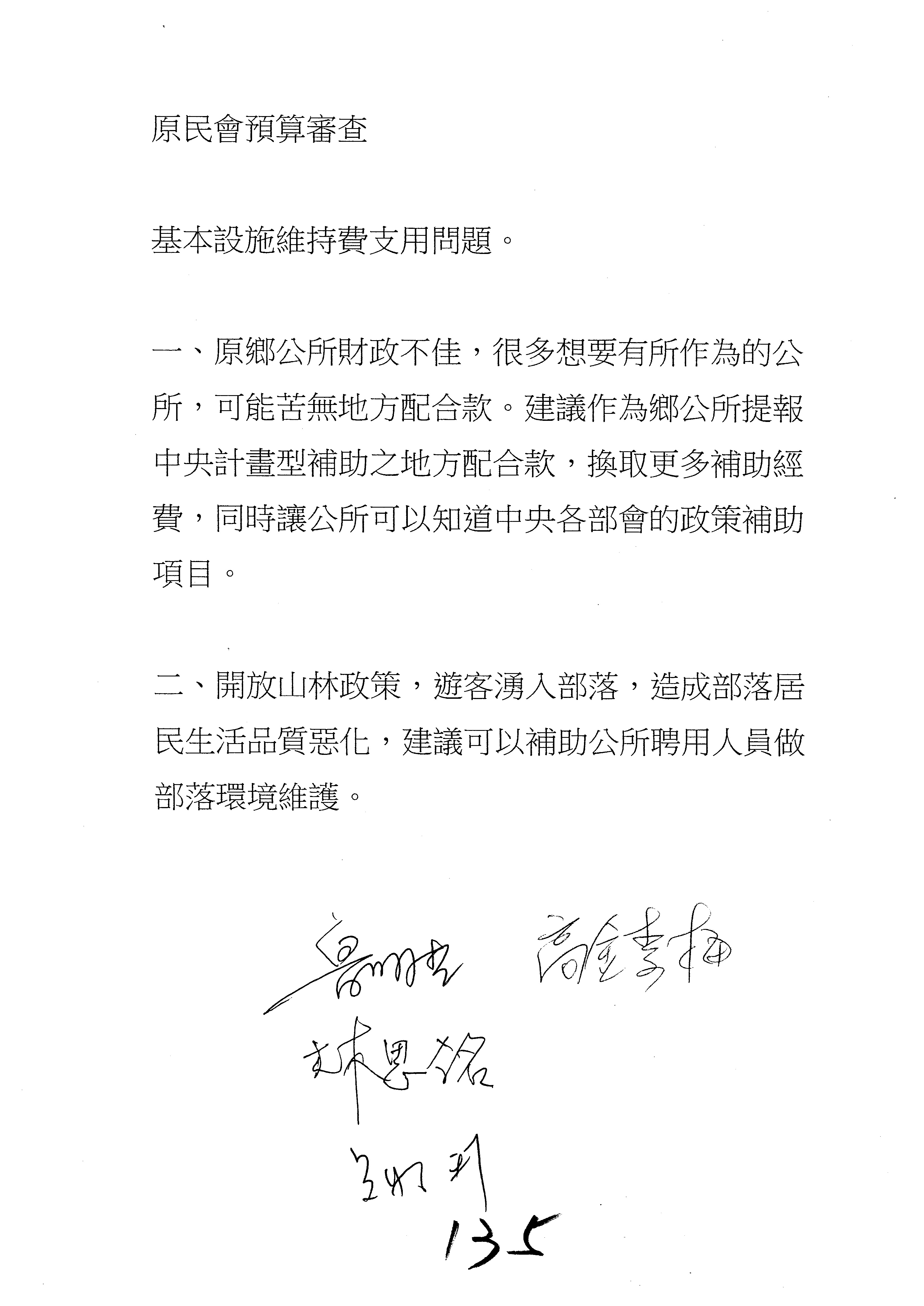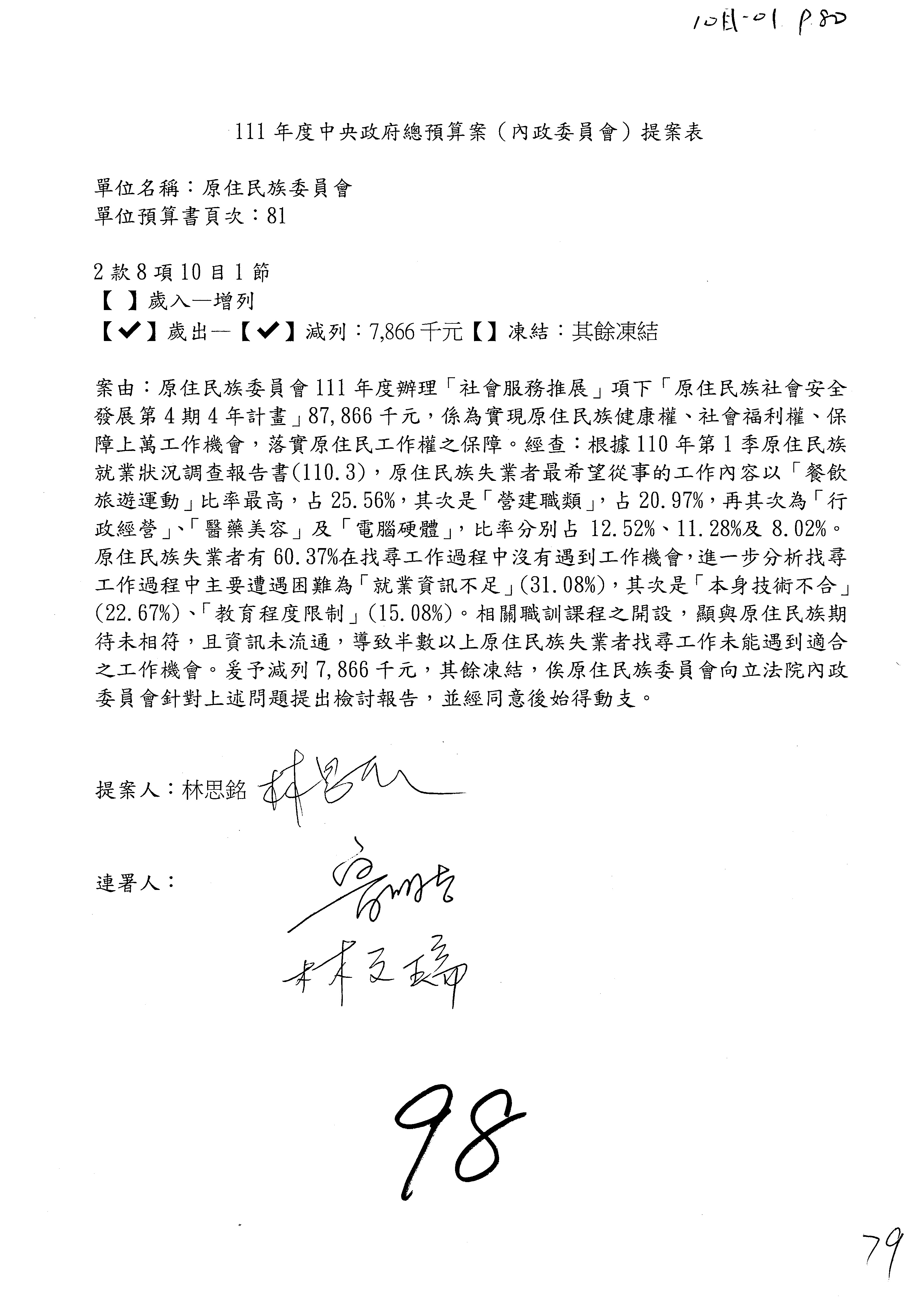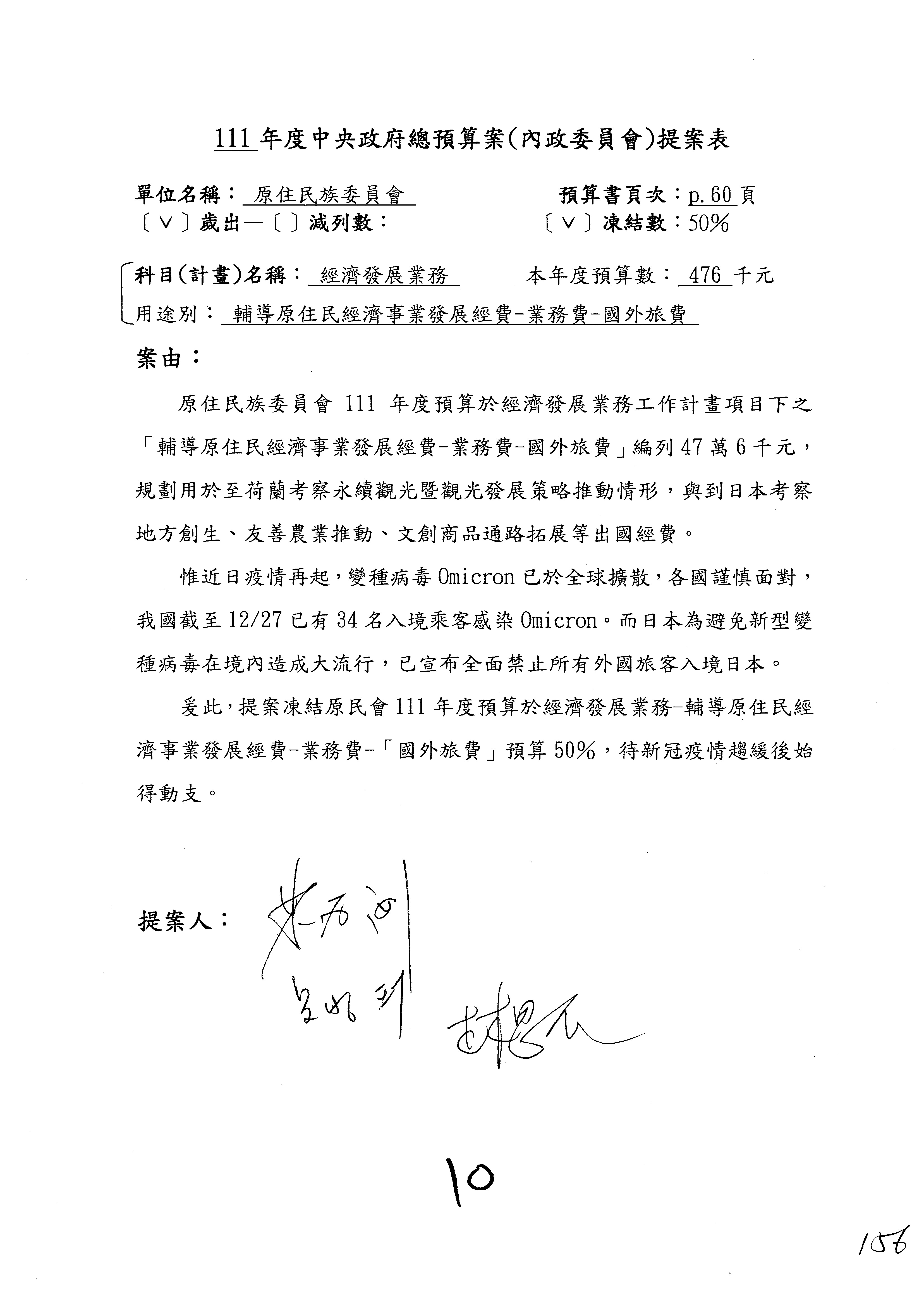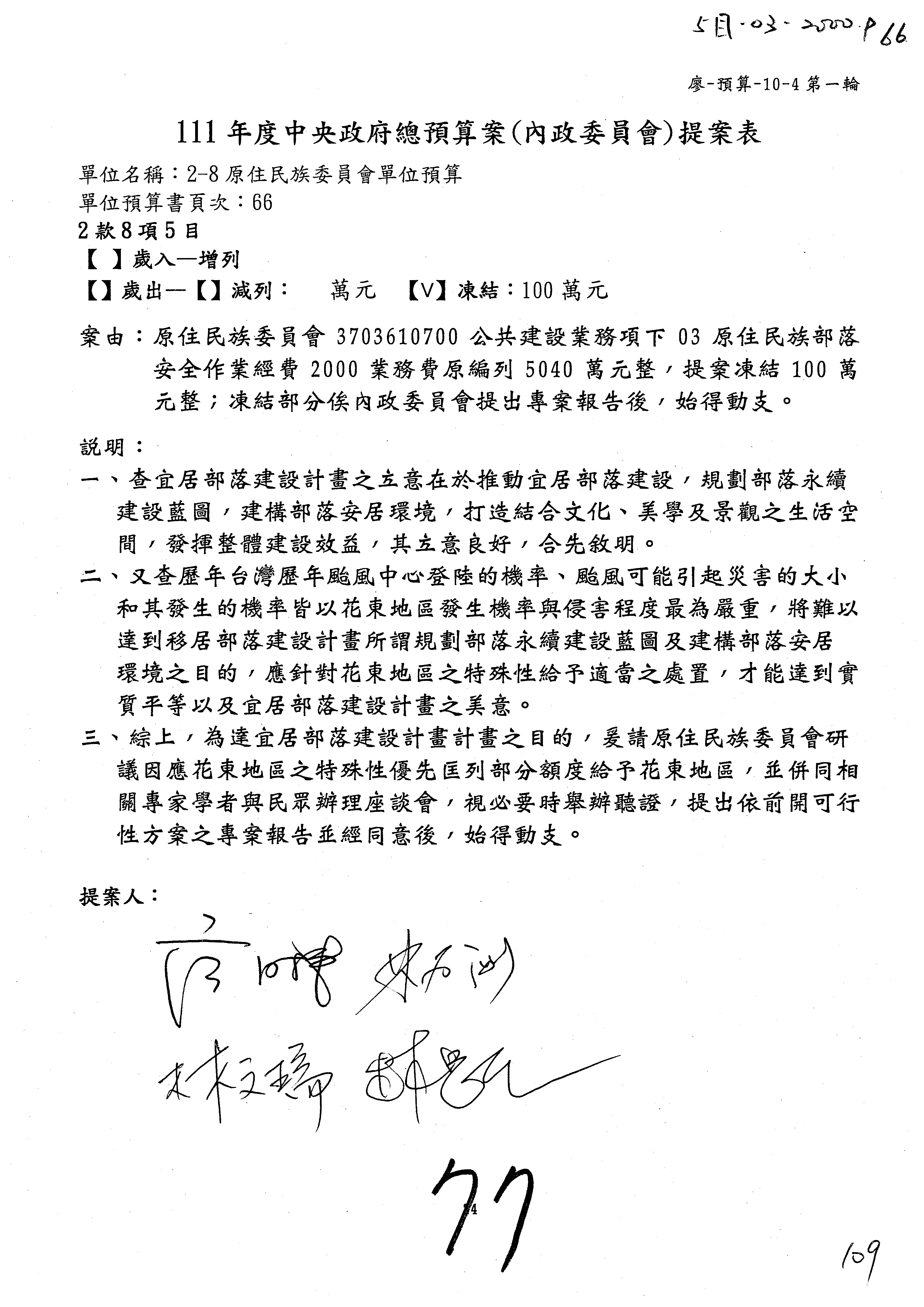 主席:好,跟大家先宣告一下,110年度中央政府總預算案關於原住民族委員會、原住民族文化發展中心預算,詢答的部分已經在110年12月1日完成,今天就直接進行預算之處理。