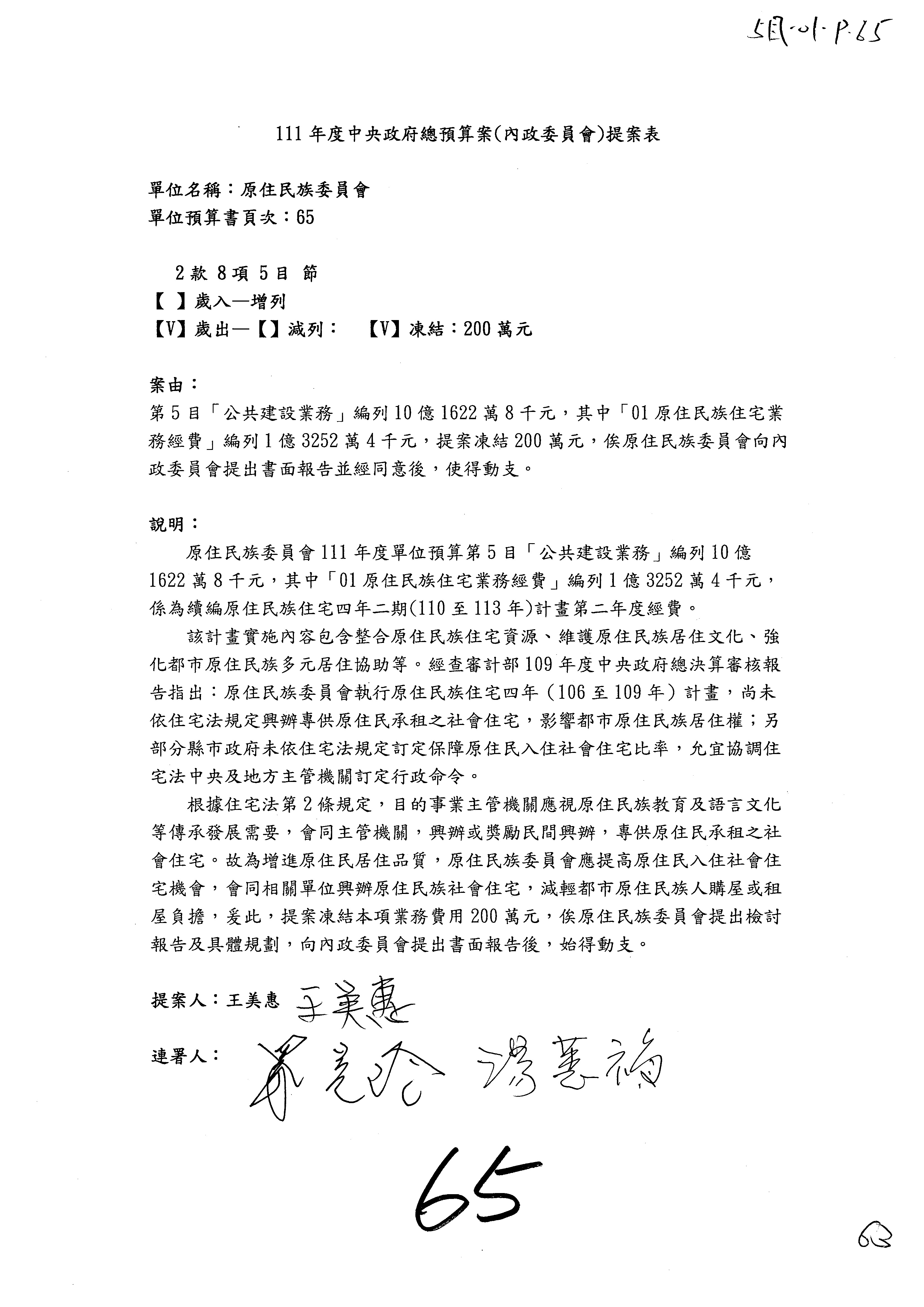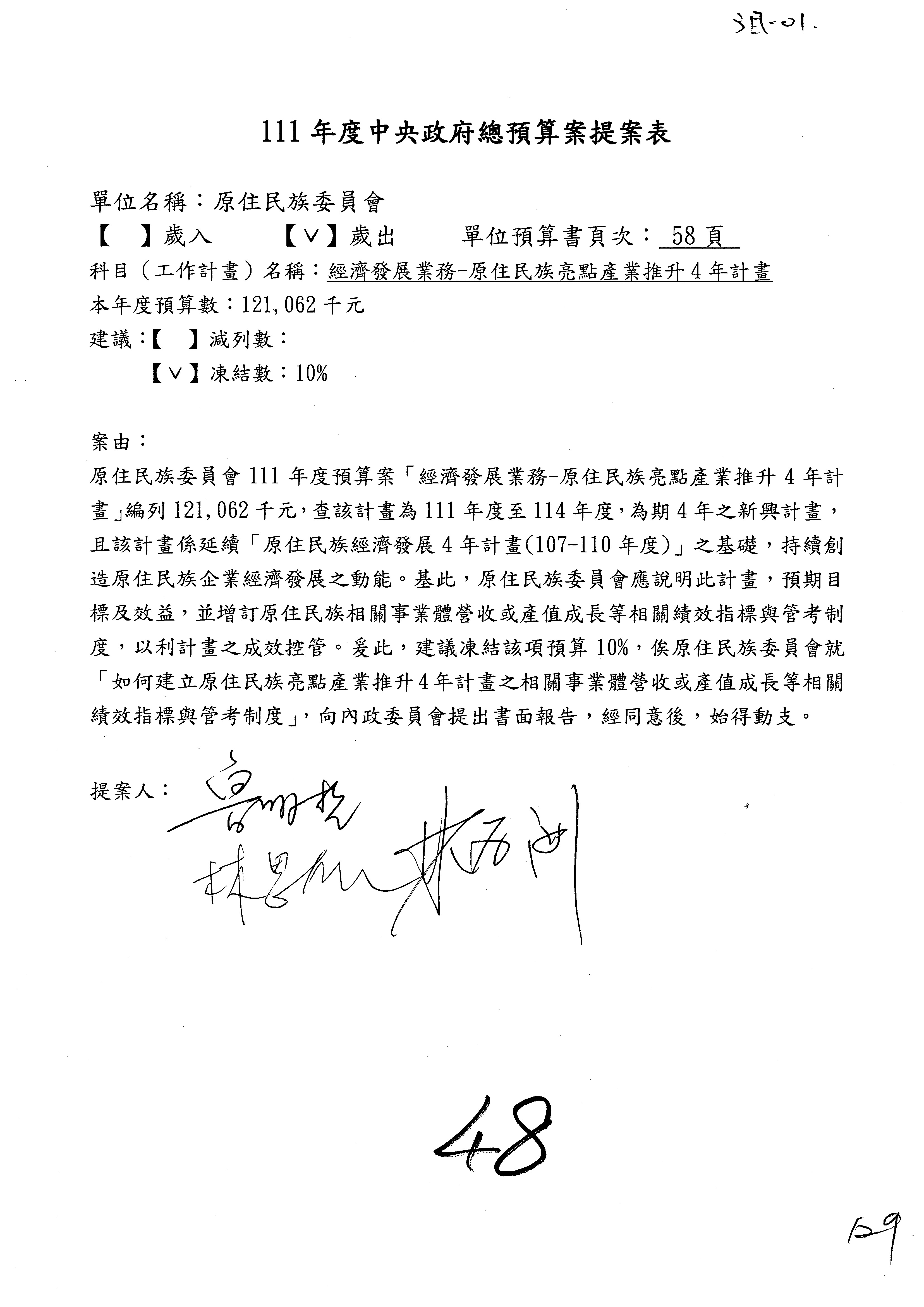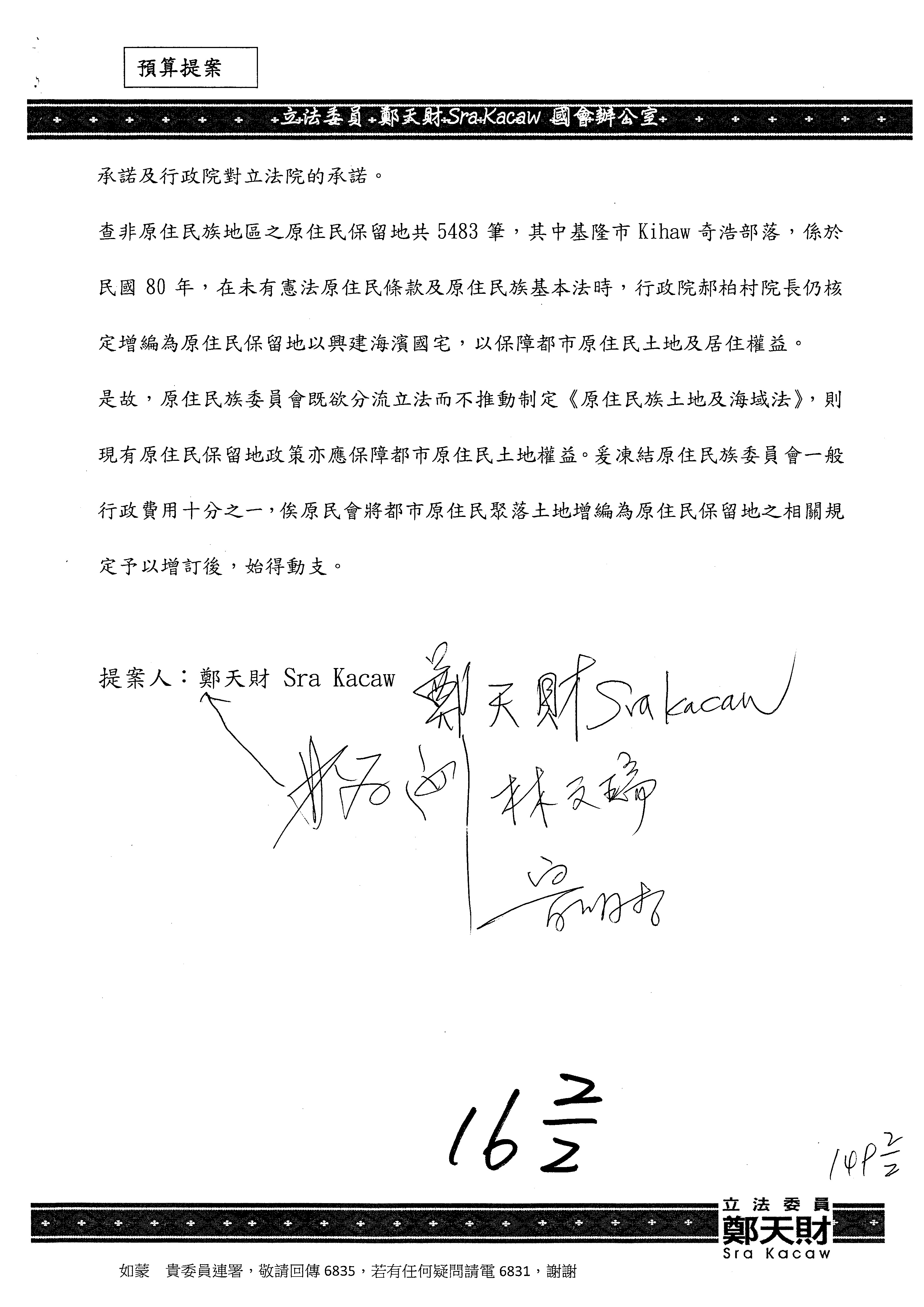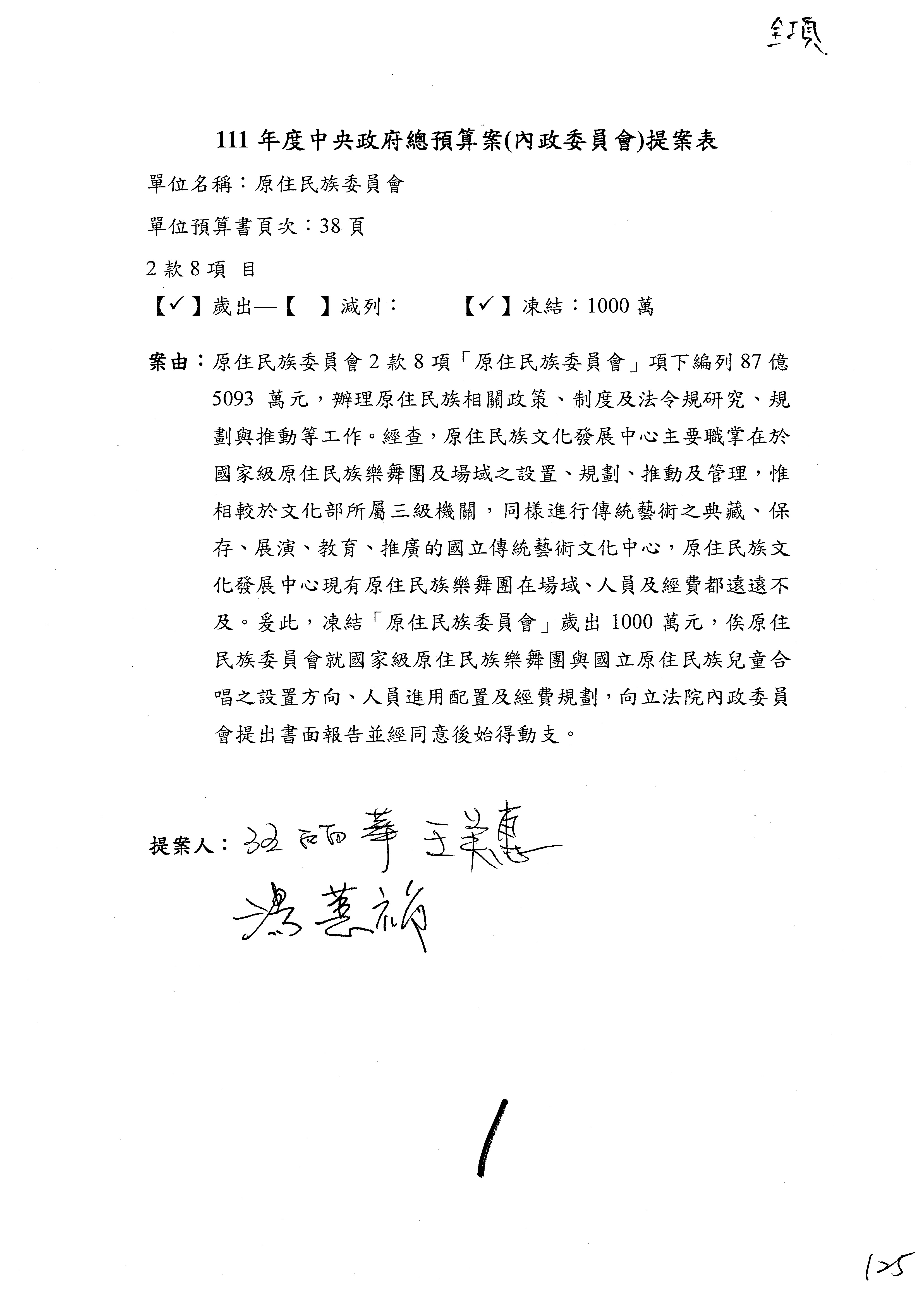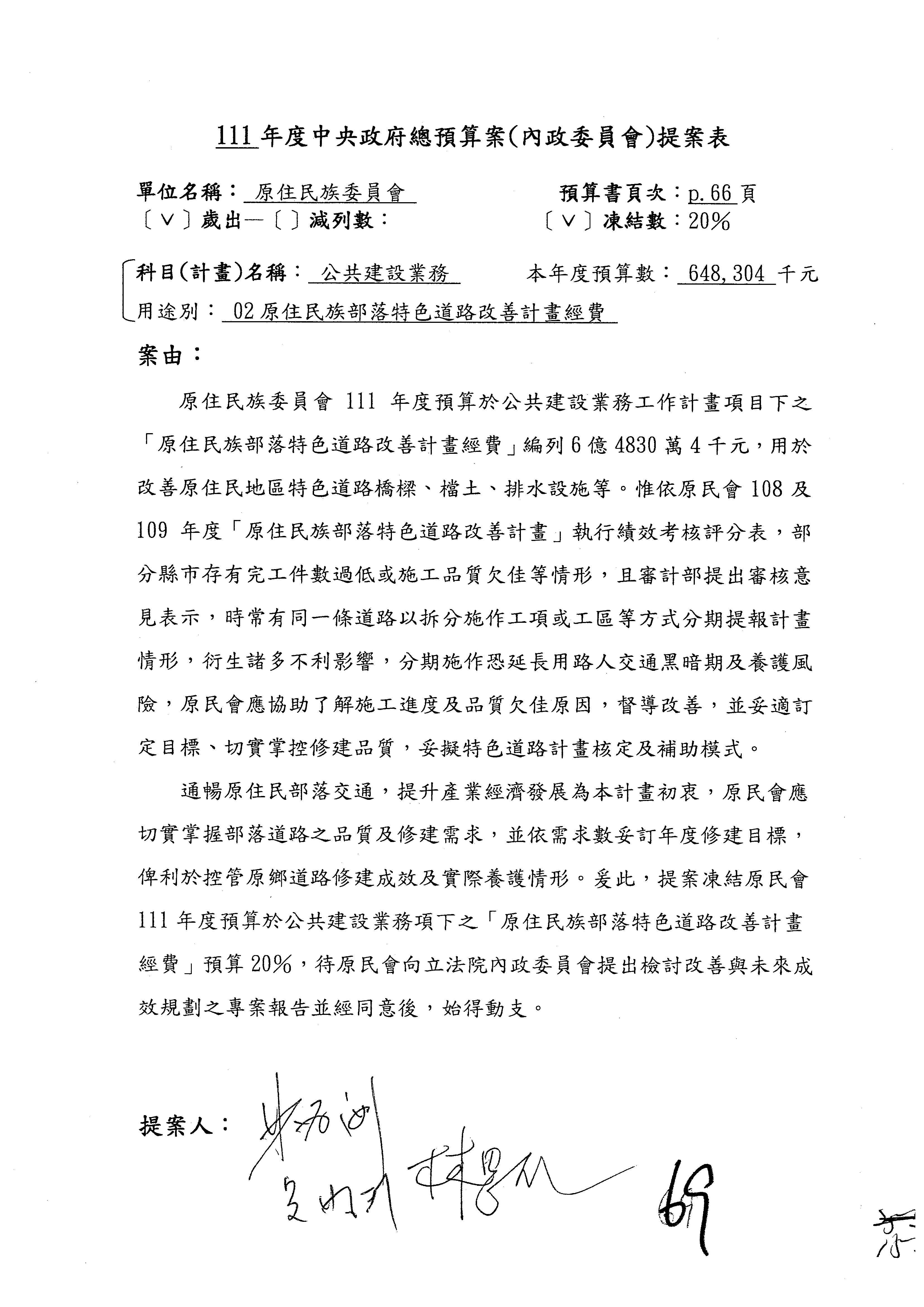 主席:好,跟大家先宣告一下,110年度中央政府總預算案關於原住民族委員會、原住民族文化發展中心預算,詢答的部分已經在110年12月1日完成,今天就直接進行預算之處理。