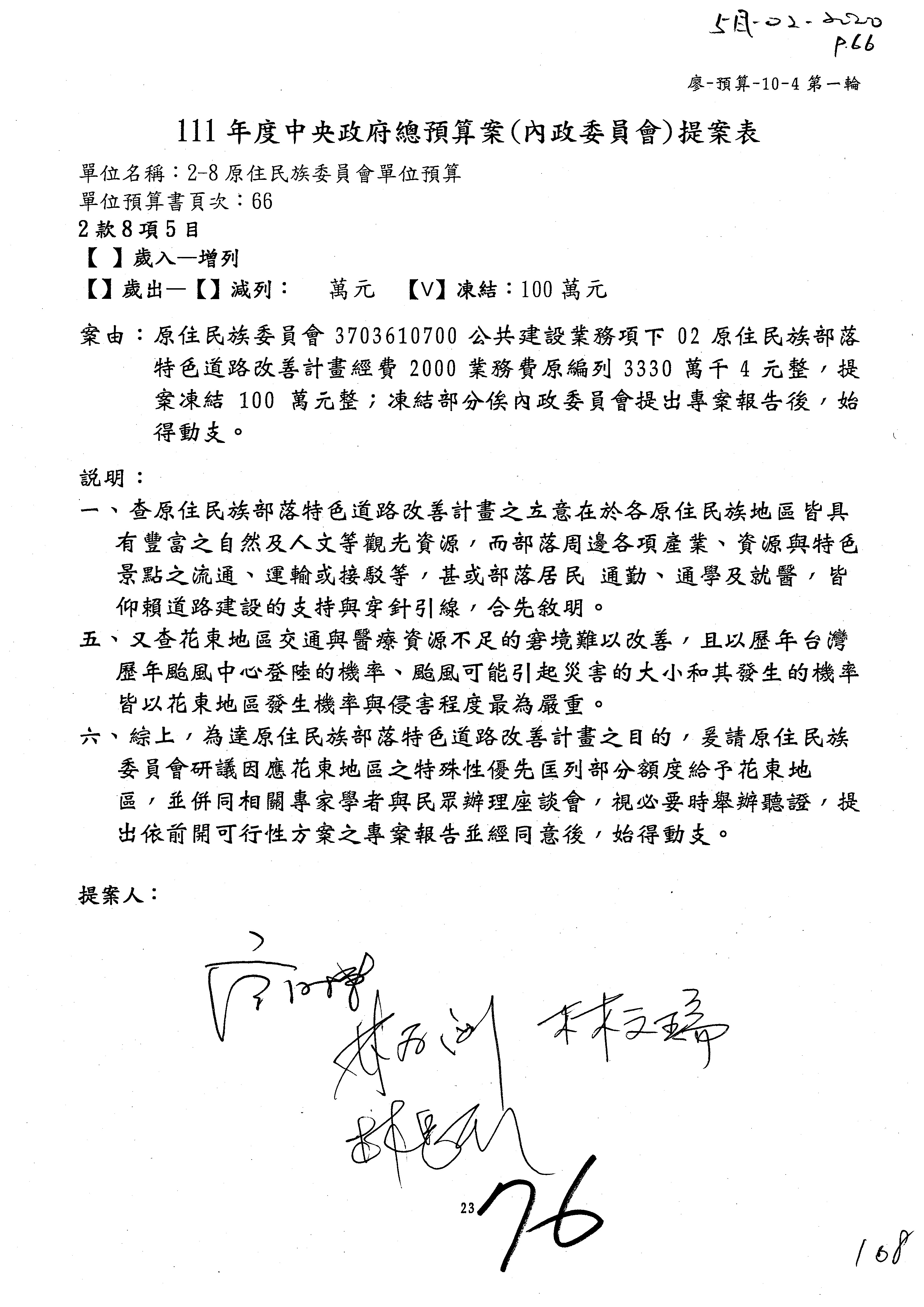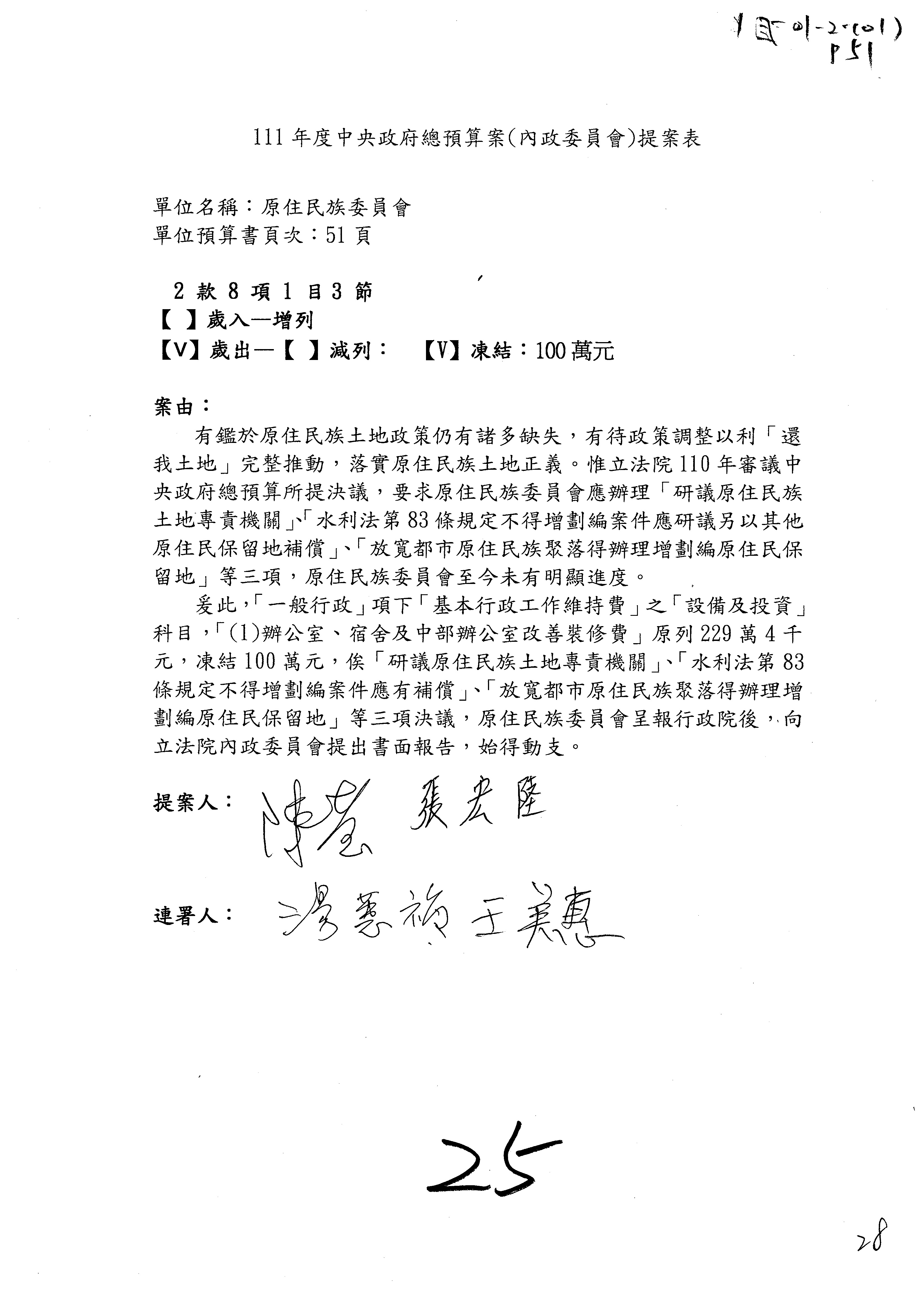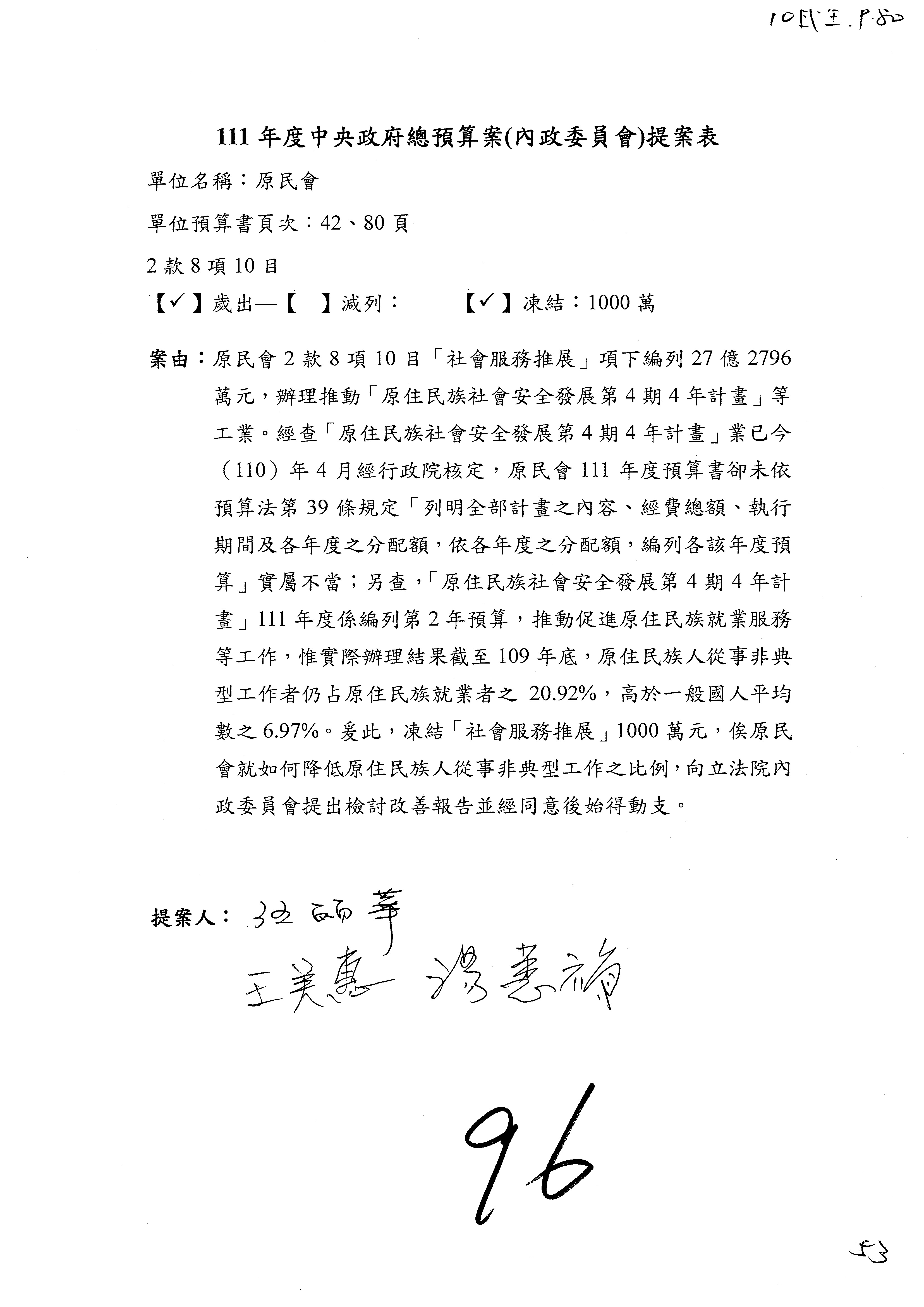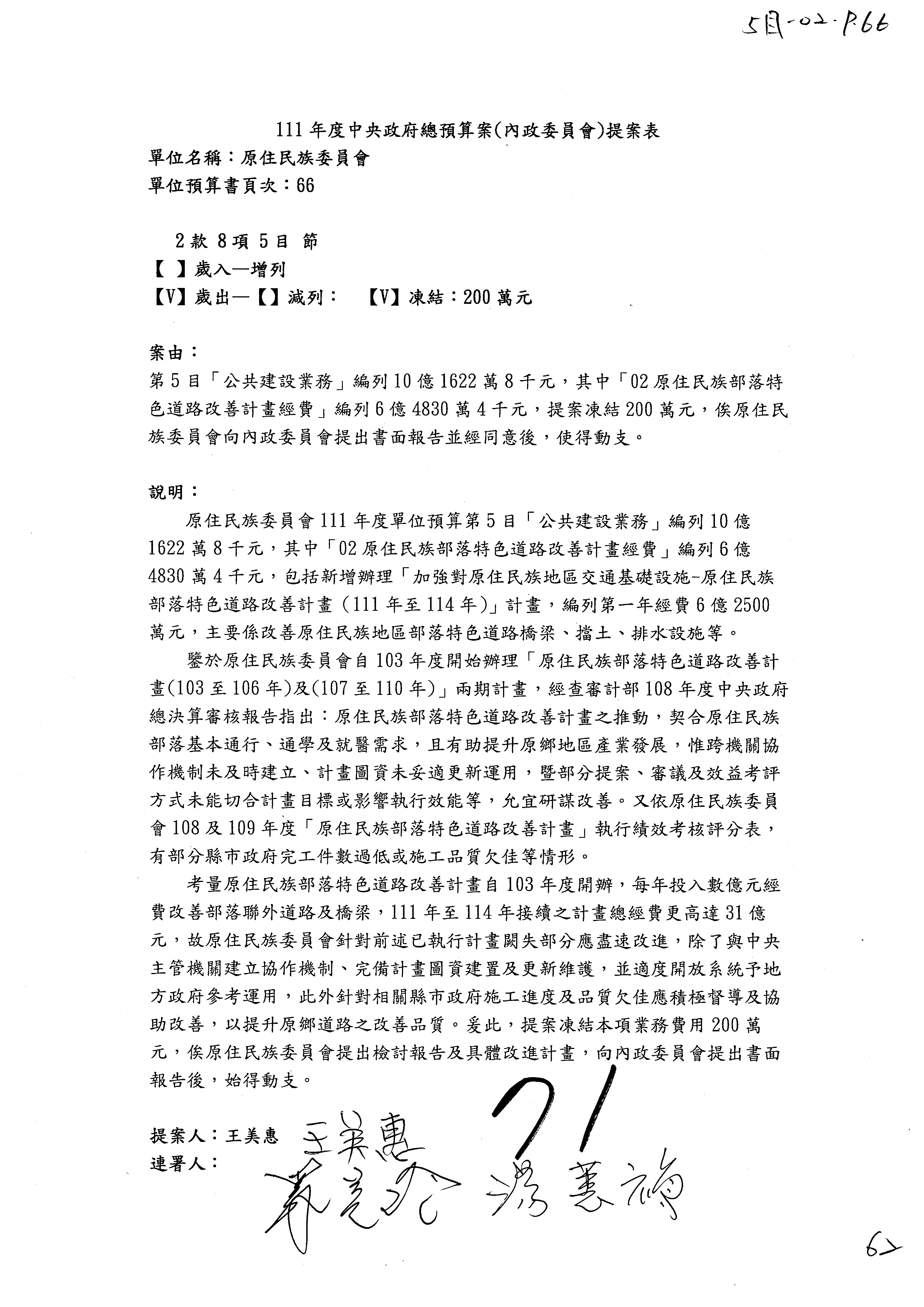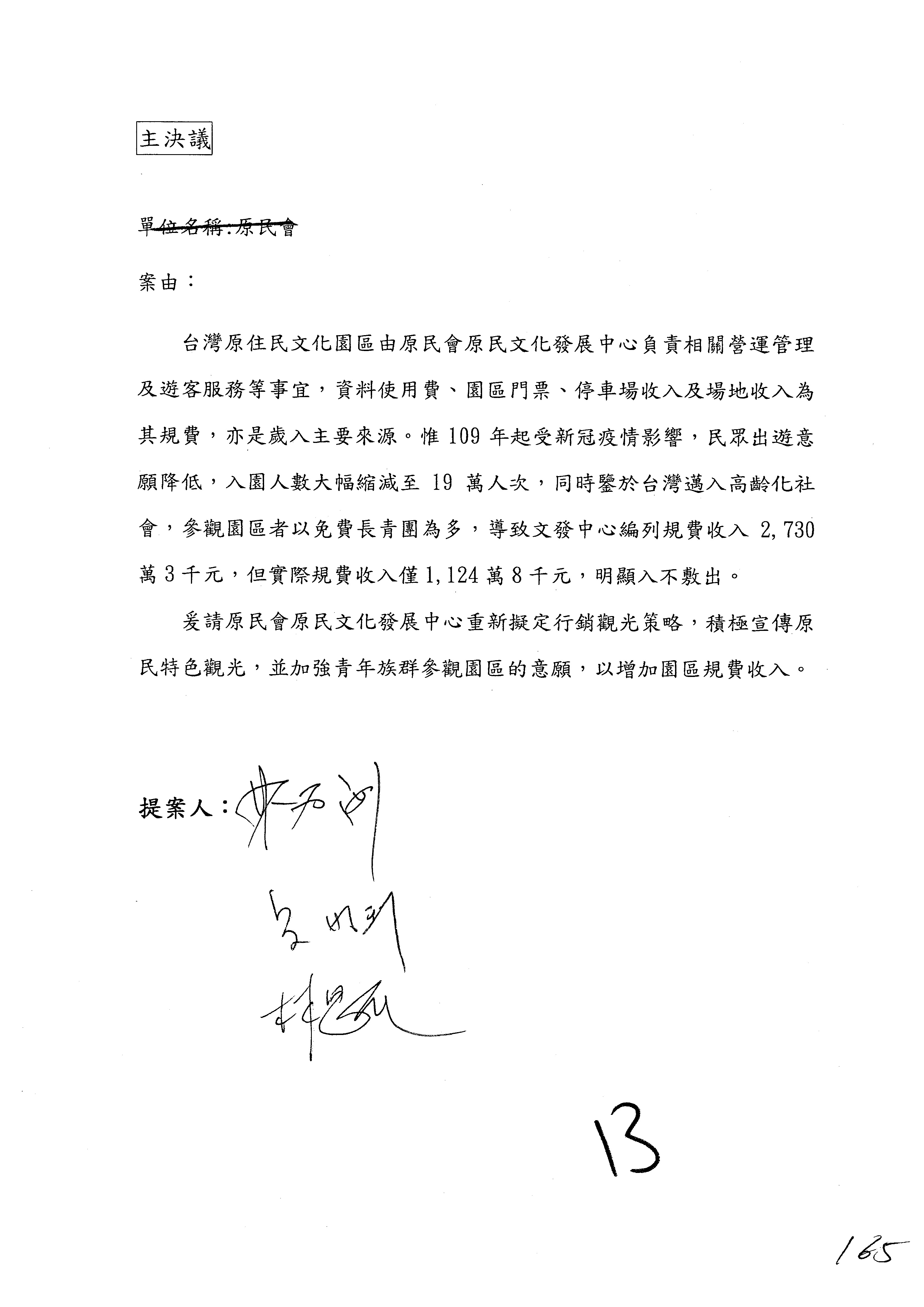 主席:好,跟大家先宣告一下,110年度中央政府總預算案關於原住民族委員會、原住民族文化發展中心預算,詢答的部分已經在110年12月1日完成,今天就直接進行預算之處理。