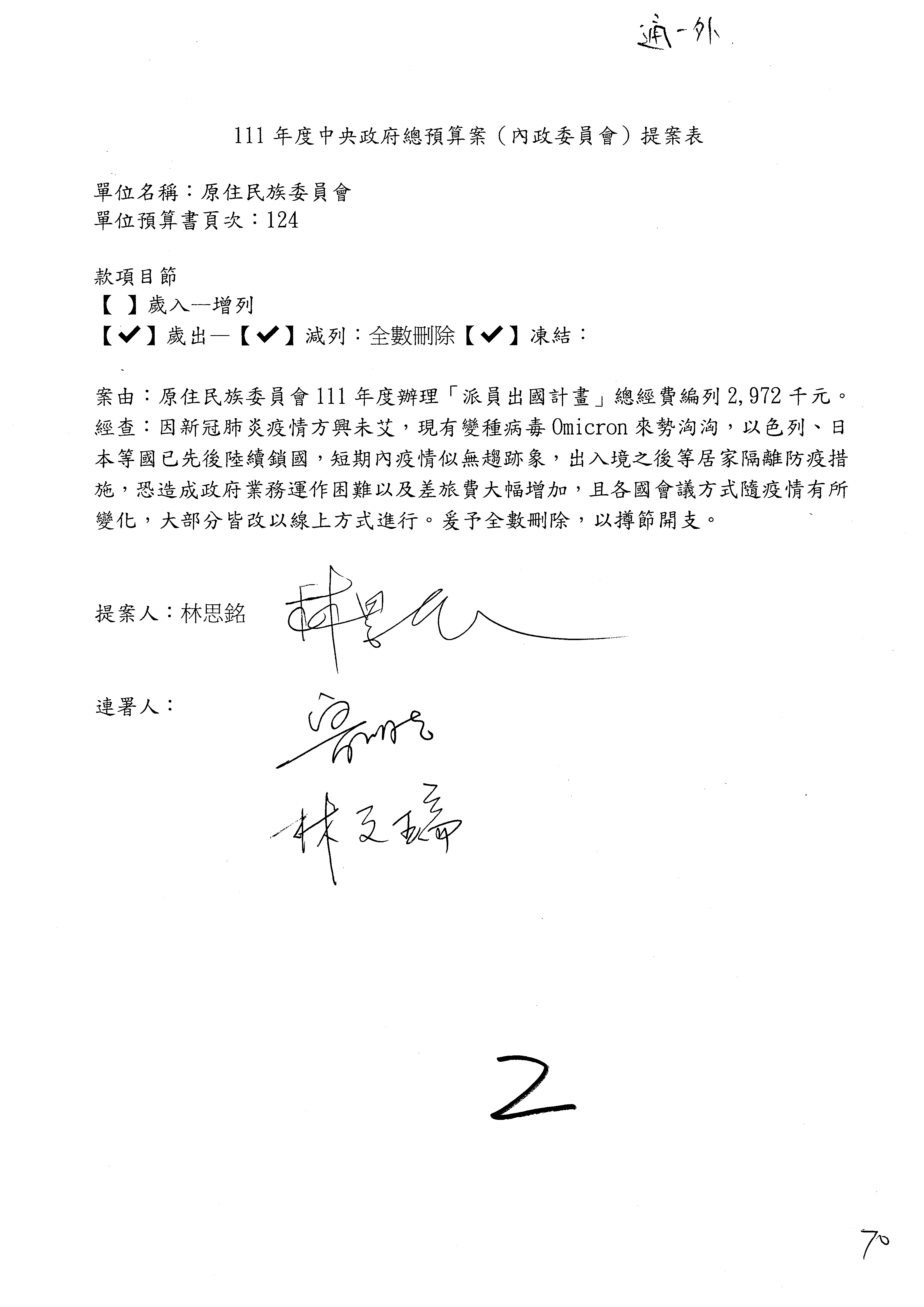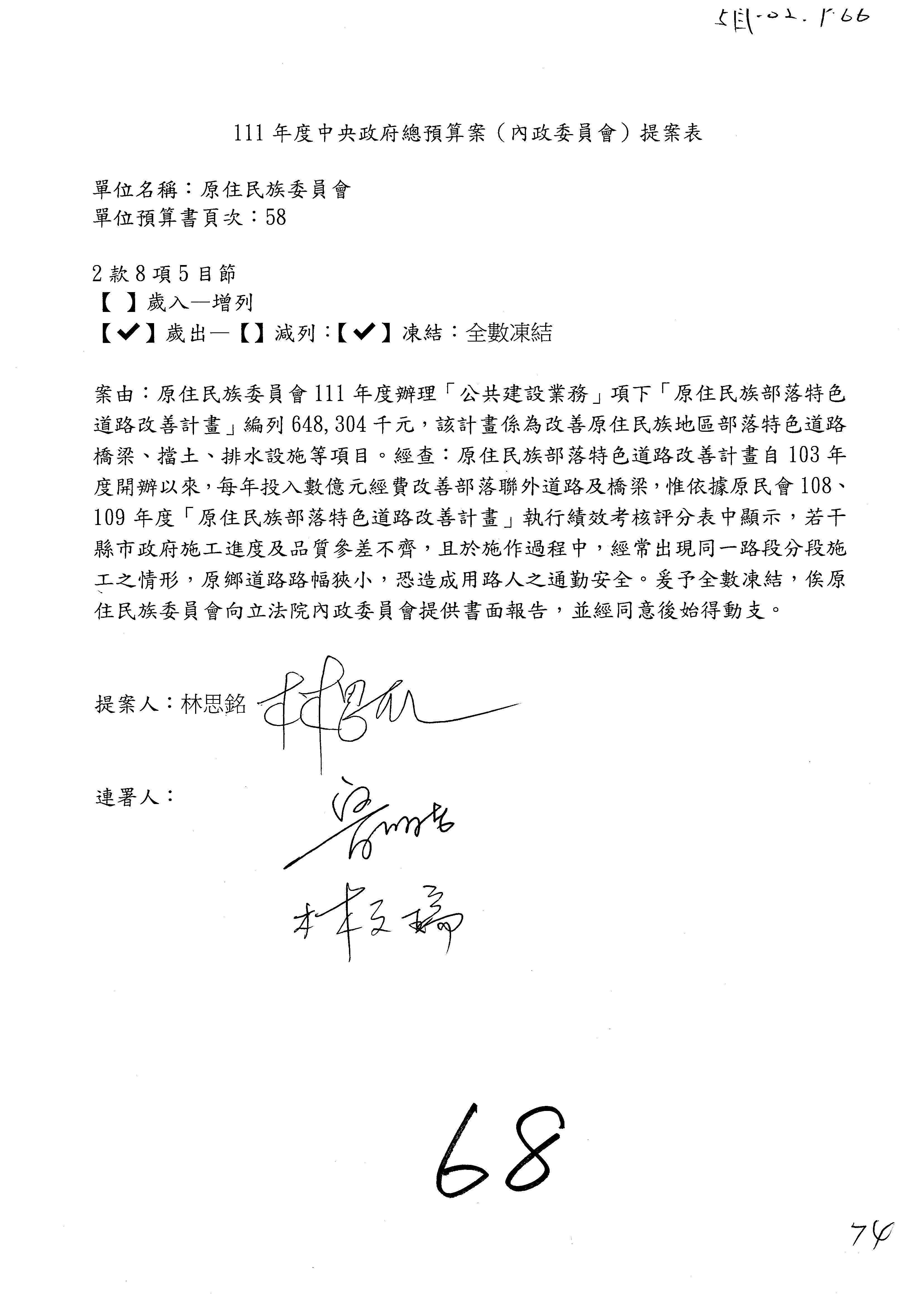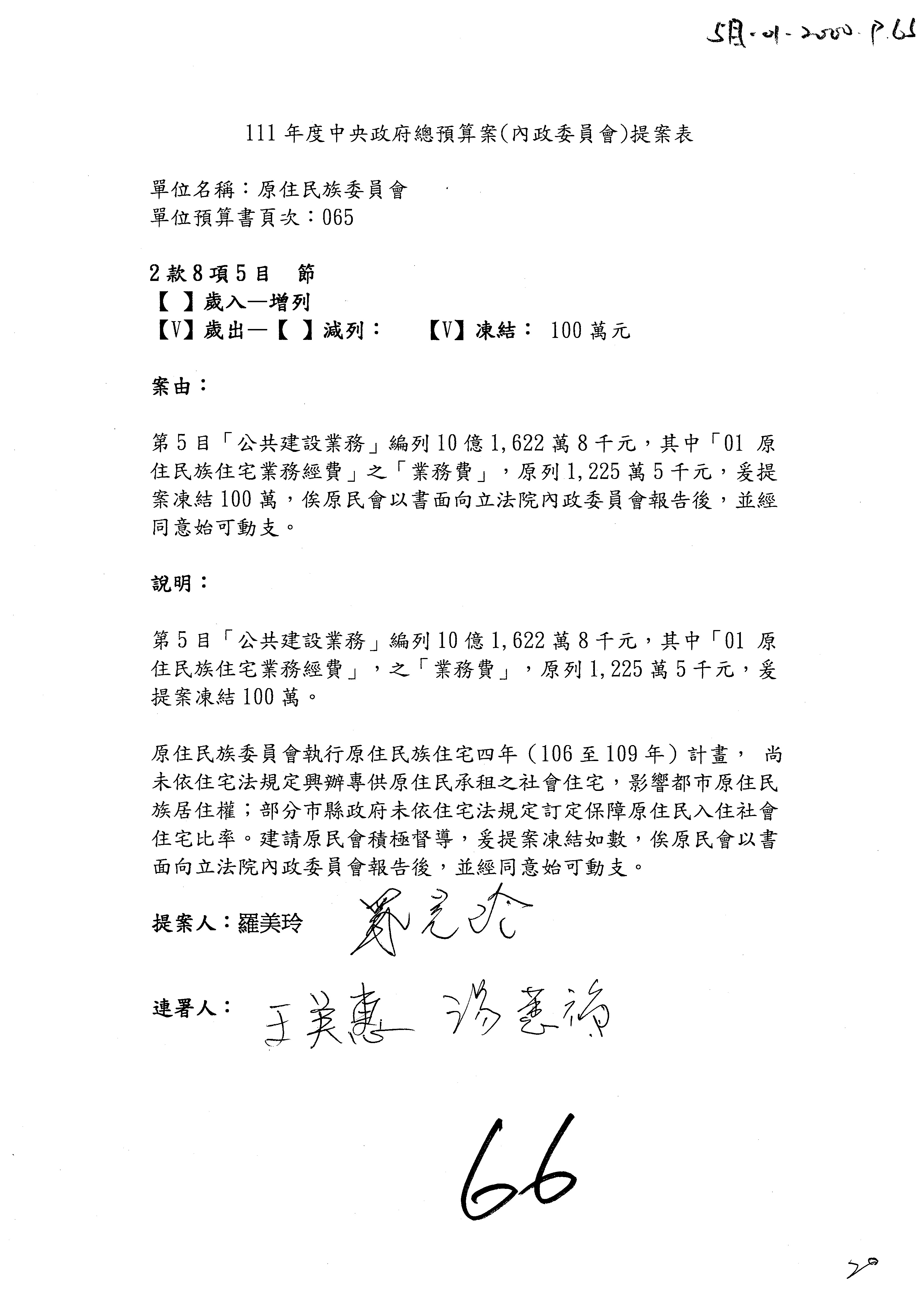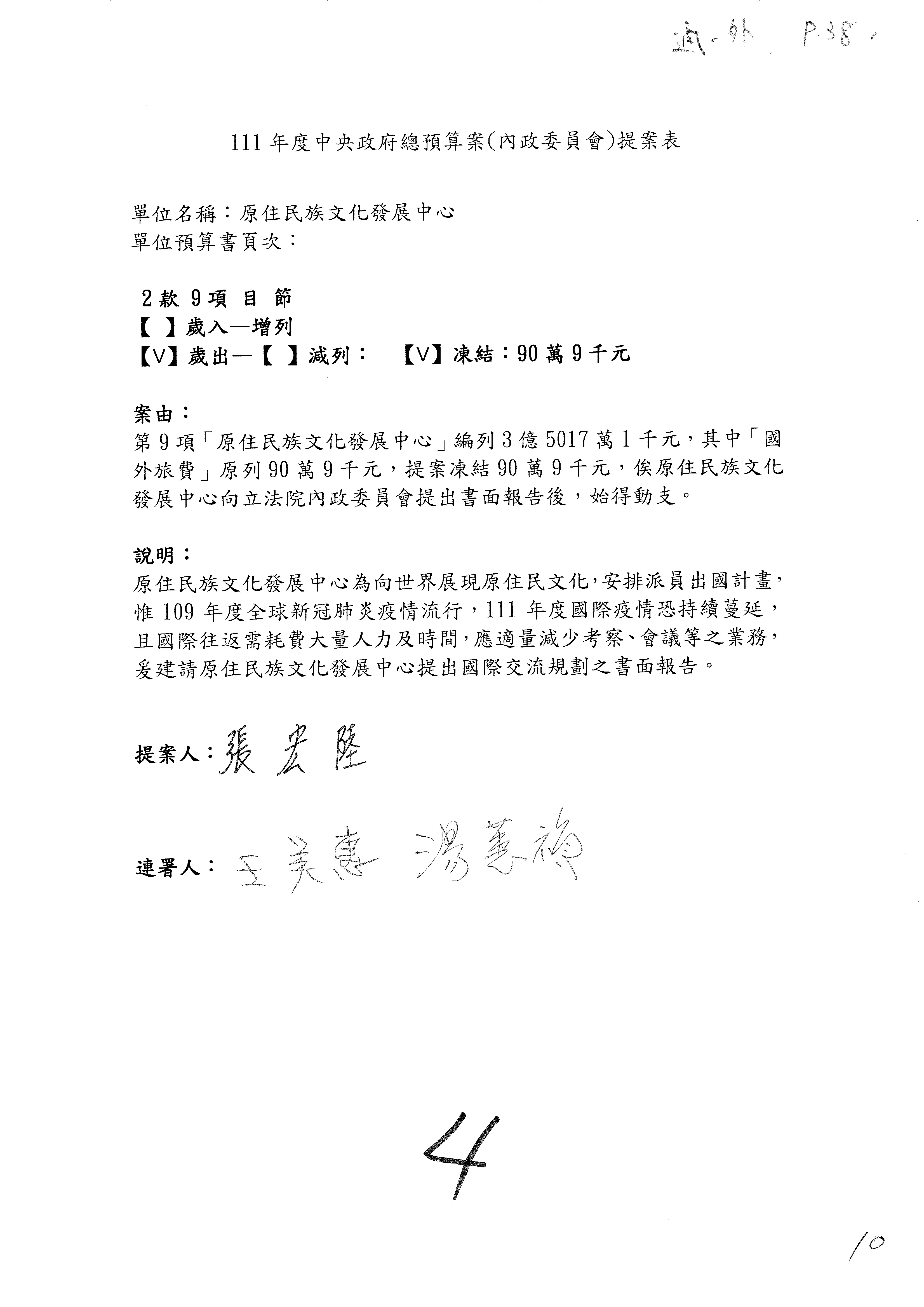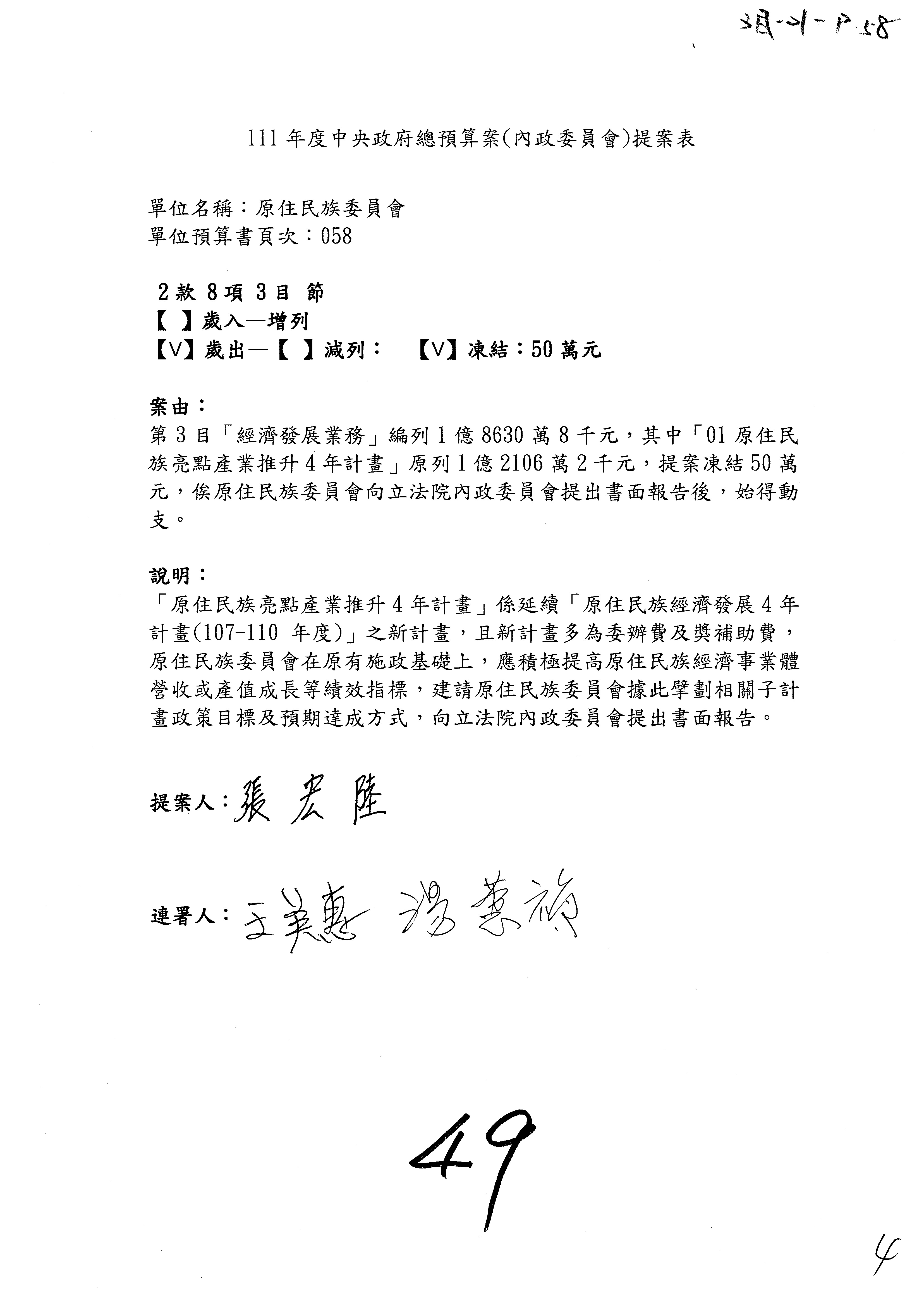 主席:好,跟大家先宣告一下,110年度中央政府總預算案關於原住民族委員會、原住民族文化發展中心預算,詢答的部分已經在110年12月1日完成,今天就直接進行預算之處理。
