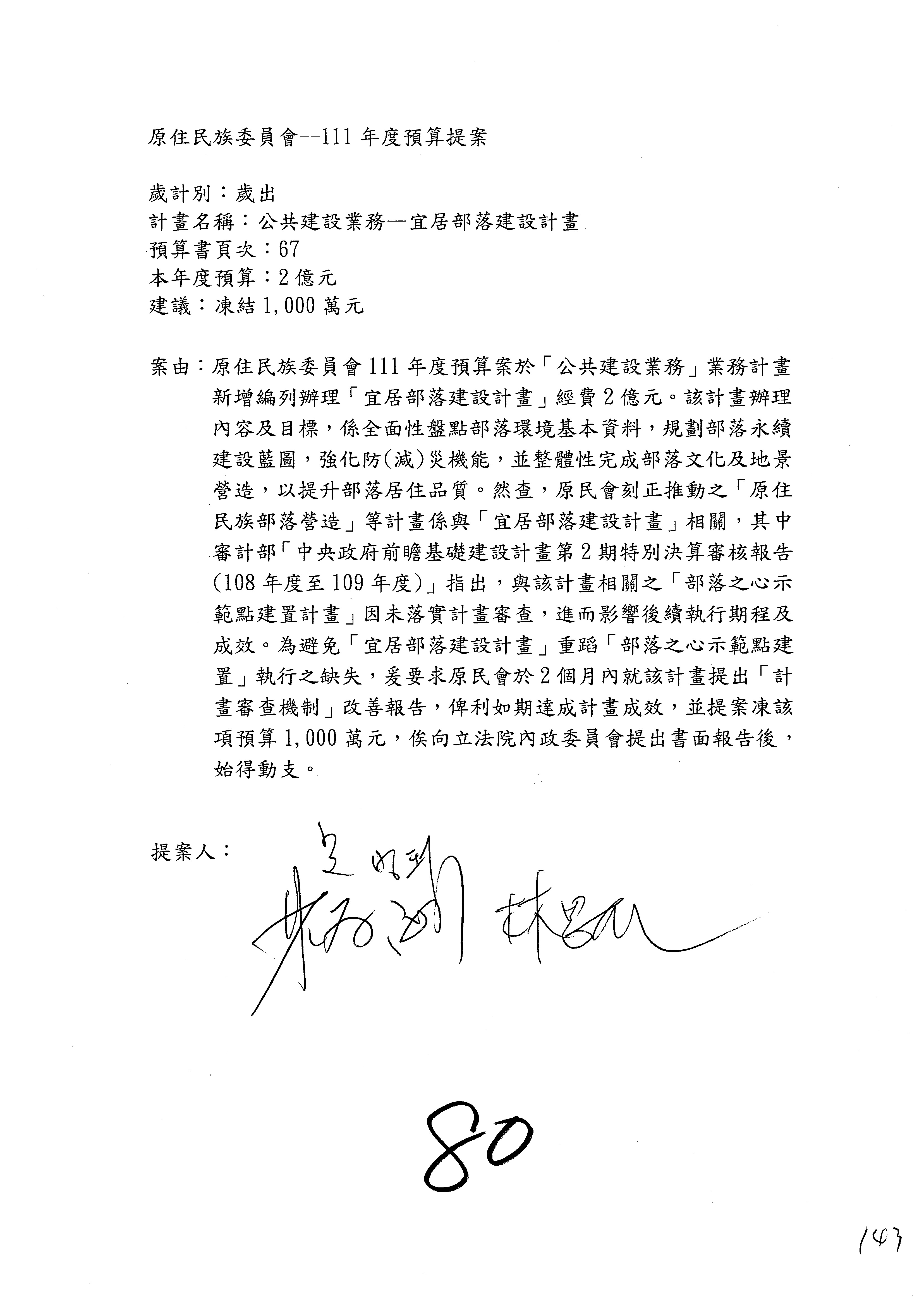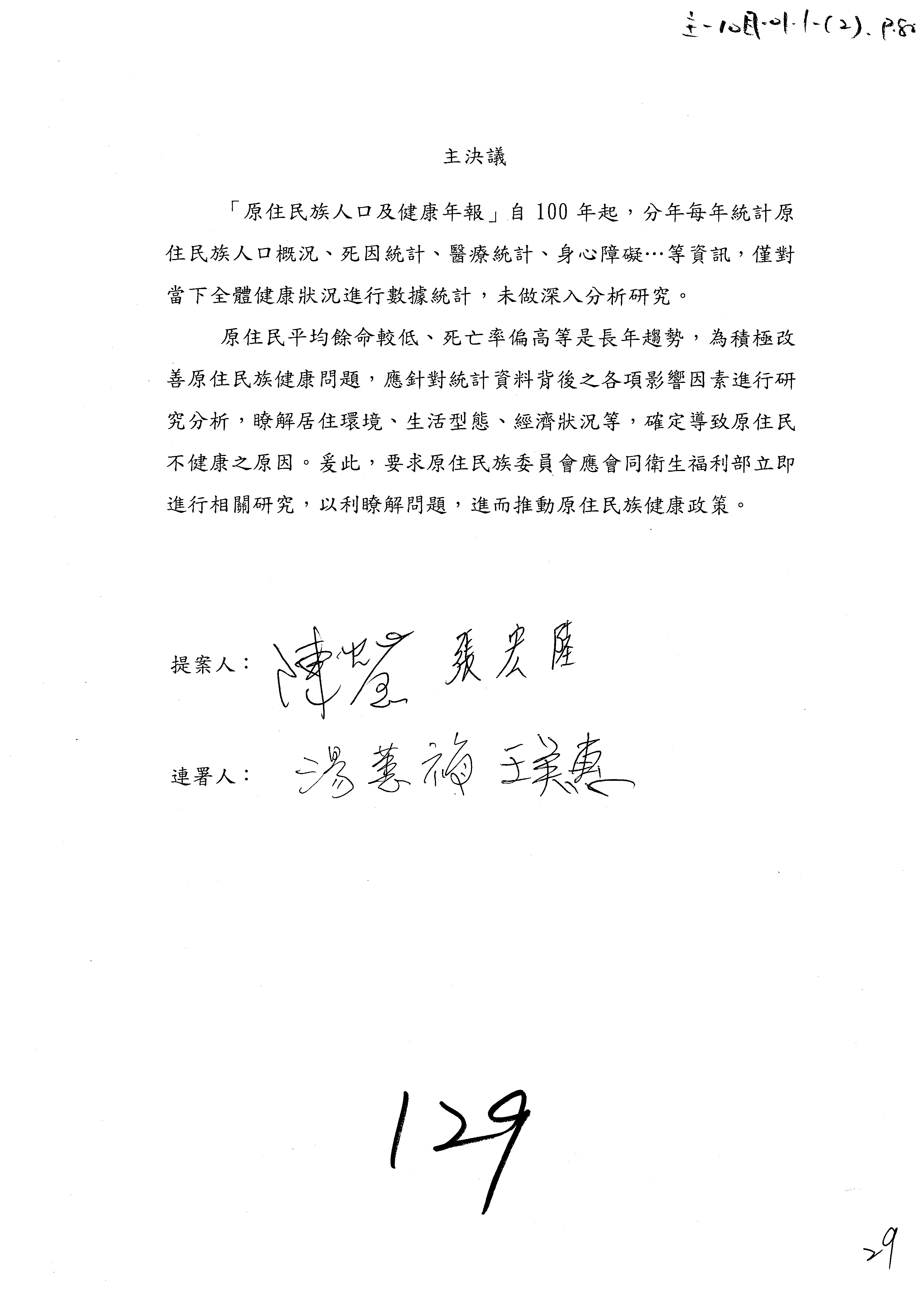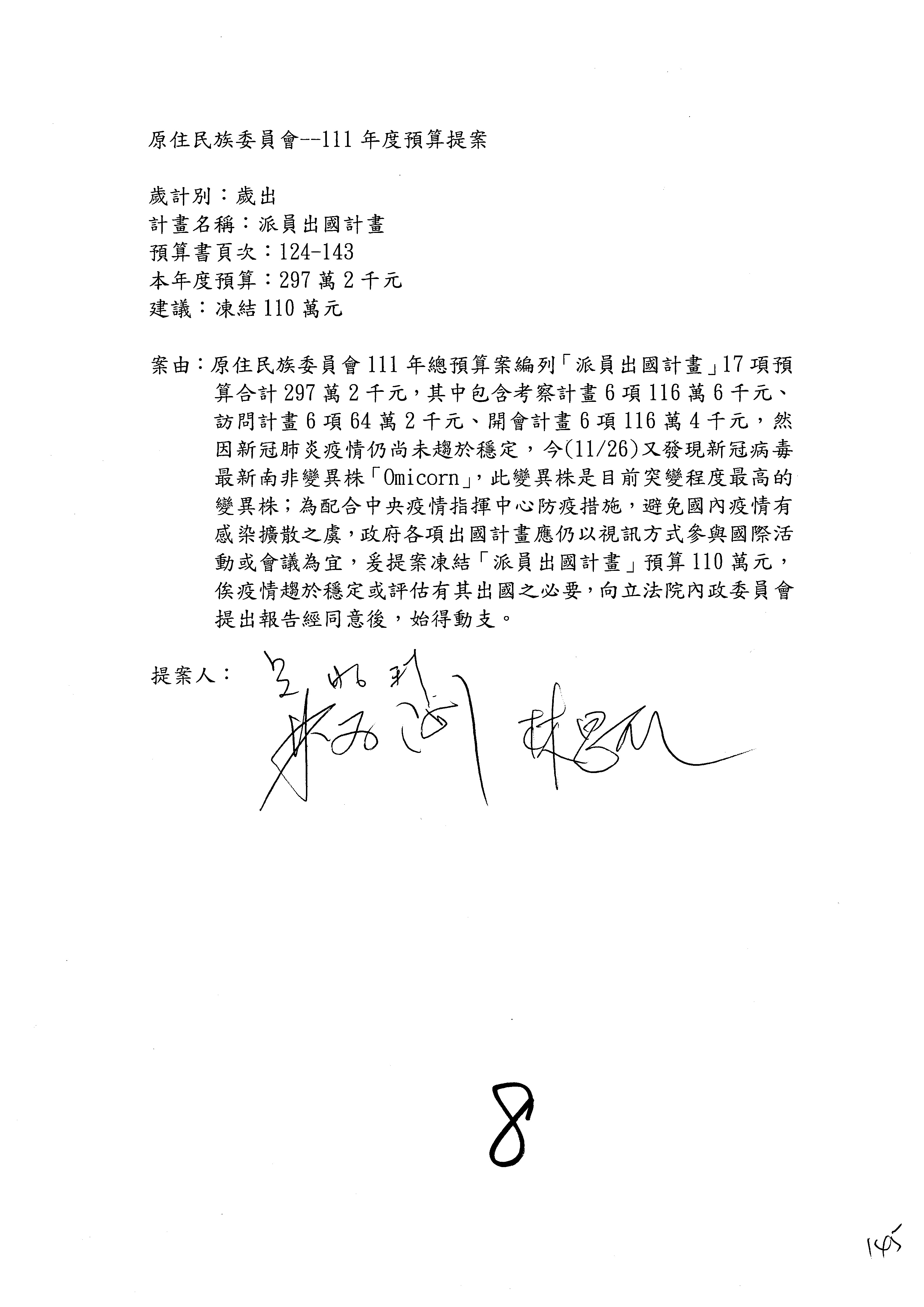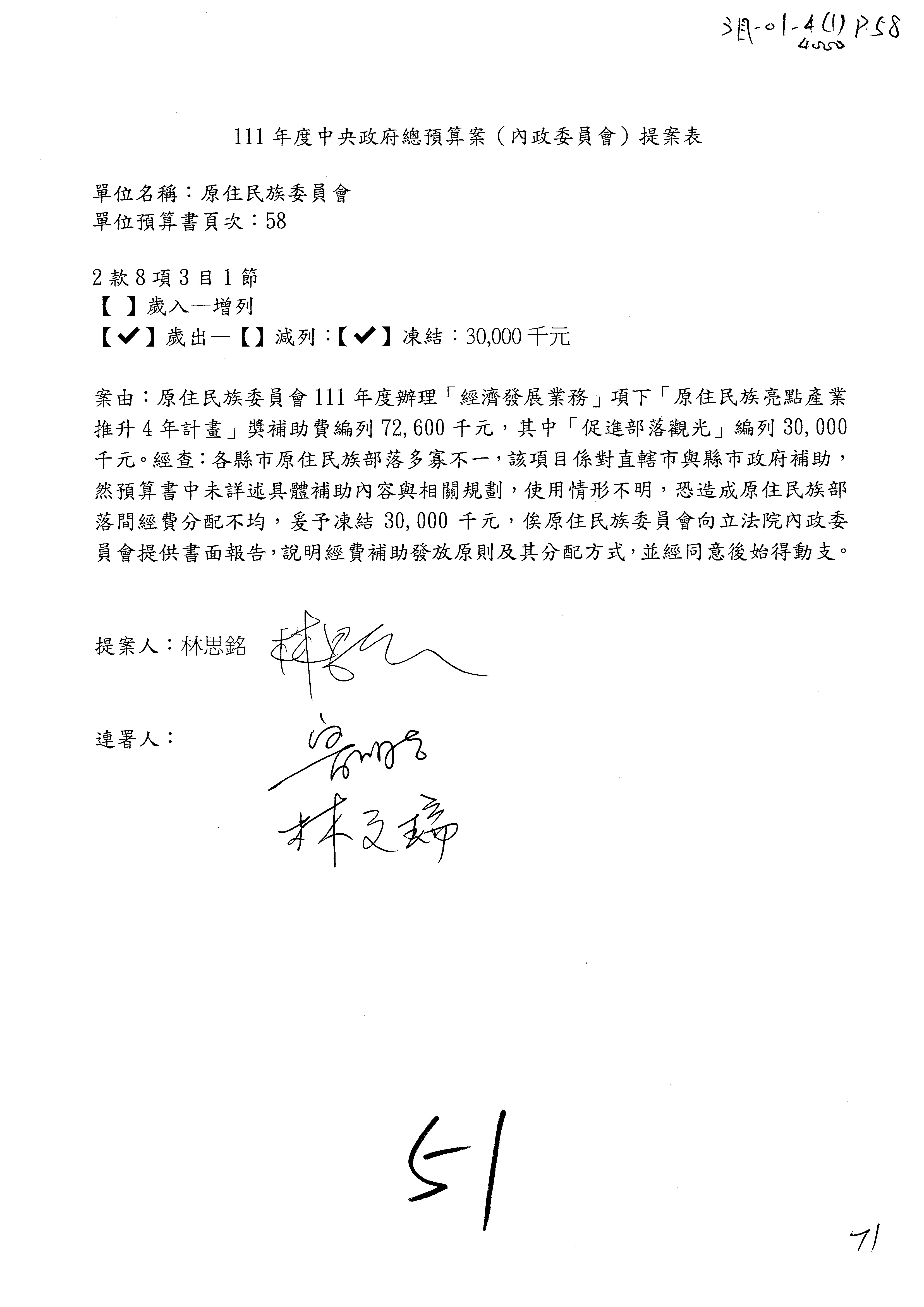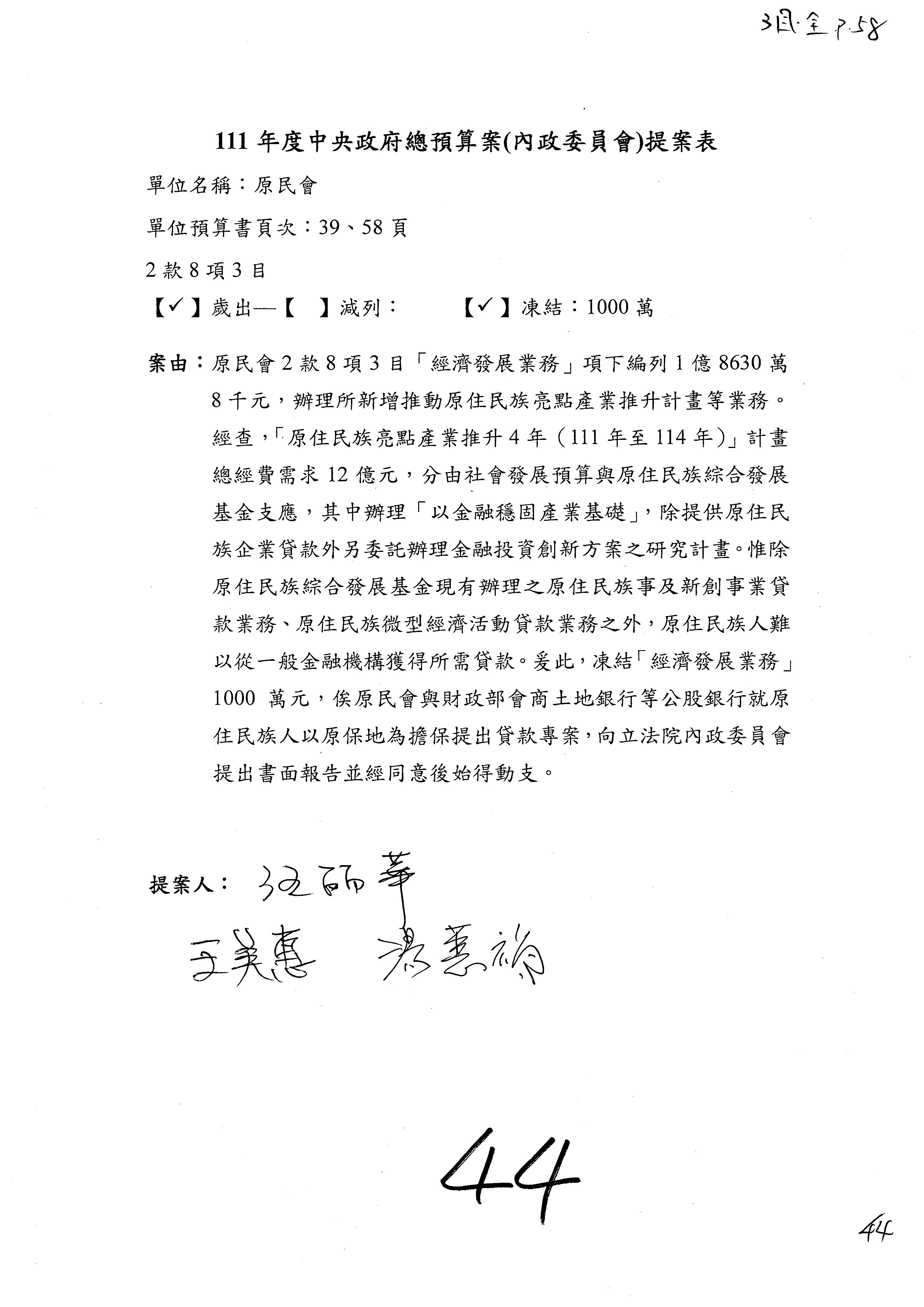 主席:好,跟大家先宣告一下,110年度中央政府總預算案關於原住民族委員會、原住民族文化發展中心預算,詢答的部分已經在110年12月1日完成,今天就直接進行預算之處理。