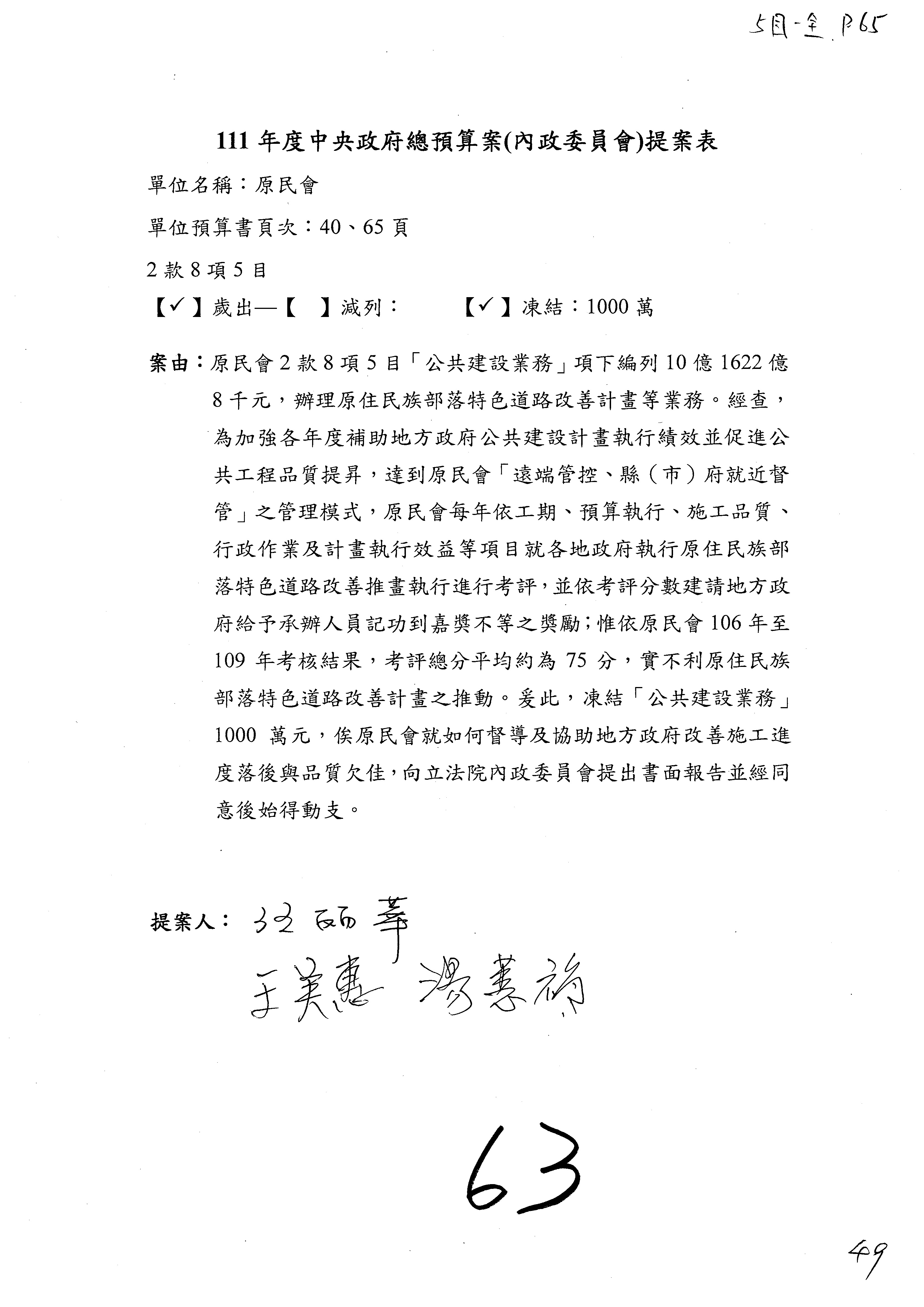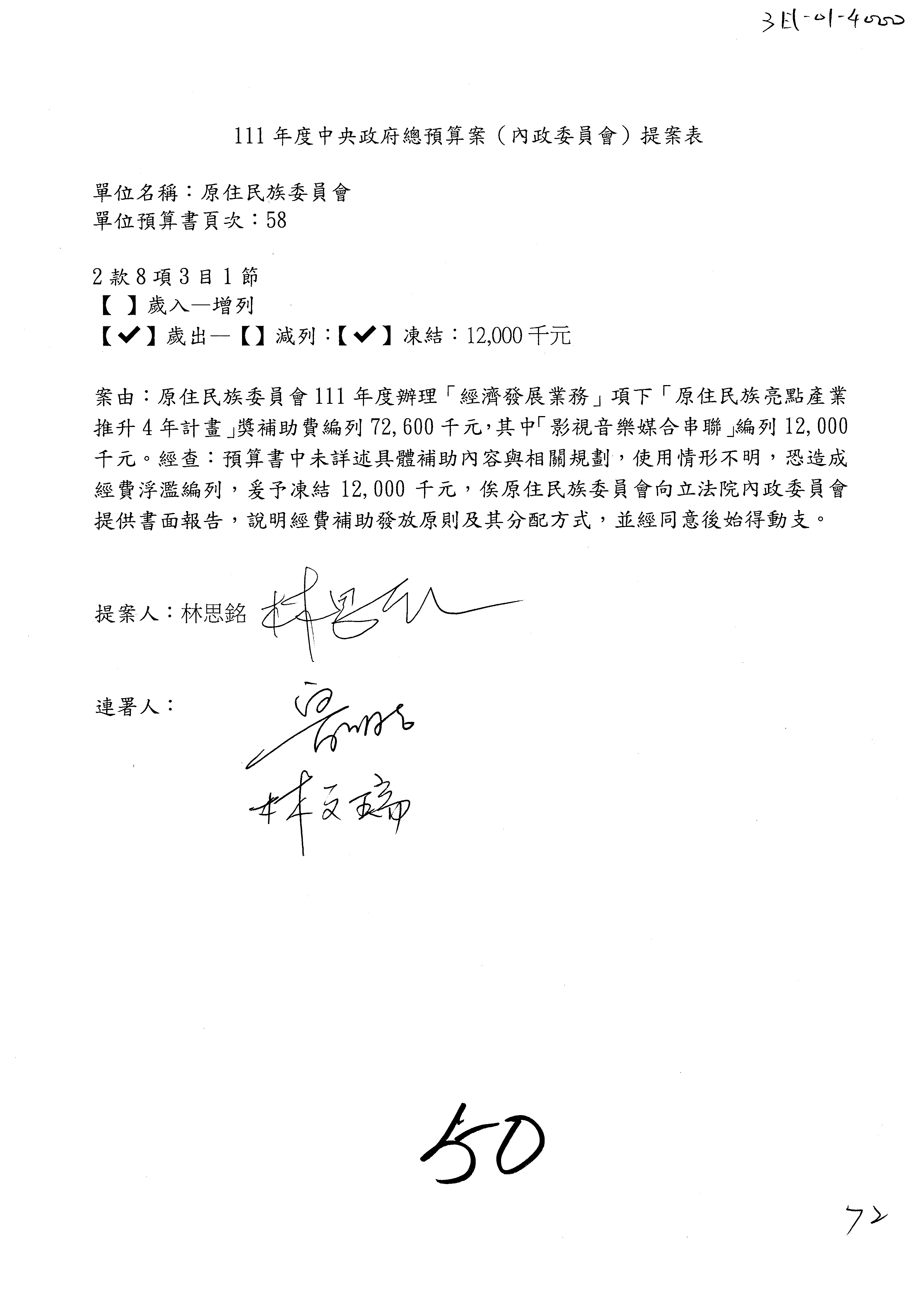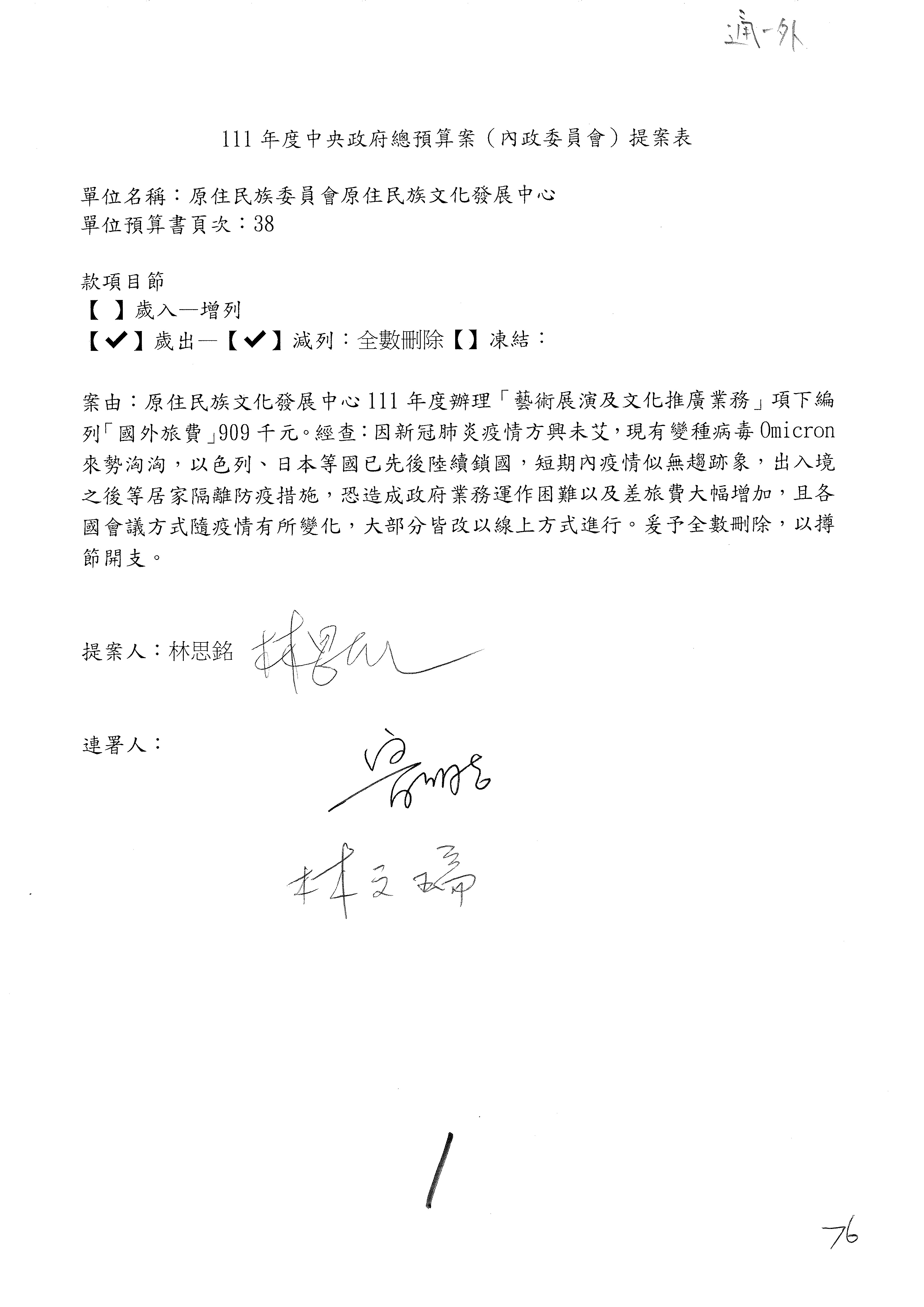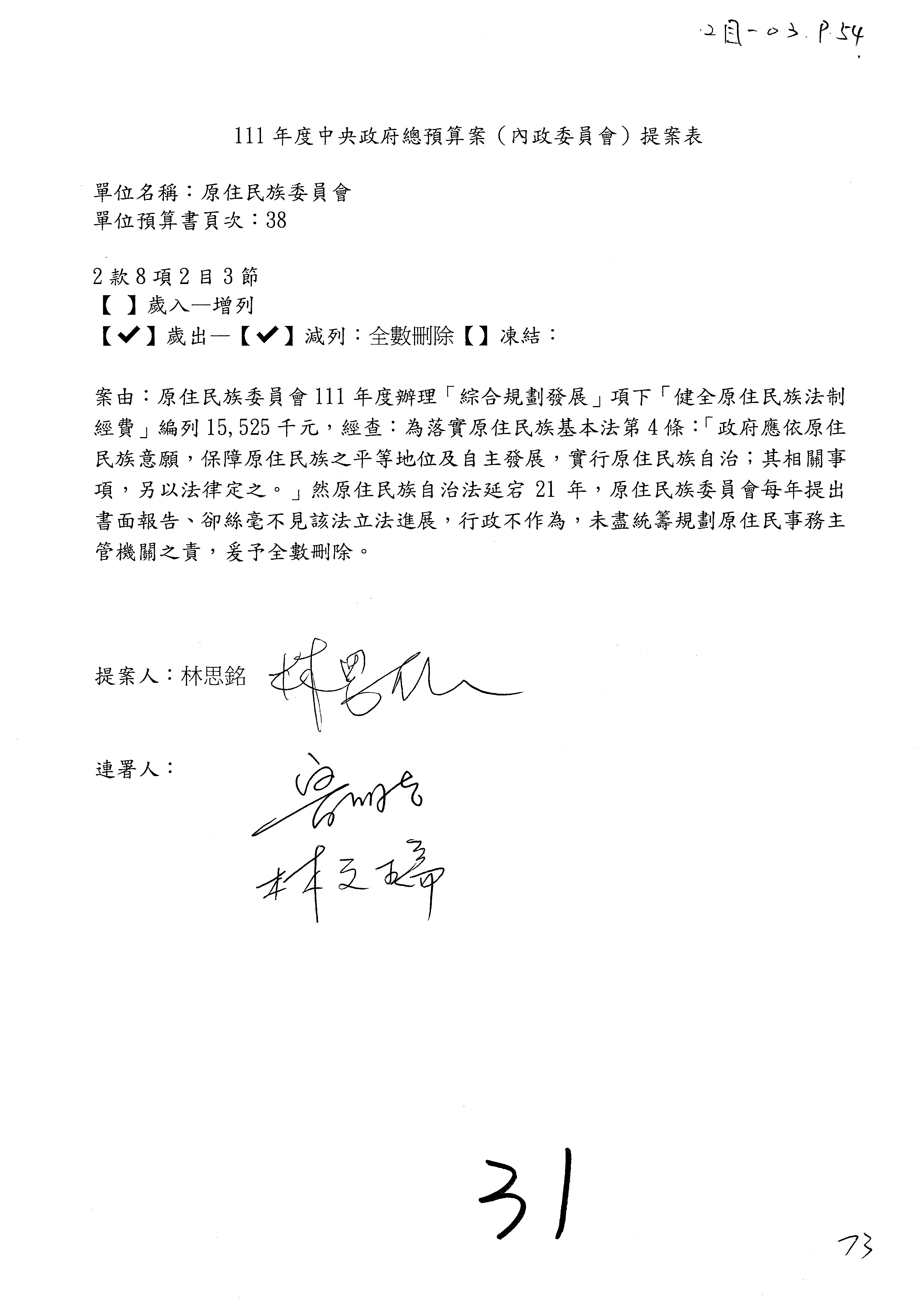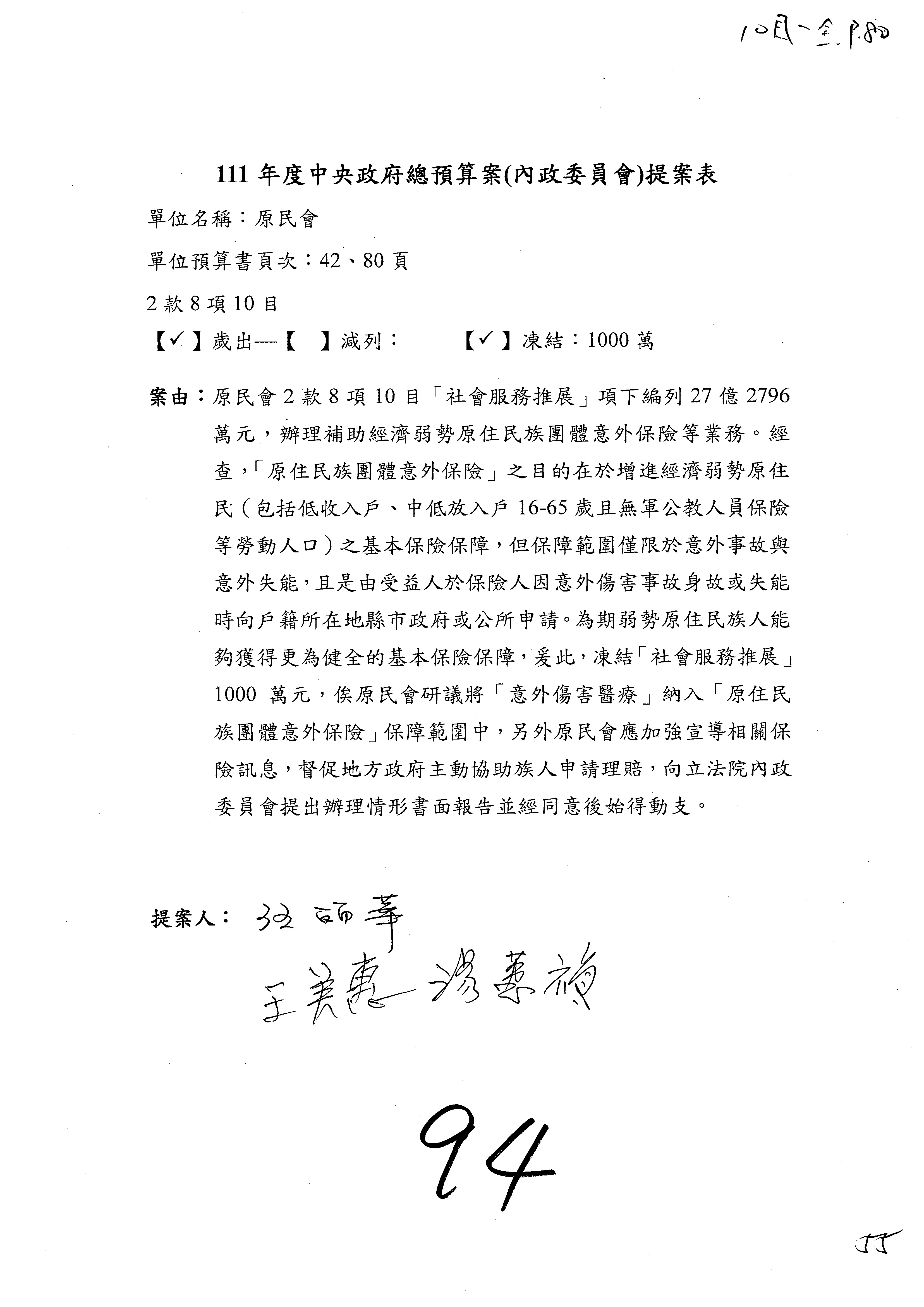 主席:好,跟大家先宣告一下,110年度中央政府總預算案關於原住民族委員會、原住民族文化發展中心預算,詢答的部分已經在110年12月1日完成,今天就直接進行預算之處理。