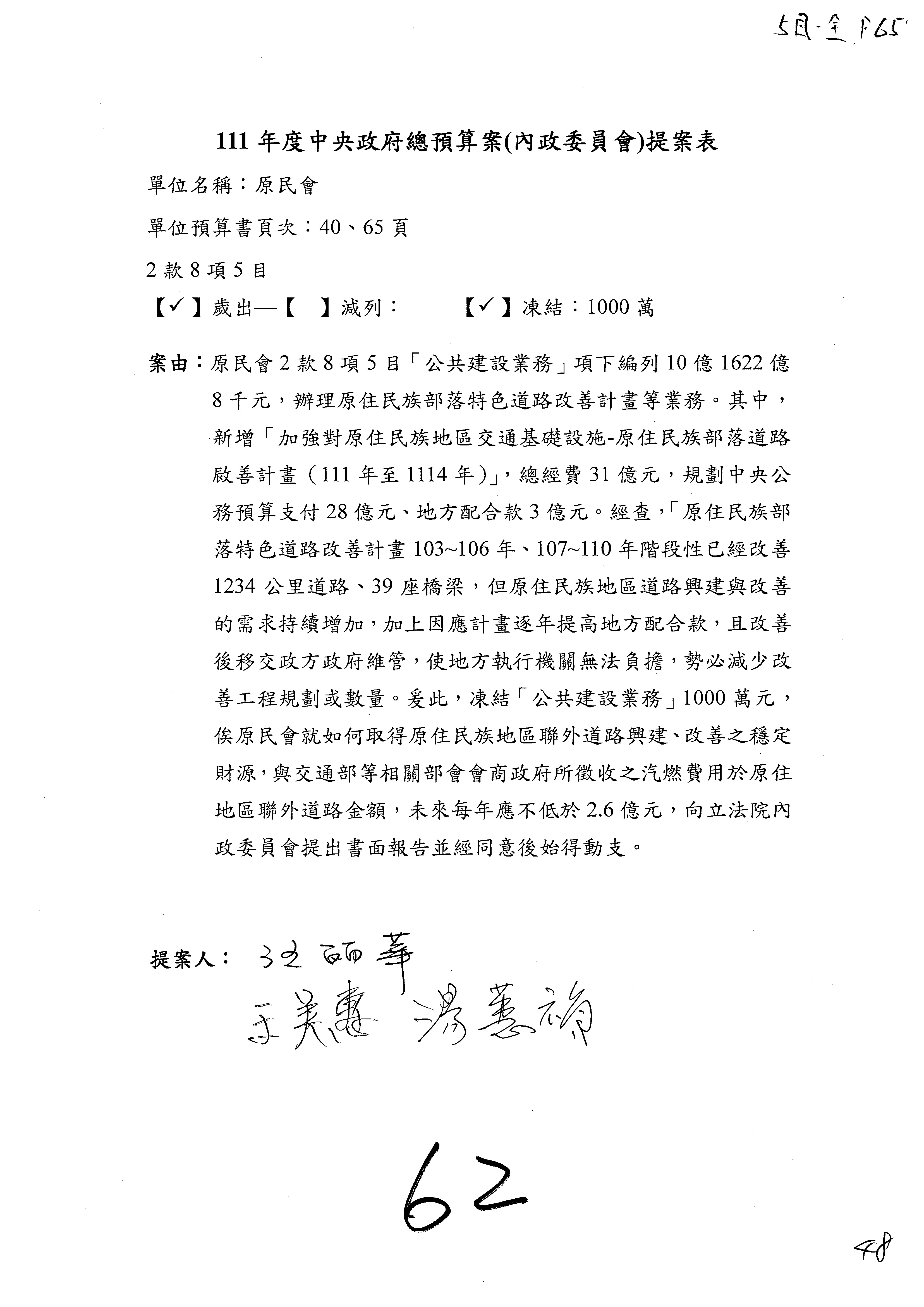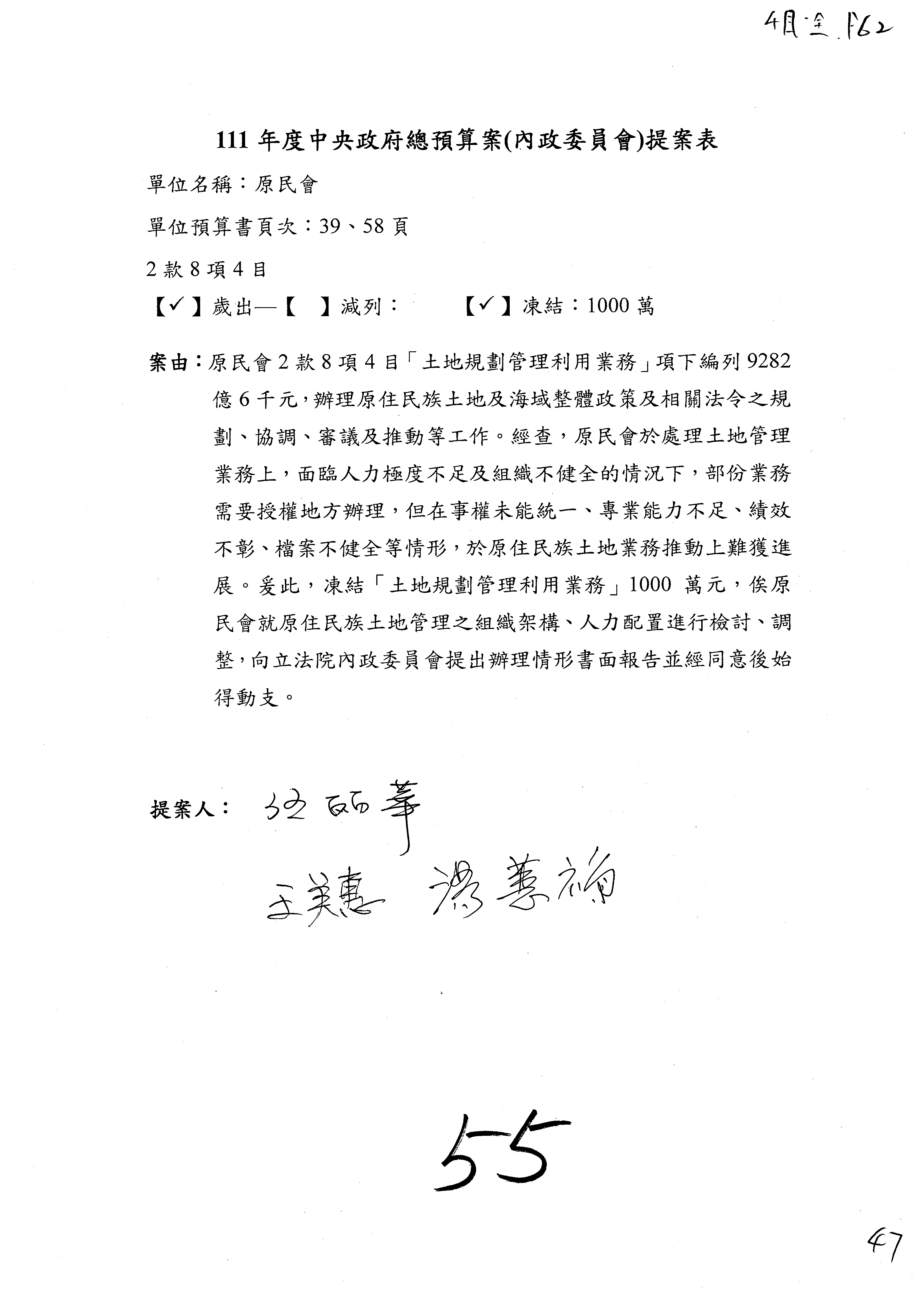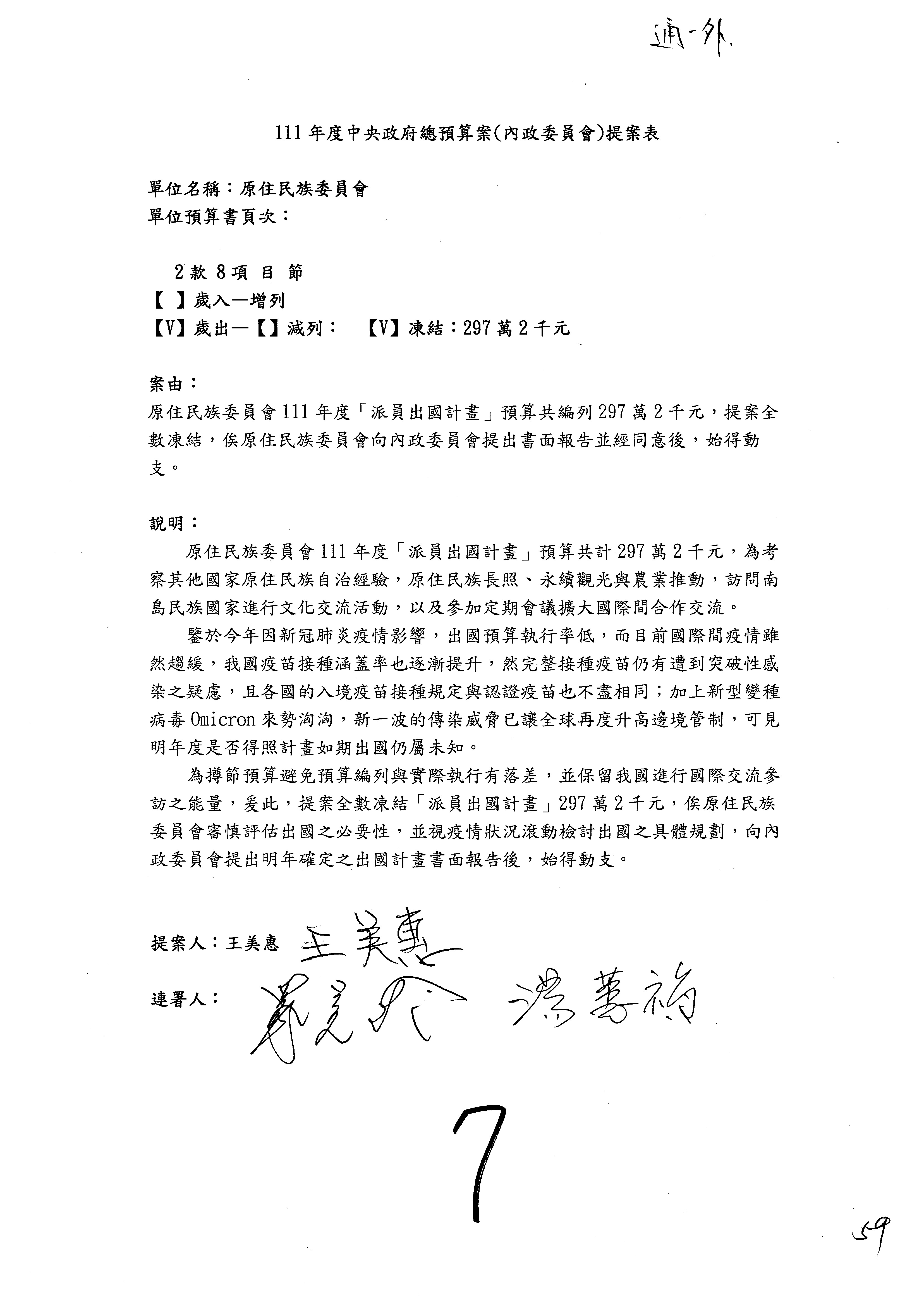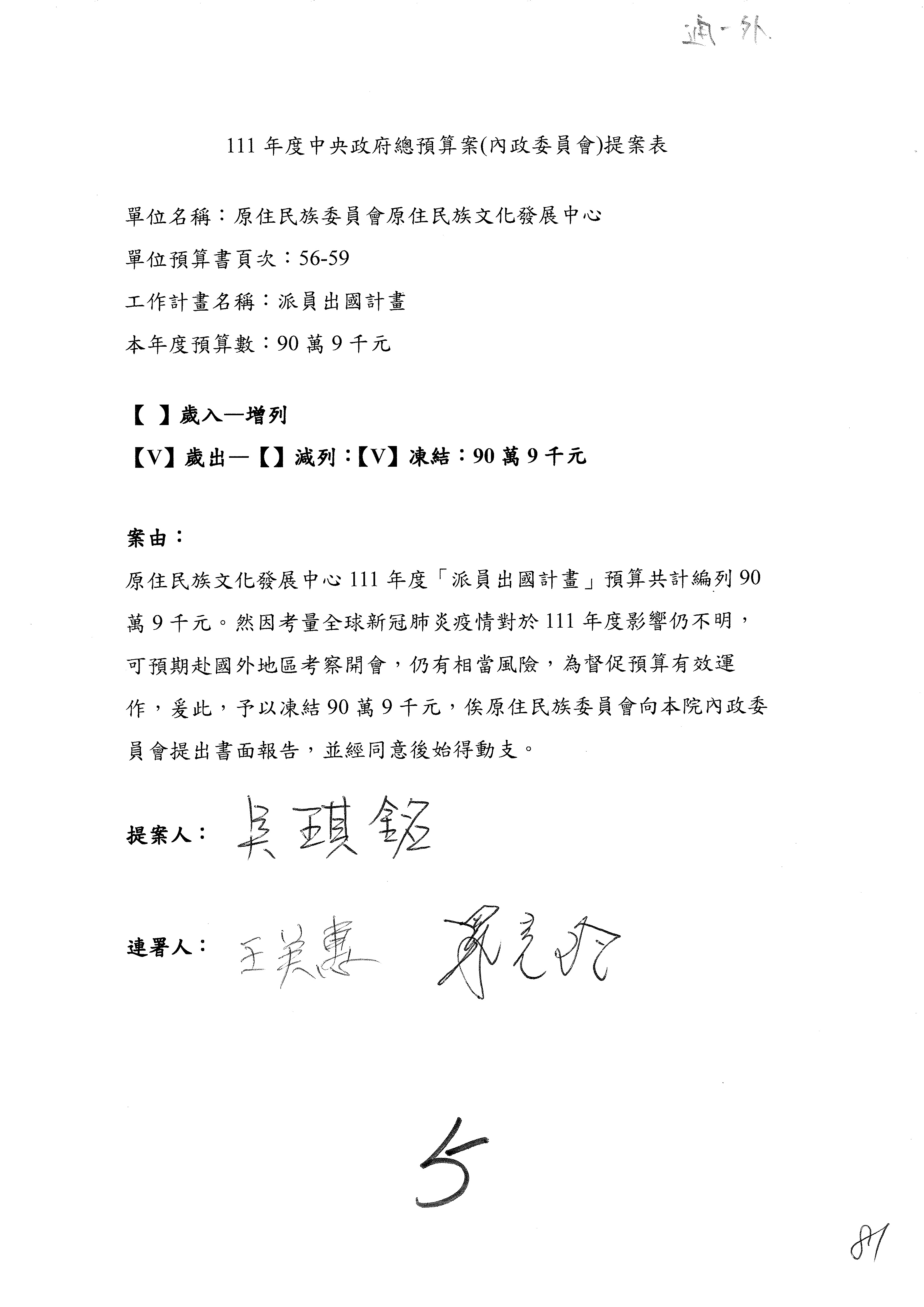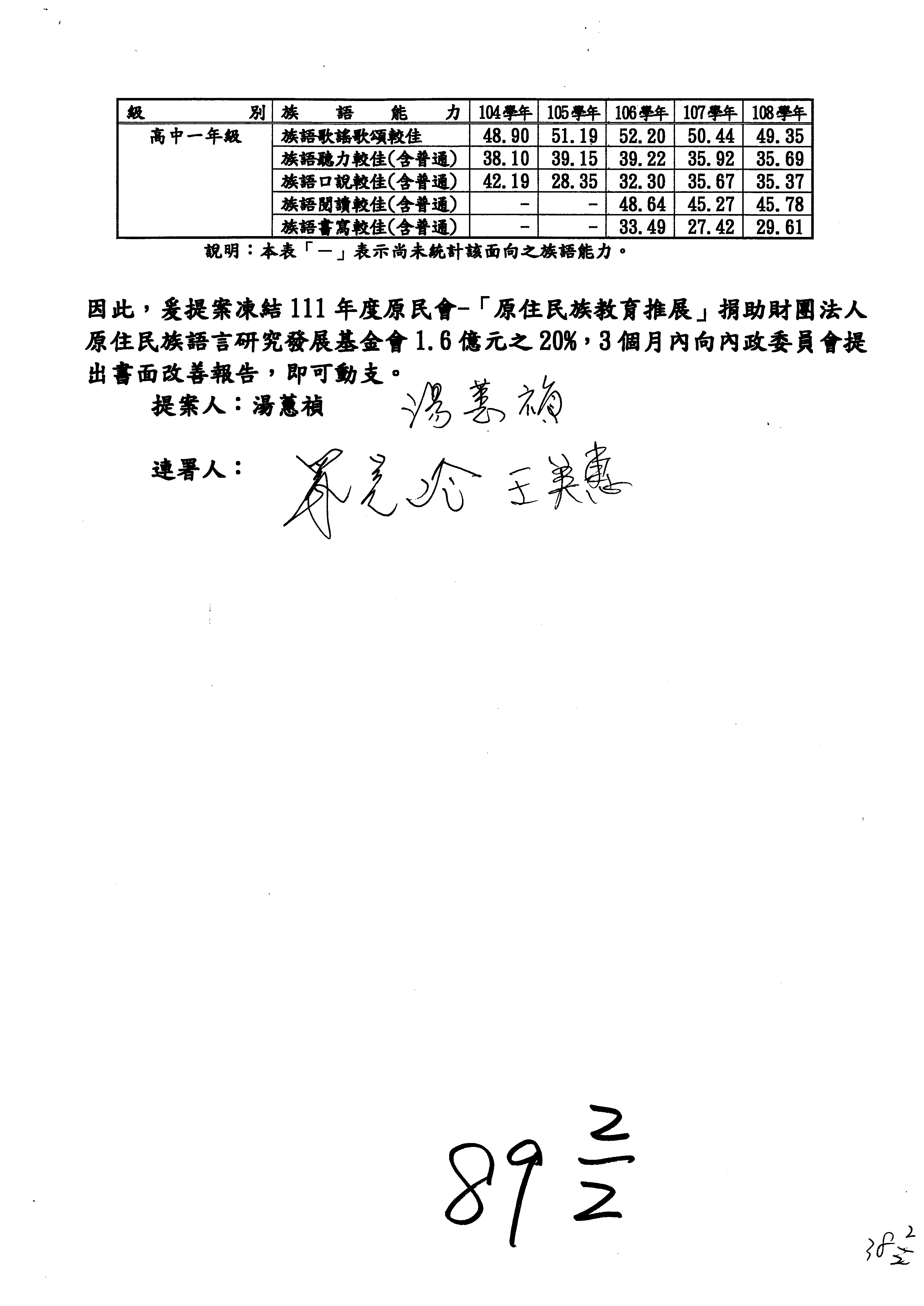 繼續審查111年度中央政府總預算案關於原住民族委員會、原住民族文化發展中心部分。