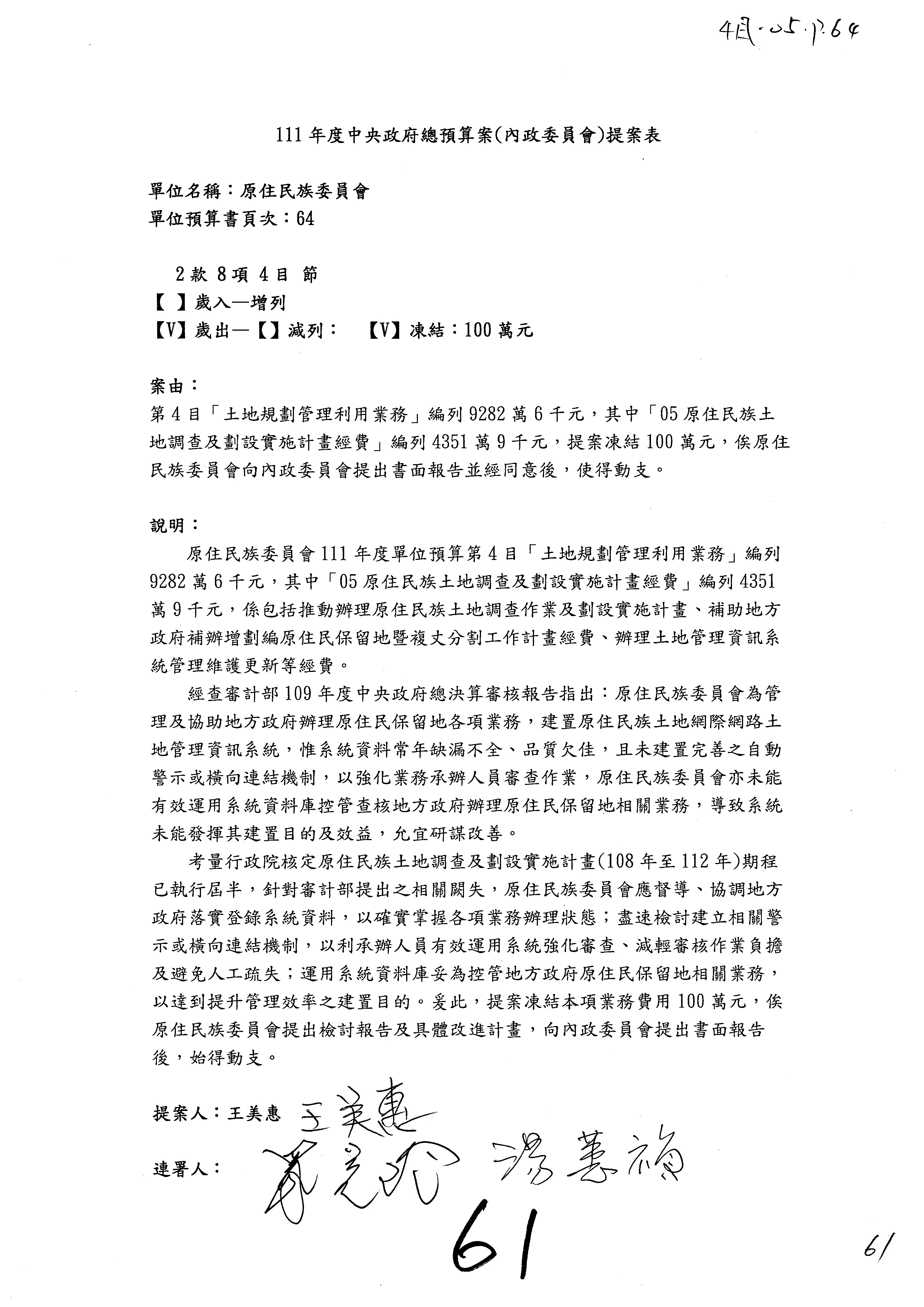 現在進行預算處理,請宣讀預算數及委員提案,宣讀完畢後再進行協商。