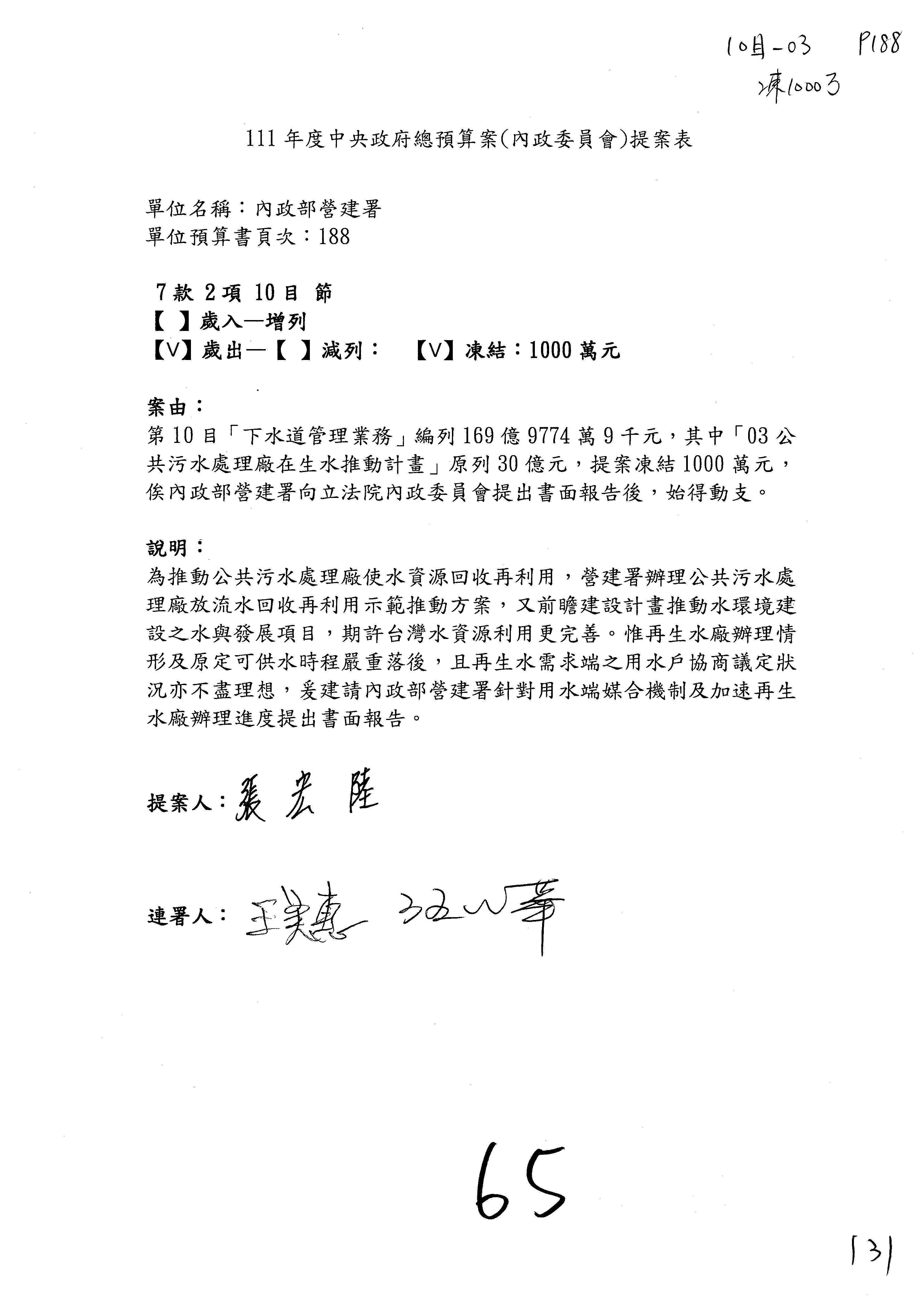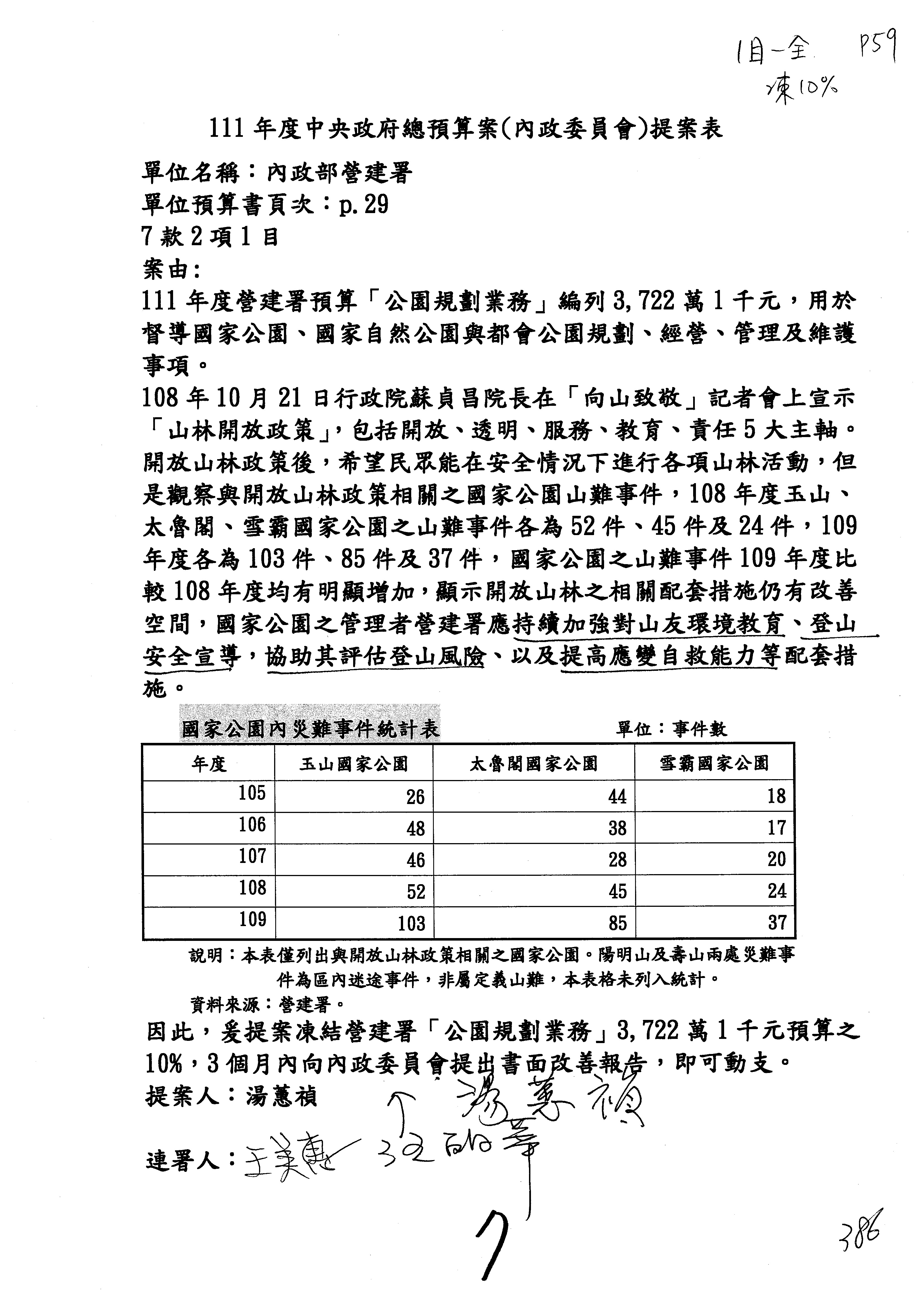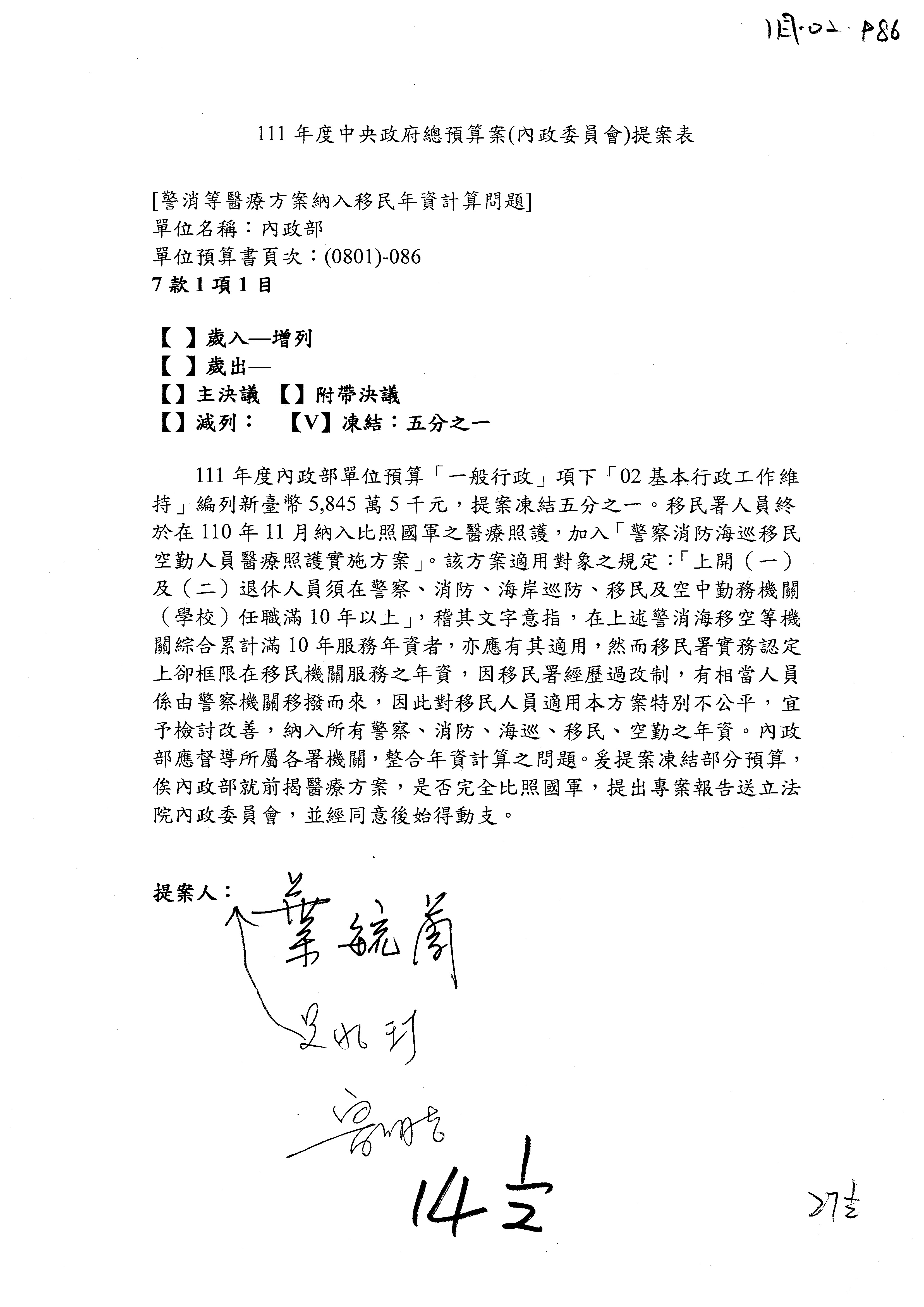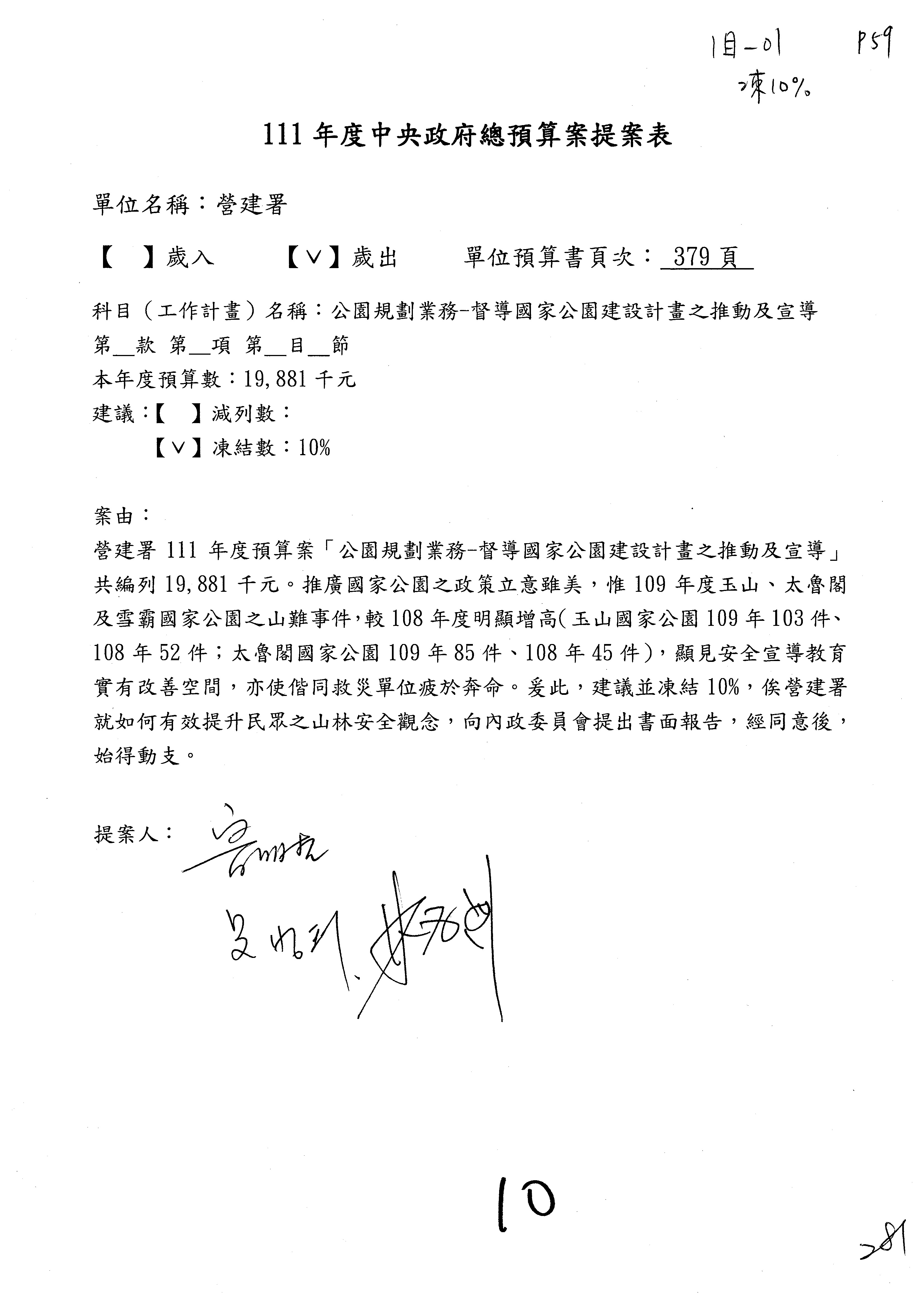 主席:寫提案也不夠成本,所以凍結10萬元。