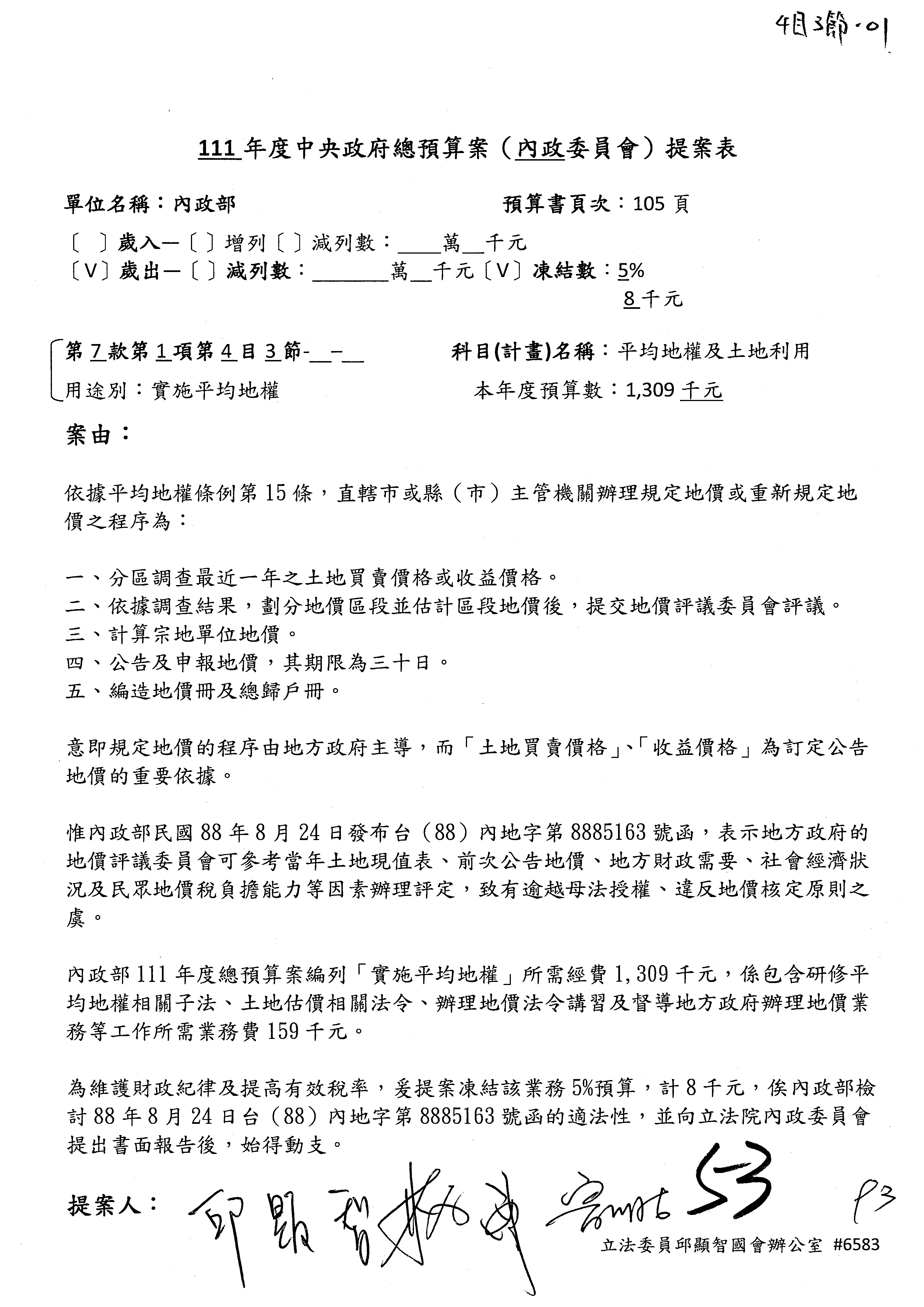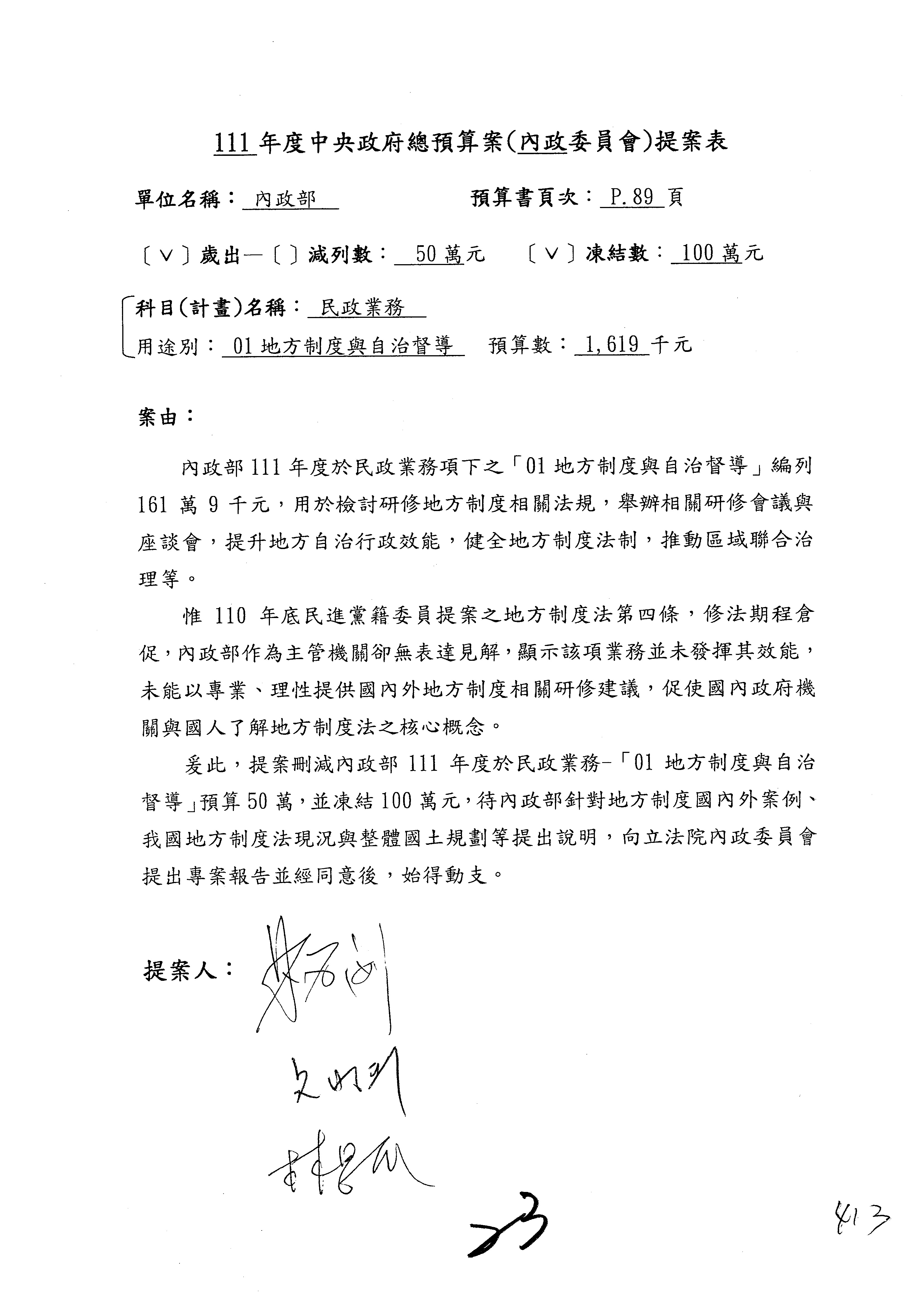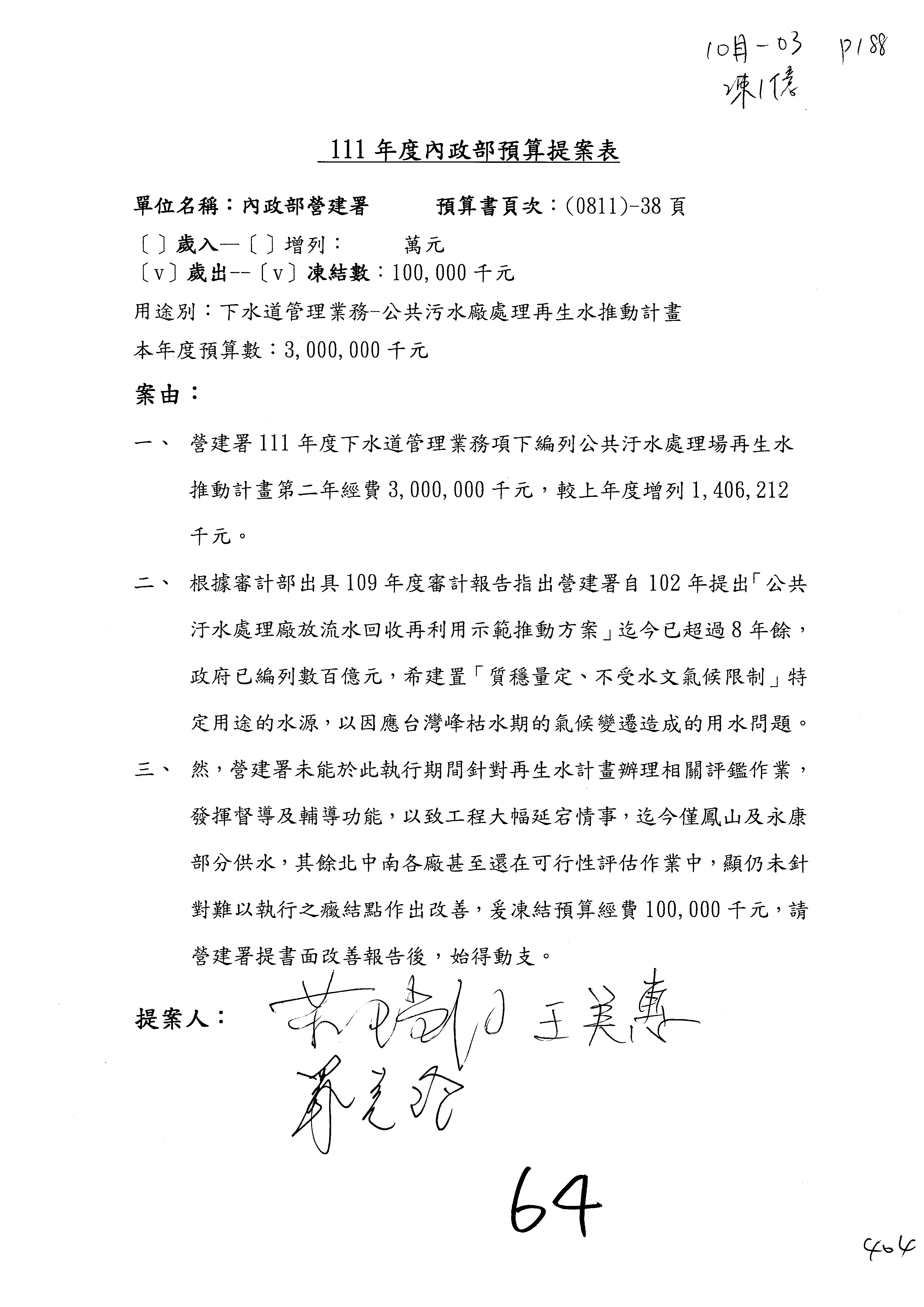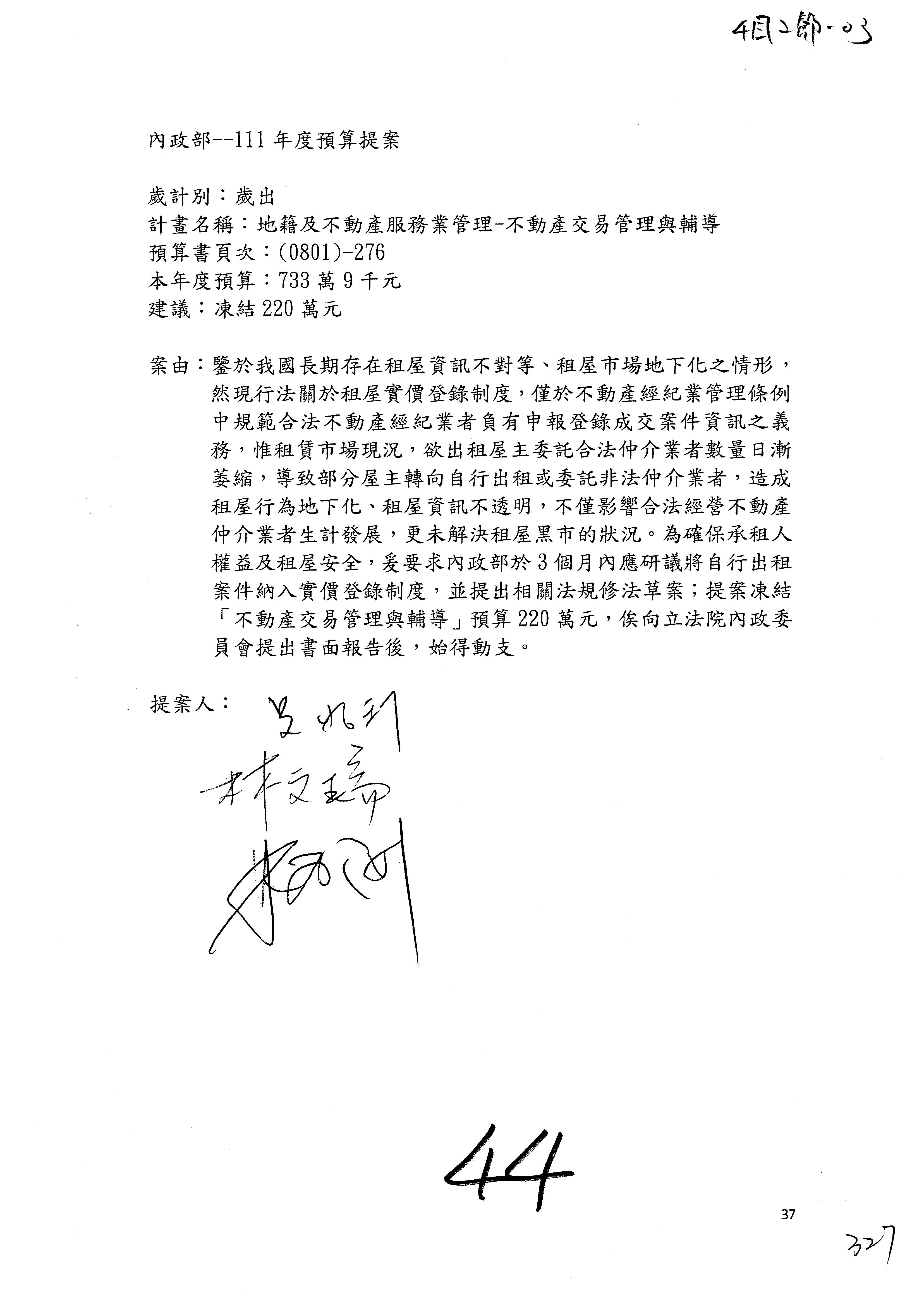 主席:寫提案也不夠成本,所以凍結10萬元。