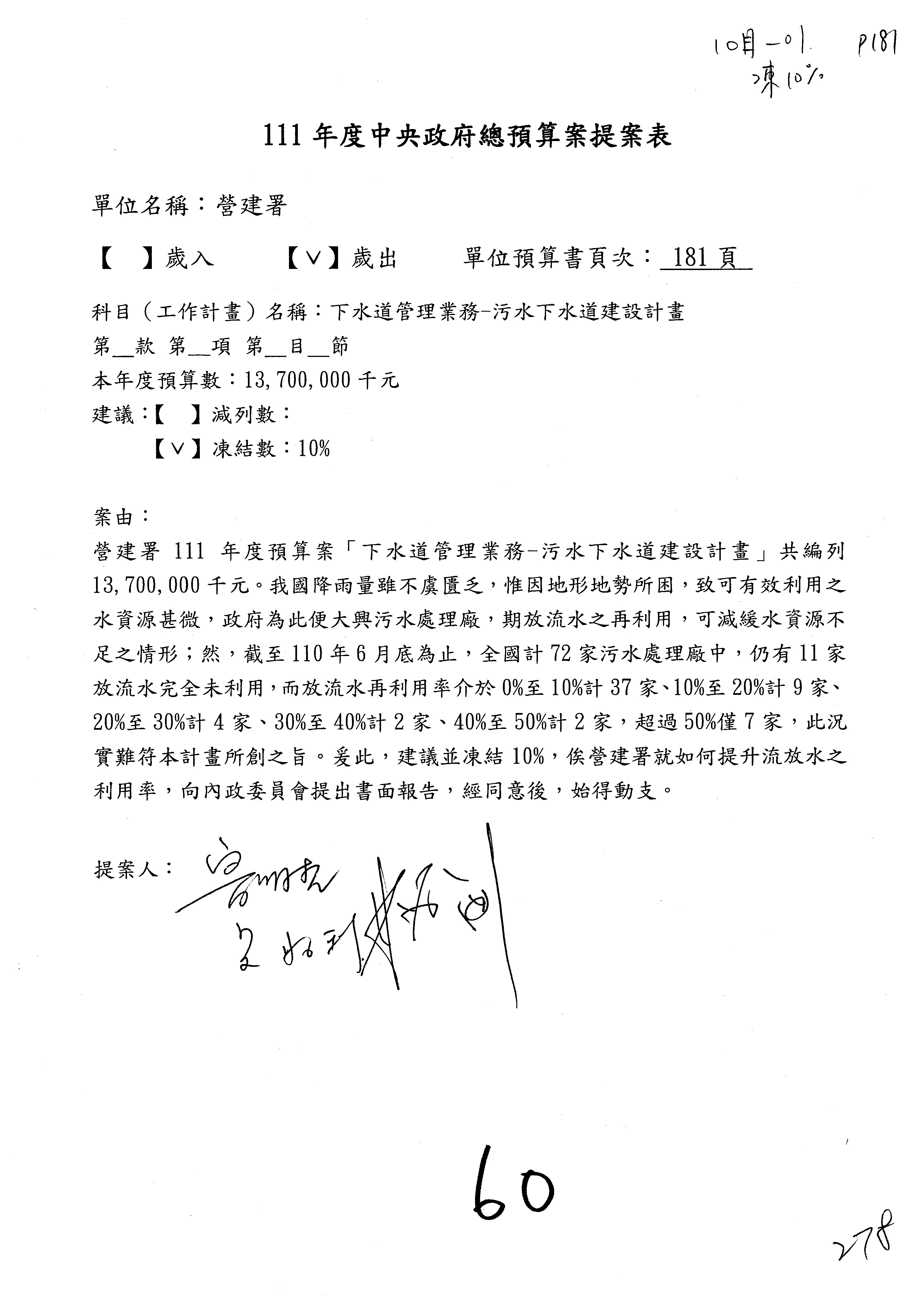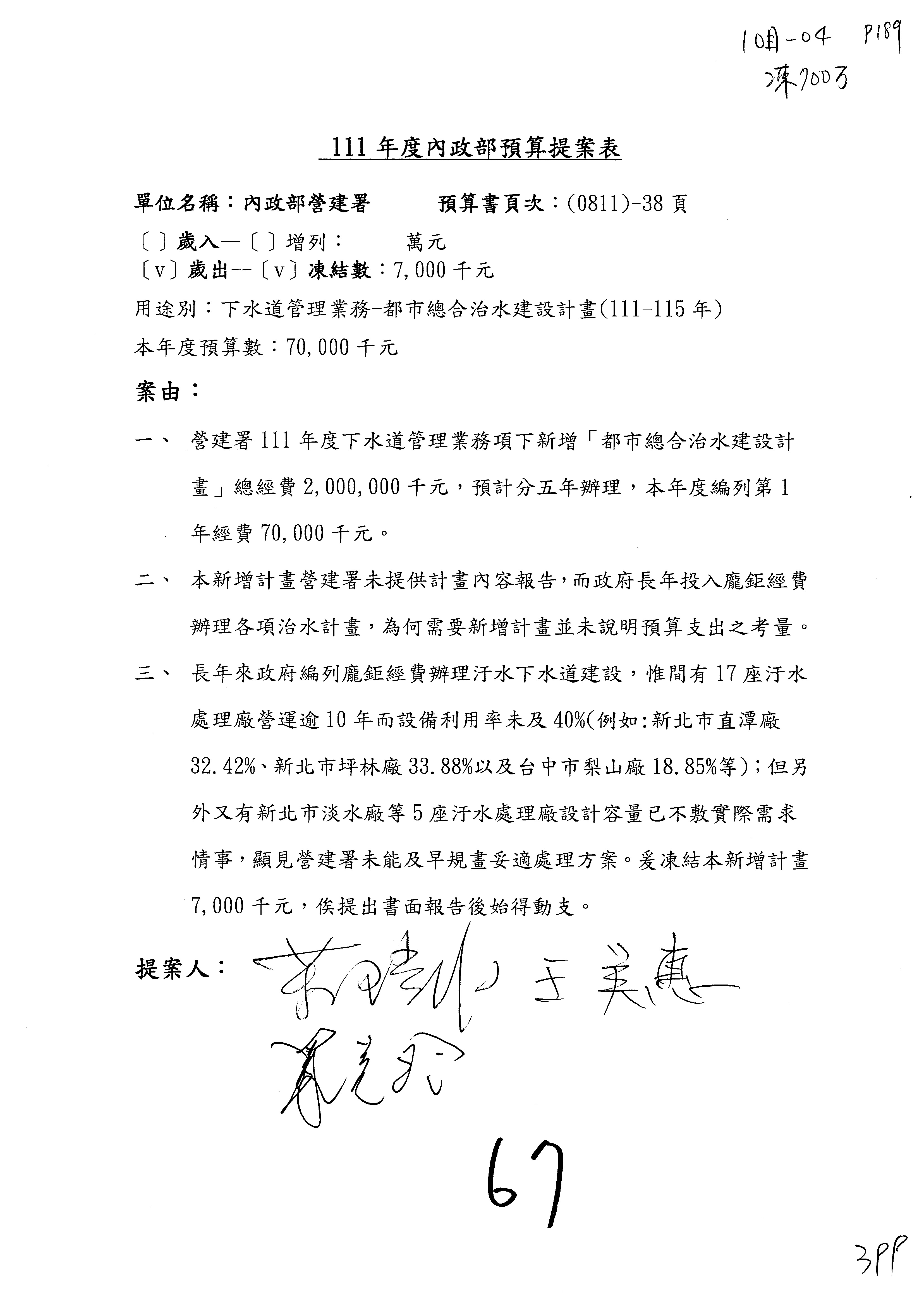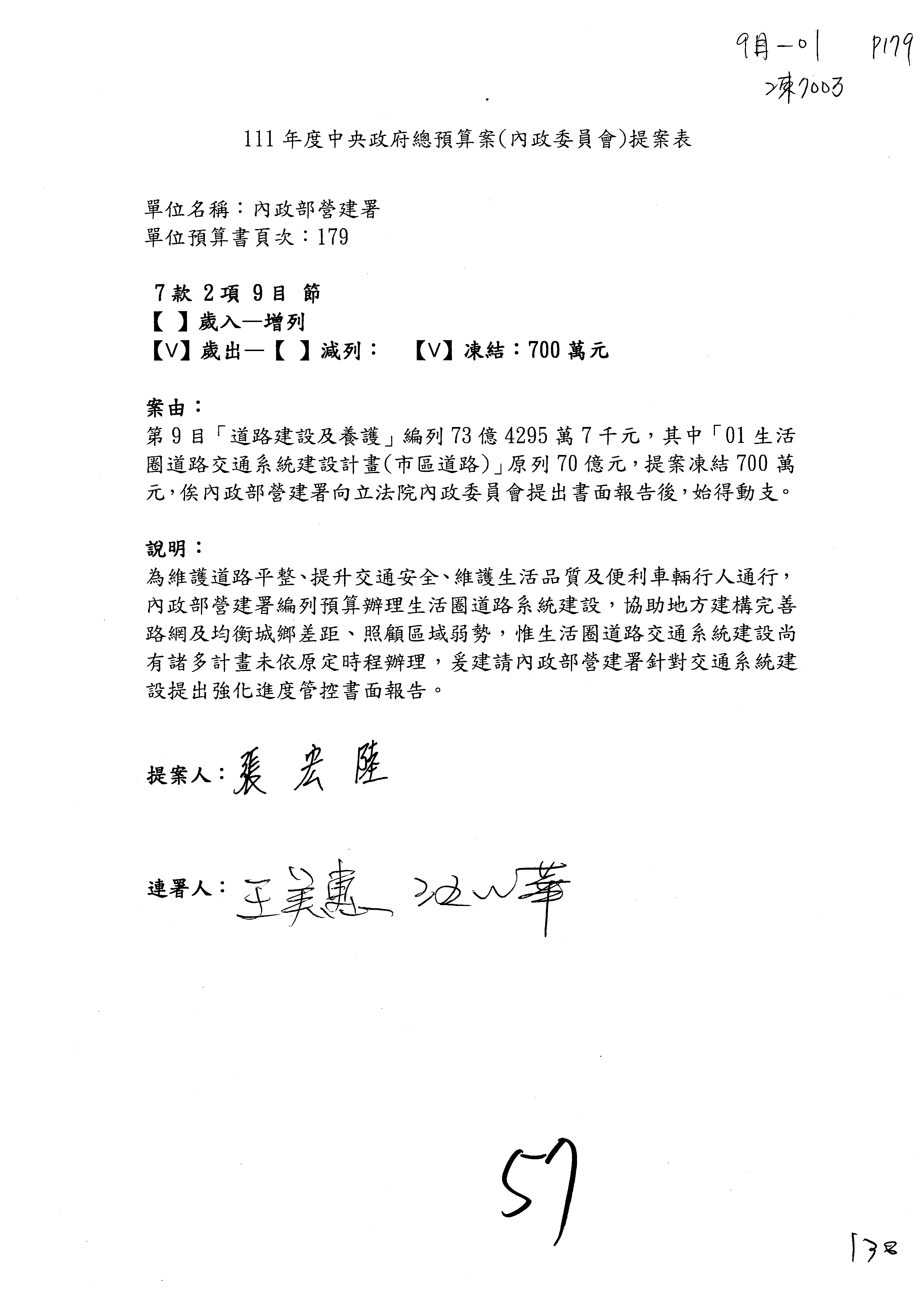 主席:好,OK,第68案、第69案一併處理,凍結5%,提書面報告。