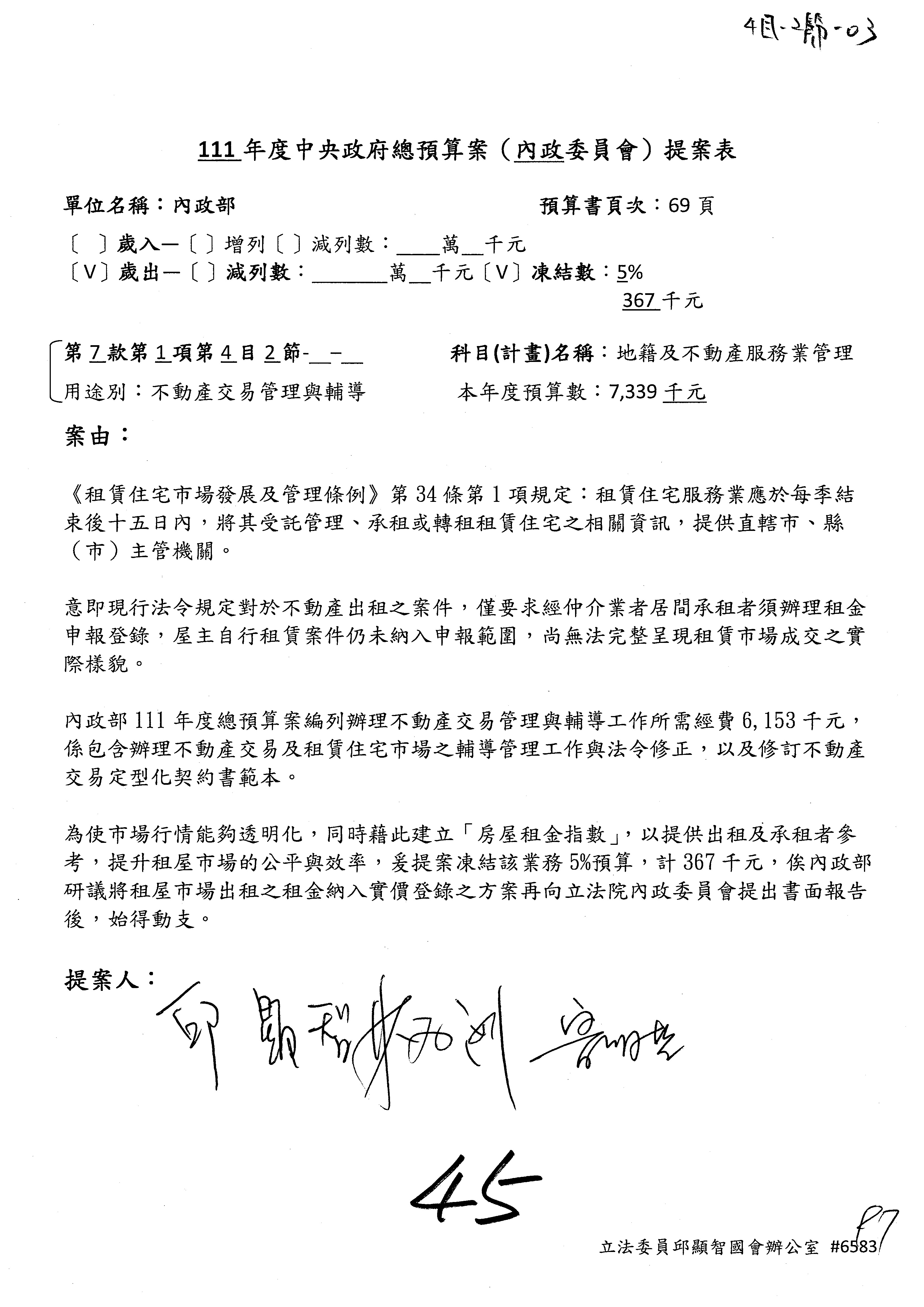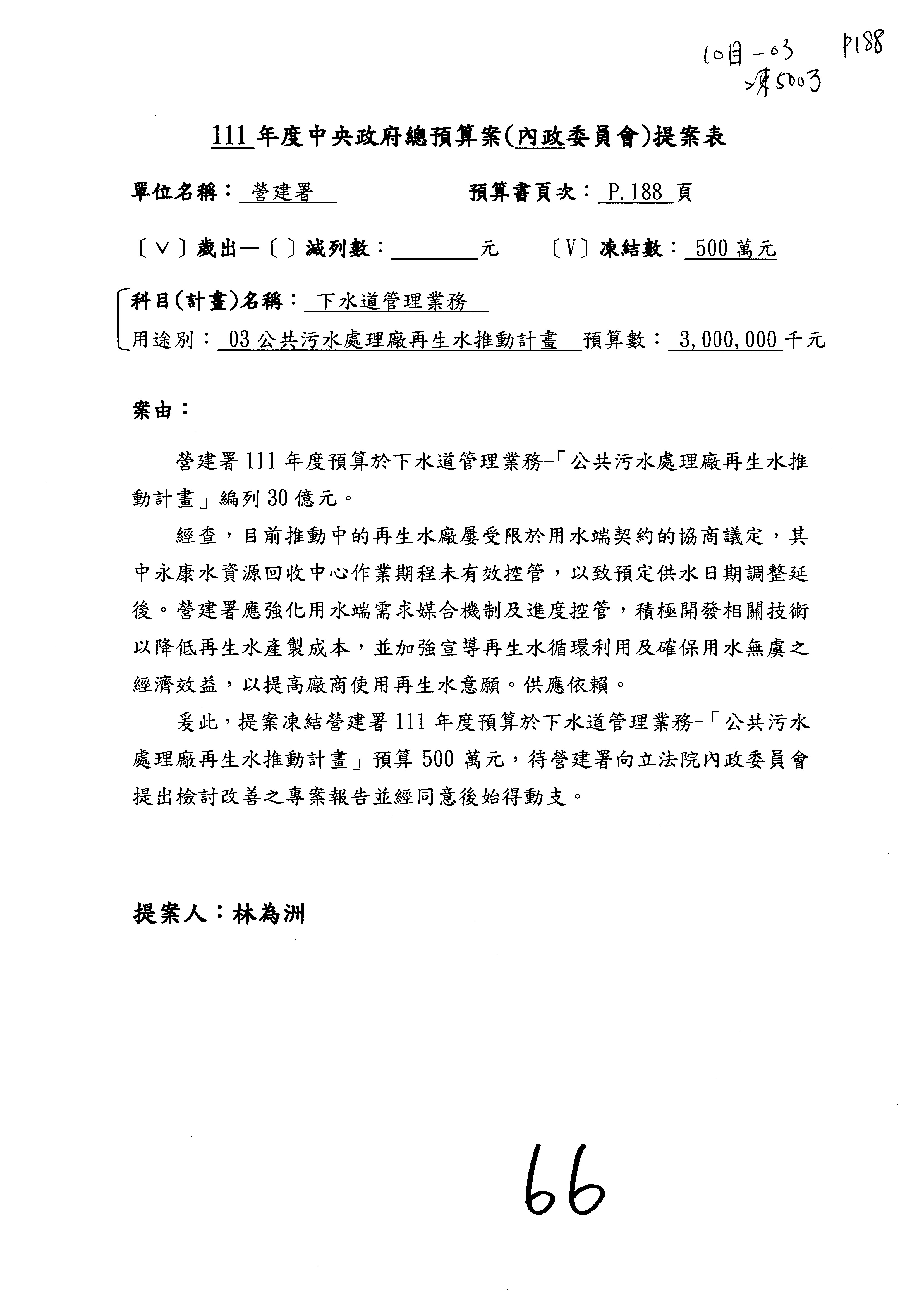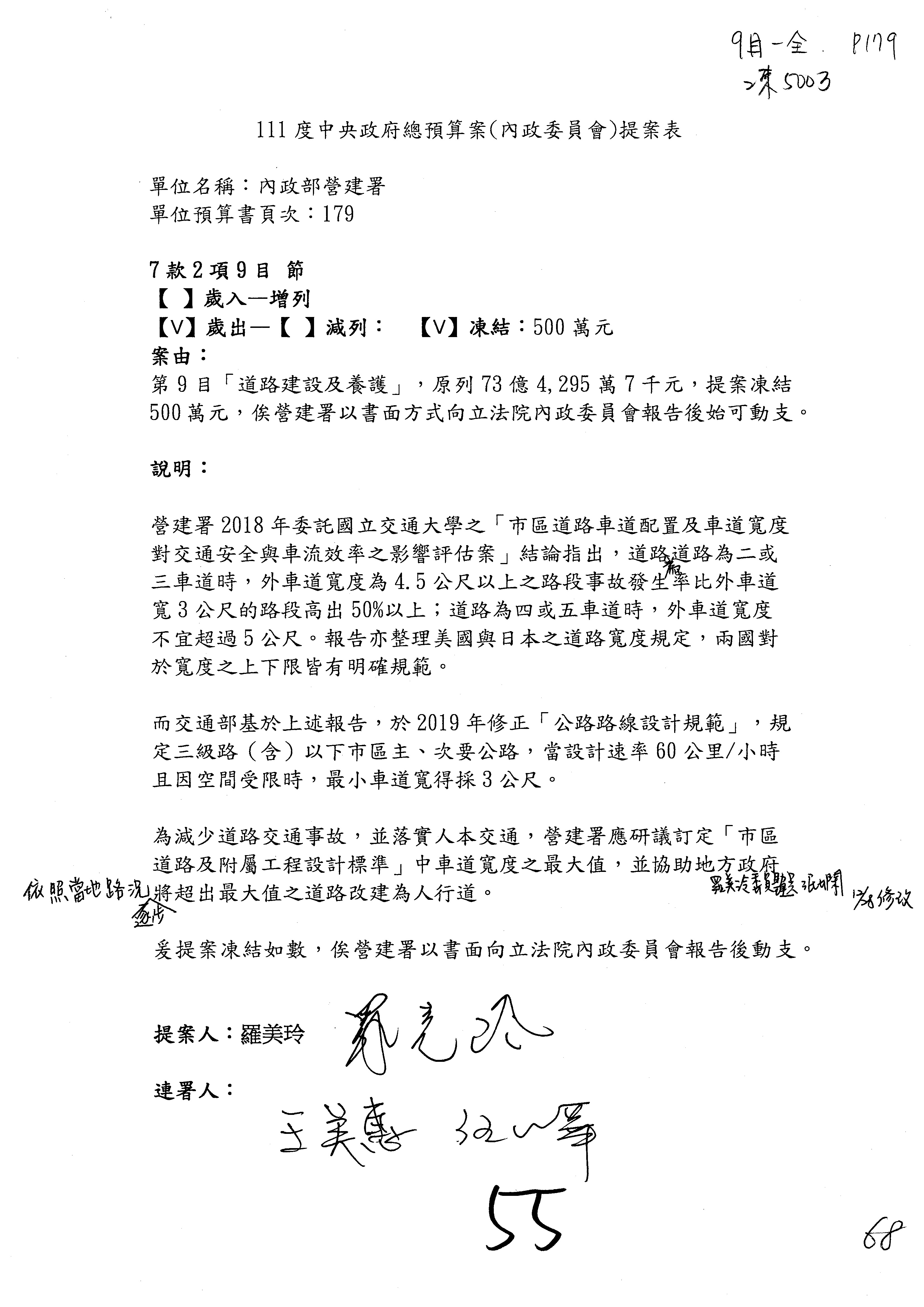 主席:好,OK,第68案、第69案一併處理,凍結5%,提書面報告。