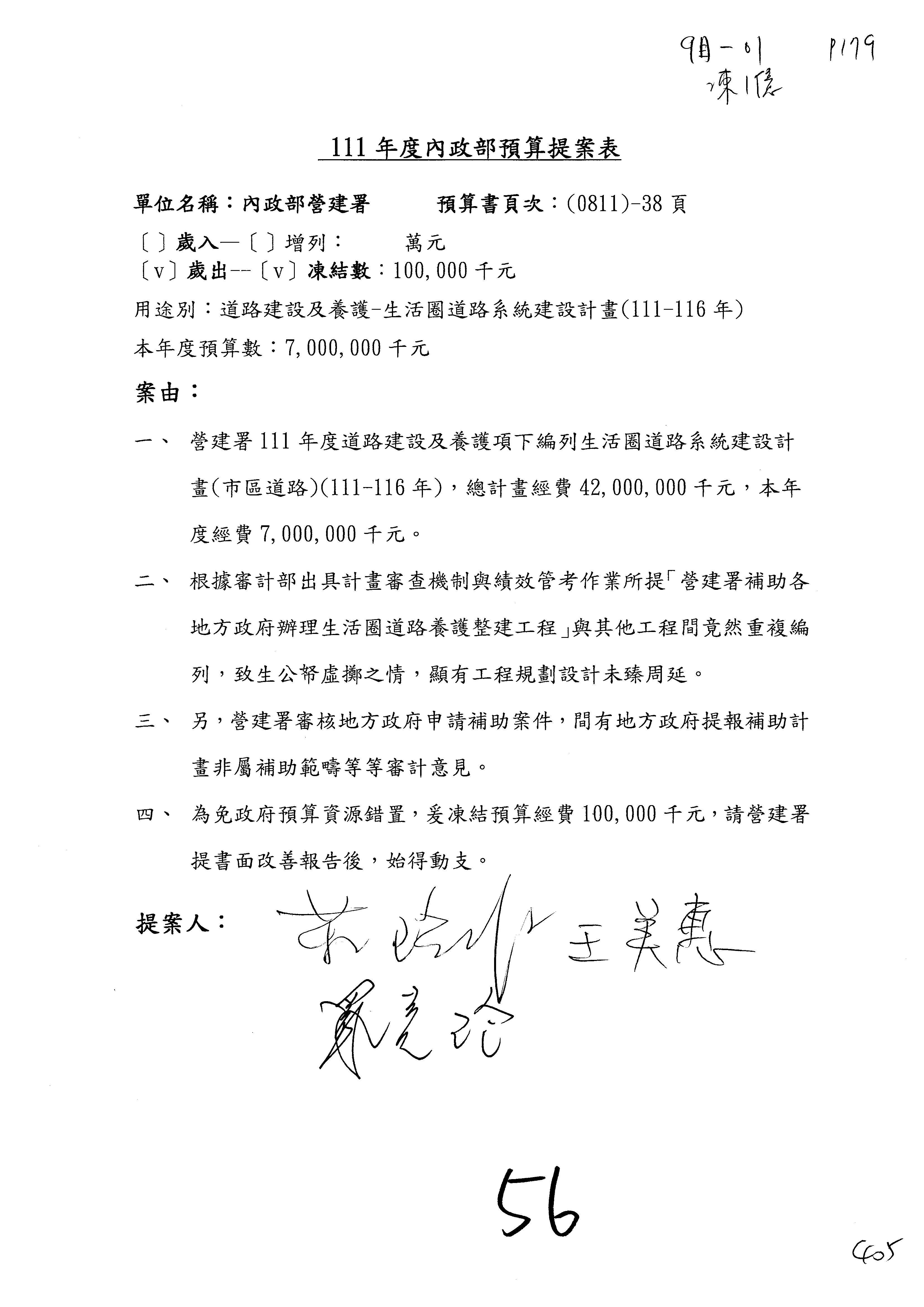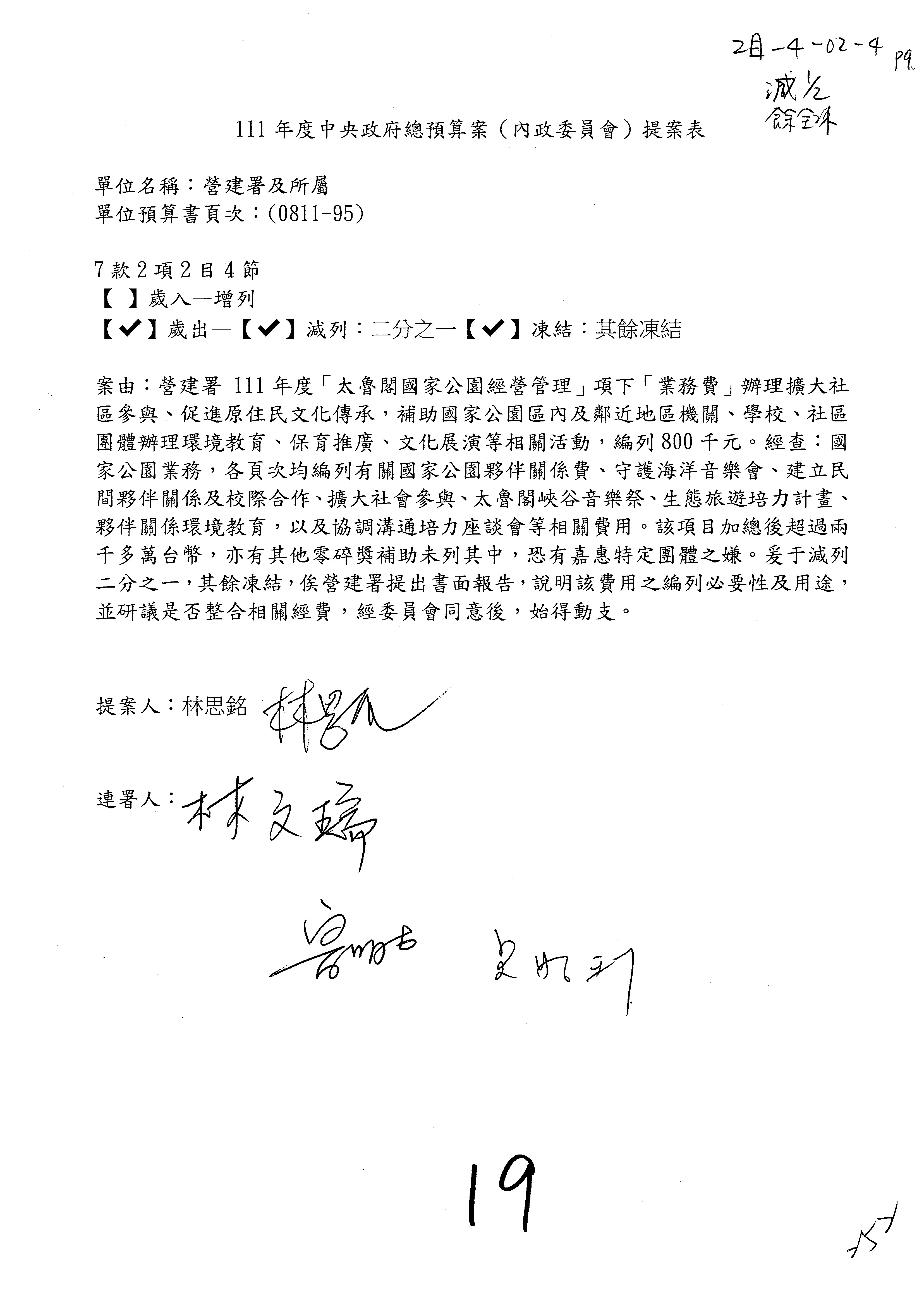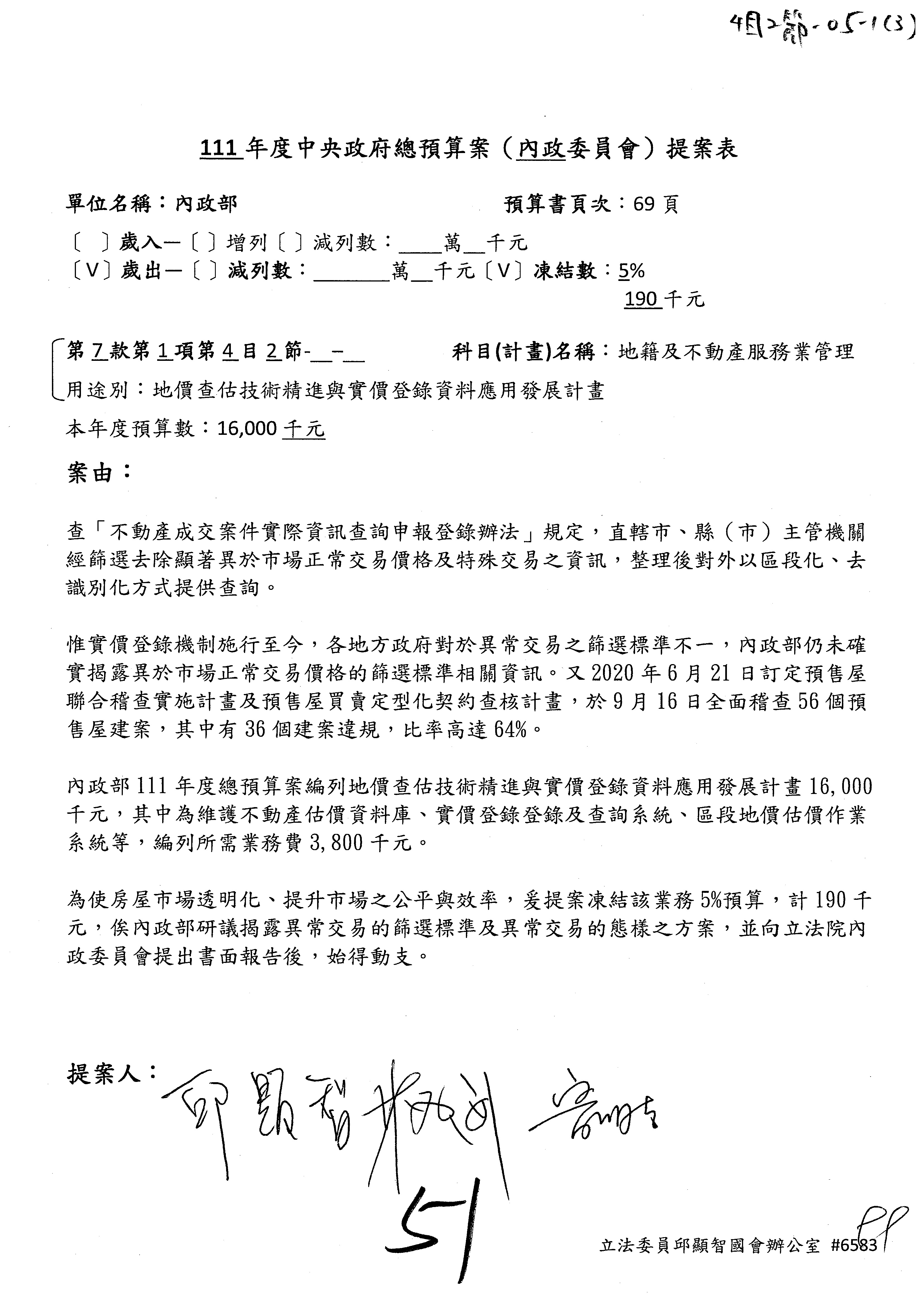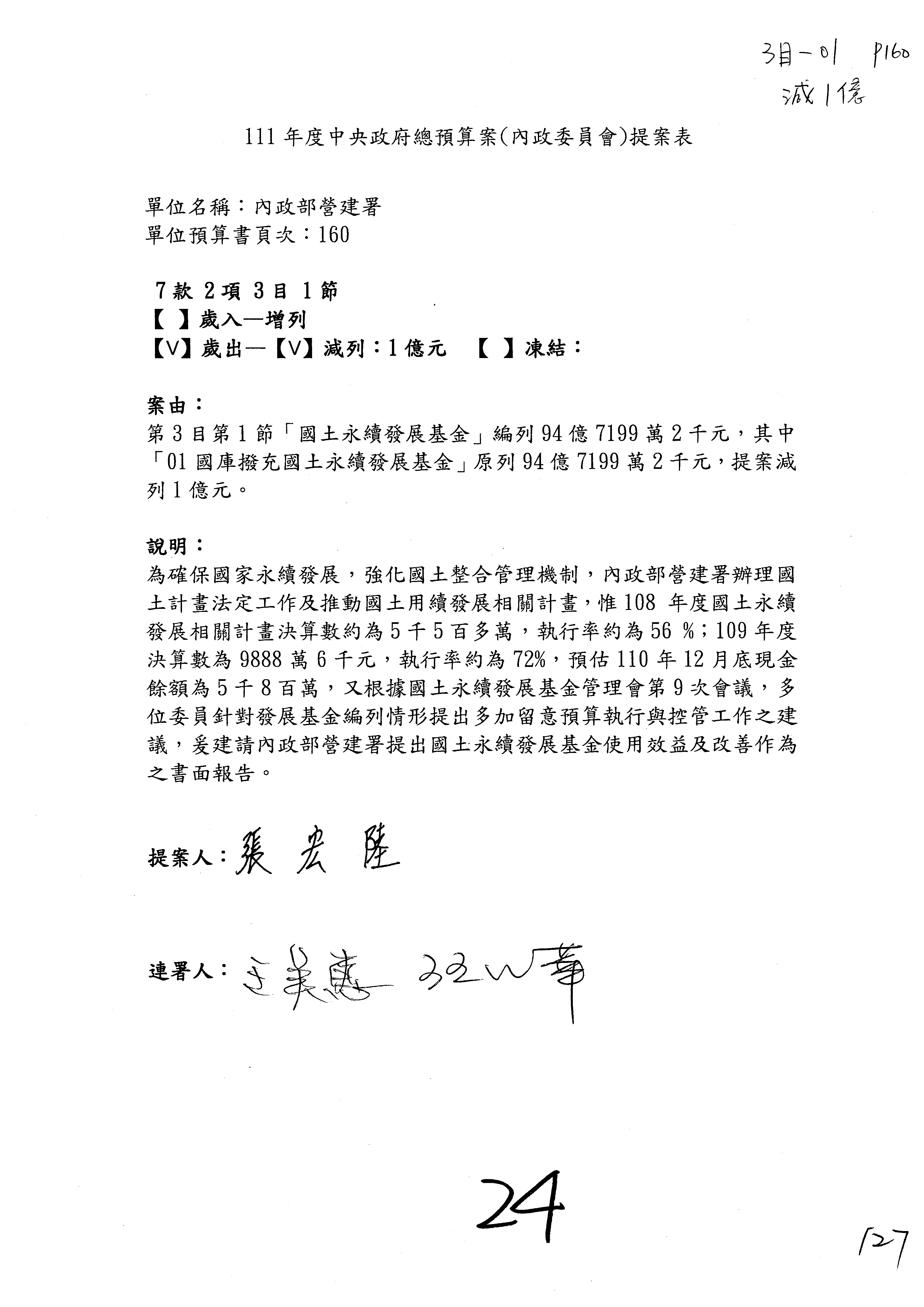 好啦!我唸一下,第7案是林思銘委員的提案,第3行修正為「經查:預算書中內容過於簡略,未有其他行政(或招標)流程,且難以看出其實際效益。建請建築研究所提供近五年補助單位名單並檢附行政作業流程相關資料書面報告」,這是主決議,就書面報告,沒有減列、沒有凍結,第7案就改成主決議,通過。
