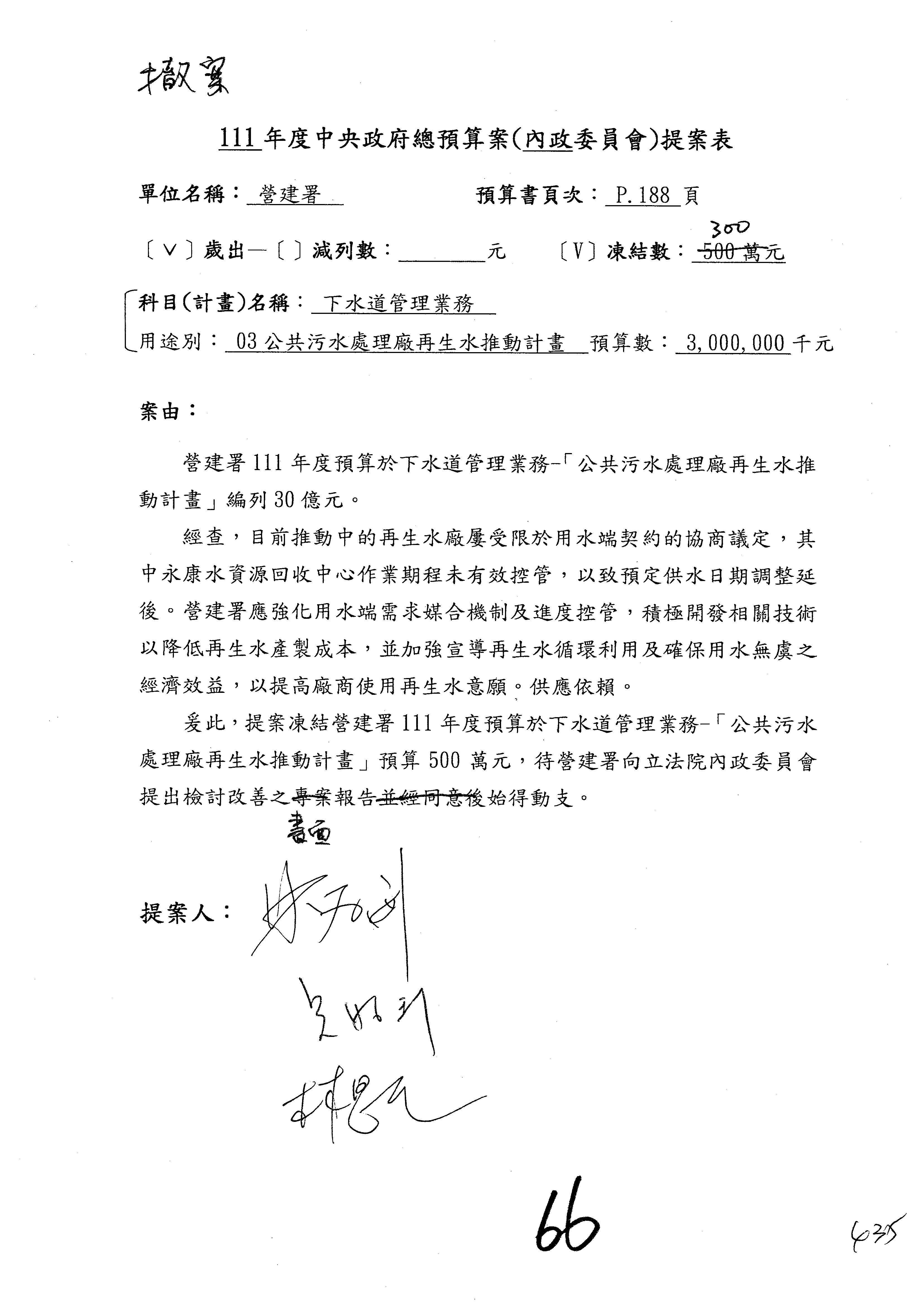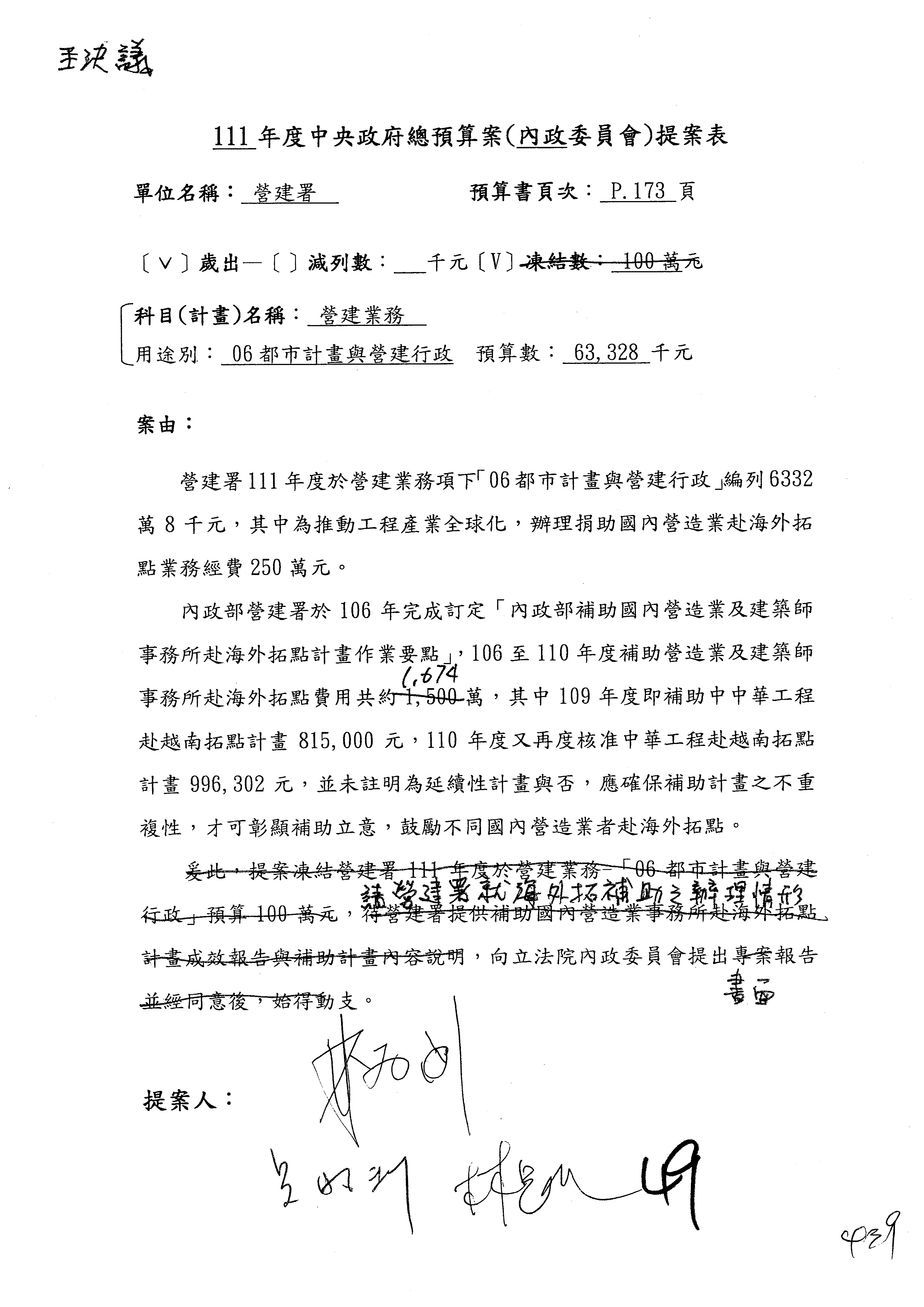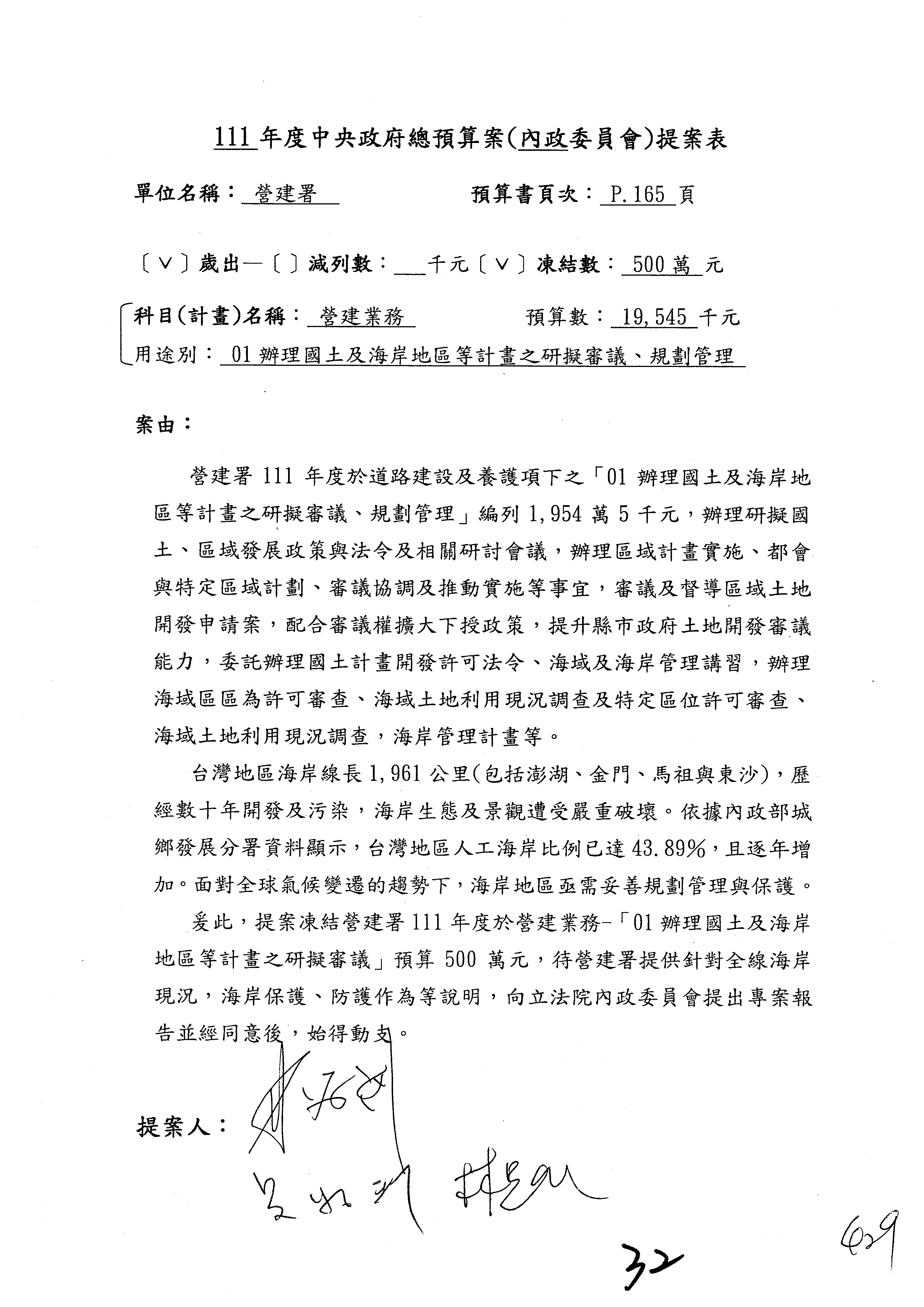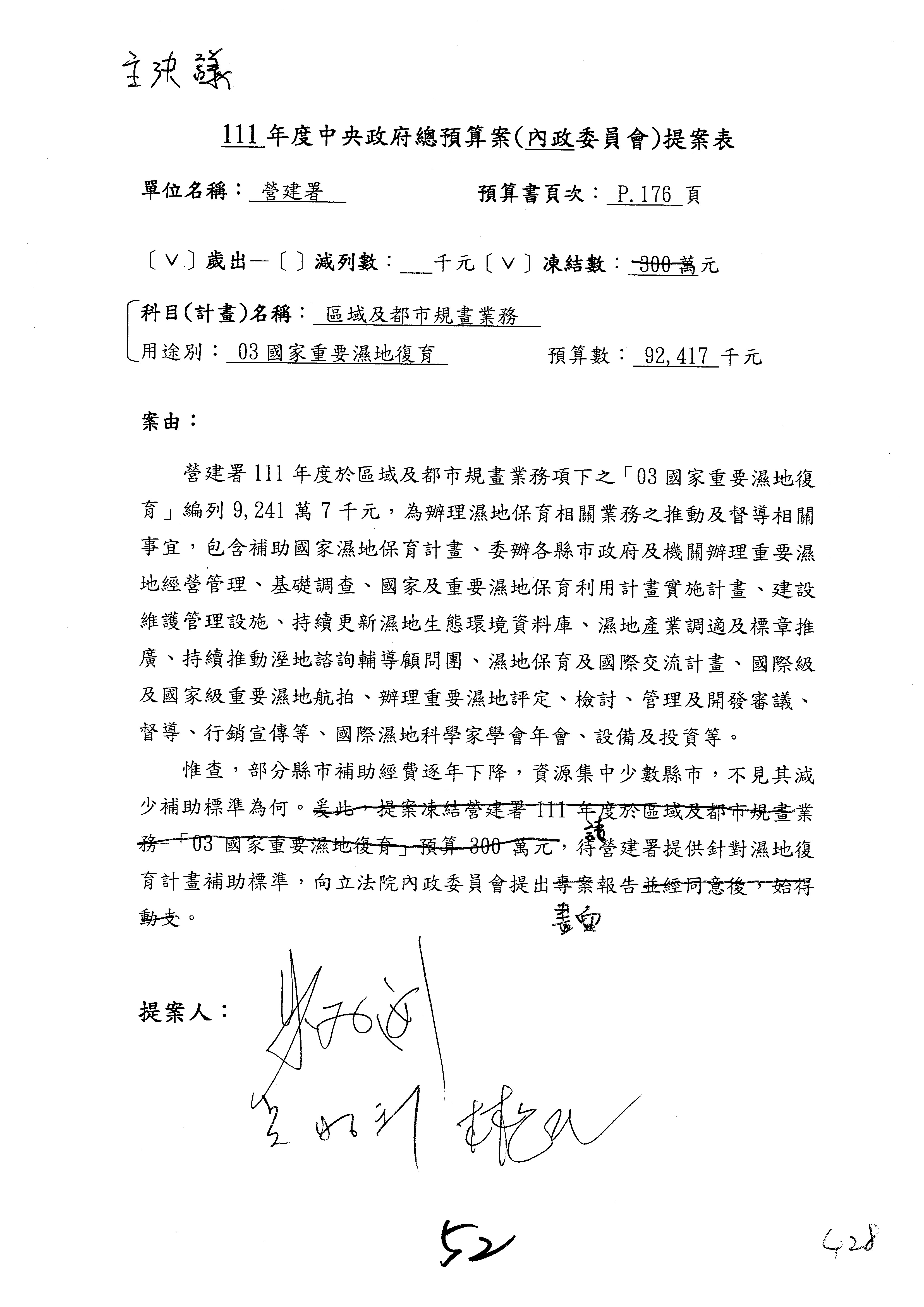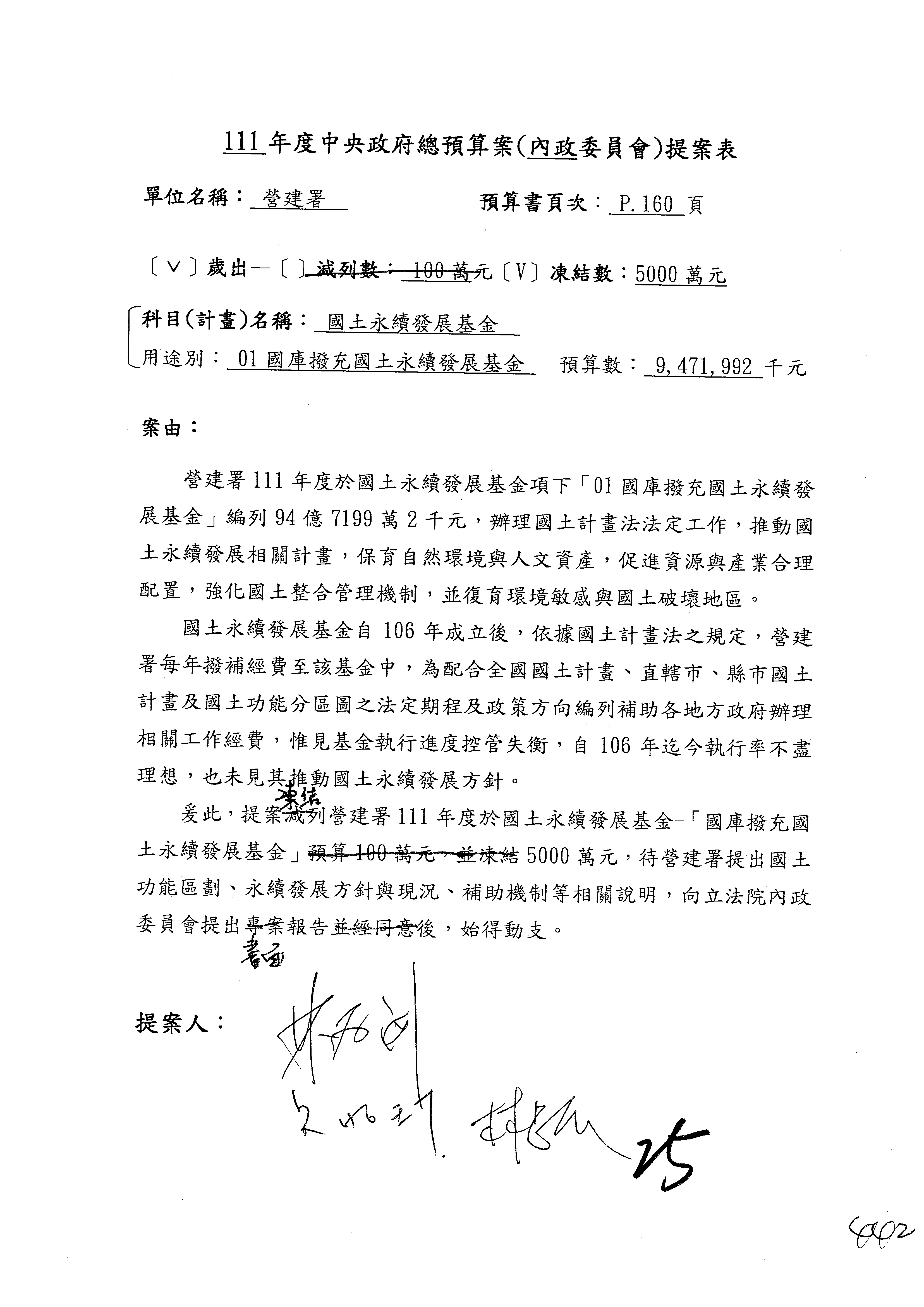 王所長榮進:這個部分我們有跟委員做說明,委員同意減列的部分就不再減列,凍結的部分這案是撤案,提書面報告。