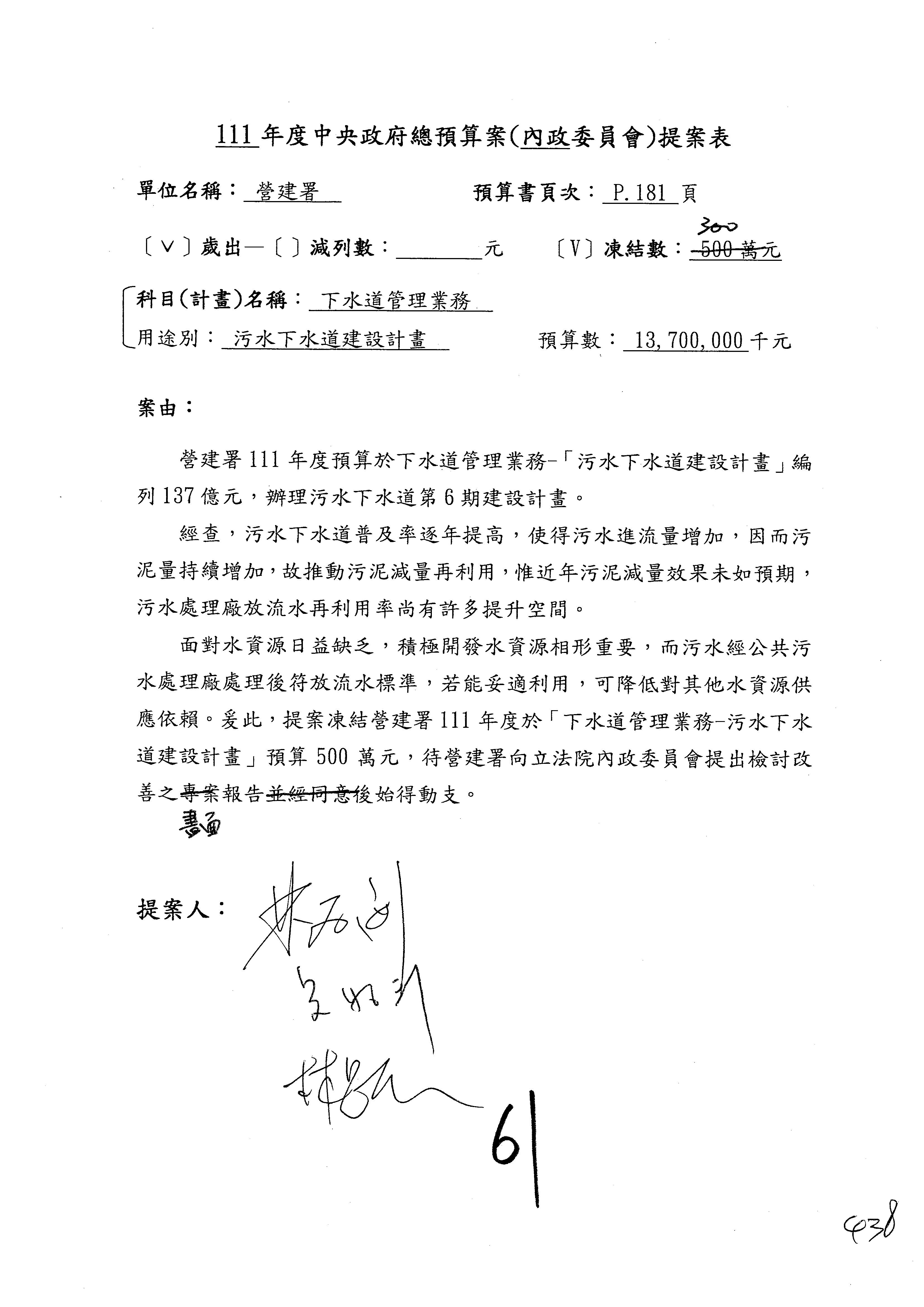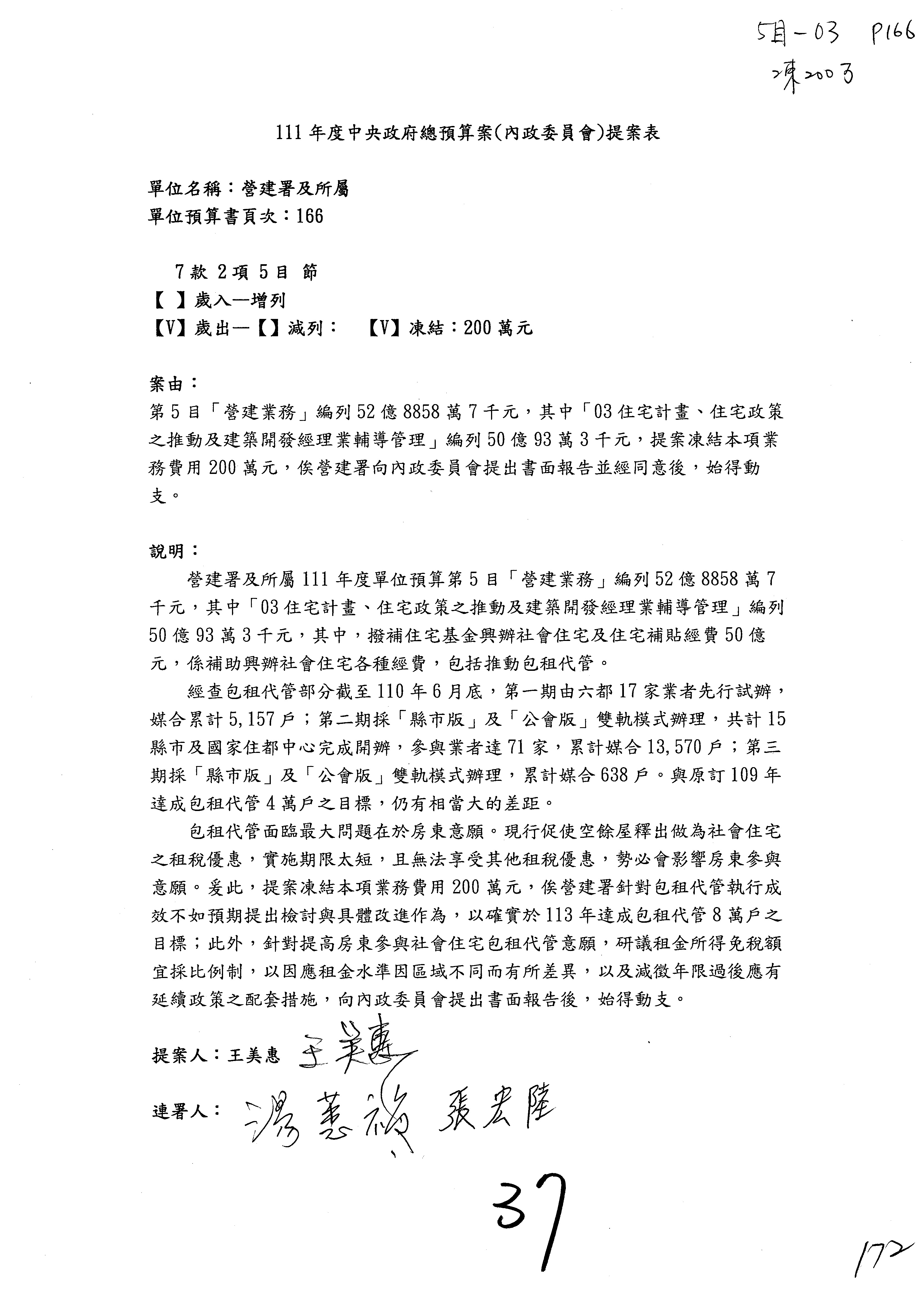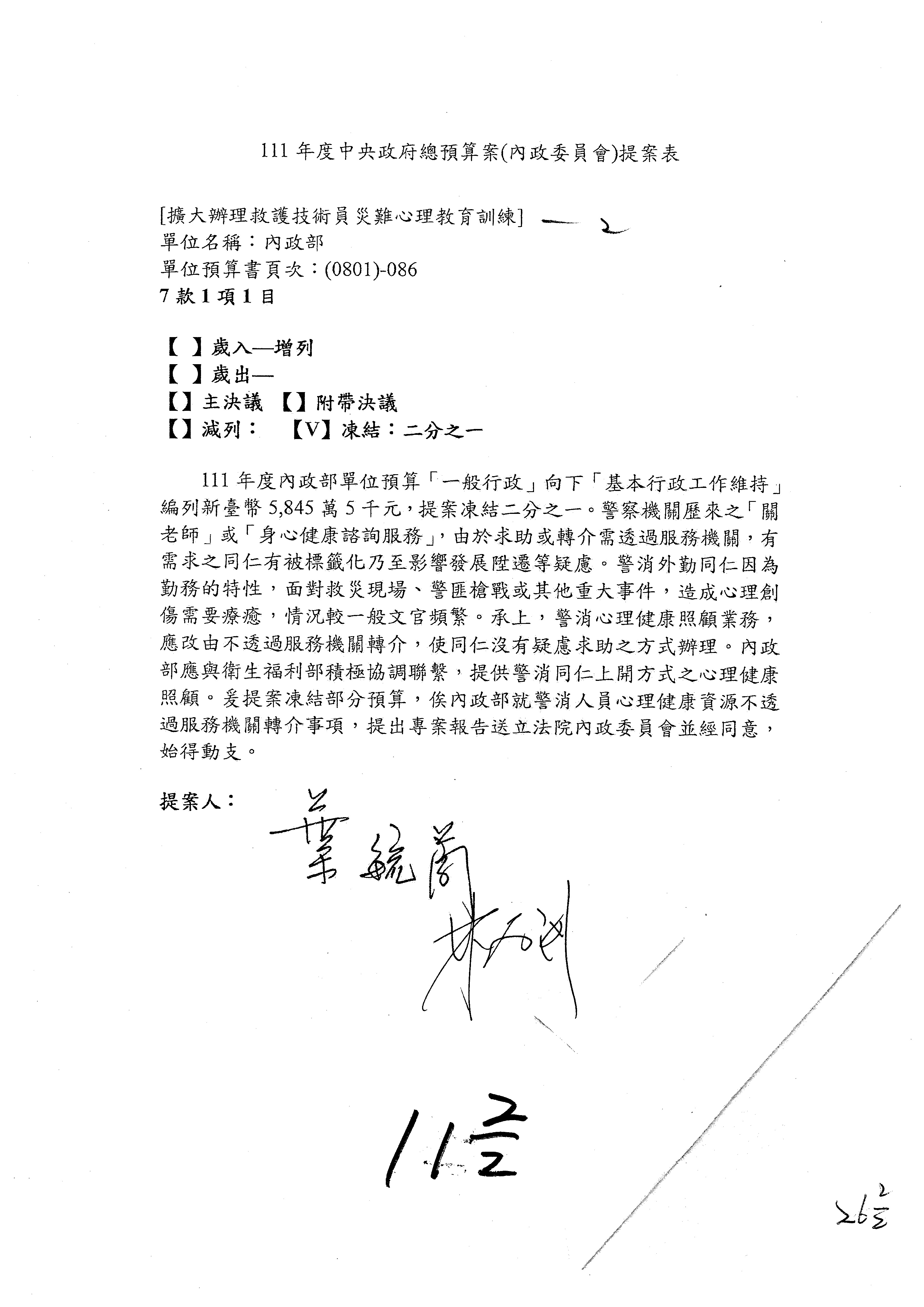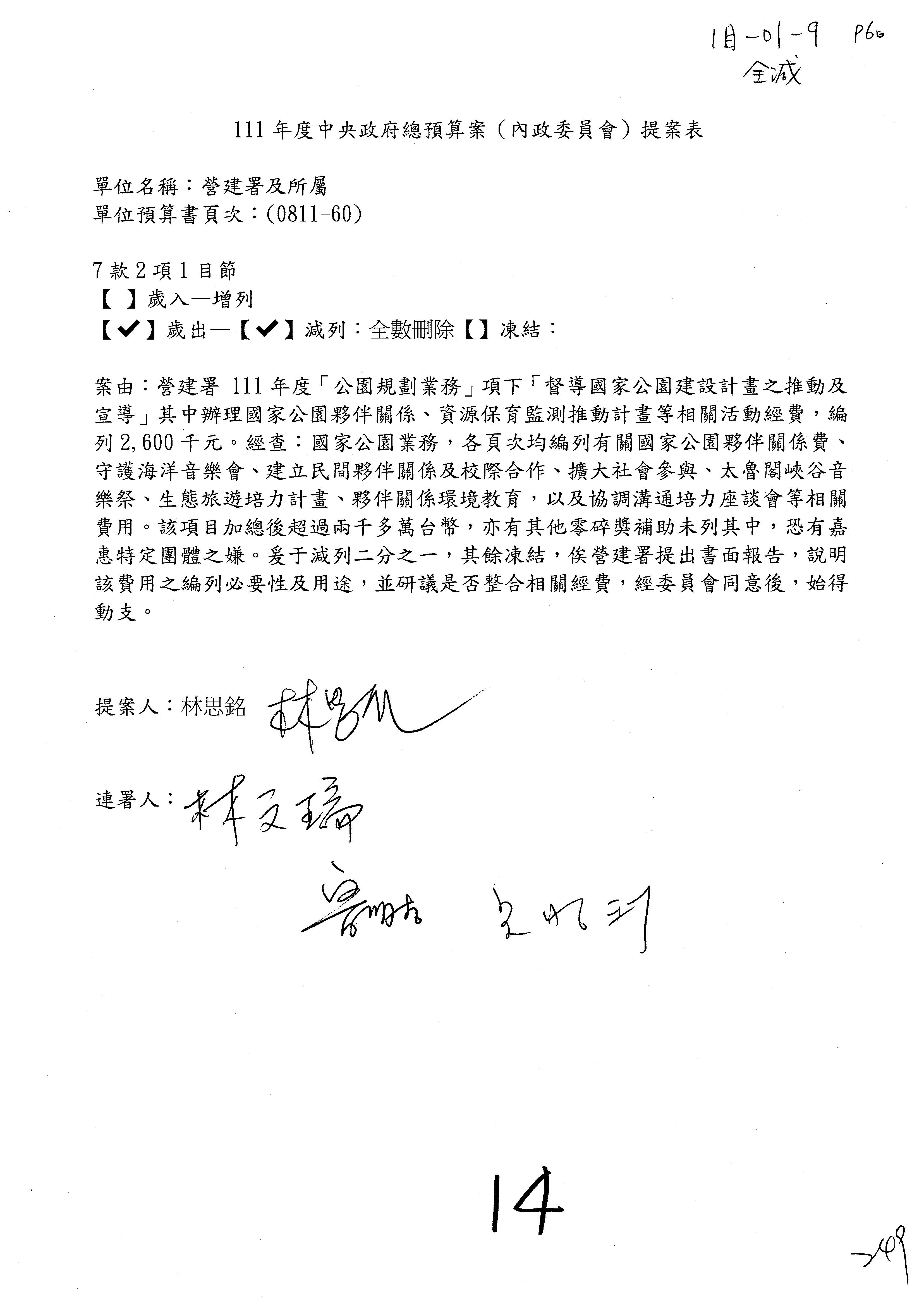 王所長榮進:這個部分我們有跟委員做說明,委員同意減列的部分就不再減列,凍結的部分這案是撤案,提書面報告。